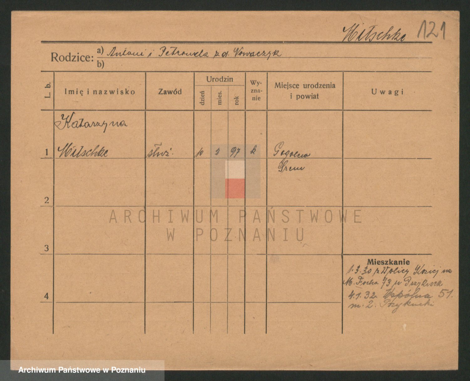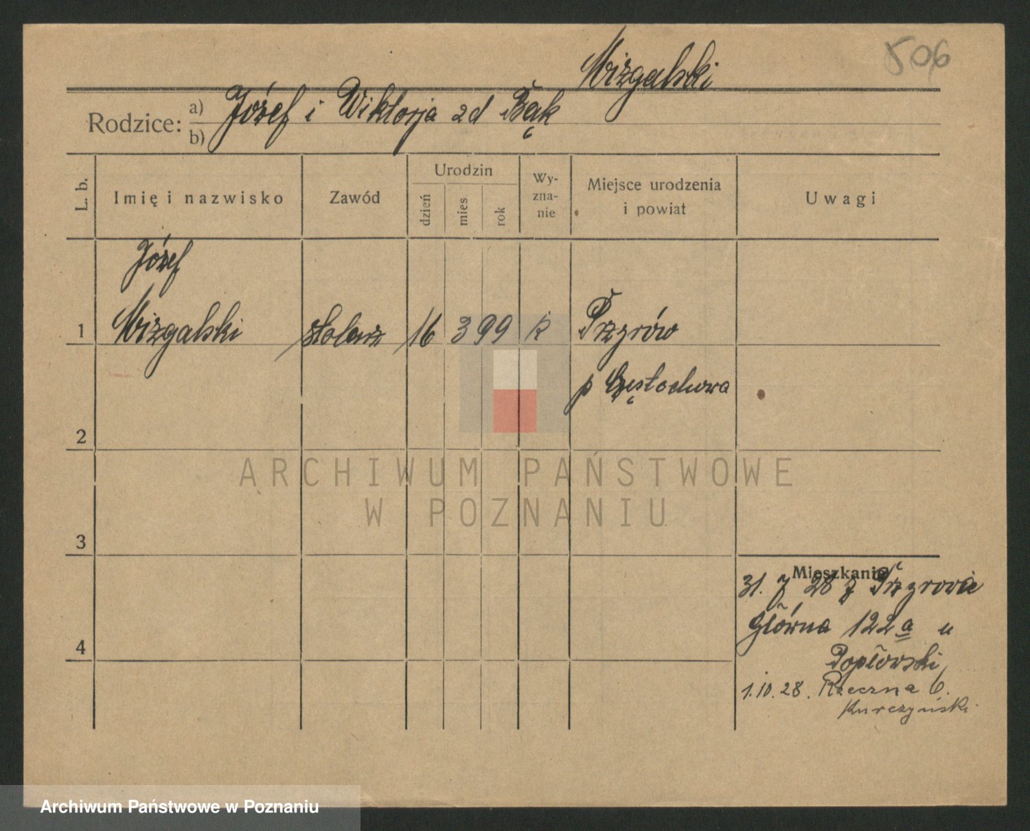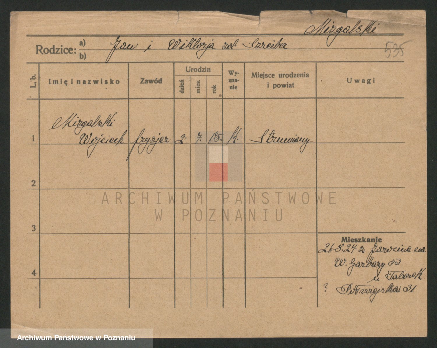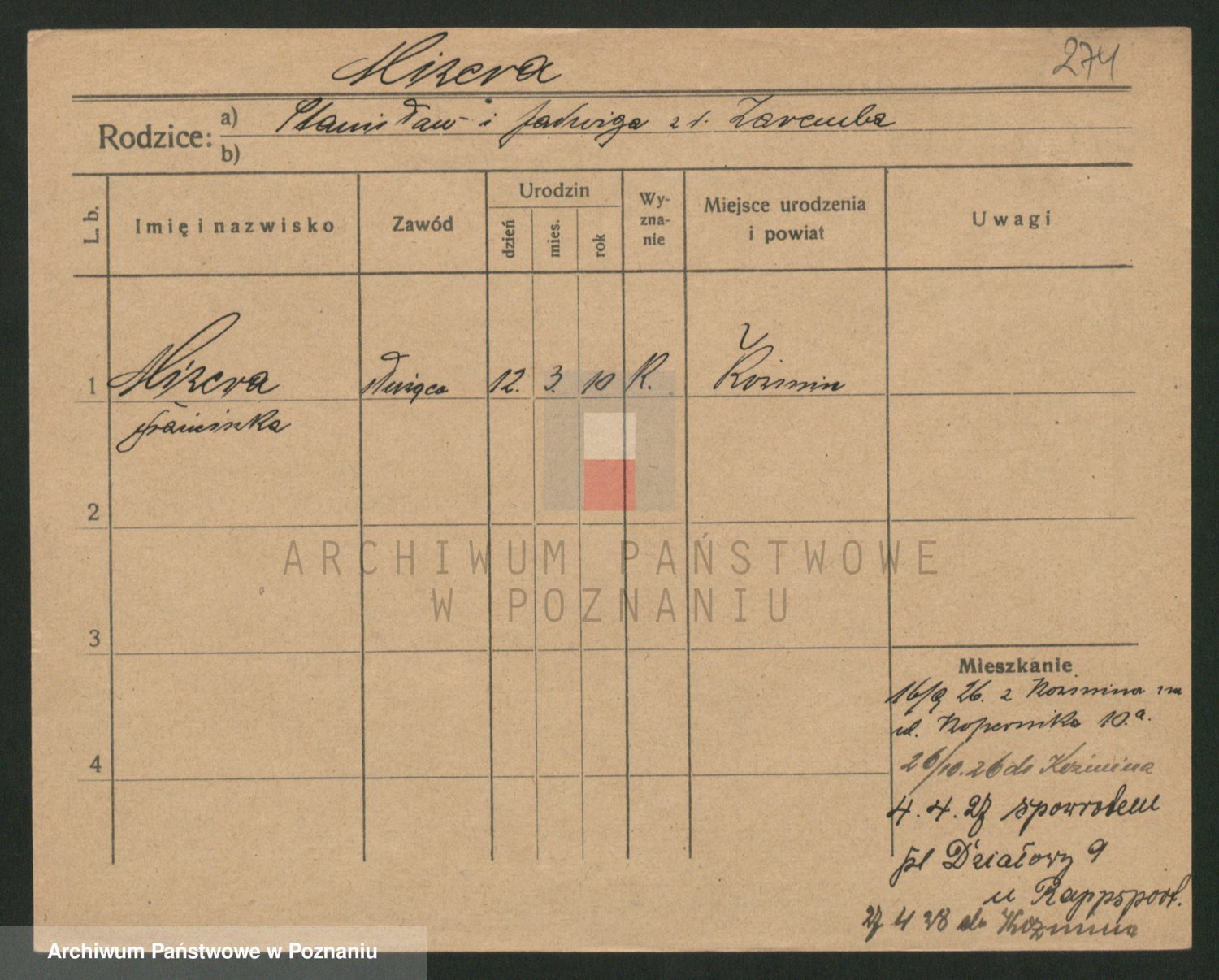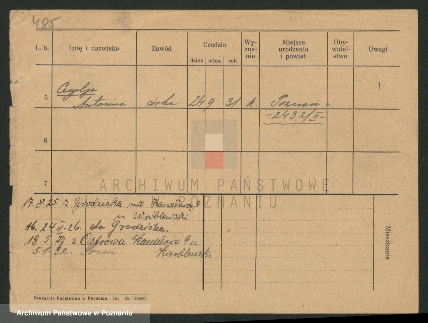 Podgląd karty osobowej dostępny jest po kliknięciu na nazwisko lub ikonkę karty. Można dokonywać powiększenia (ikony na górze) lub przechodzić między kolejnymi skanami (strzałki po bokach).
