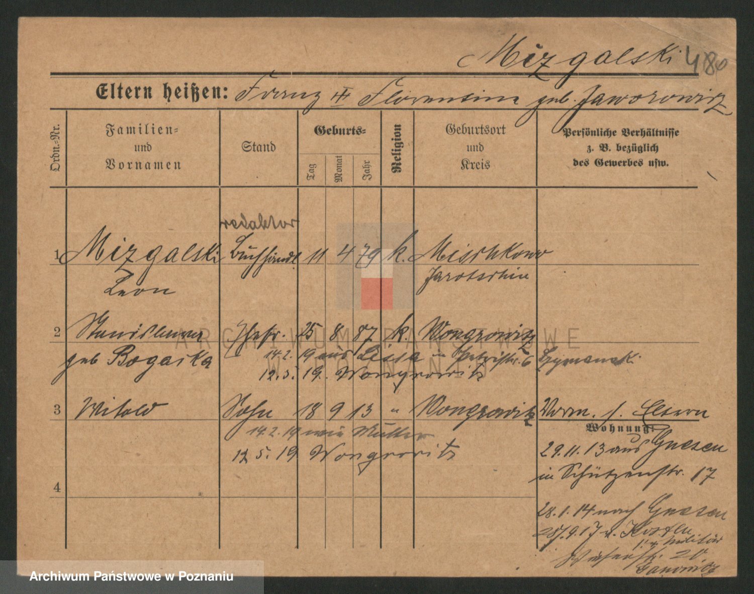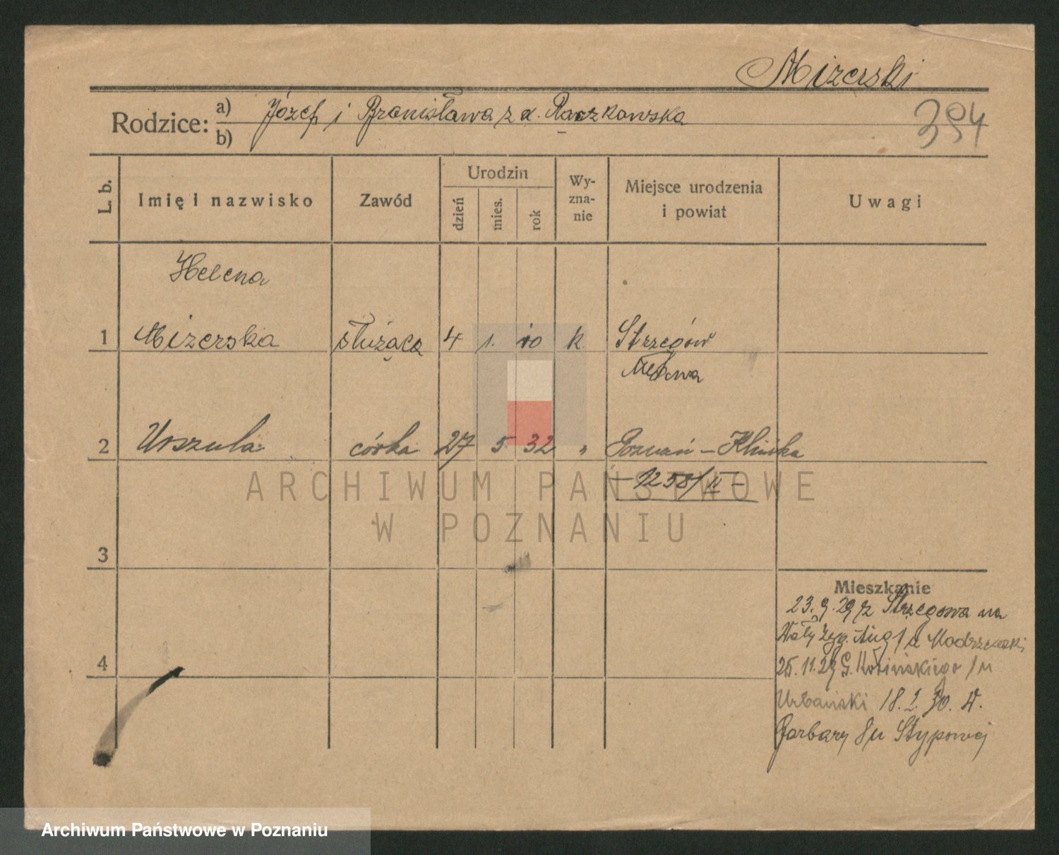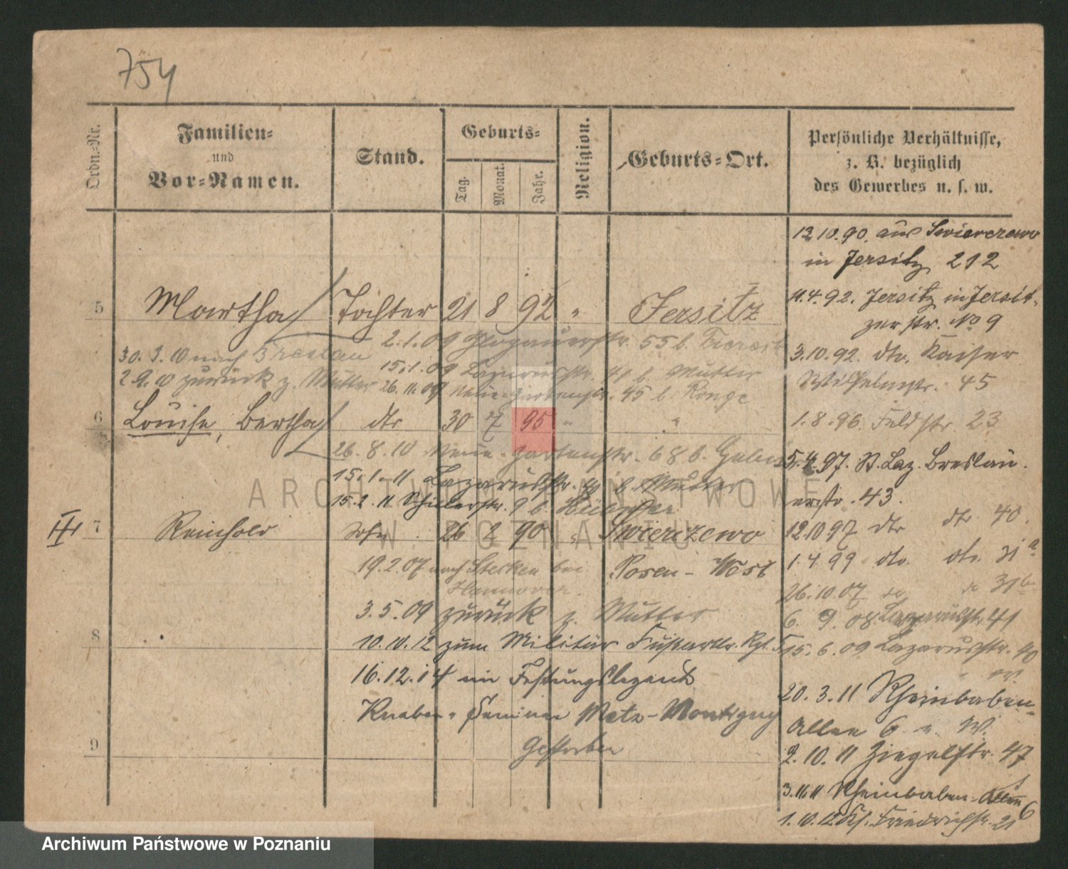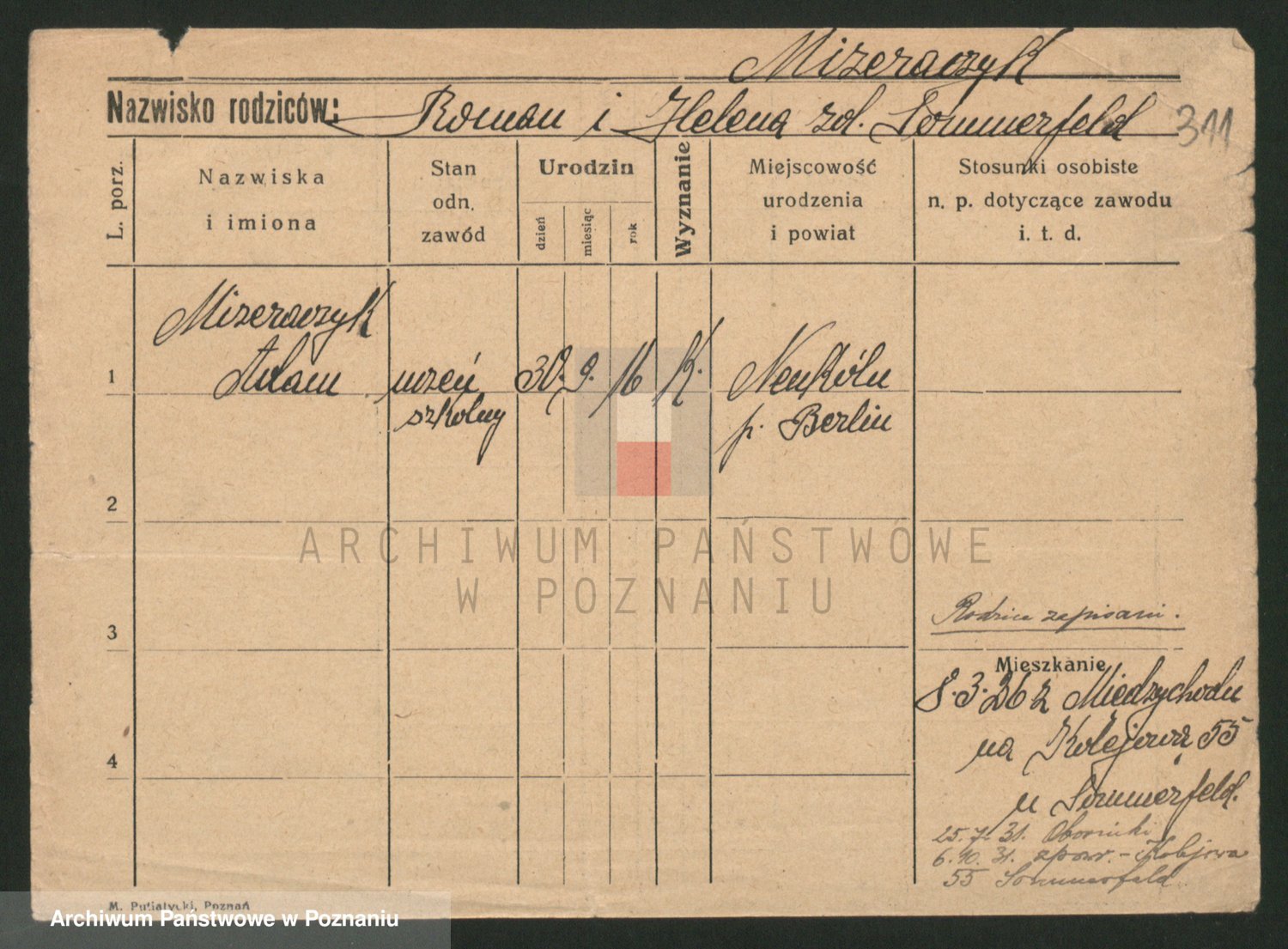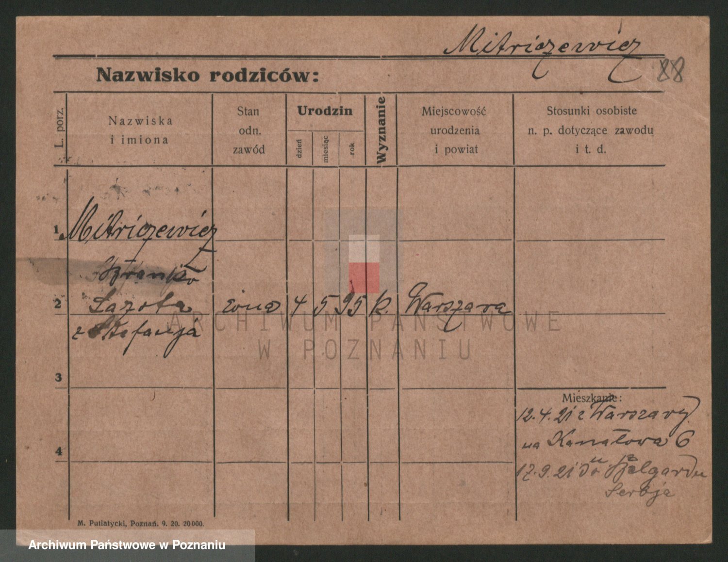 Podgląd karty osobowej dostępny jest po kliknięciu na nazwisko lub ikonkę karty. Można dokonywać powiększenia (ikony na górze) lub przechodzić między kolejnymi skanami (strzałki po bokach).