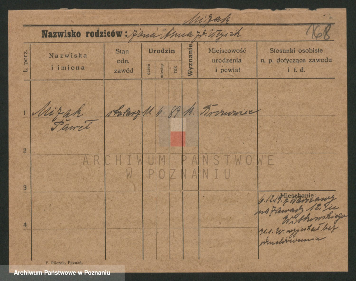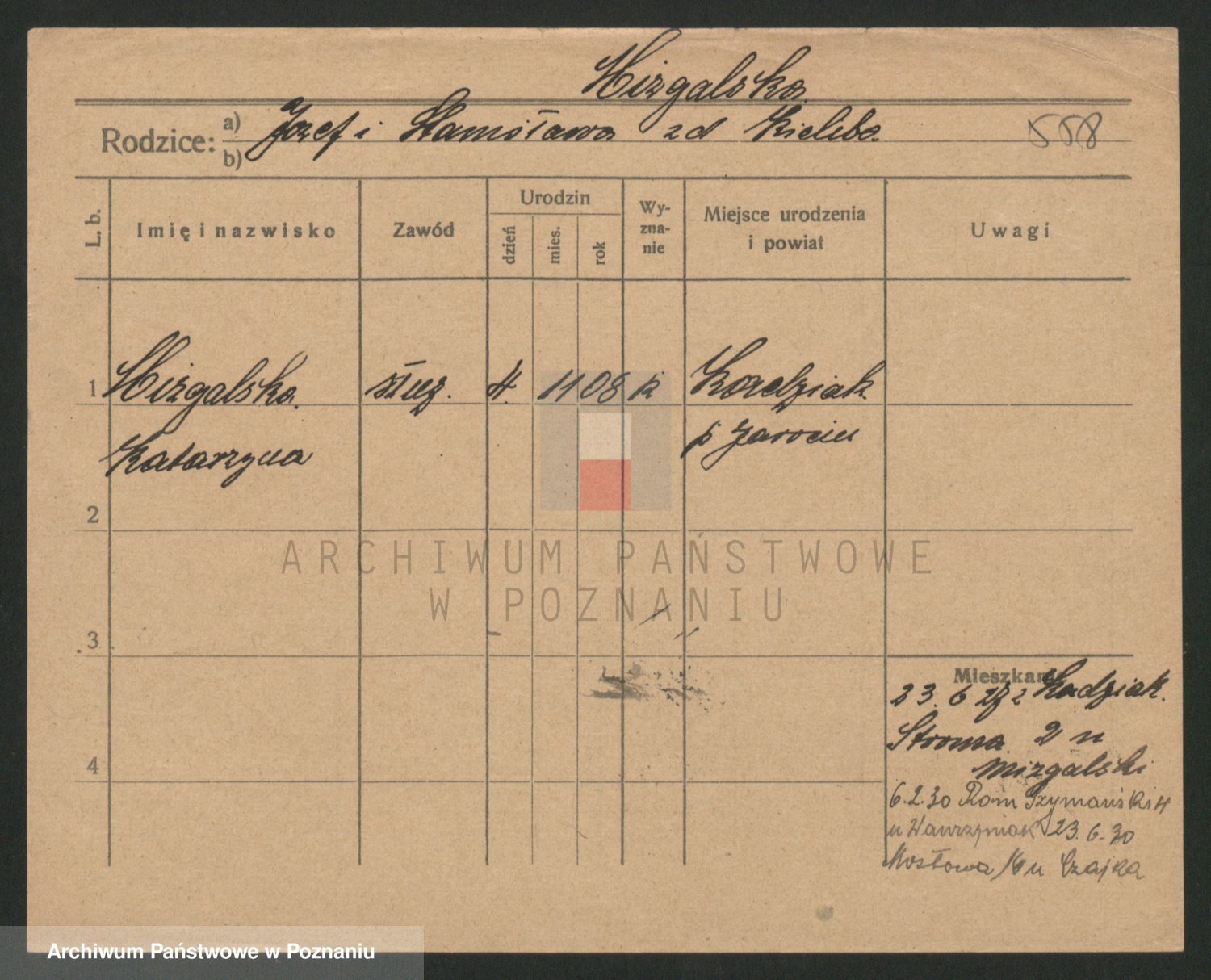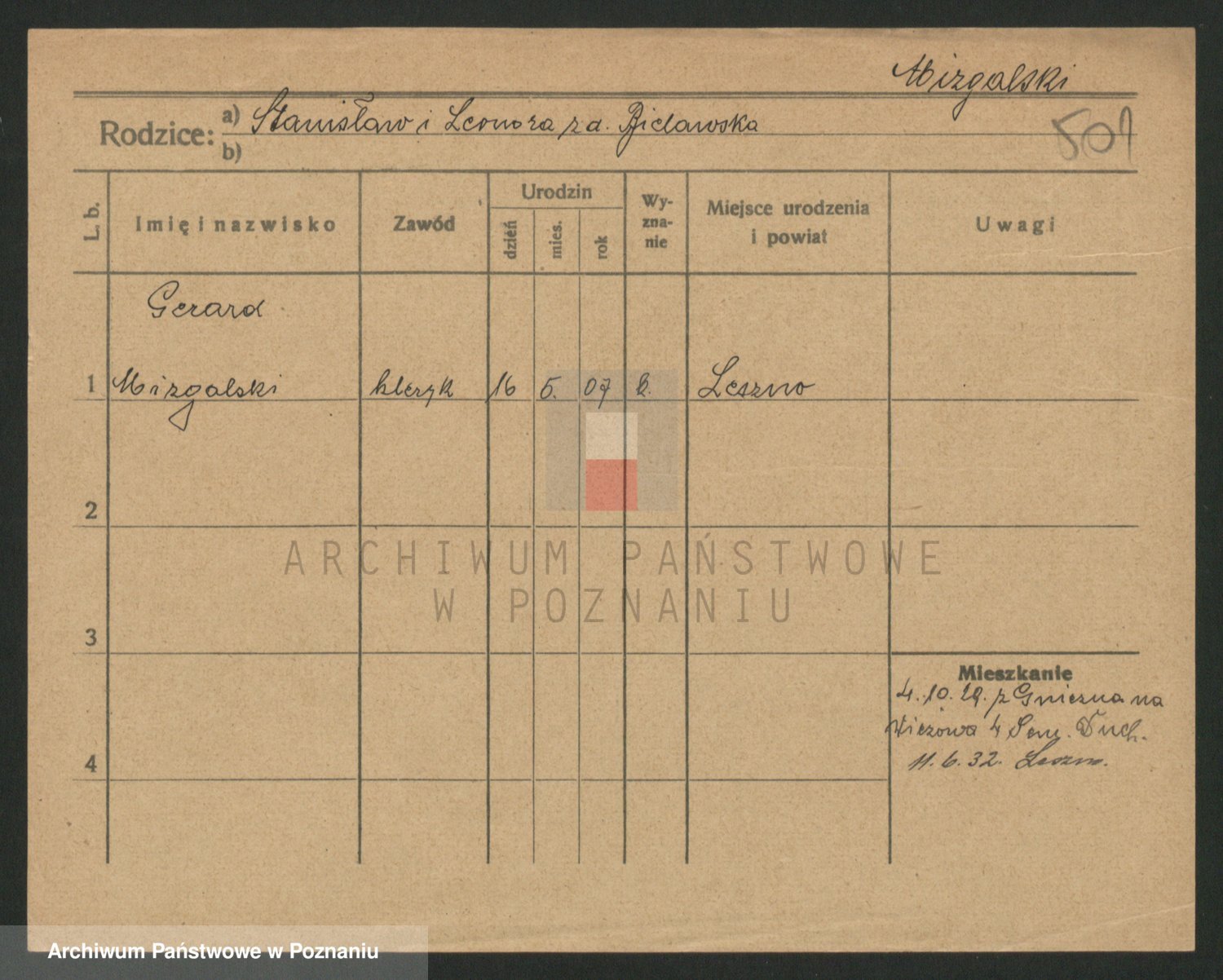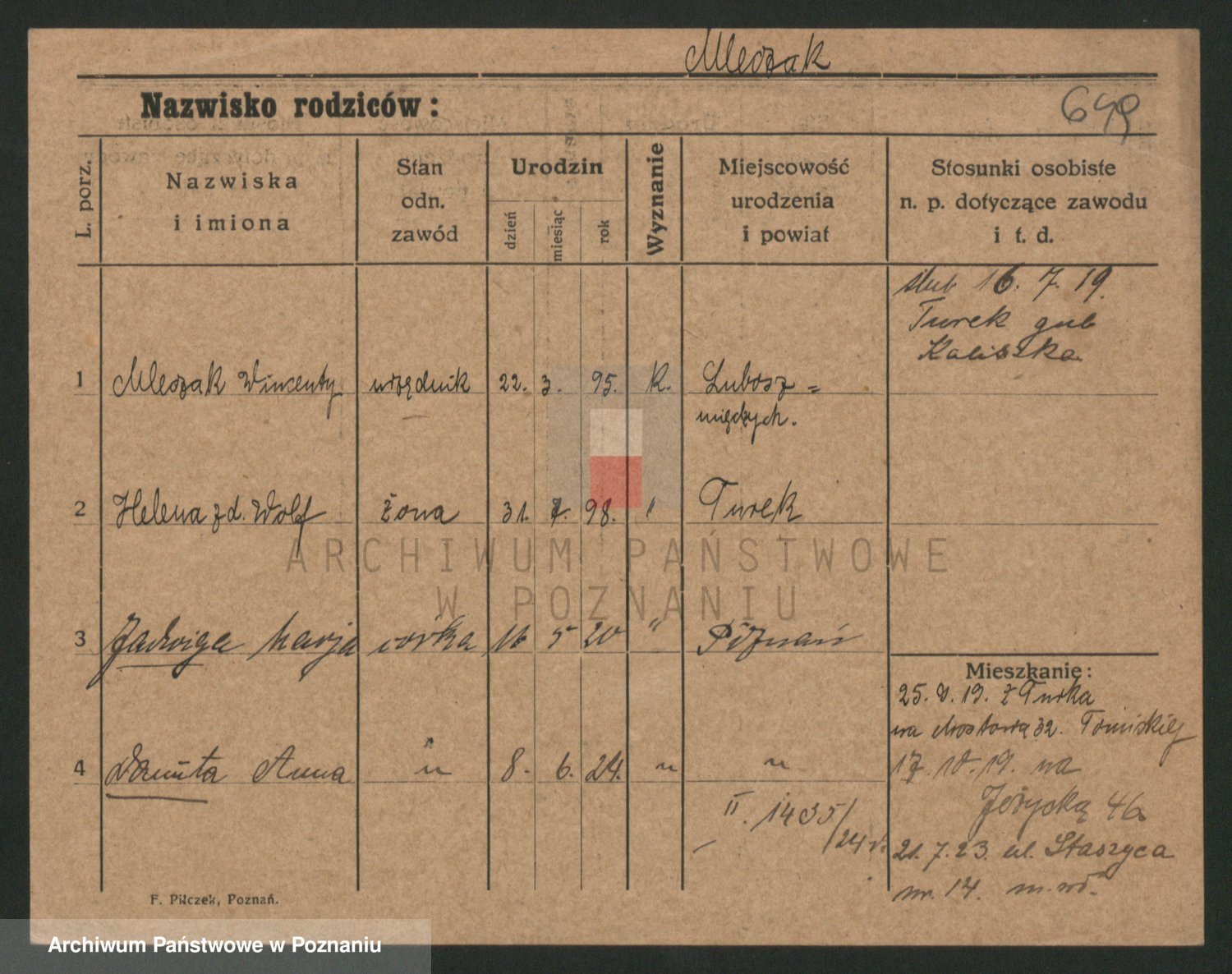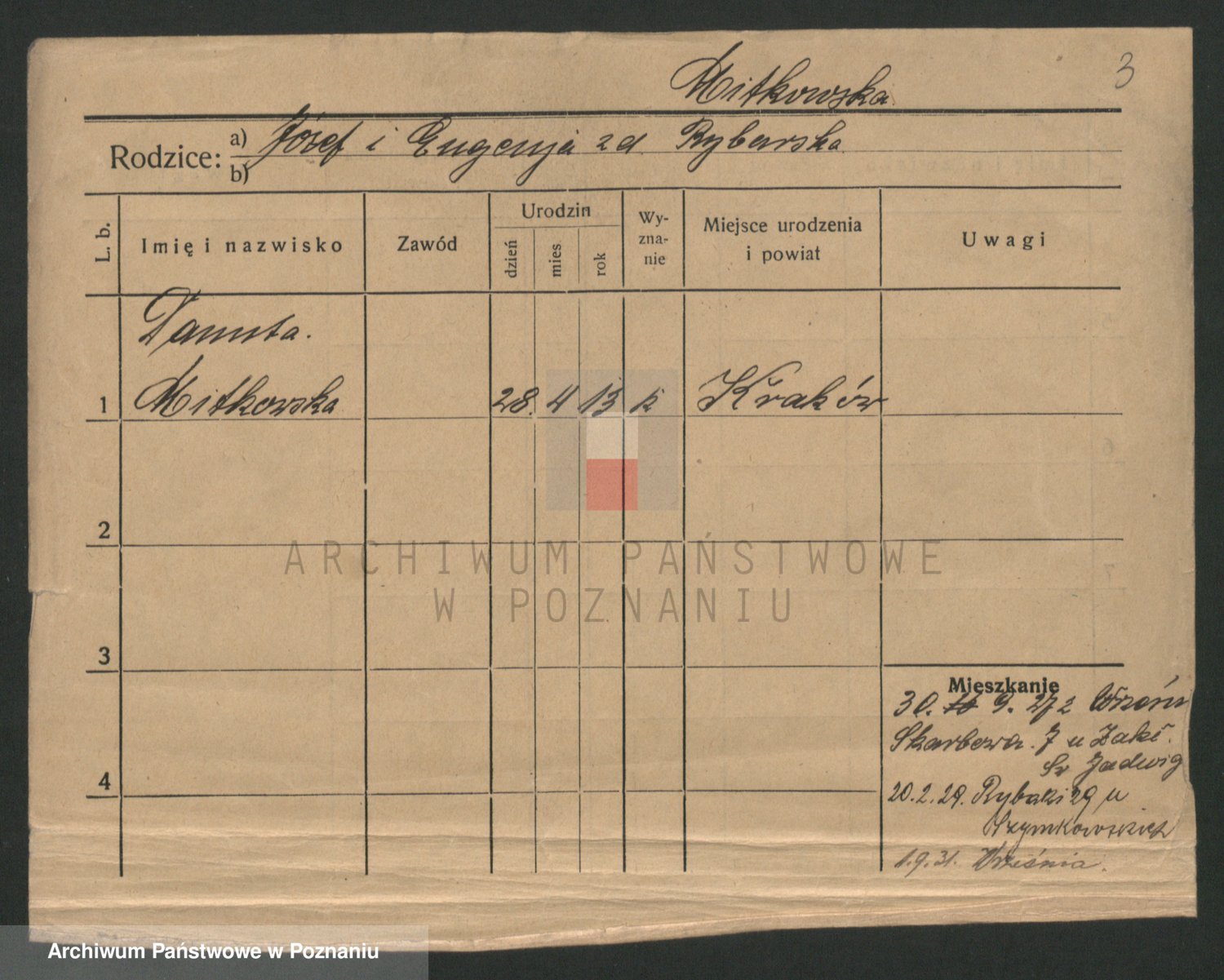 Podgląd karty osobowej dostępny jest po kliknięciu na nazwisko lub ikonkę karty. Można dokonywać powiększenia (ikony na górze) lub przechodzić między kolejnymi skanami (strzałki po bokach).