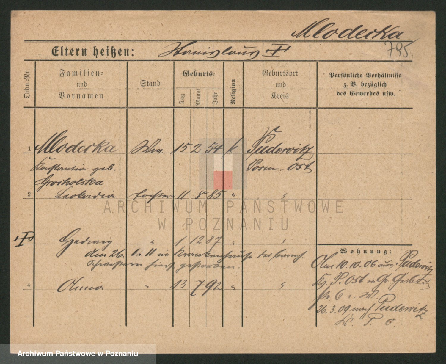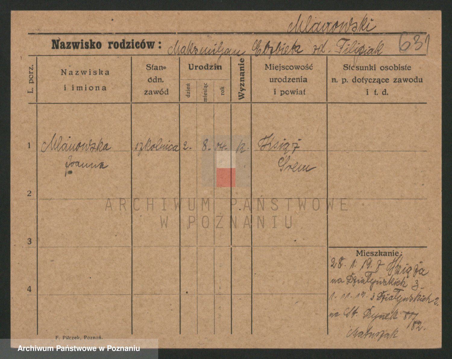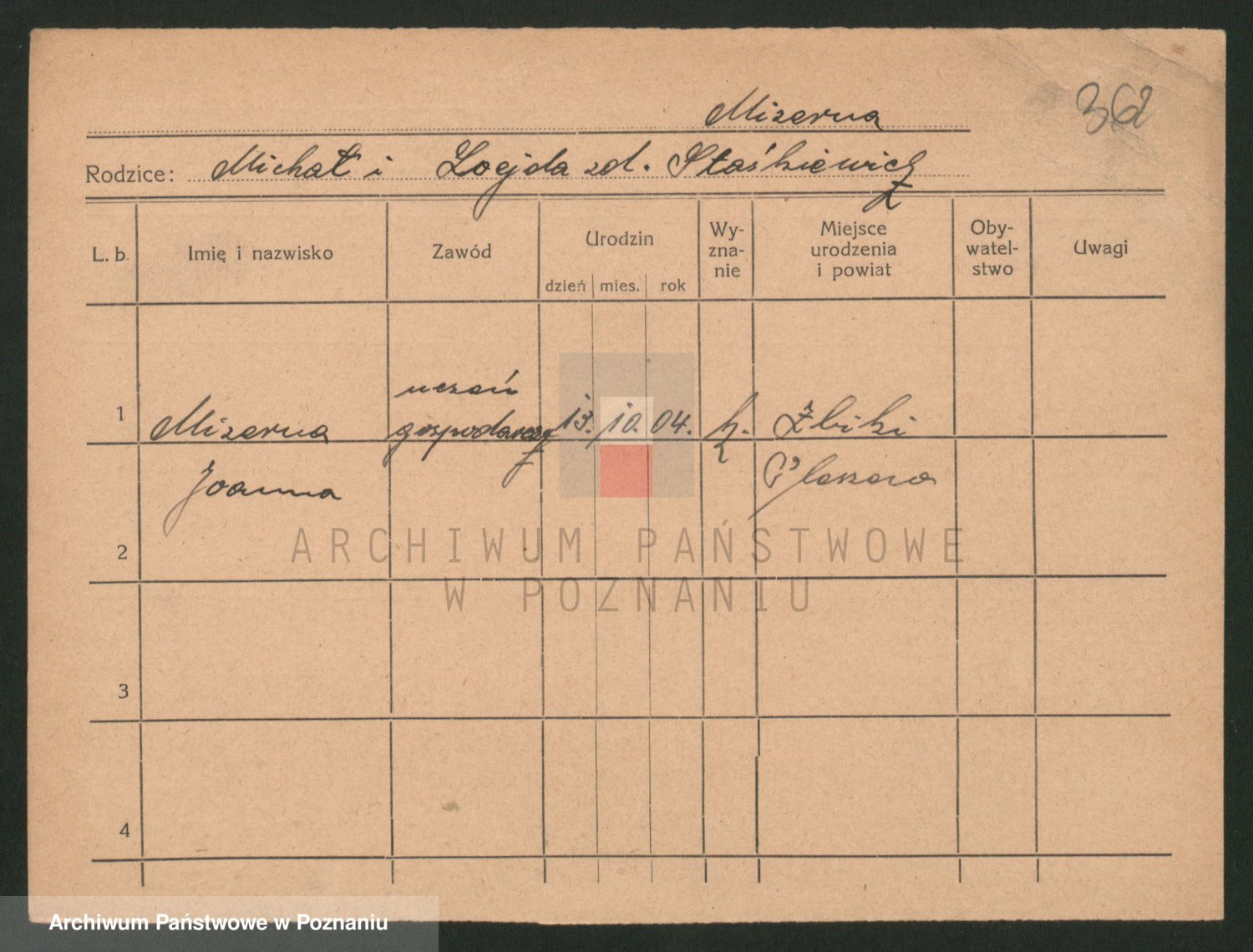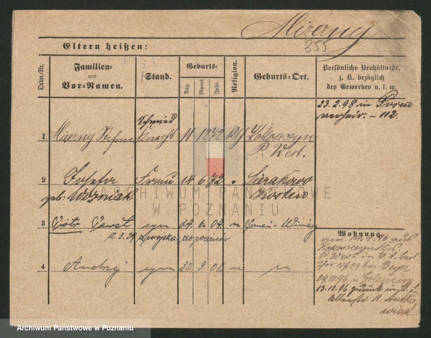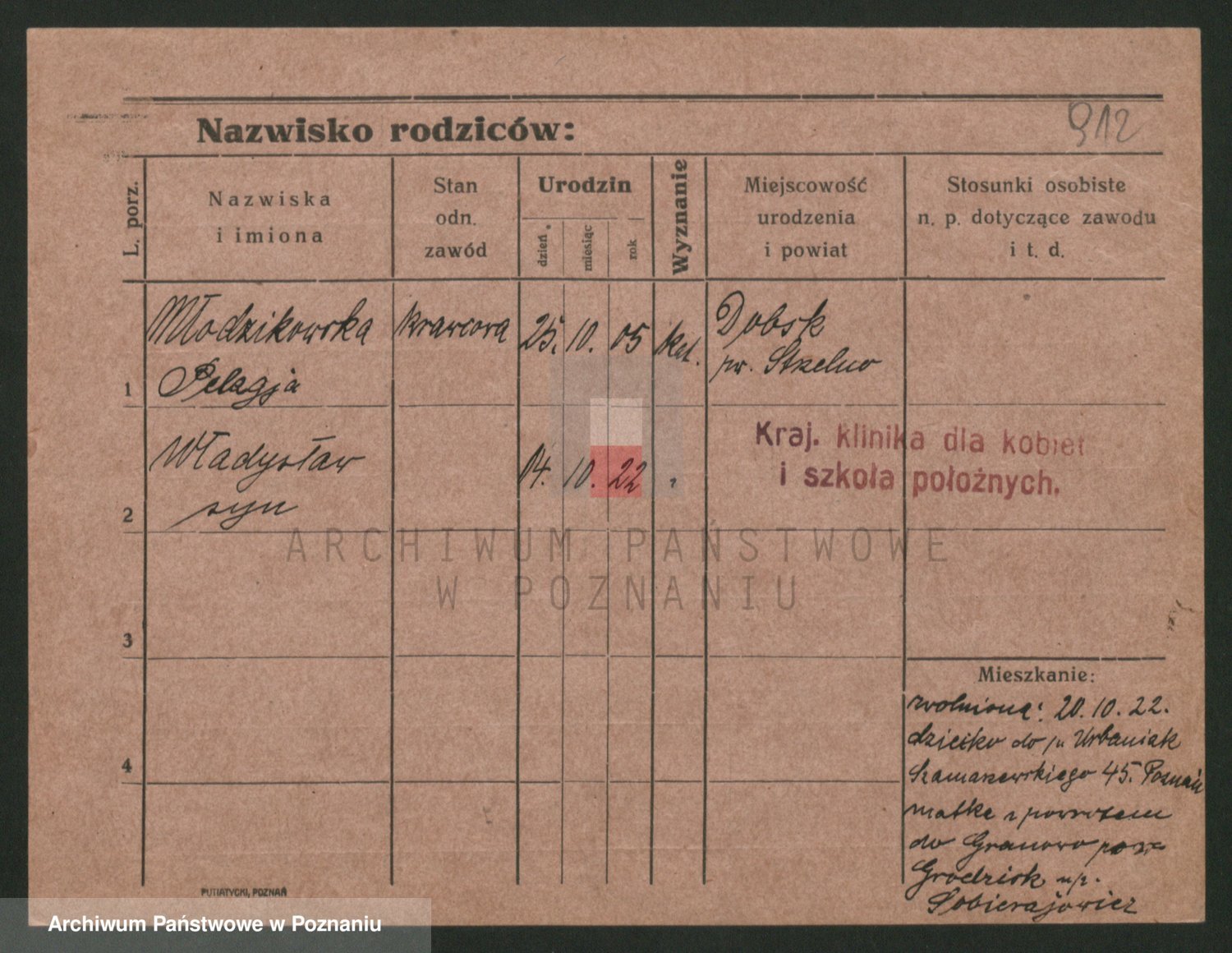 Podgląd karty osobowej dostępny jest po kliknięciu na nazwisko lub ikonkę karty. Można dokonywać powiększenia (ikony na górze) lub przechodzić między kolejnymi skanami (strzałki po bokach).