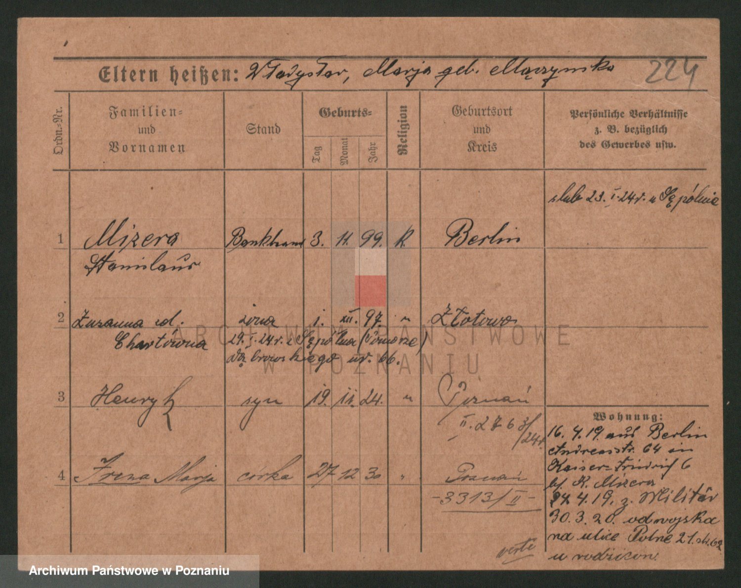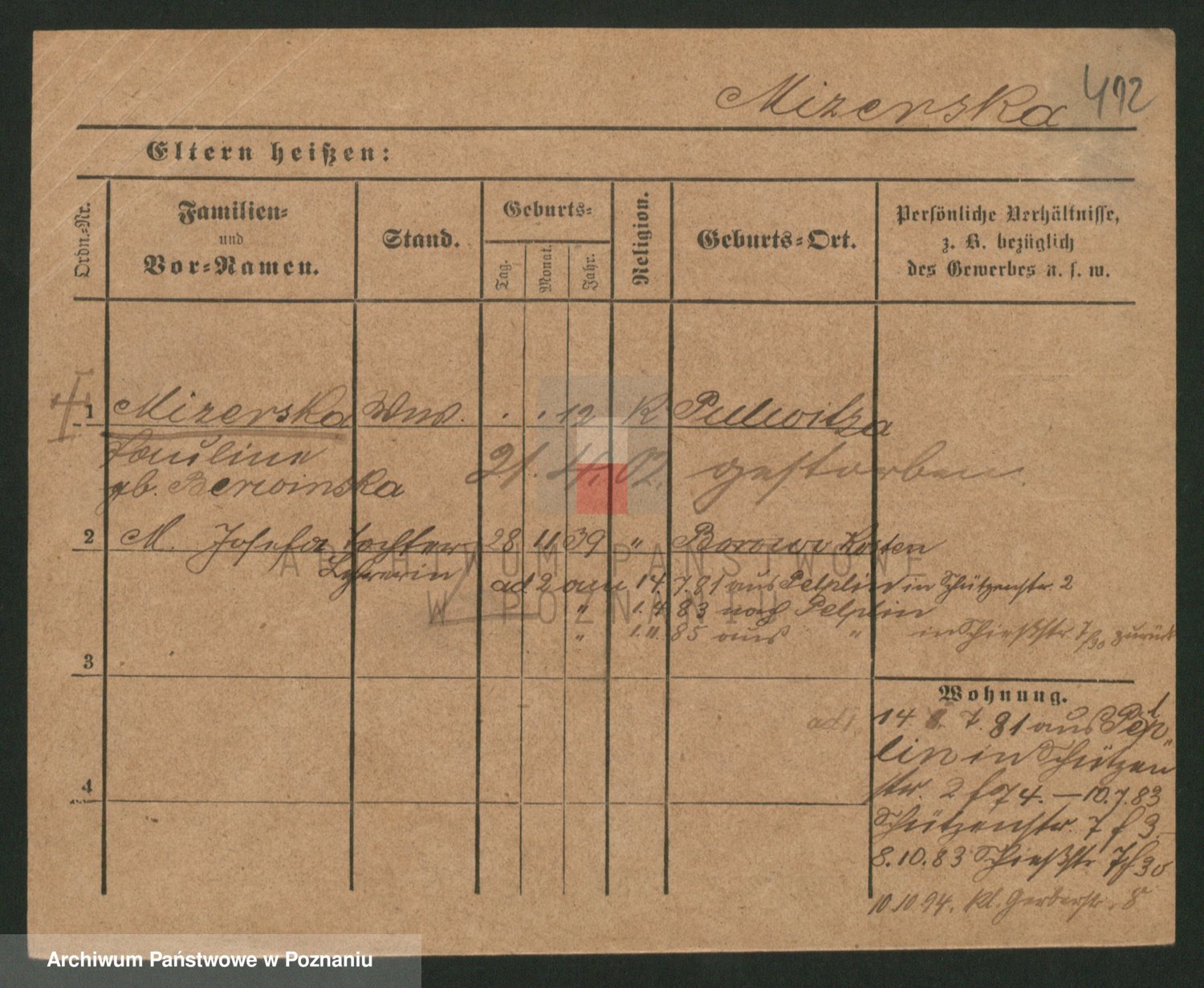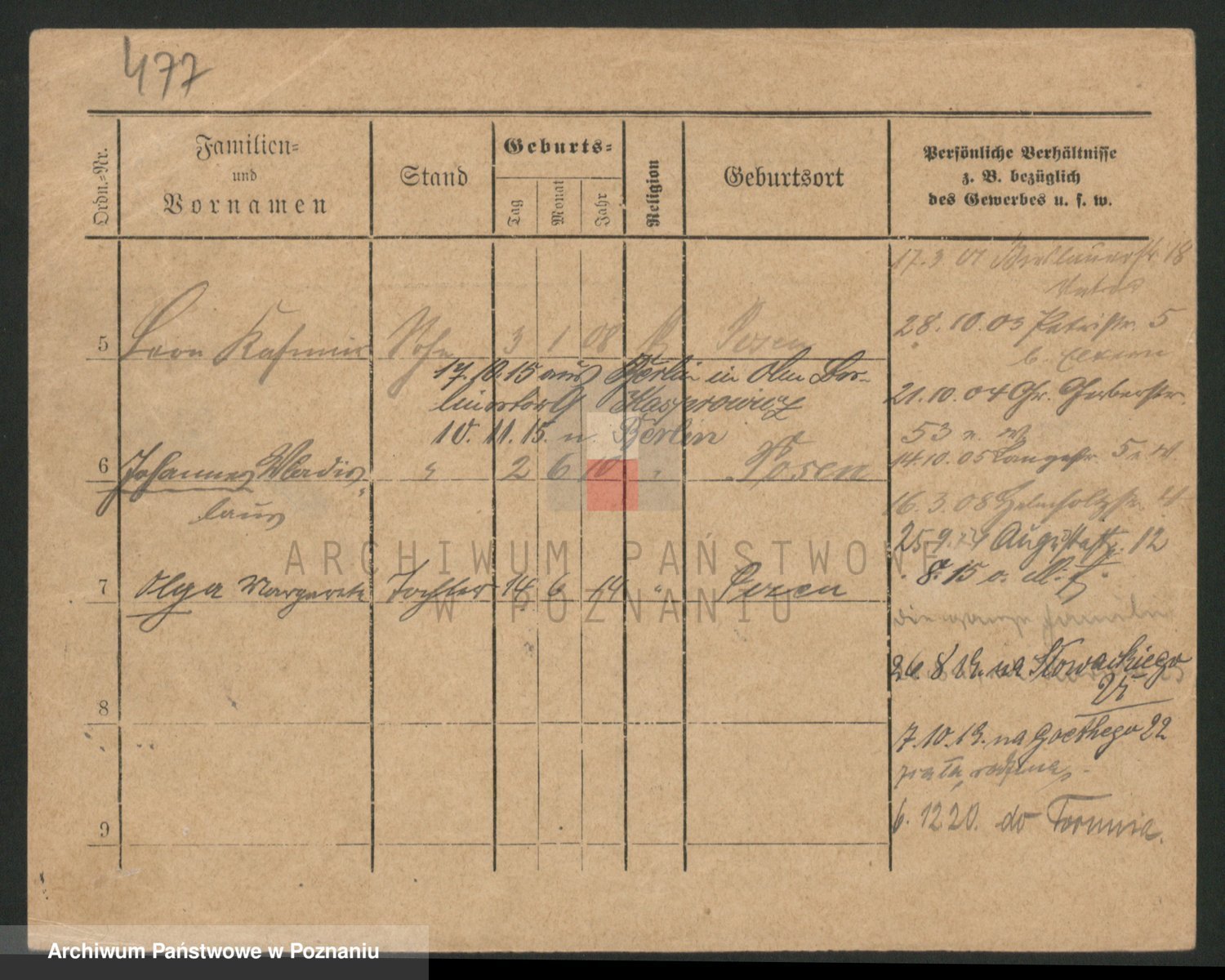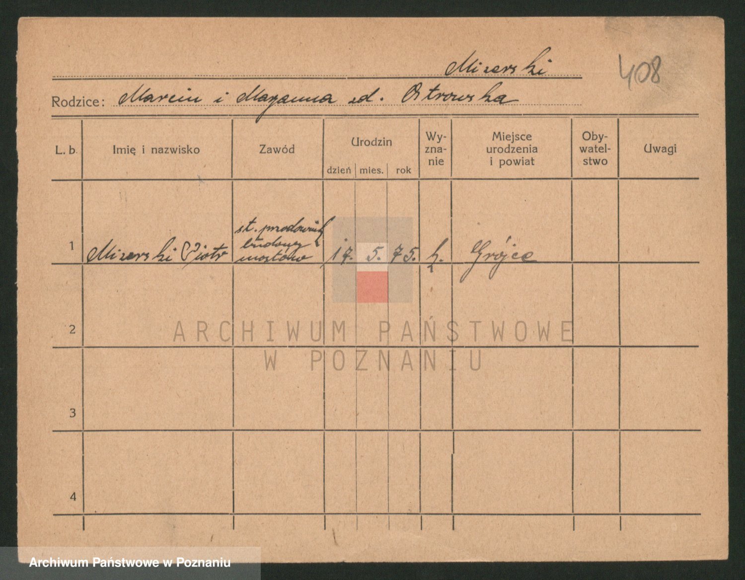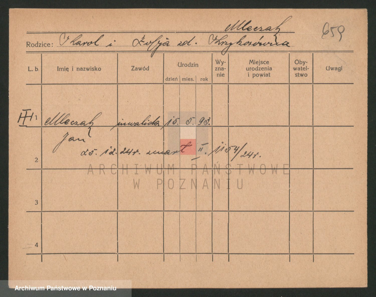 Podgląd karty osobowej dostępny jest po kliknięciu na nazwisko lub ikonkę karty. Można dokonywać powiększenia (ikony na górze) lub przechodzić między kolejnymi skanami (strzałki po bokach).