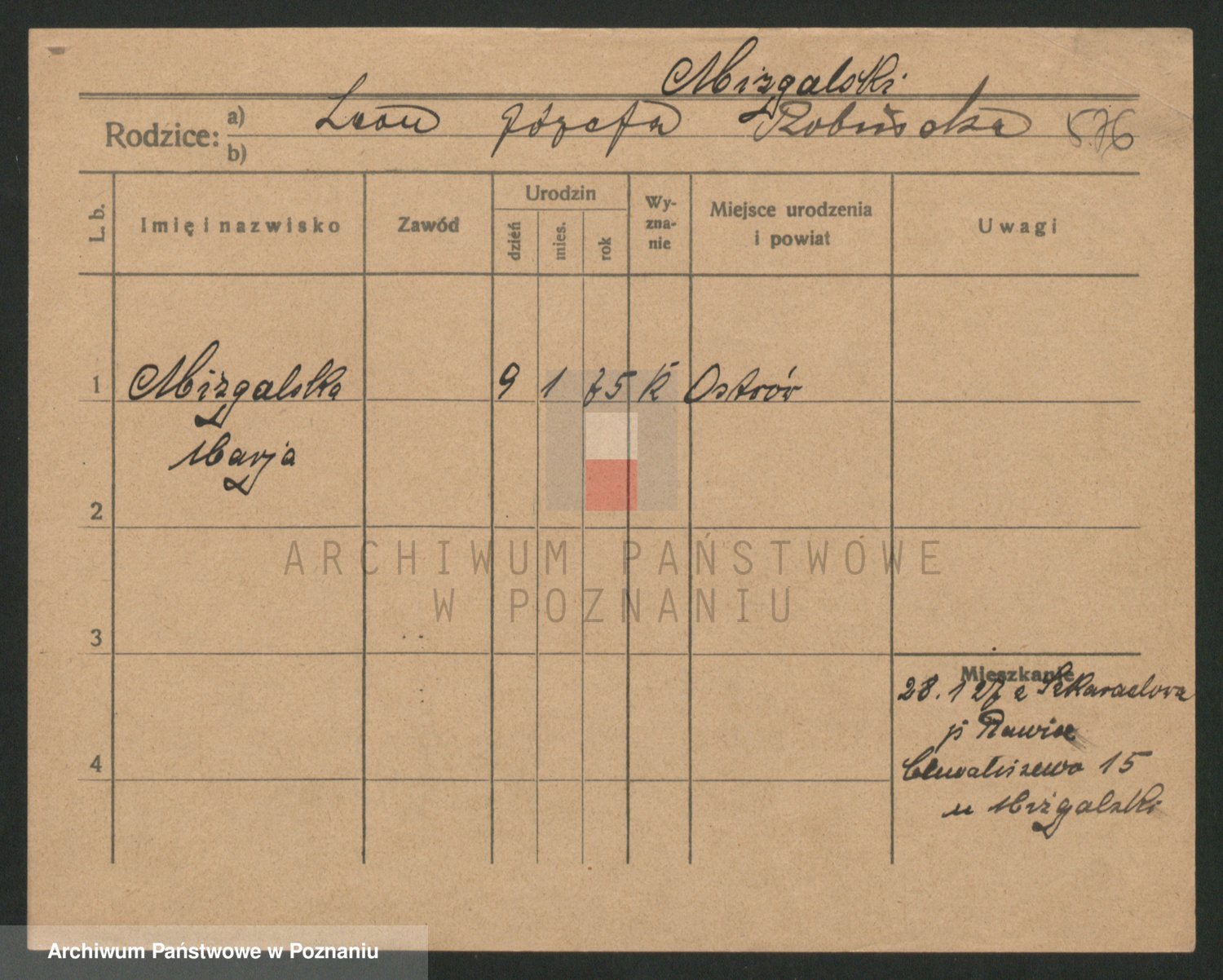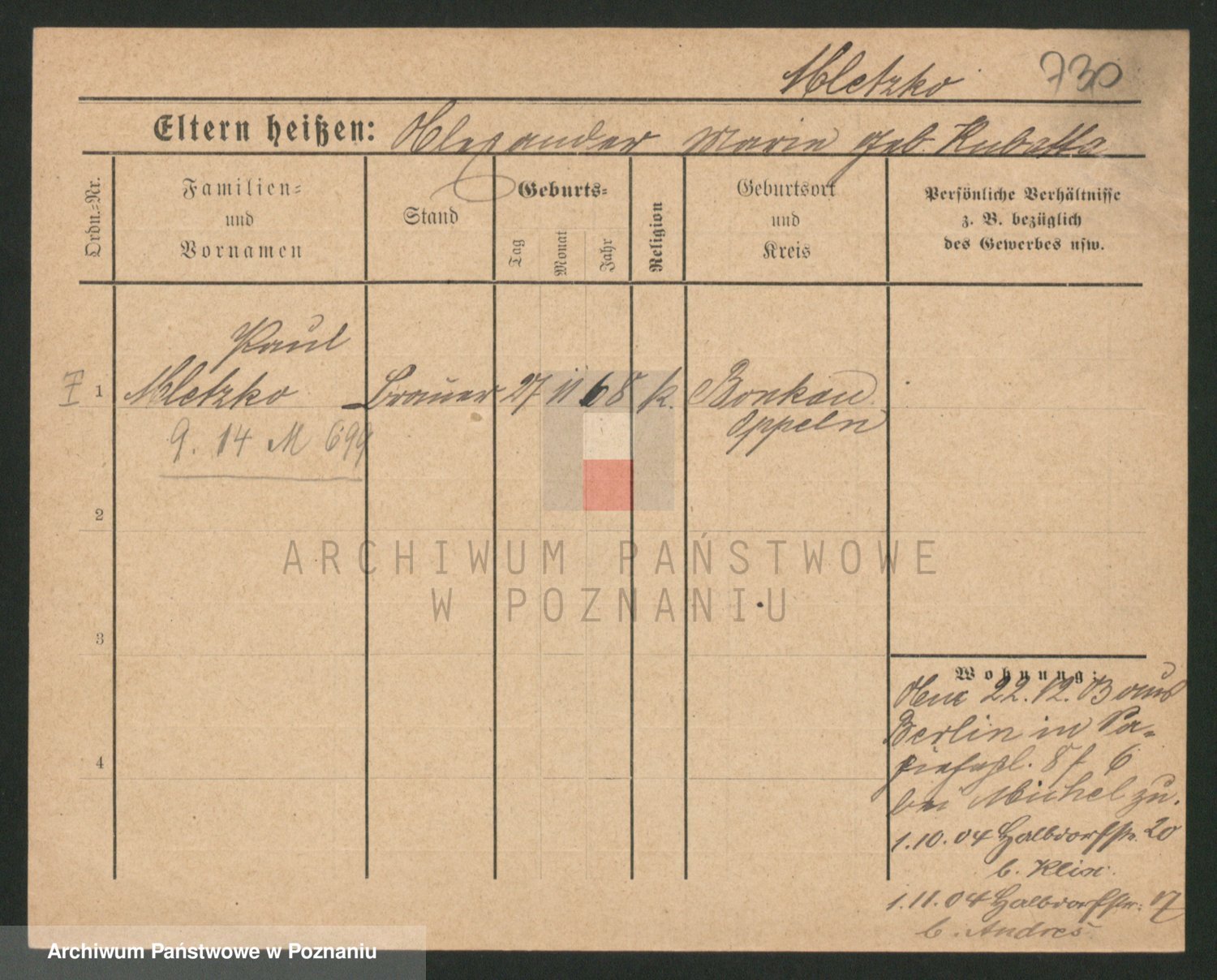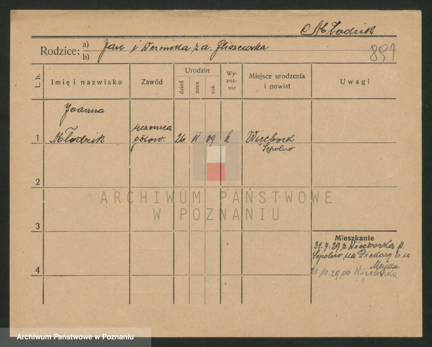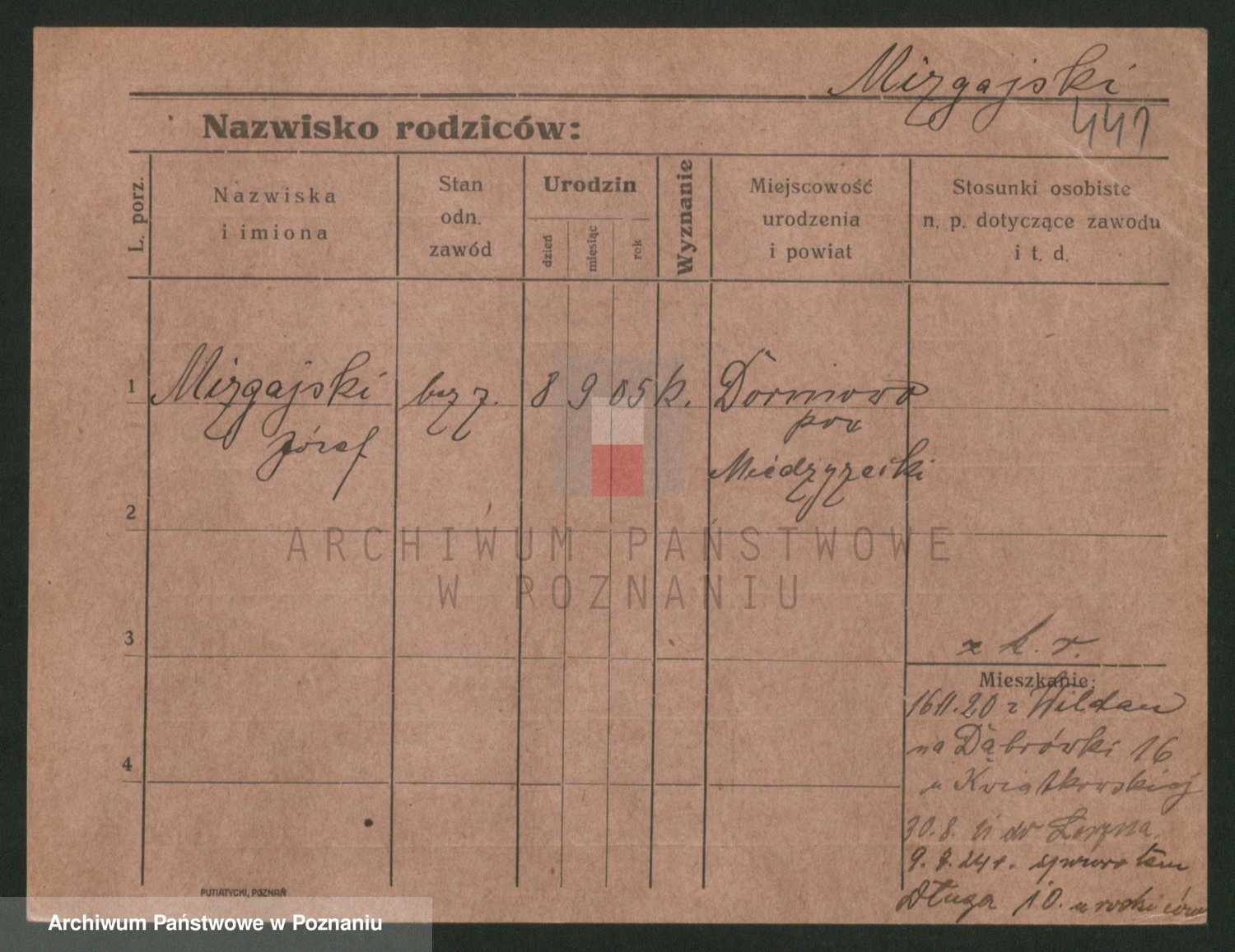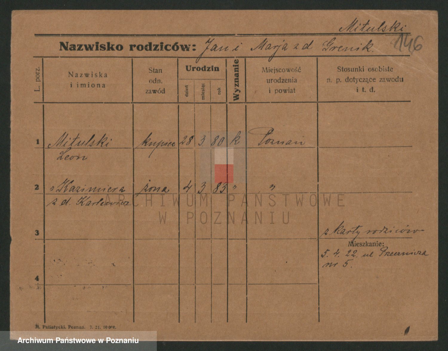 Podgląd karty osobowej dostępny jest po kliknięciu na nazwisko lub ikonkę karty. Można dokonywać powiększenia (ikony na górze) lub przechodzić między kolejnymi skanami (strzałki po bokach).