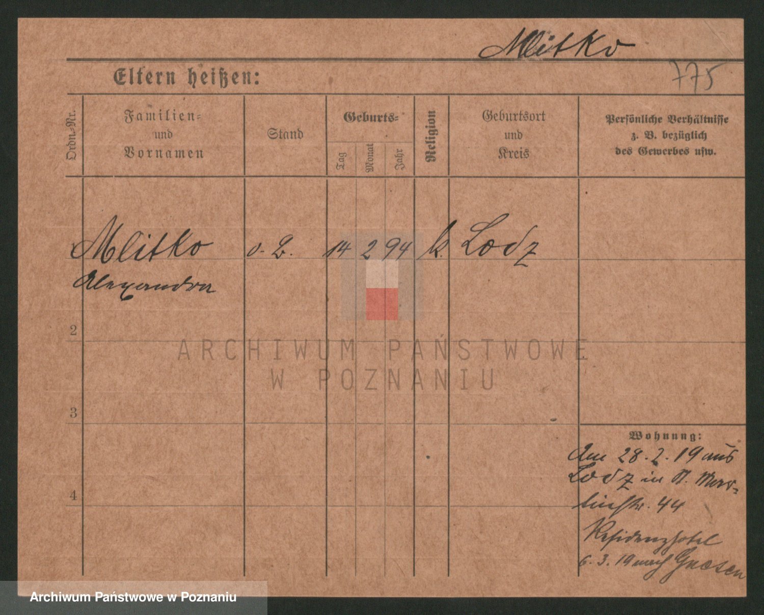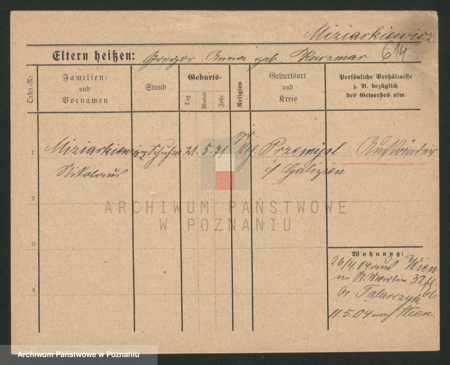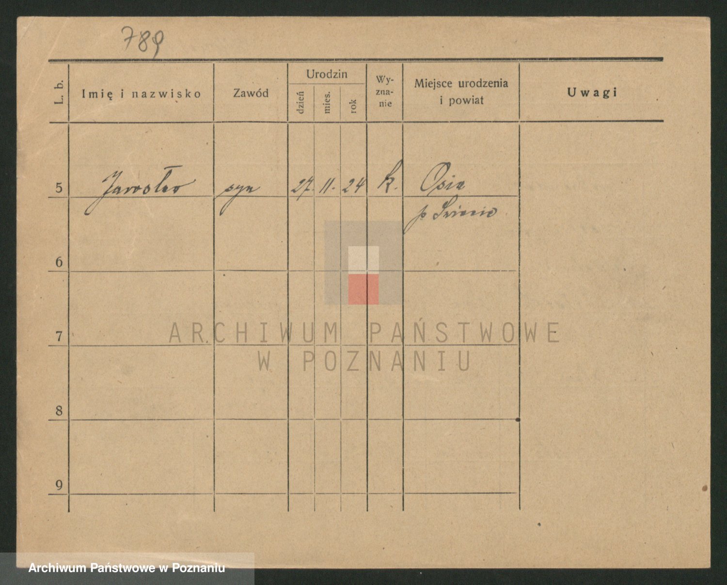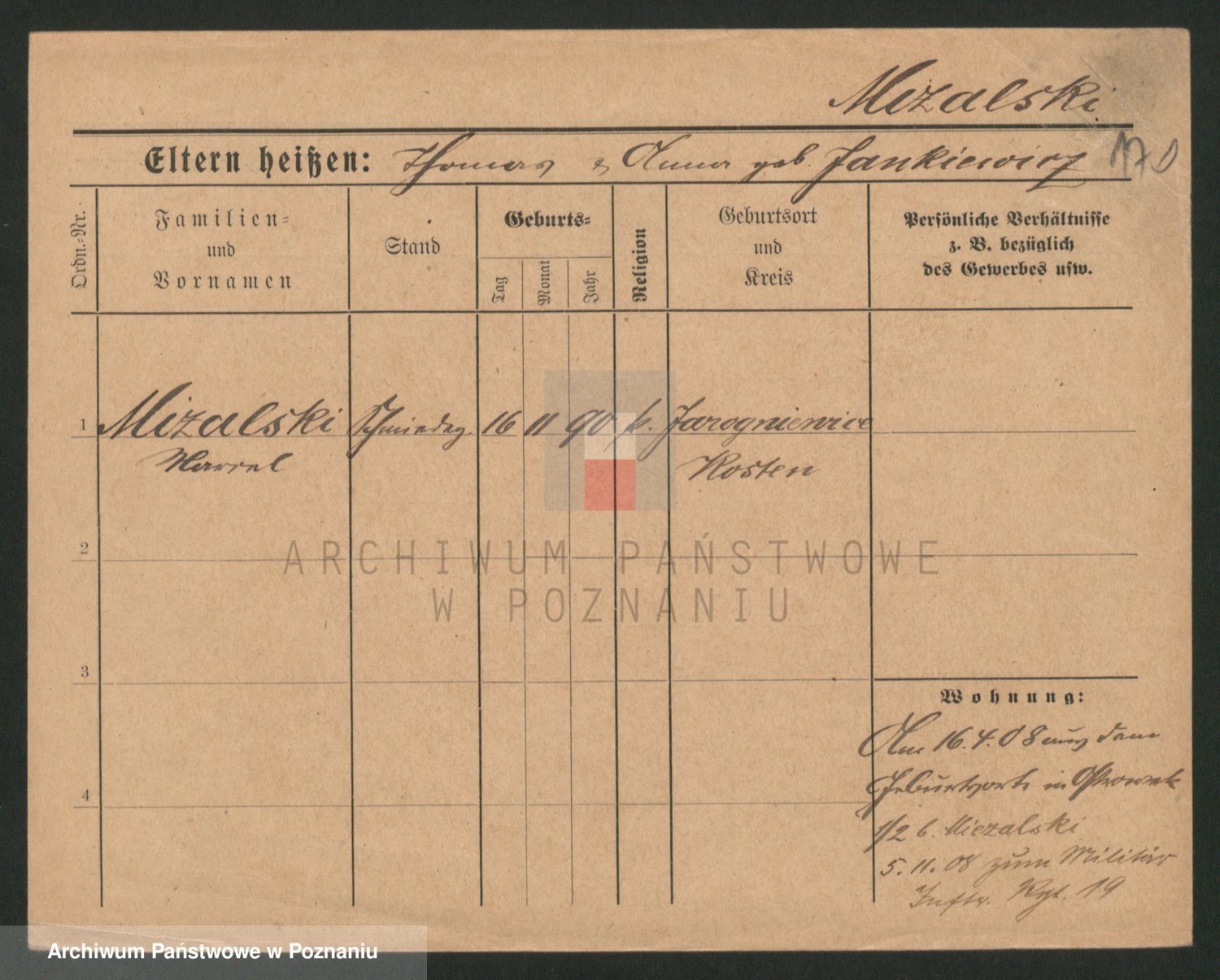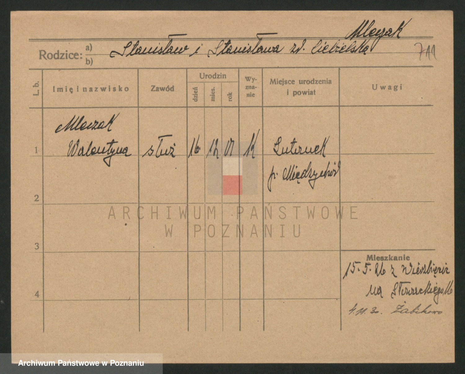 Podgląd karty osobowej dostępny jest po kliknięciu na nazwisko lub ikonkę karty. Można dokonywać powiększenia (ikony na górze) lub przechodzić między kolejnymi skanami (strzałki po bokach).