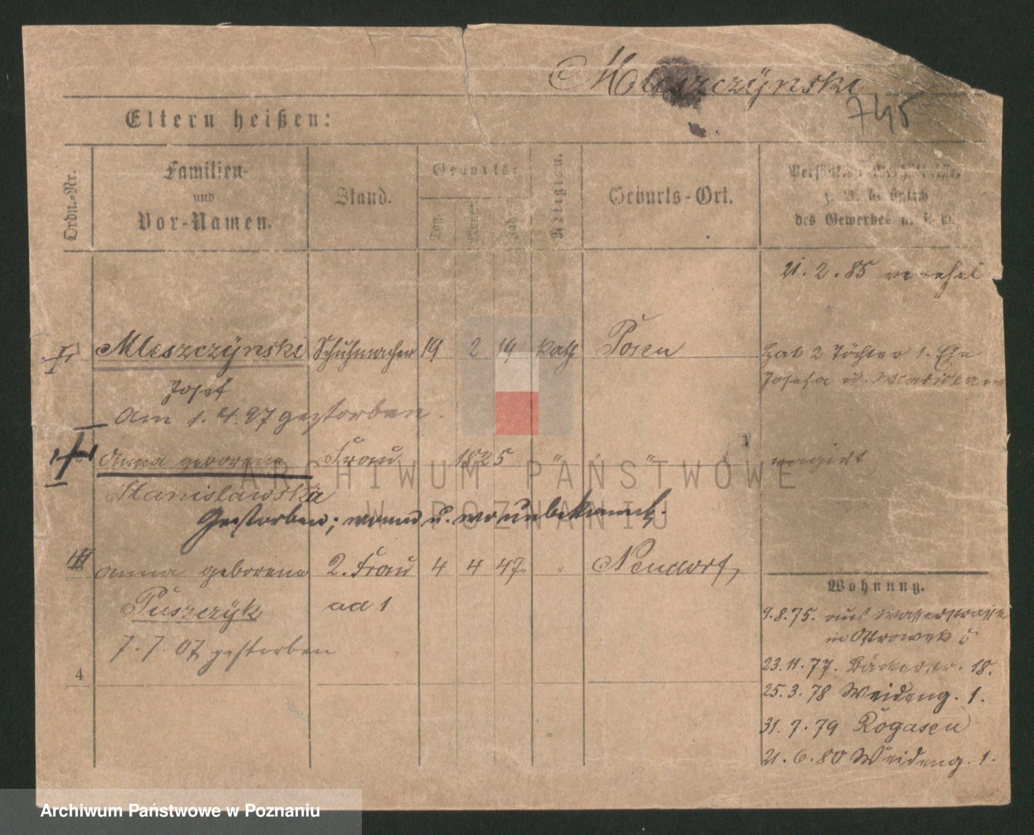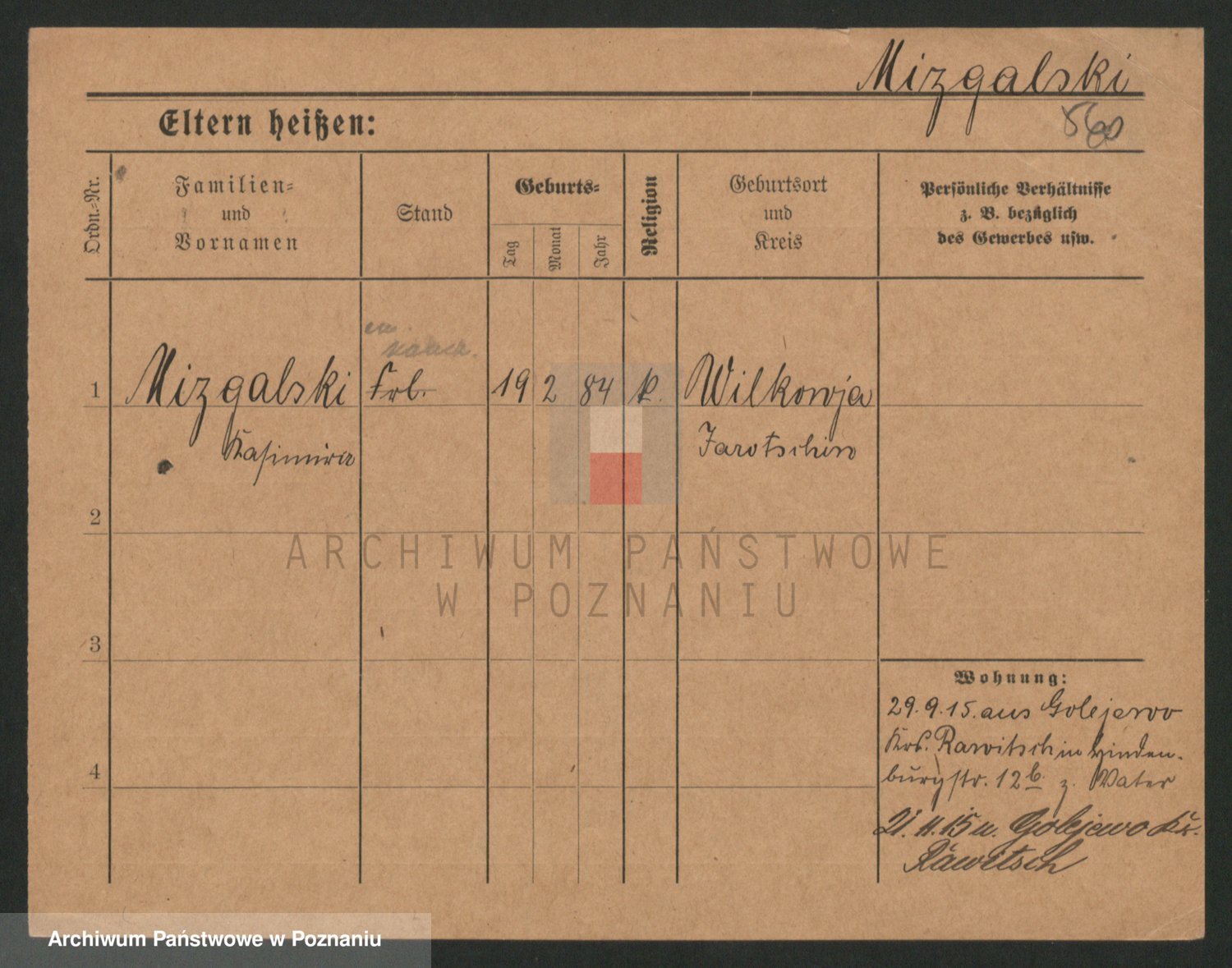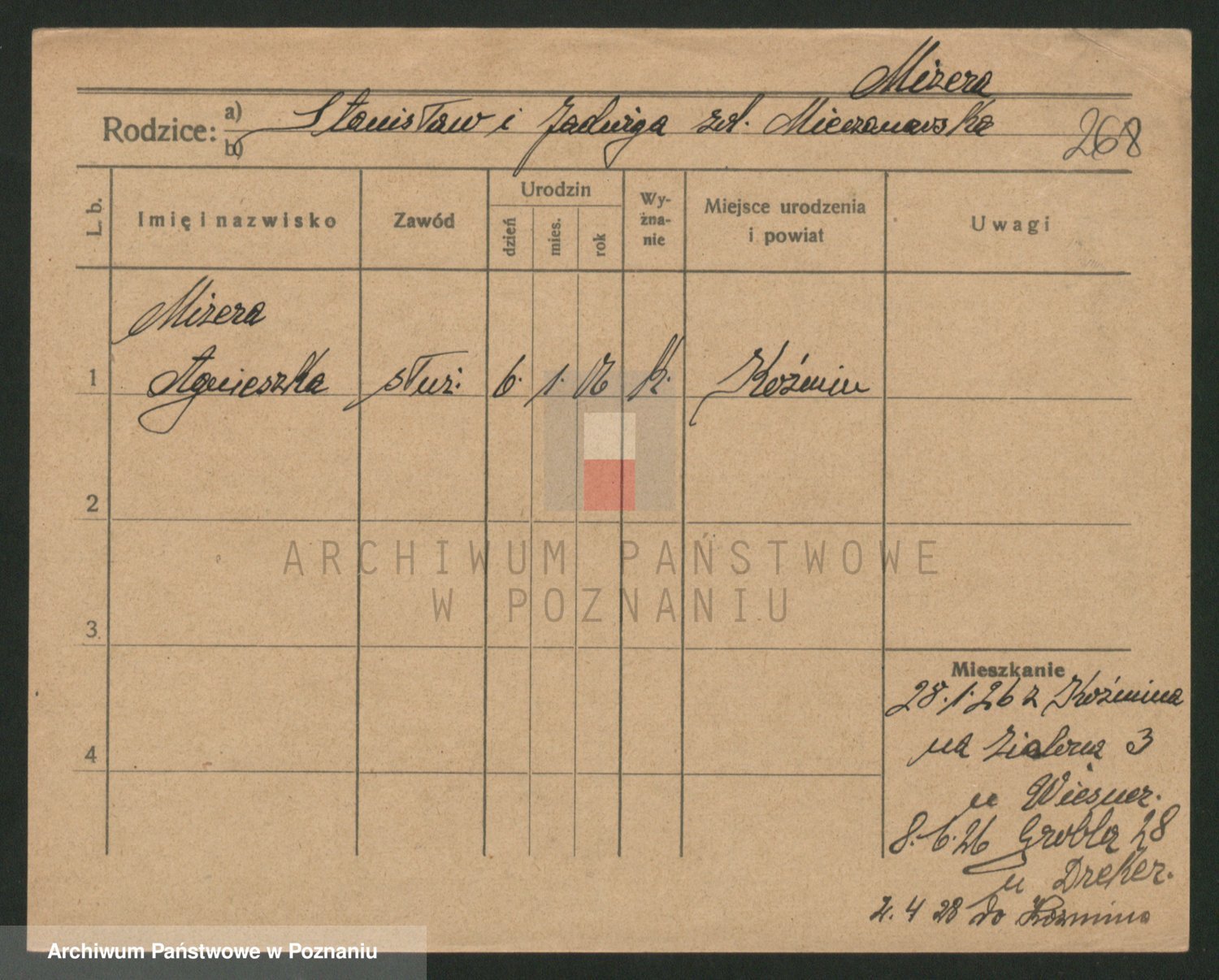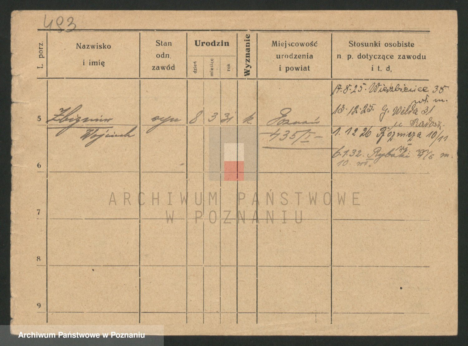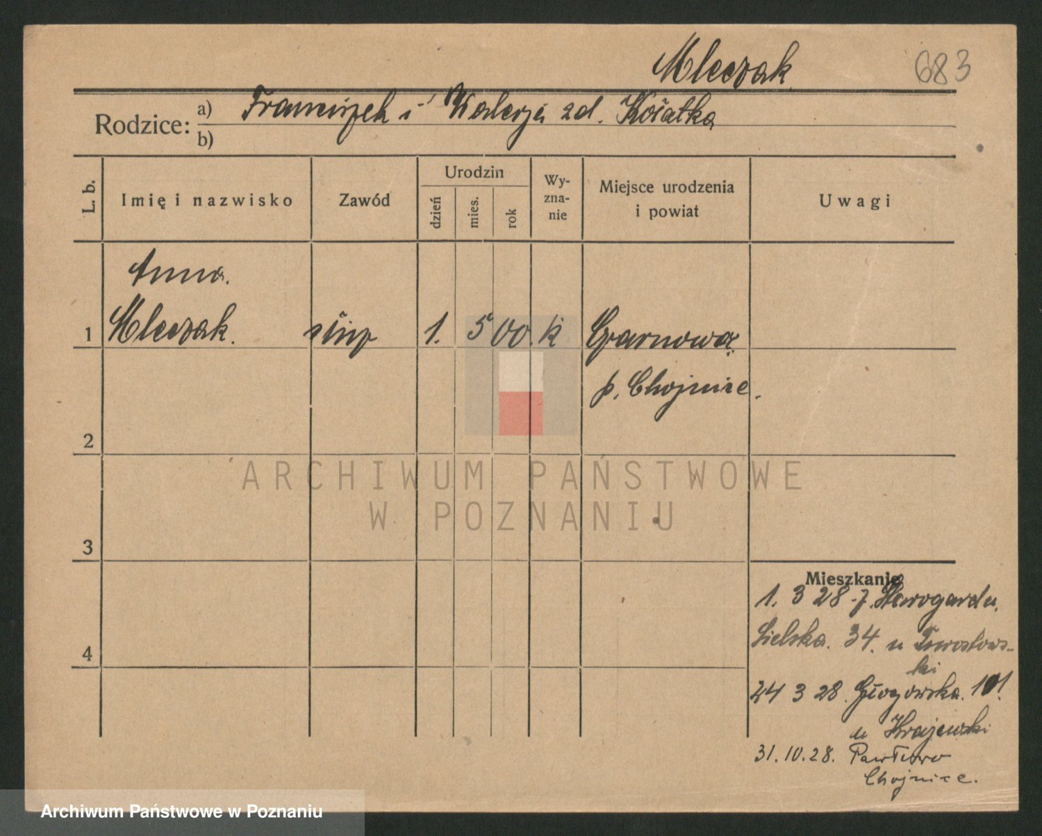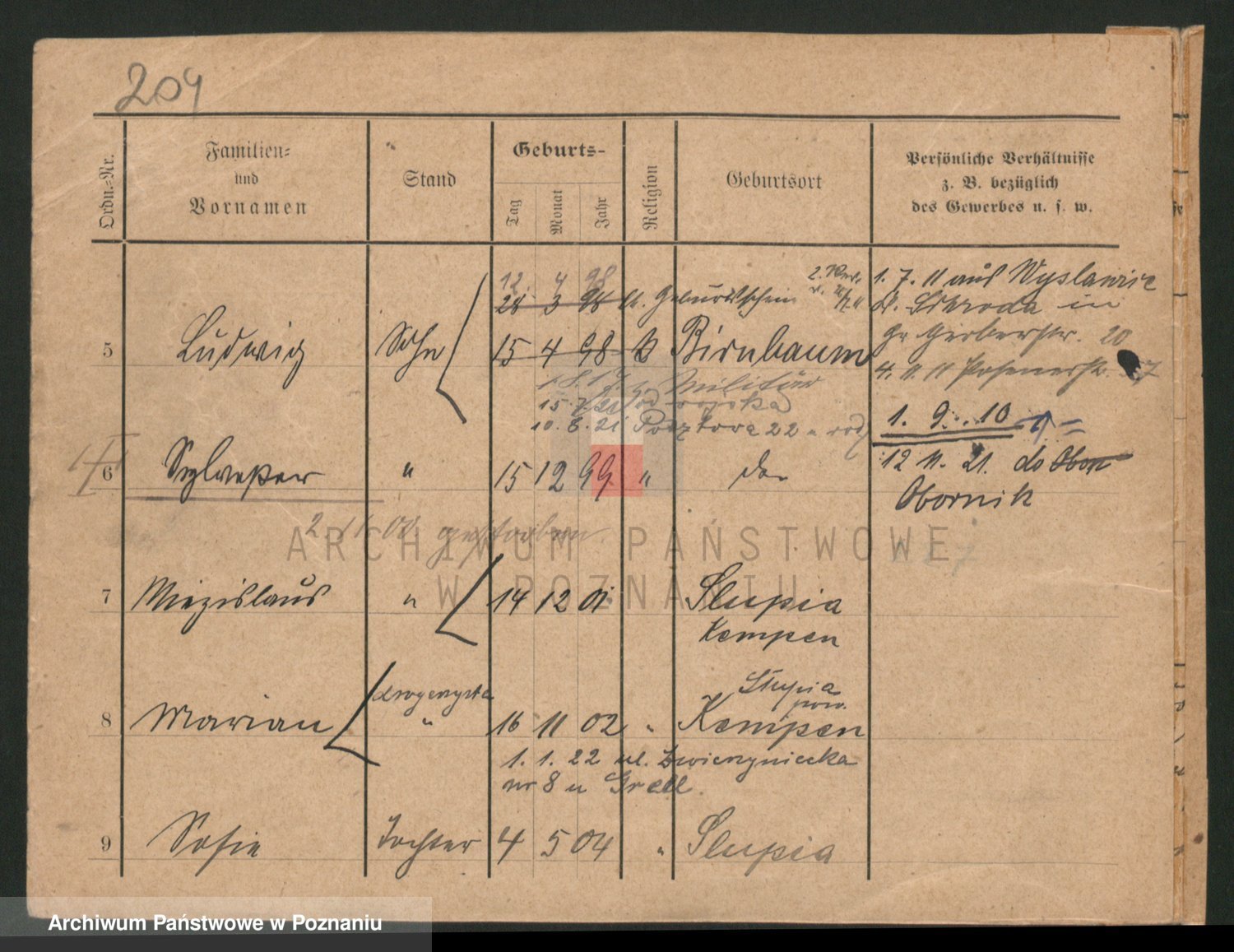 Podgląd karty osobowej dostępny jest po kliknięciu na nazwisko lub ikonkę karty. Można dokonywać powiększenia (ikony na górze) lub przechodzić między kolejnymi skanami (strzałki po bokach).