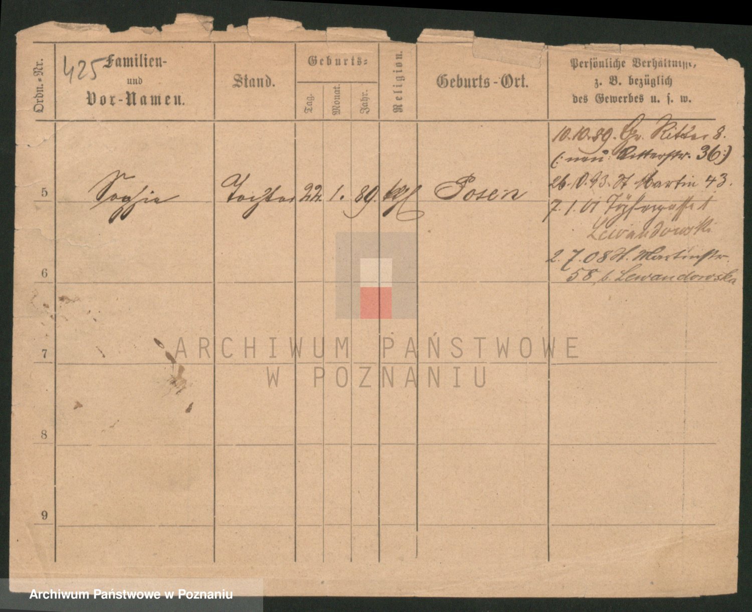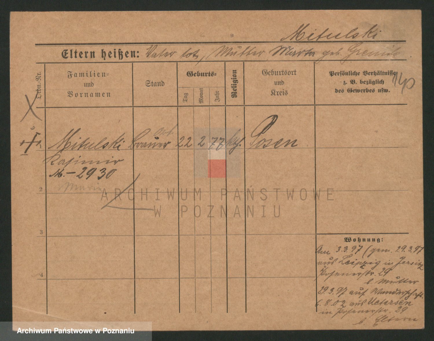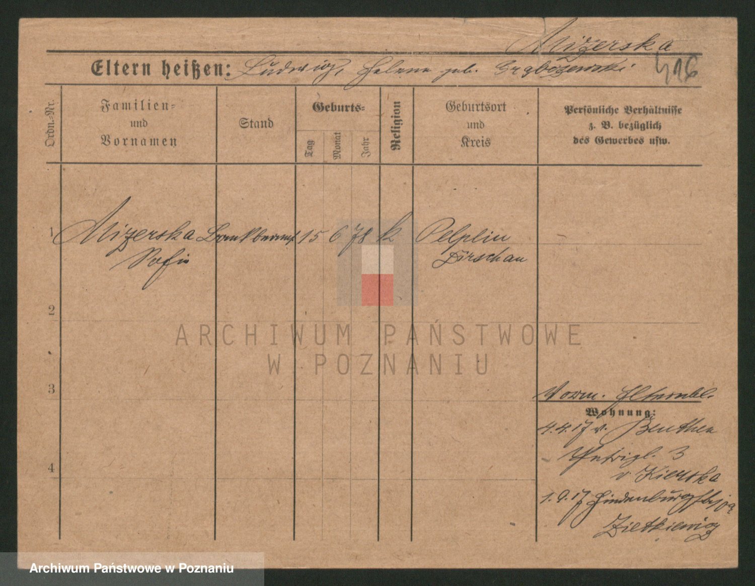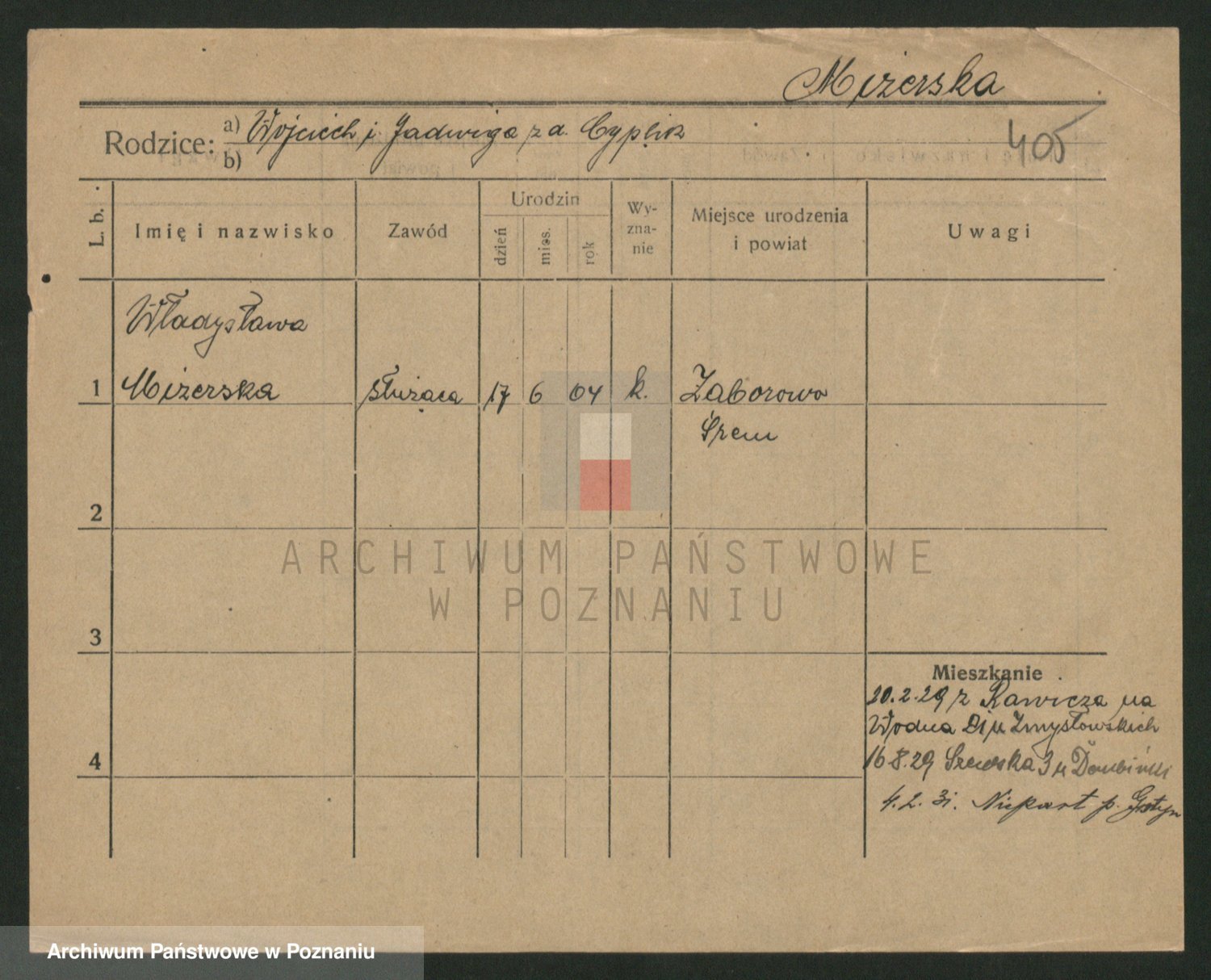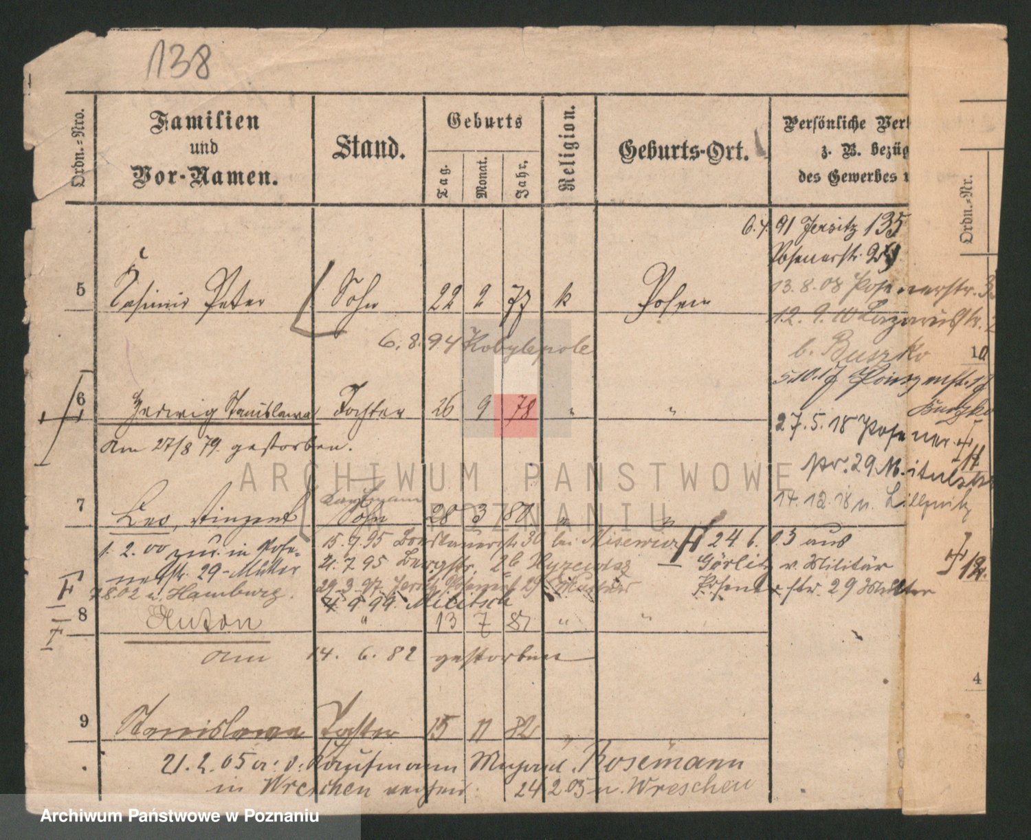 Podgląd karty osobowej dostępny jest po kliknięciu na nazwisko lub ikonkę karty. Można dokonywać powiększenia (ikony na górze) lub przechodzić między kolejnymi skanami (strzałki po bokach).