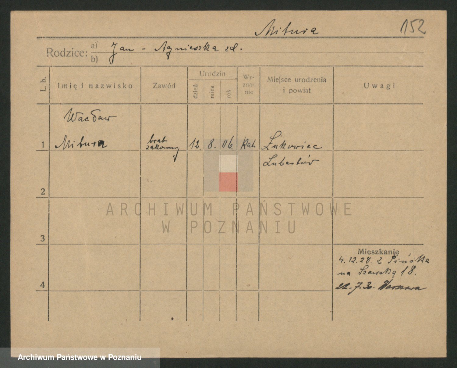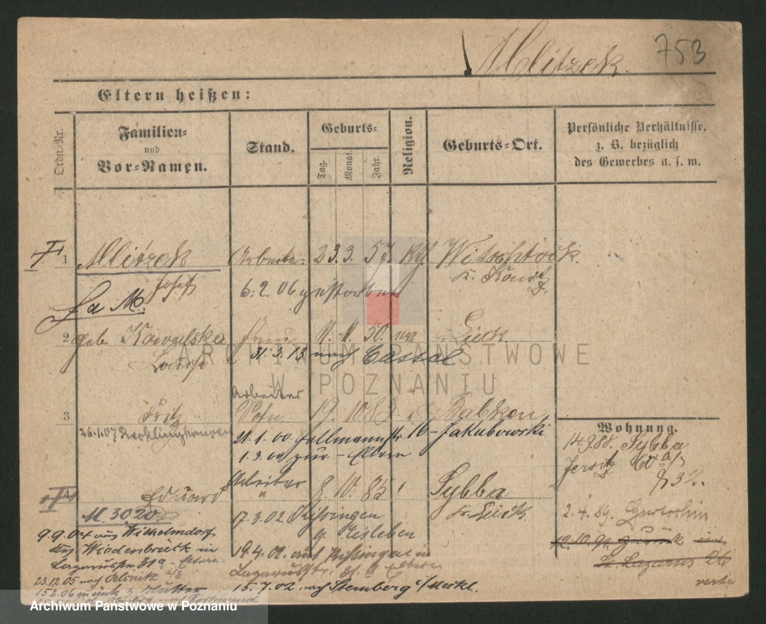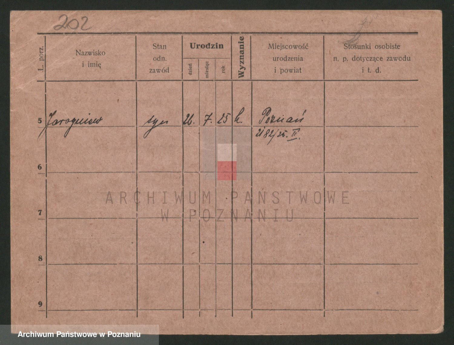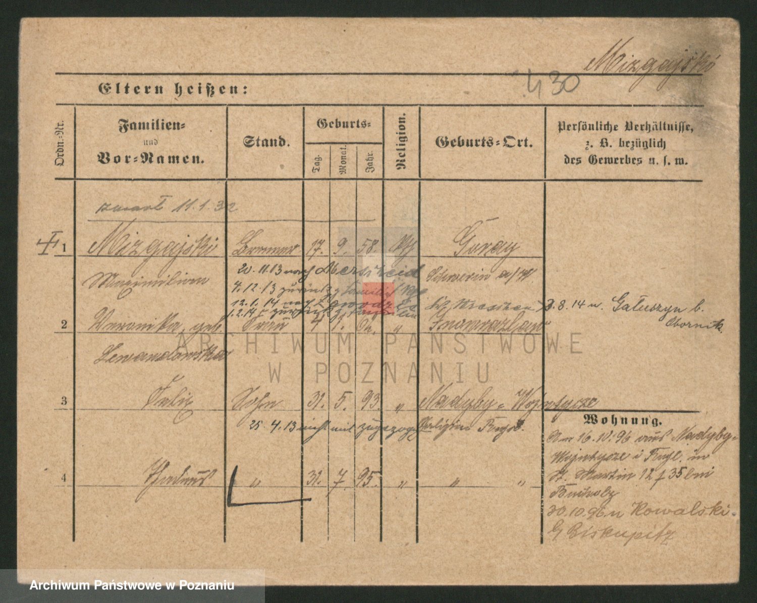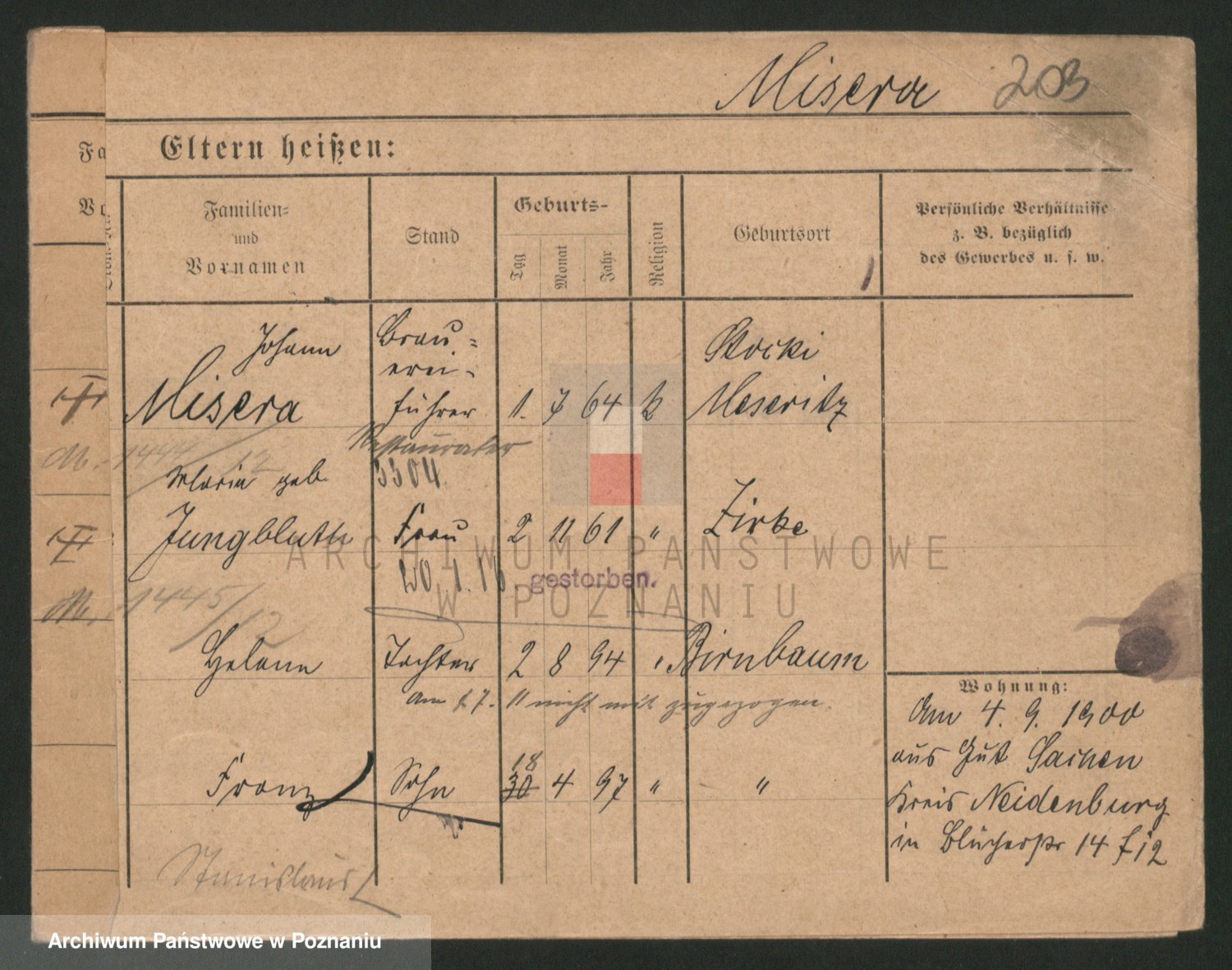 Podgląd karty osobowej dostępny jest po kliknięciu na nazwisko lub ikonkę karty. Można dokonywać powiększenia (ikony na górze) lub przechodzić między kolejnymi skanami (strzałki po bokach).