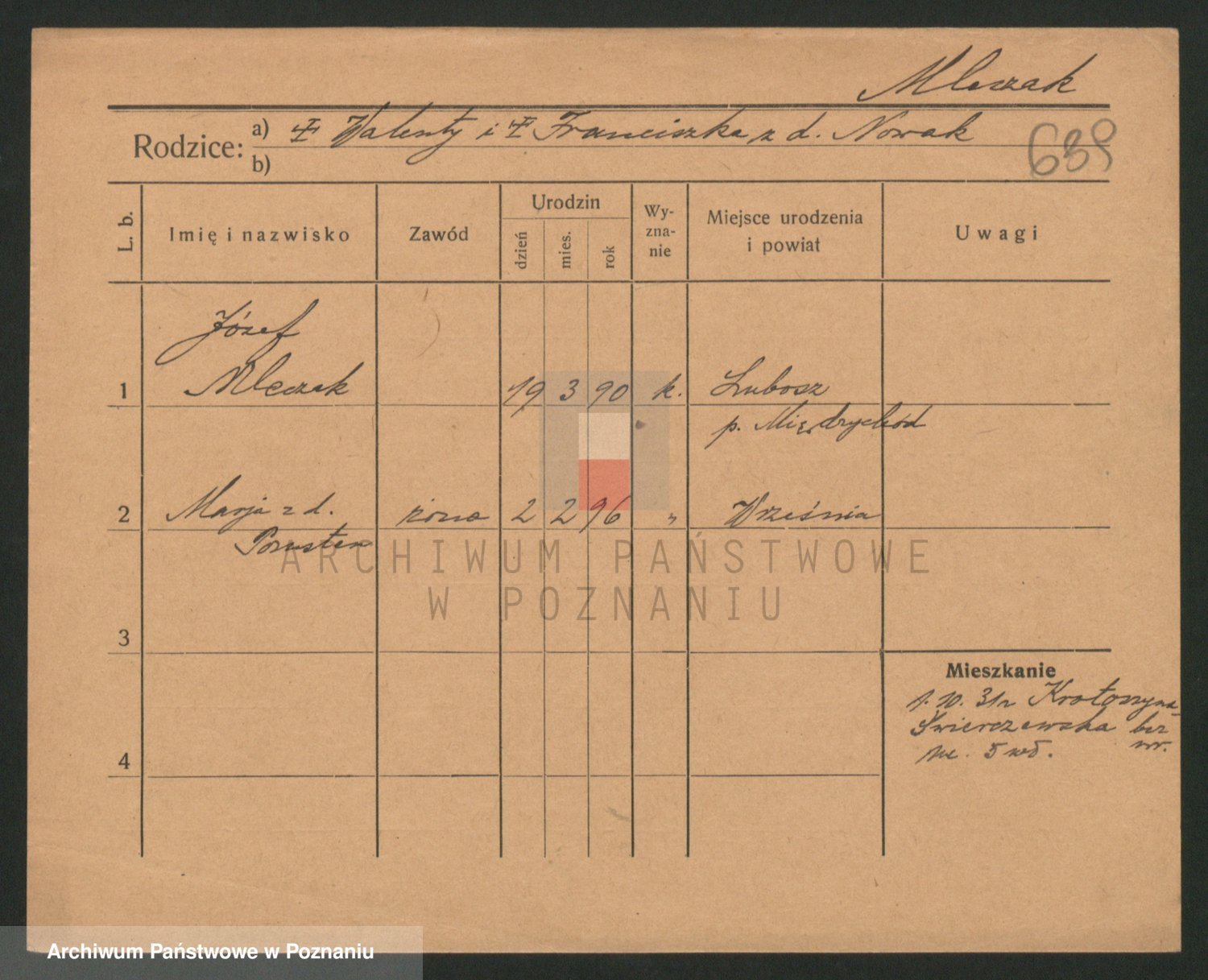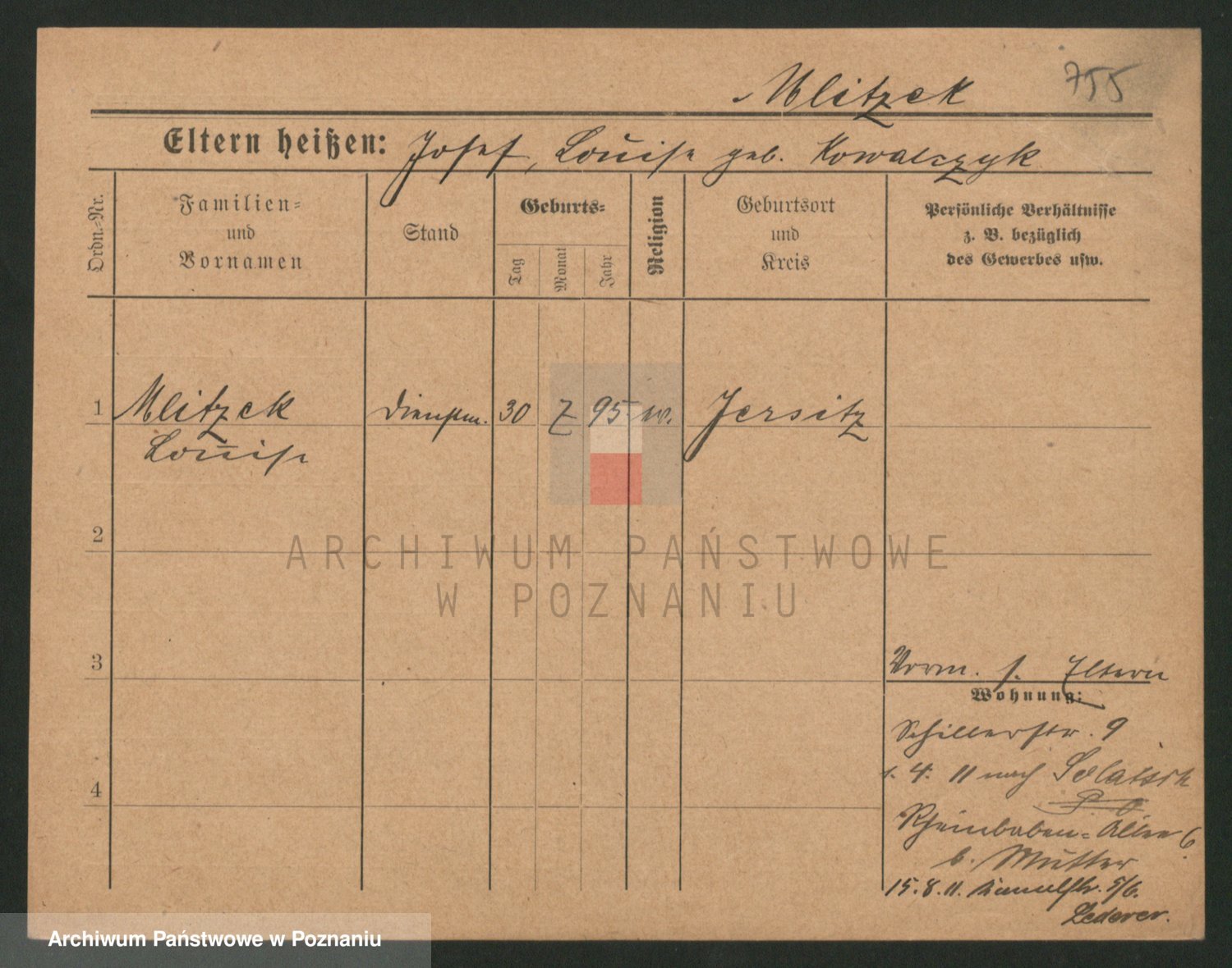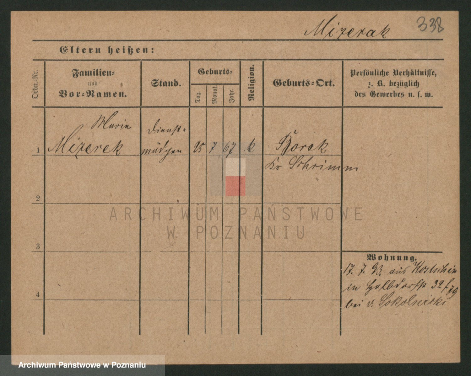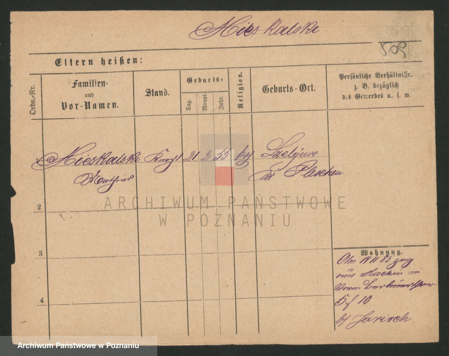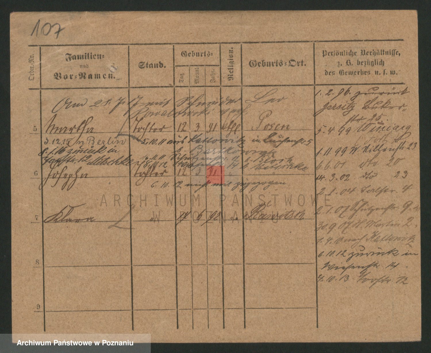 Podgląd karty osobowej dostępny jest po kliknięciu na nazwisko lub ikonkę karty. Można dokonywać powiększenia (ikony na górze) lub przechodzić między kolejnymi skanami (strzałki po bokach).