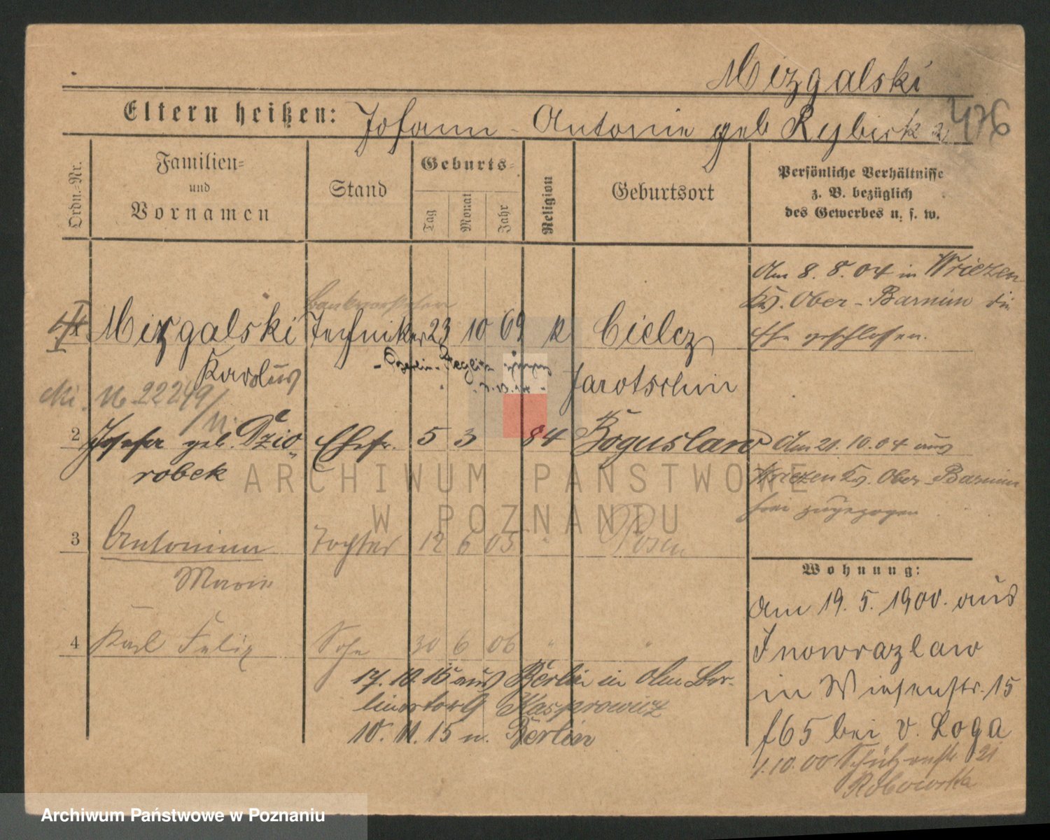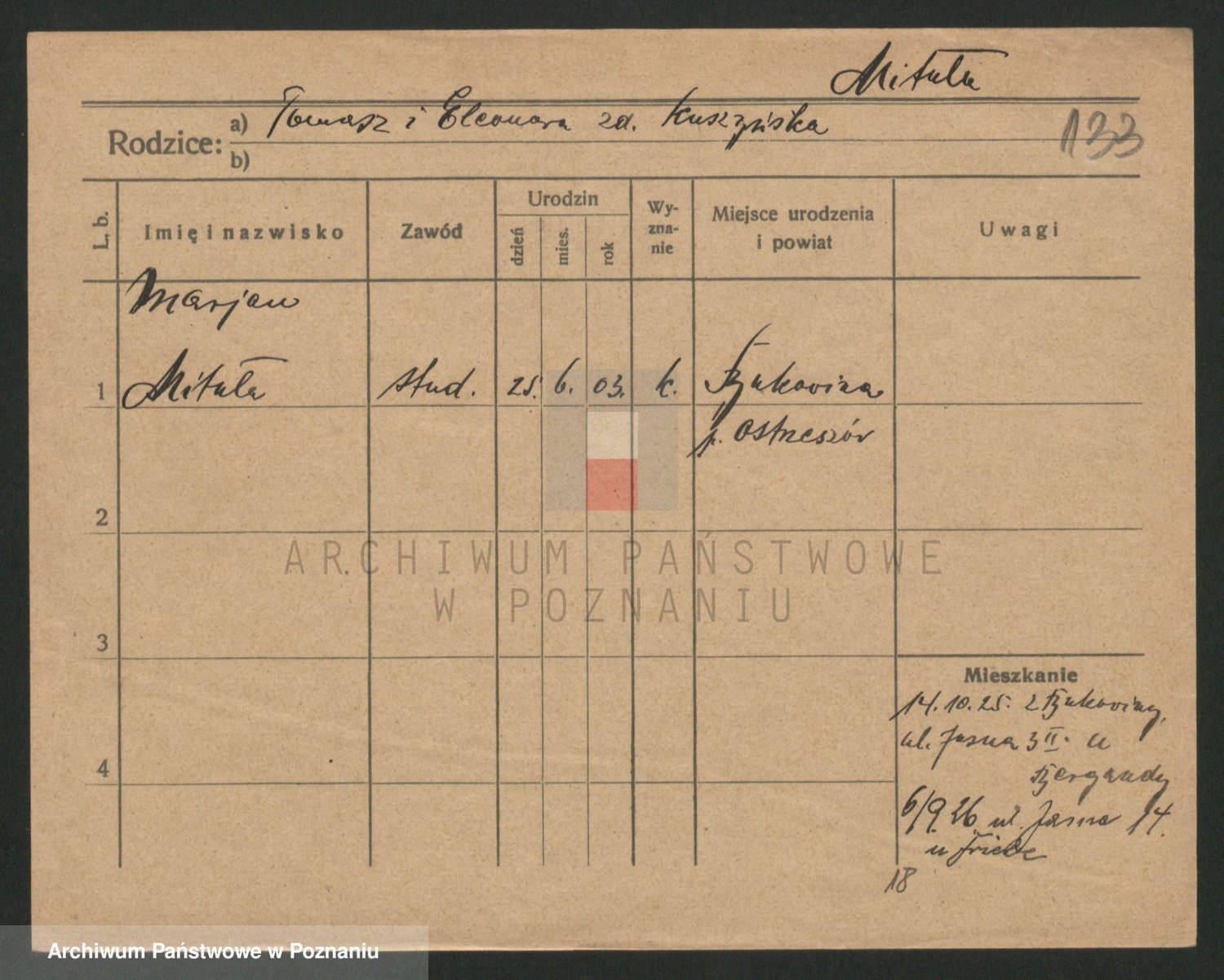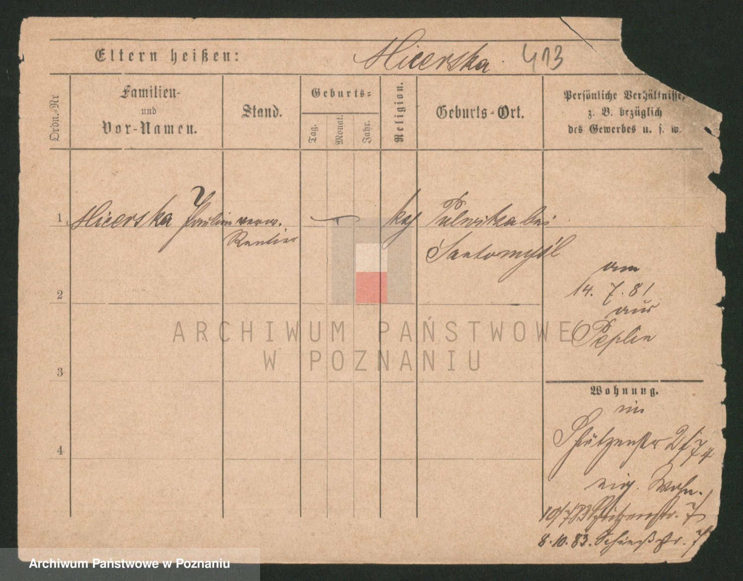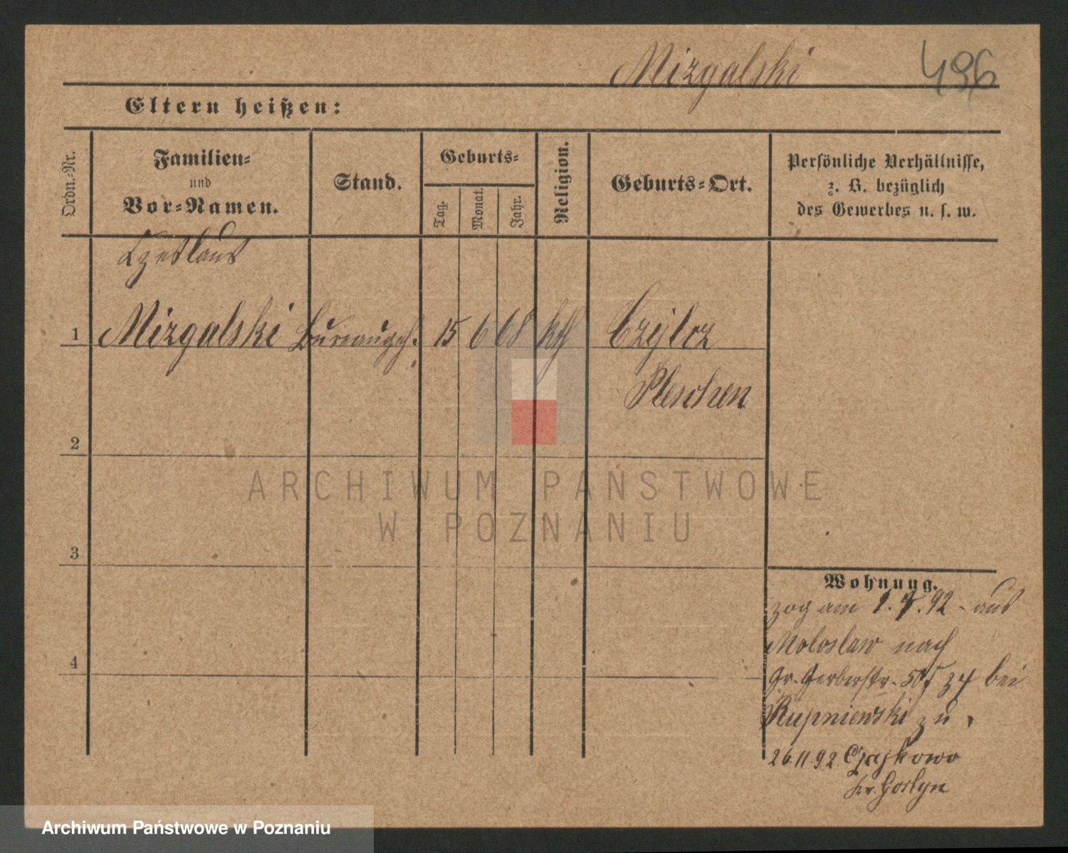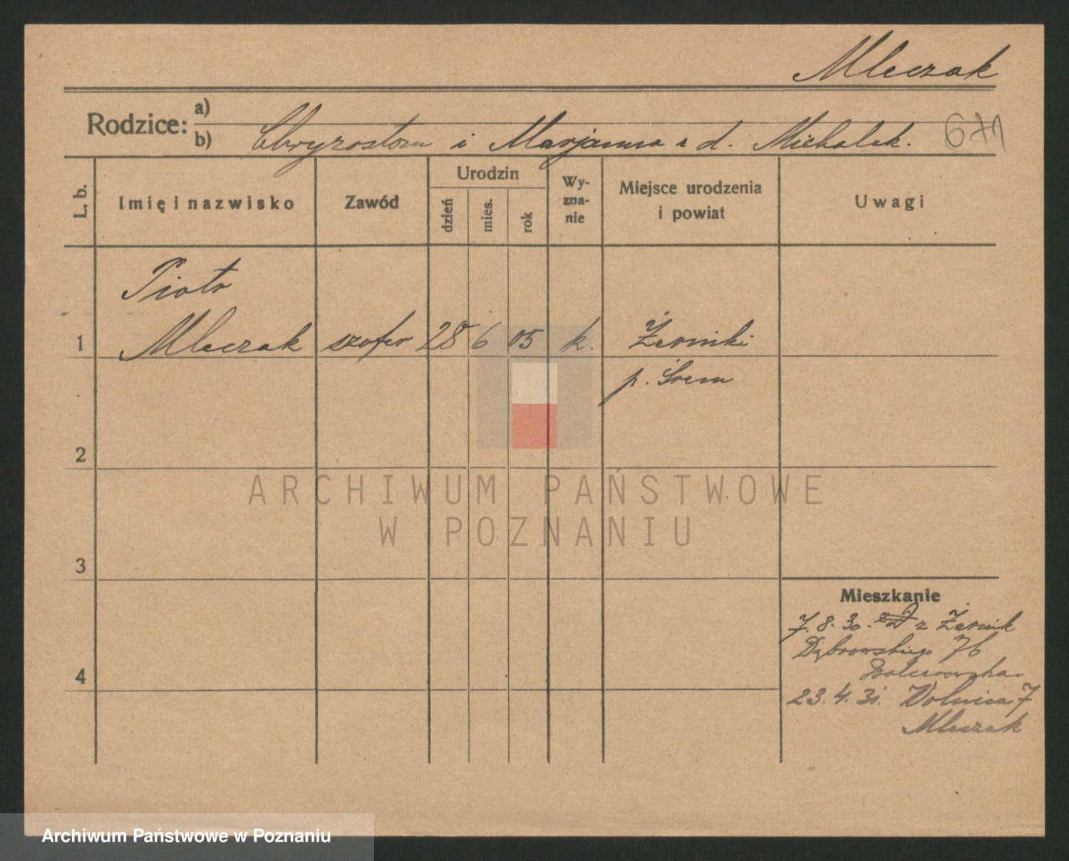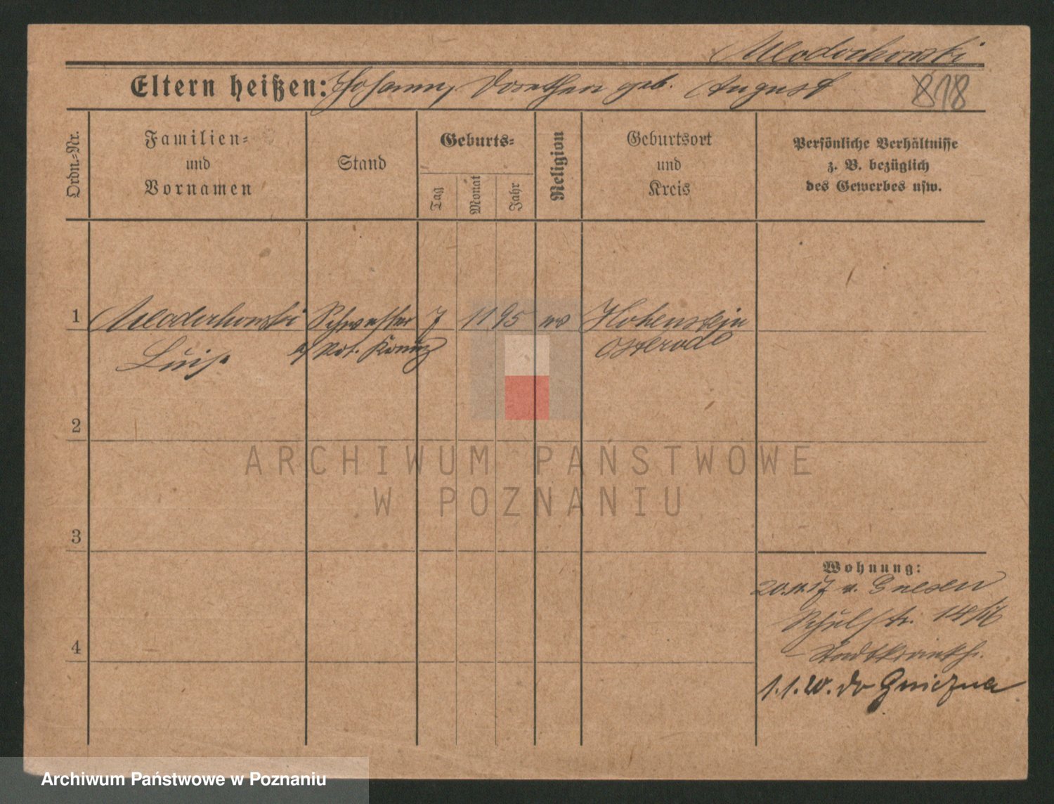 Podgląd karty osobowej dostępny jest po kliknięciu na nazwisko lub ikonkę karty. Można dokonywać powiększenia (ikony na górze) lub przechodzić między kolejnymi skanami (strzałki po bokach).