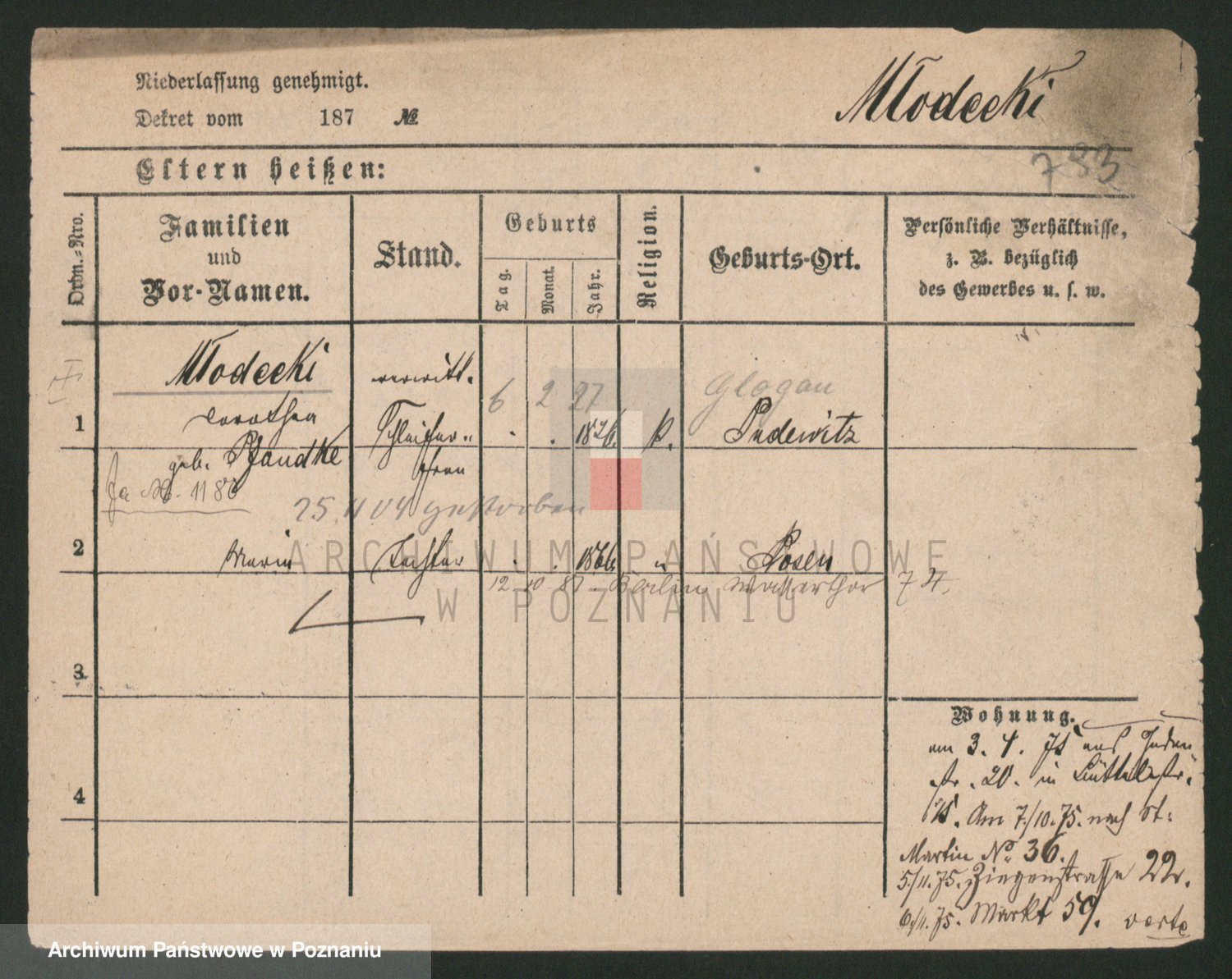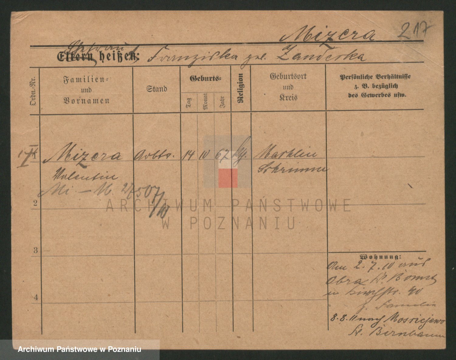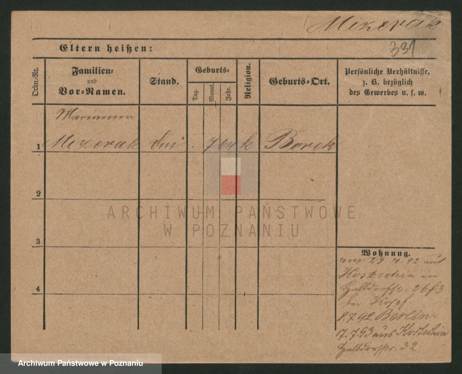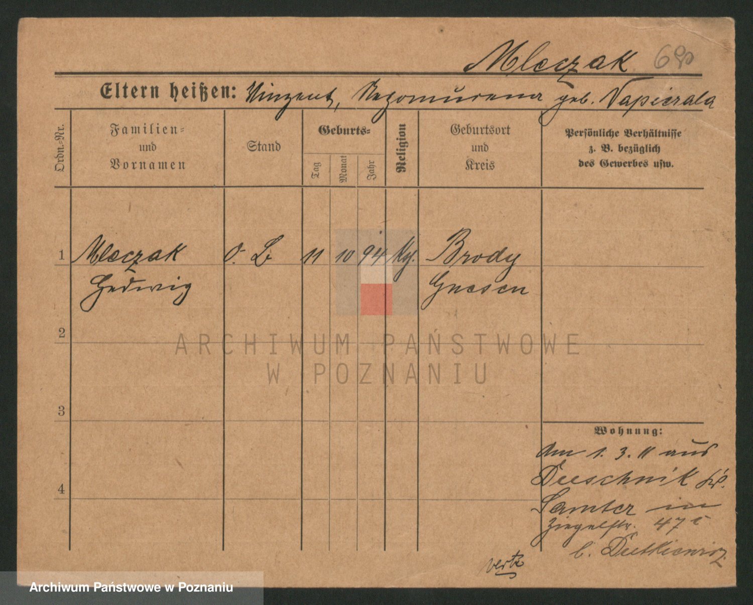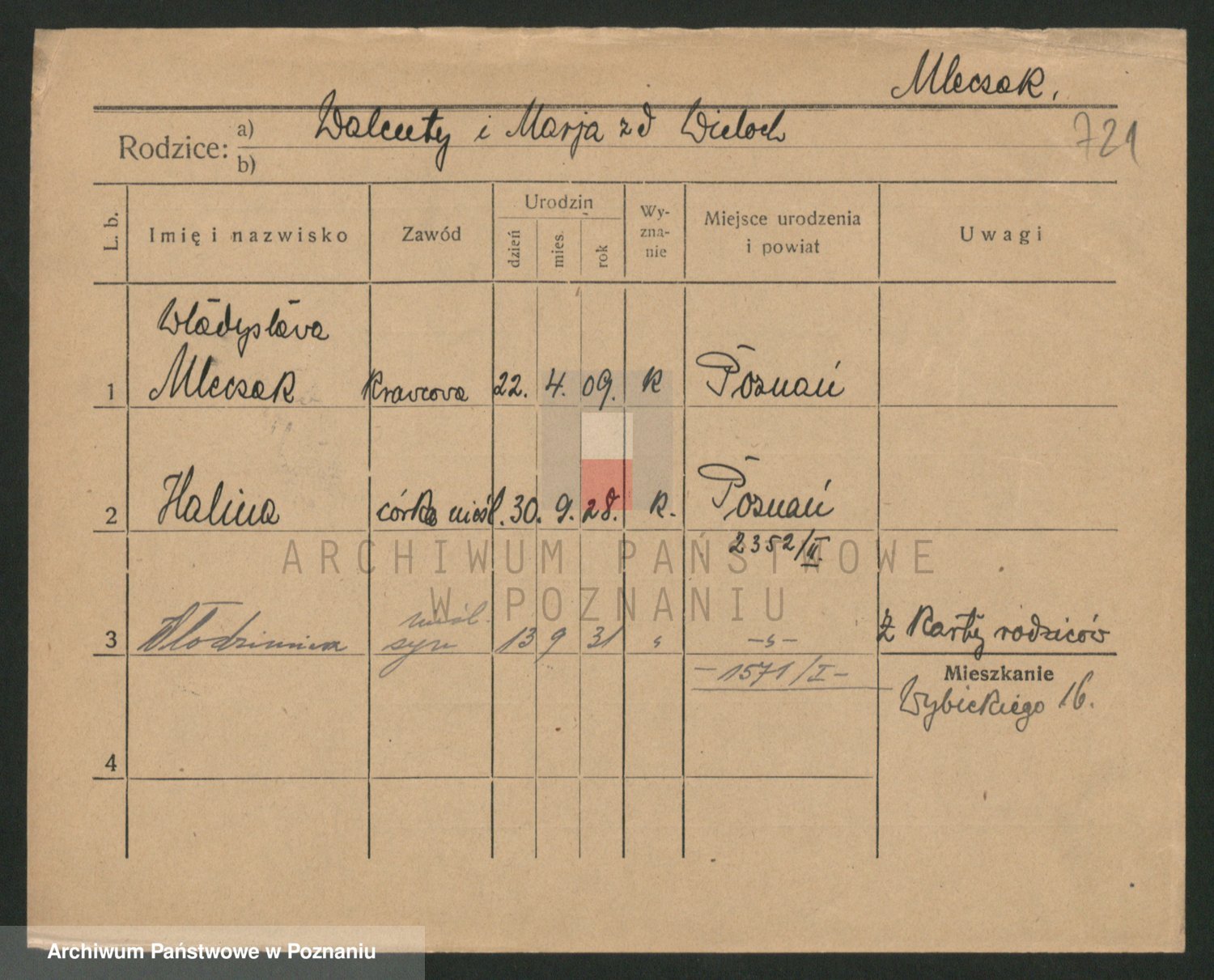 Podgląd karty osobowej dostępny jest po kliknięciu na nazwisko lub ikonkę karty. Można dokonywać powiększenia (ikony na górze) lub przechodzić między kolejnymi skanami (strzałki po bokach).
