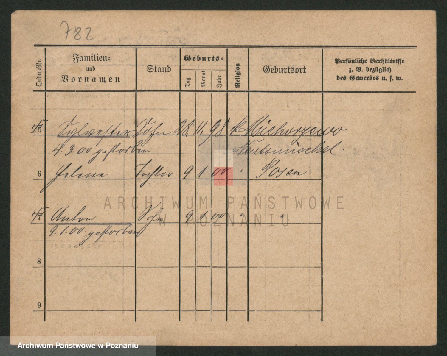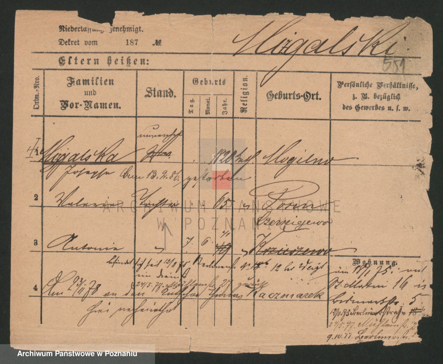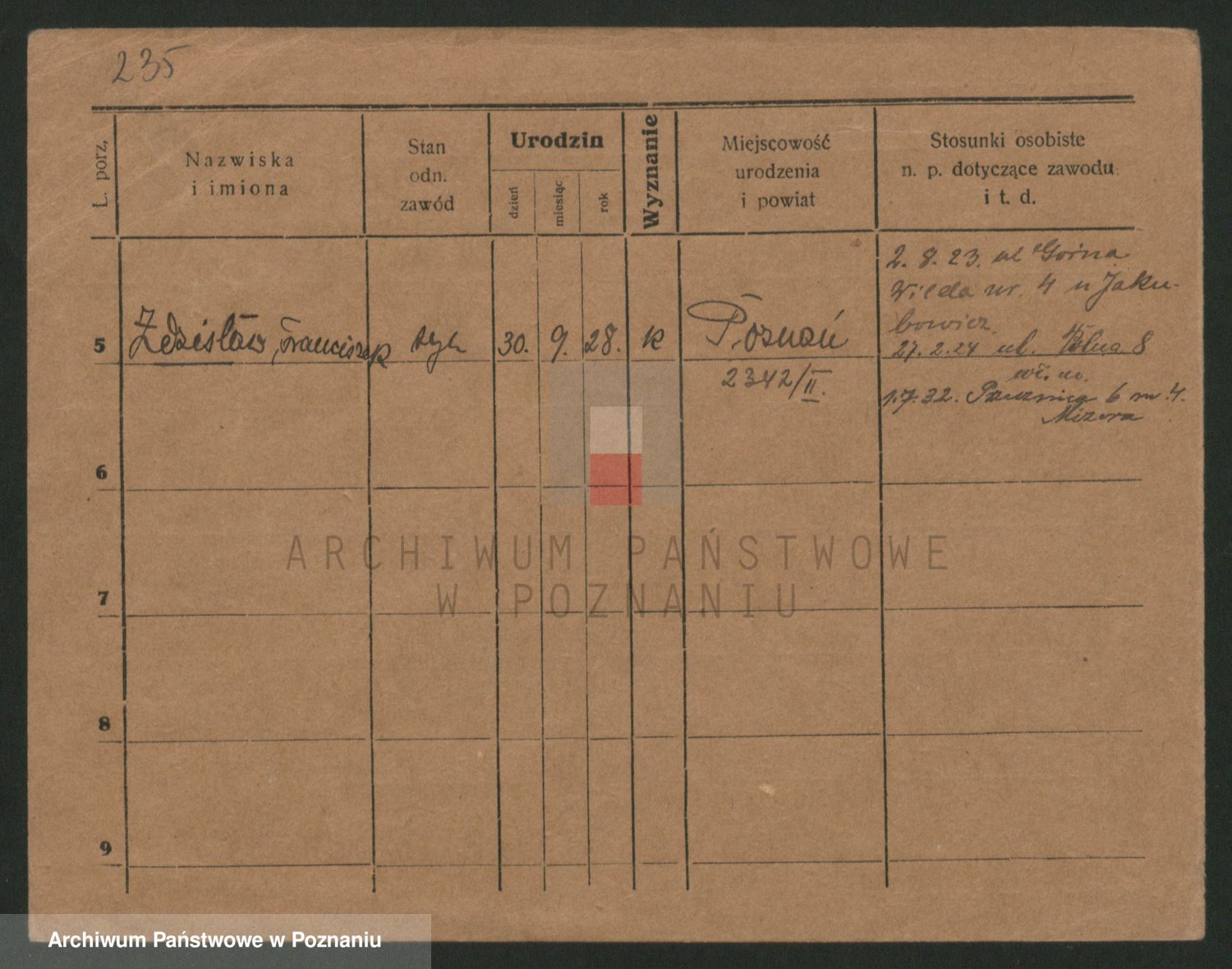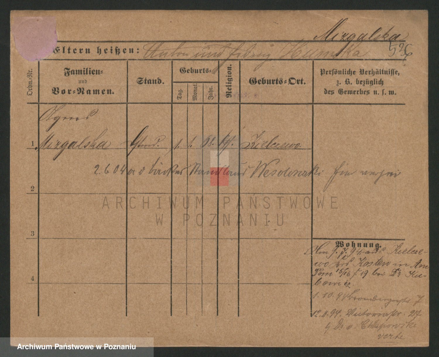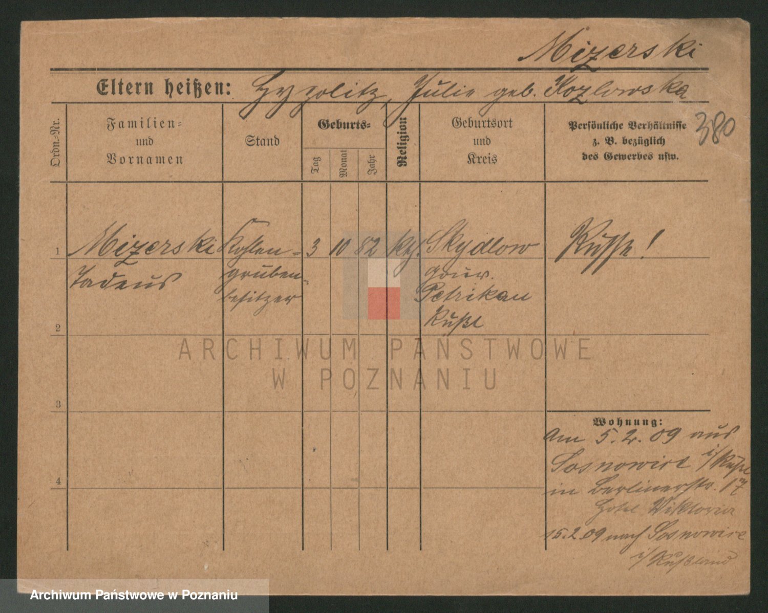 Podgląd karty osobowej dostępny jest po kliknięciu na nazwisko lub ikonkę karty. Można dokonywać powiększenia (ikony na górze) lub przechodzić między kolejnymi skanami (strzałki po bokach).