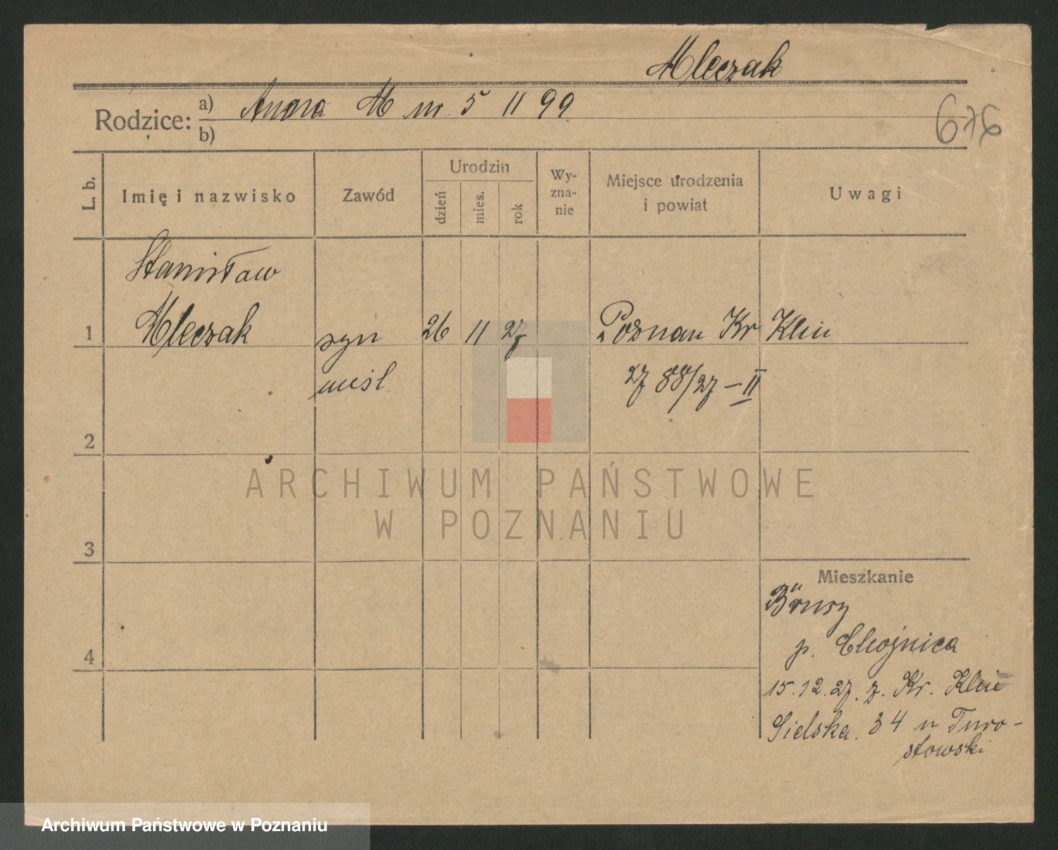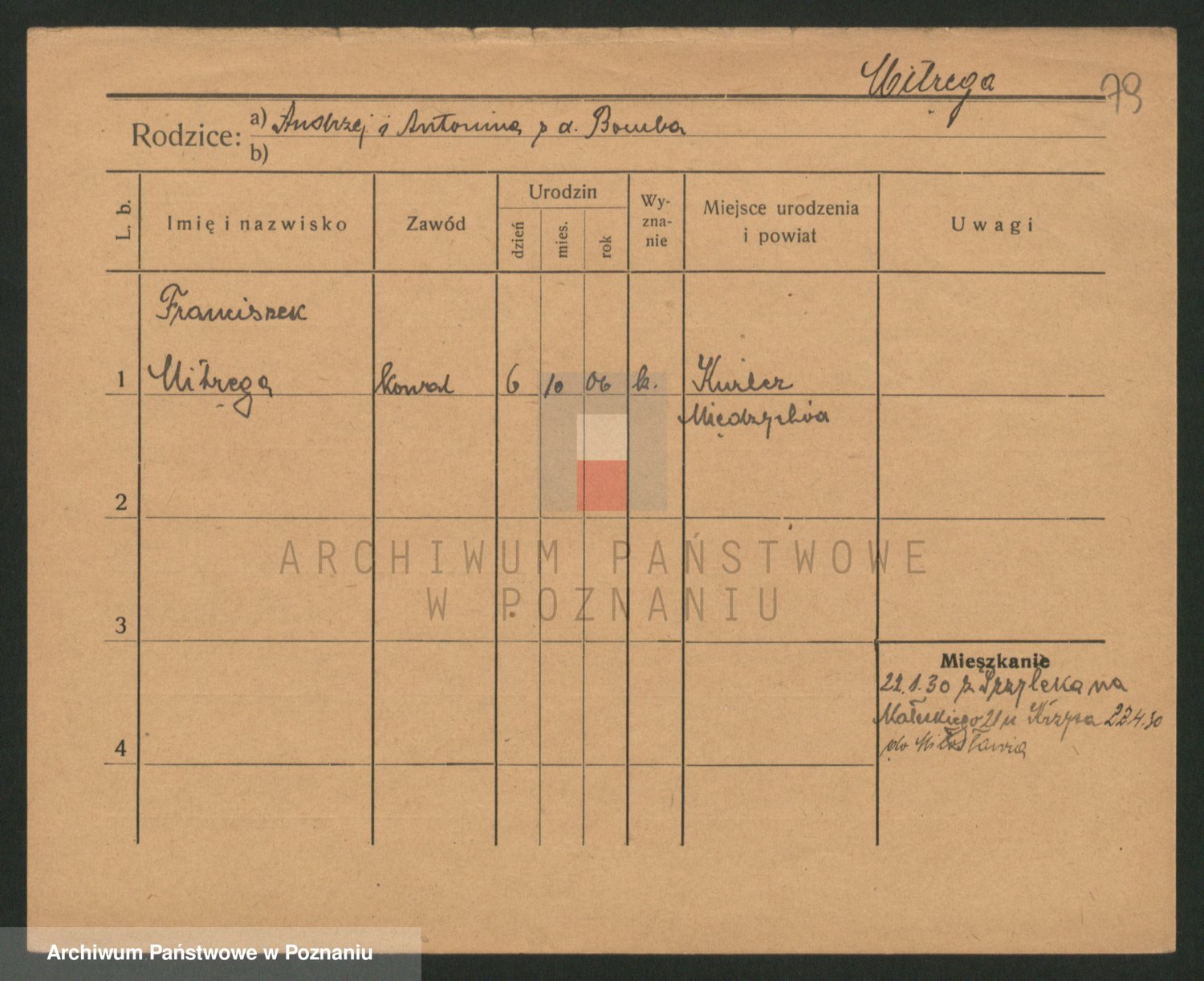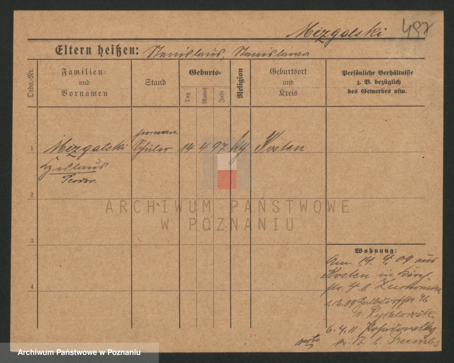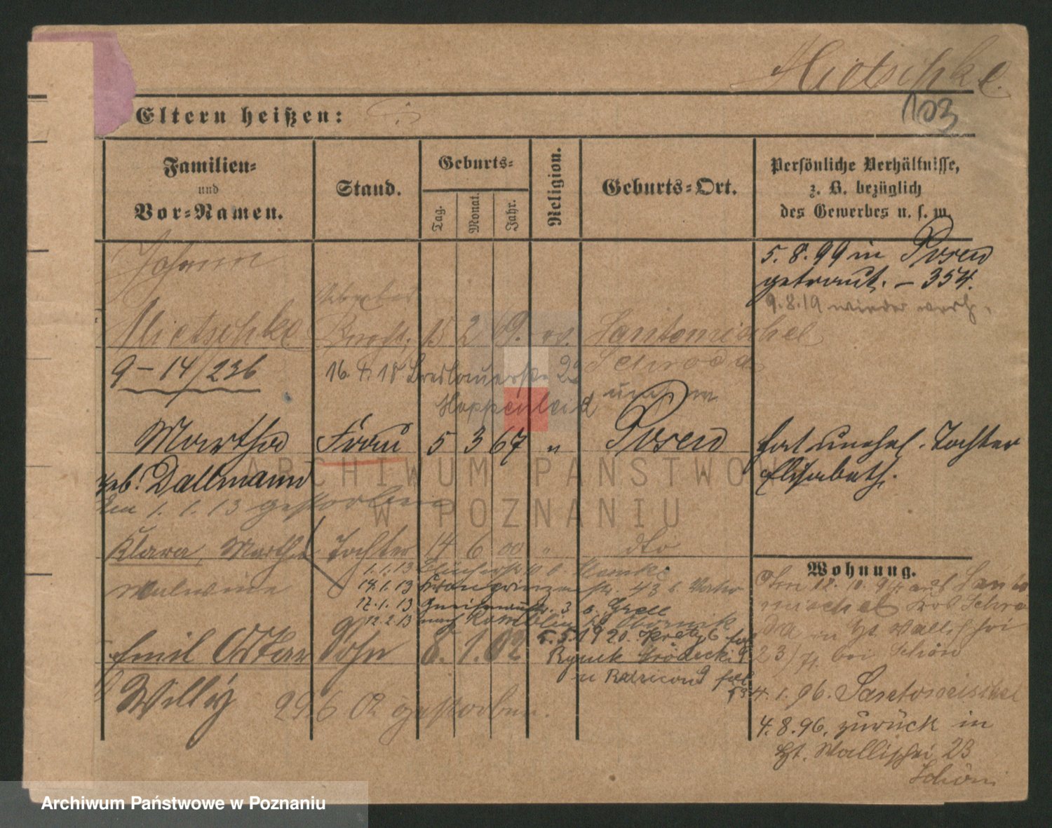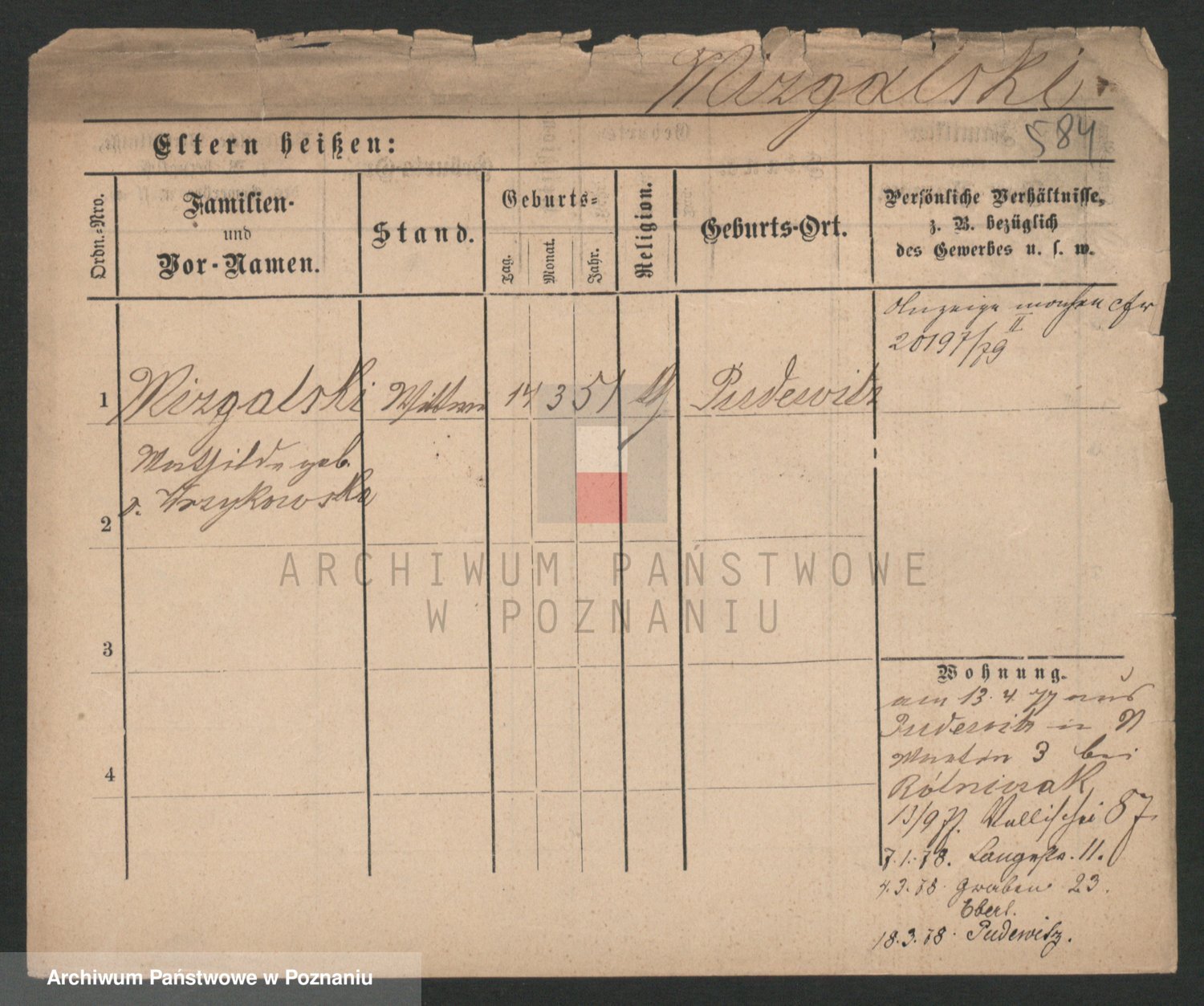 Podgląd karty osobowej dostępny jest po kliknięciu na nazwisko lub ikonkę karty. Można dokonywać powiększenia (ikony na górze) lub przechodzić między kolejnymi skanami (strzałki po bokach).