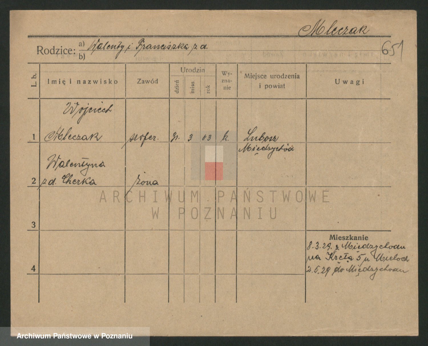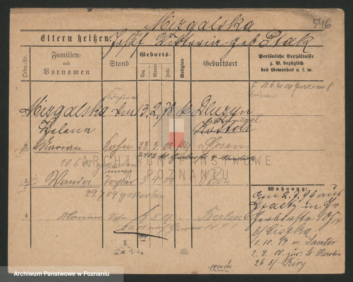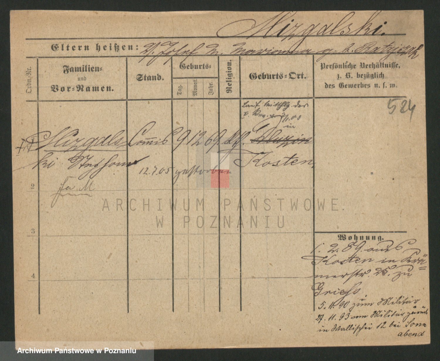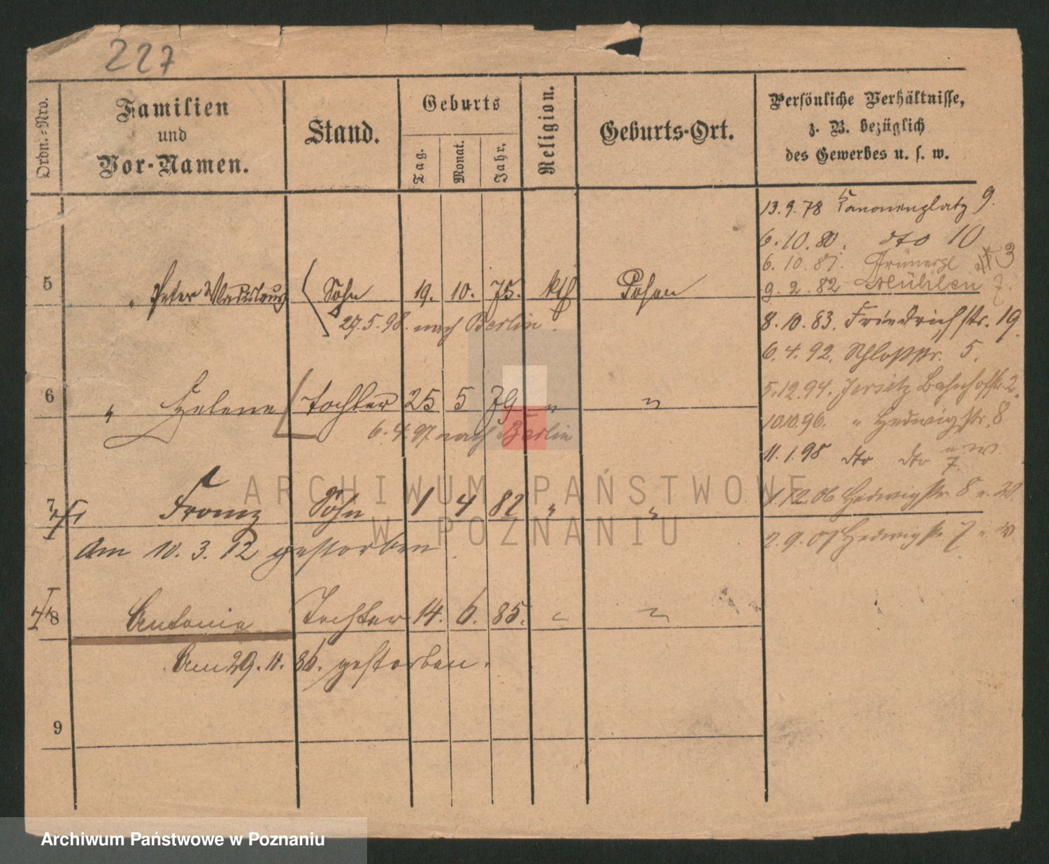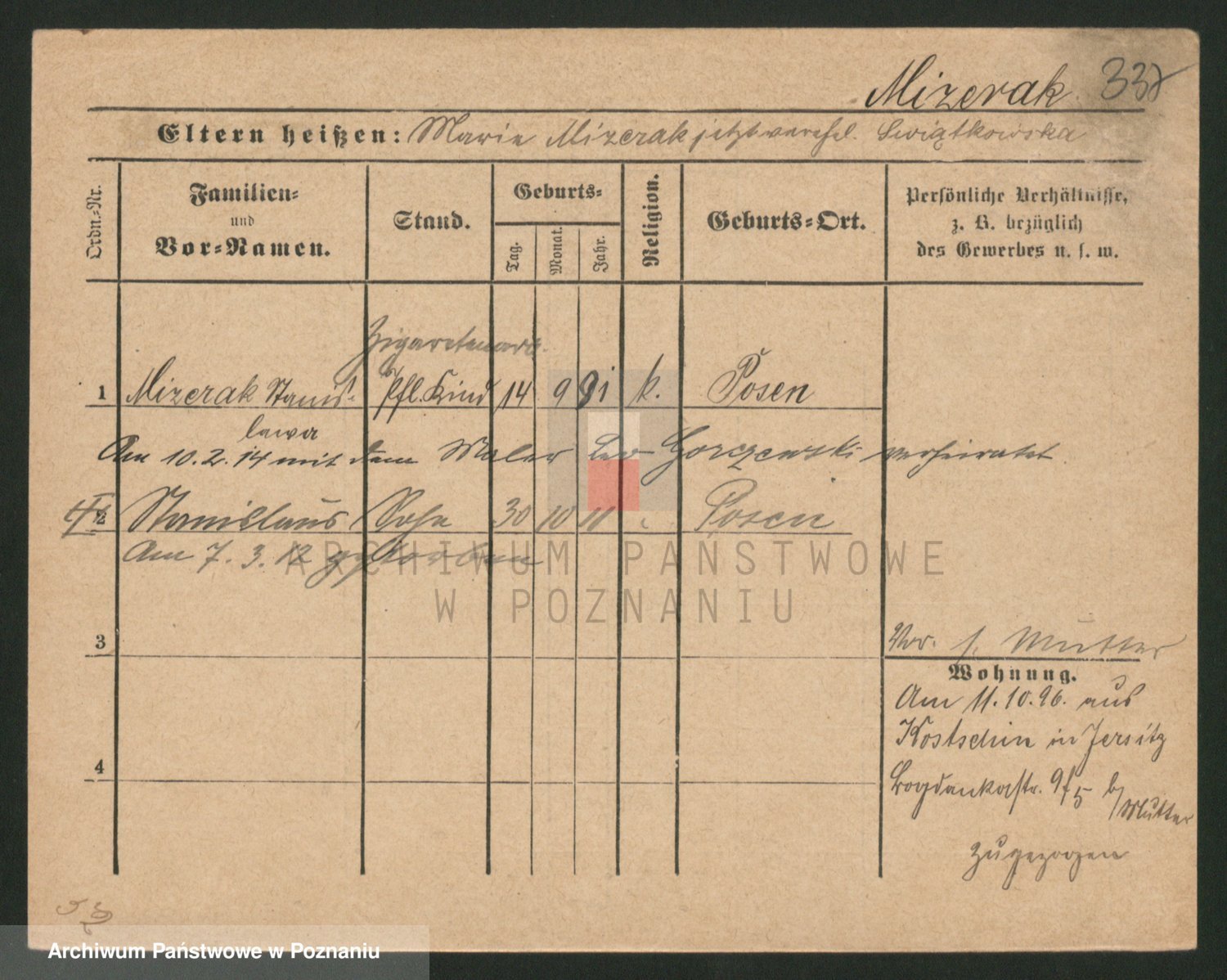 Podgląd karty osobowej dostępny jest po kliknięciu na nazwisko lub ikonkę karty. Można dokonywać powiększenia (ikony na górze) lub przechodzić między kolejnymi skanami (strzałki po bokach).