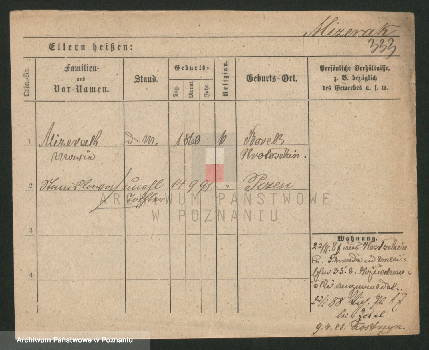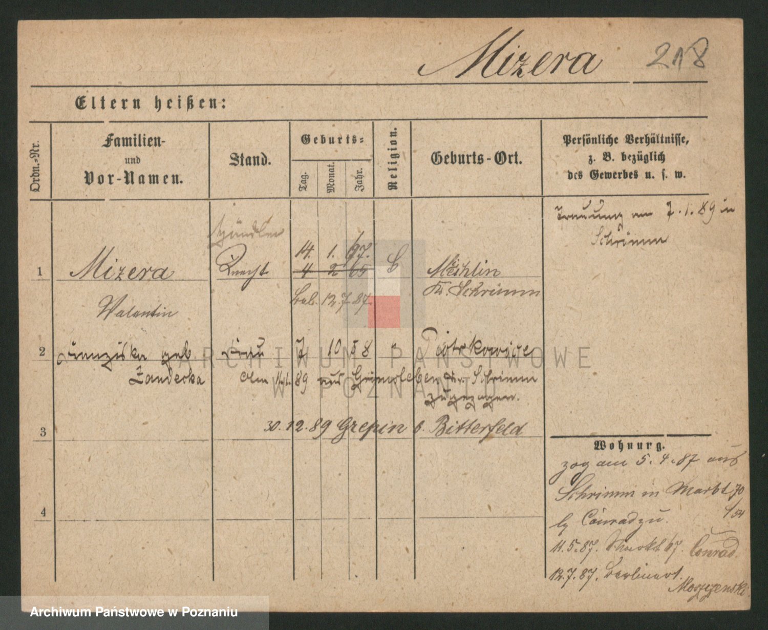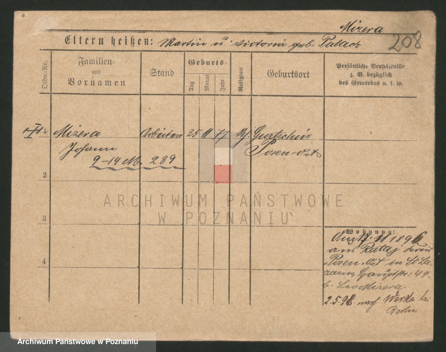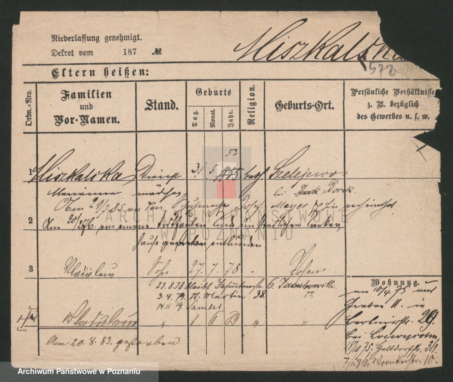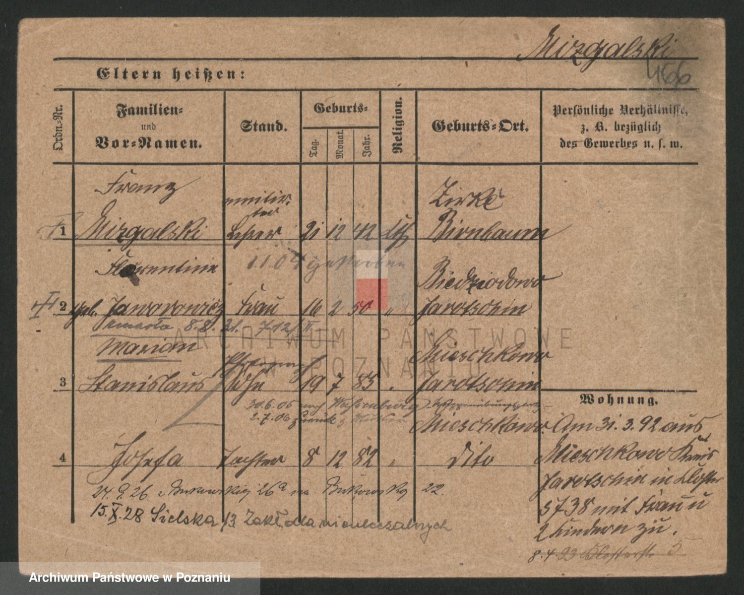 Podgląd karty osobowej dostępny jest po kliknięciu na nazwisko lub ikonkę karty. Można dokonywać powiększenia (ikony na górze) lub przechodzić między kolejnymi skanami (strzałki po bokach).
