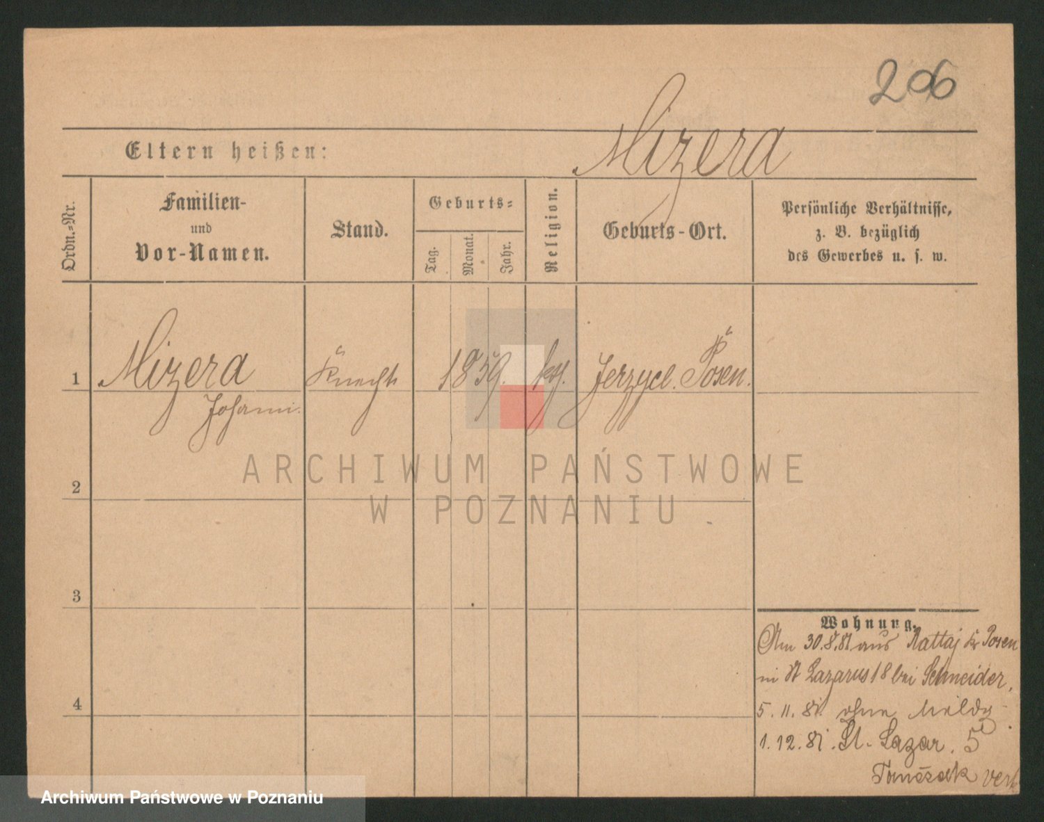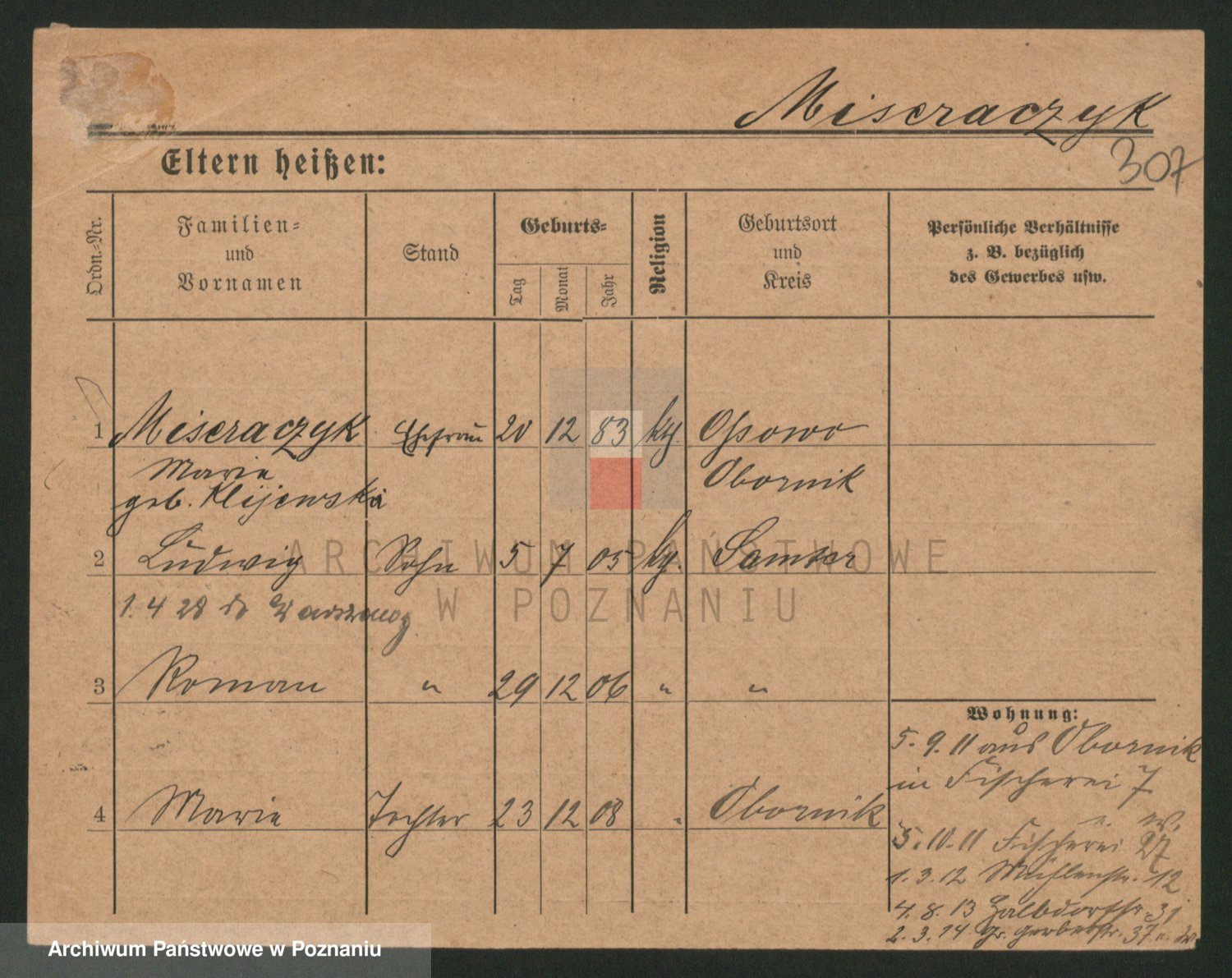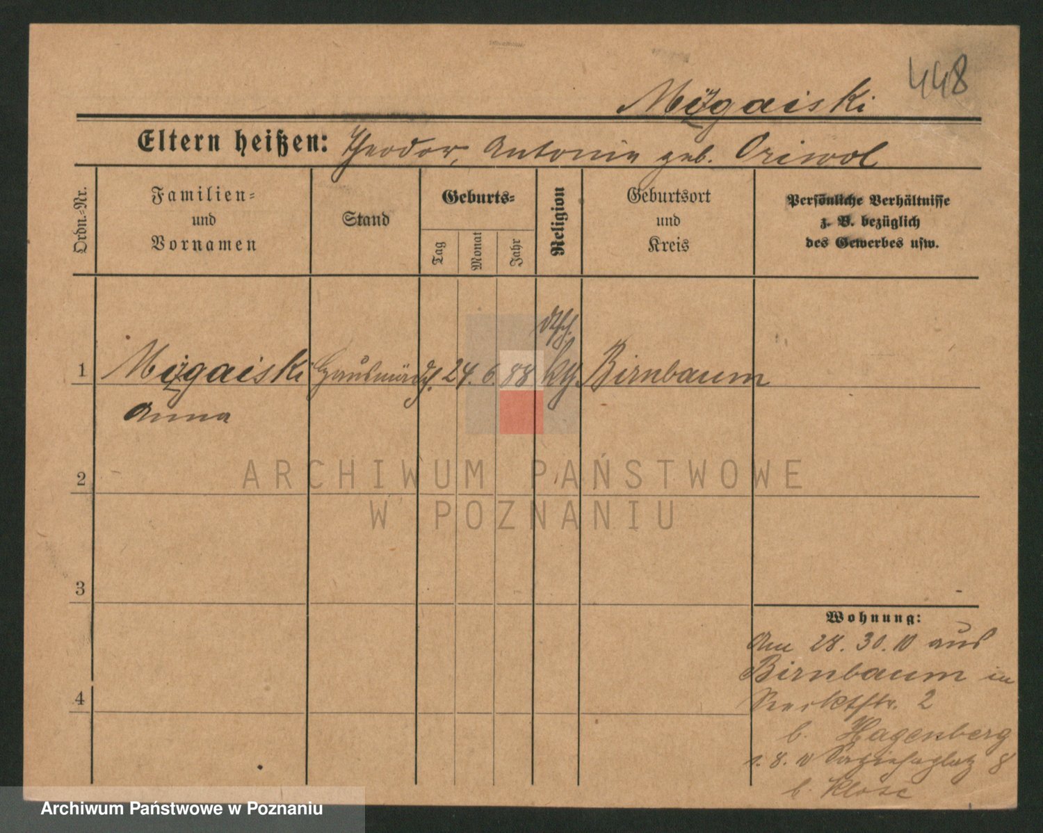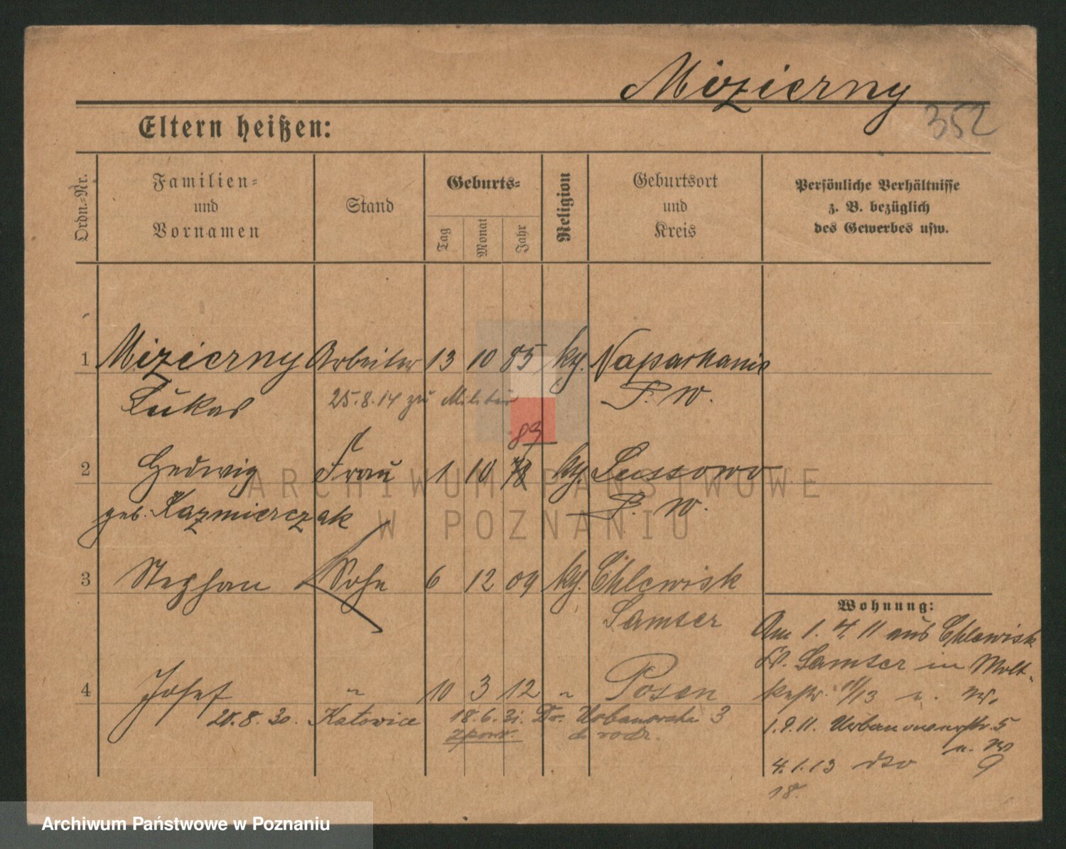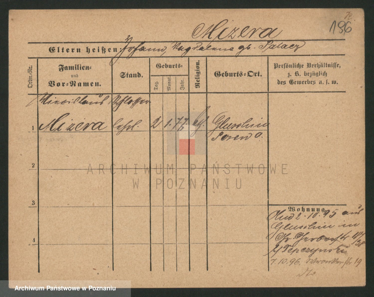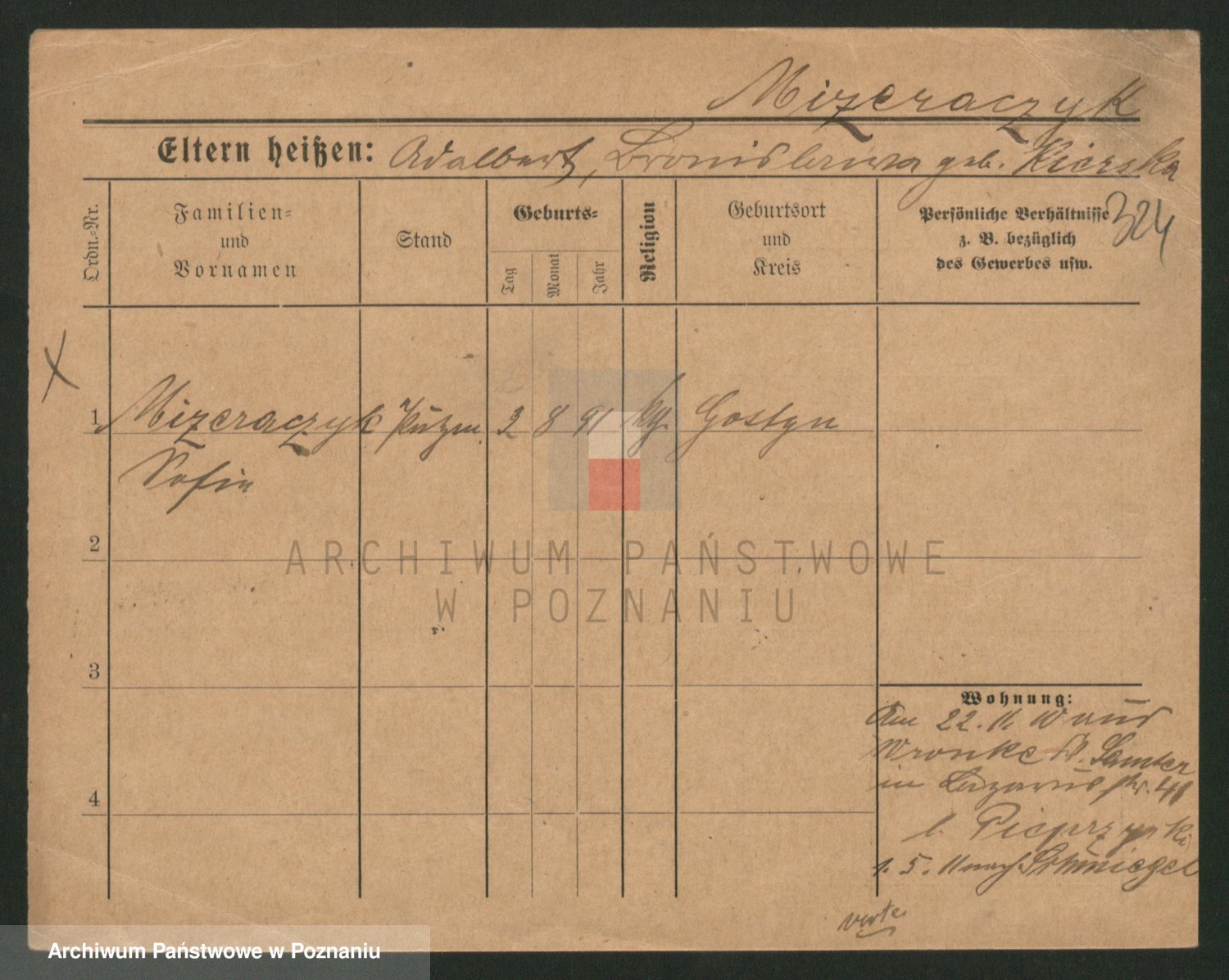 Podgląd karty osobowej dostępny jest po kliknięciu na nazwisko lub ikonkę karty. Można dokonywać powiększenia (ikony na górze) lub przechodzić między kolejnymi skanami (strzałki po bokach).