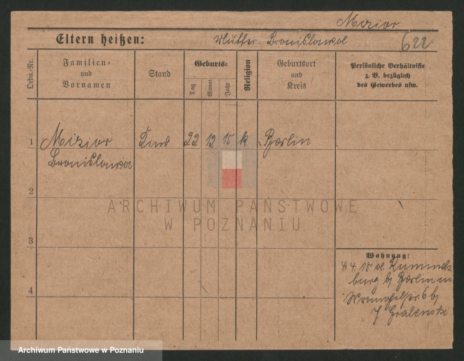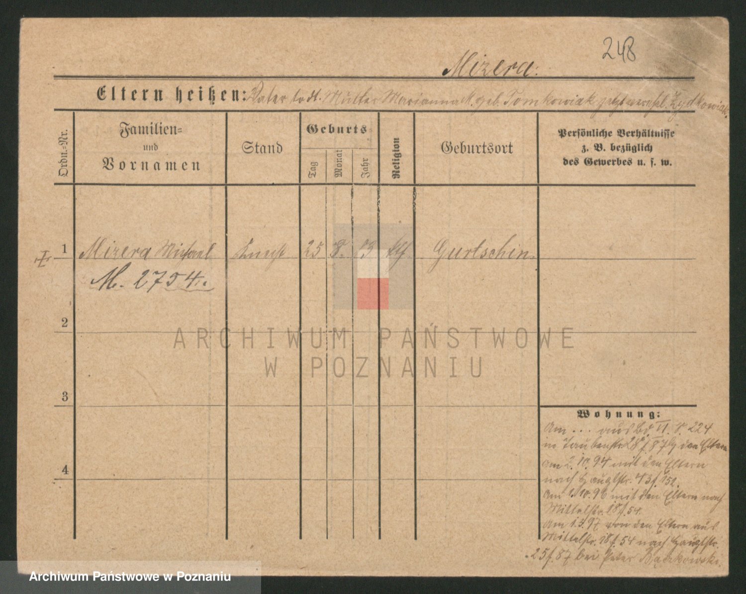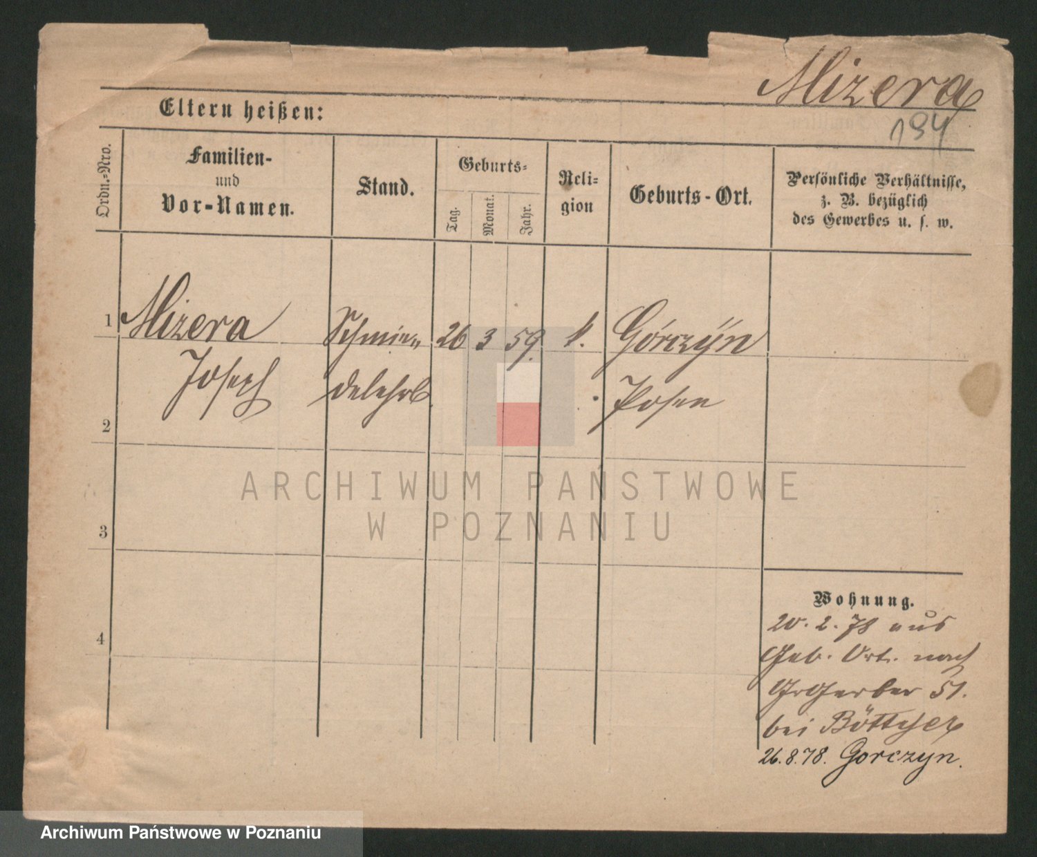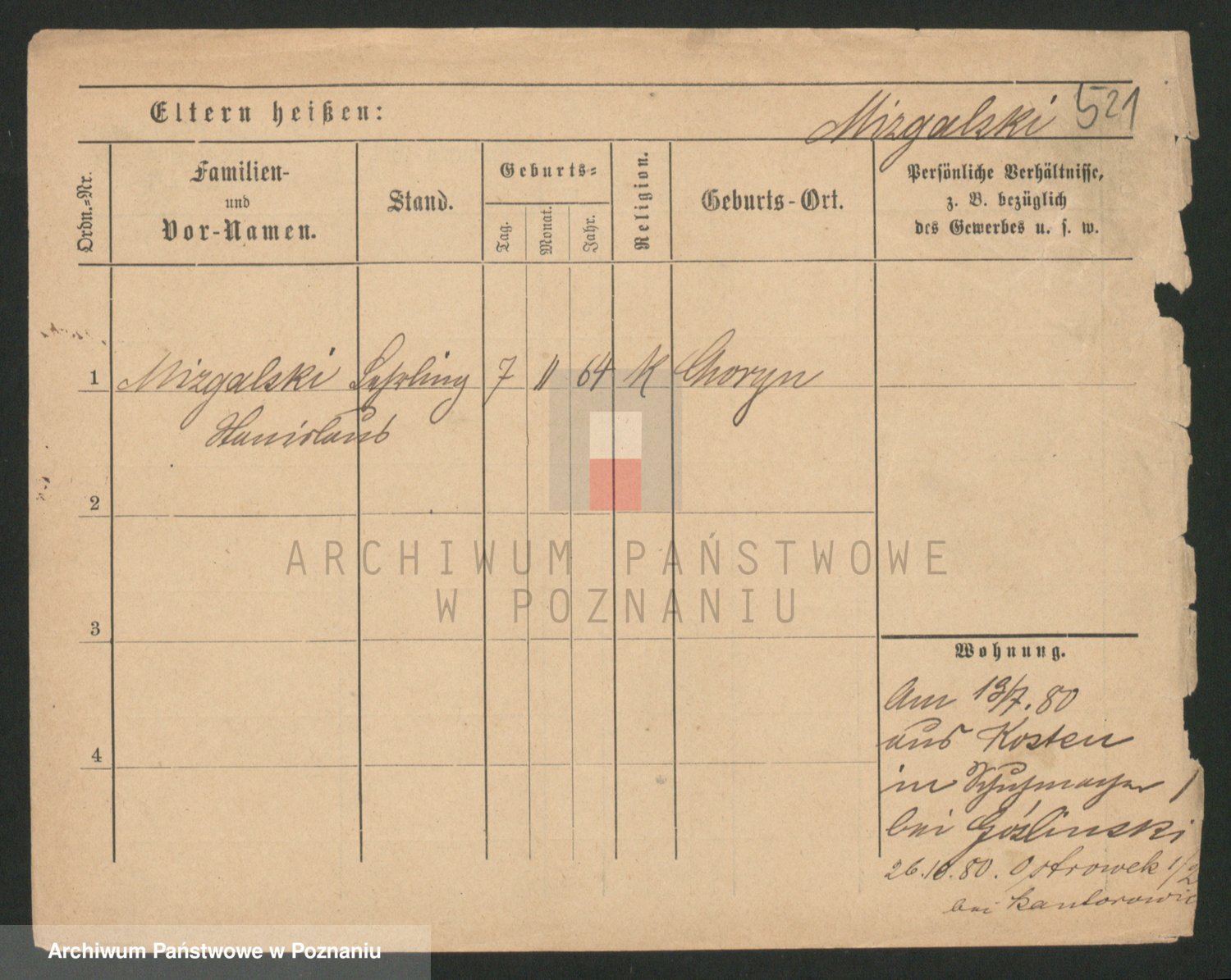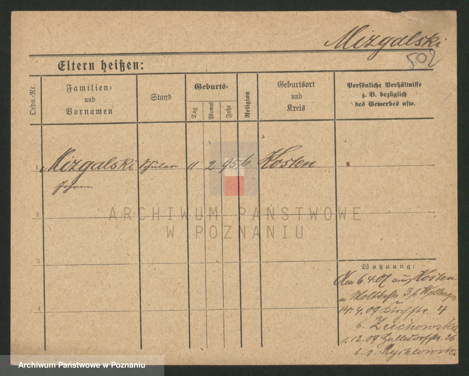 Podgląd karty osobowej dostępny jest po kliknięciu na nazwisko lub ikonkę karty. Można dokonywać powiększenia (ikony na górze) lub przechodzić między kolejnymi skanami (strzałki po bokach).