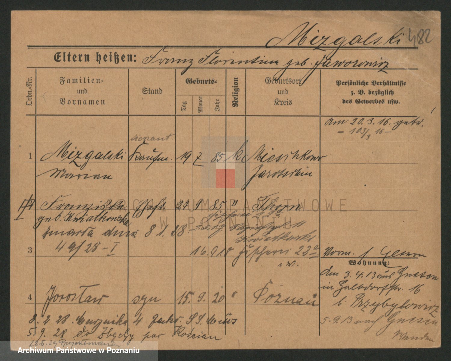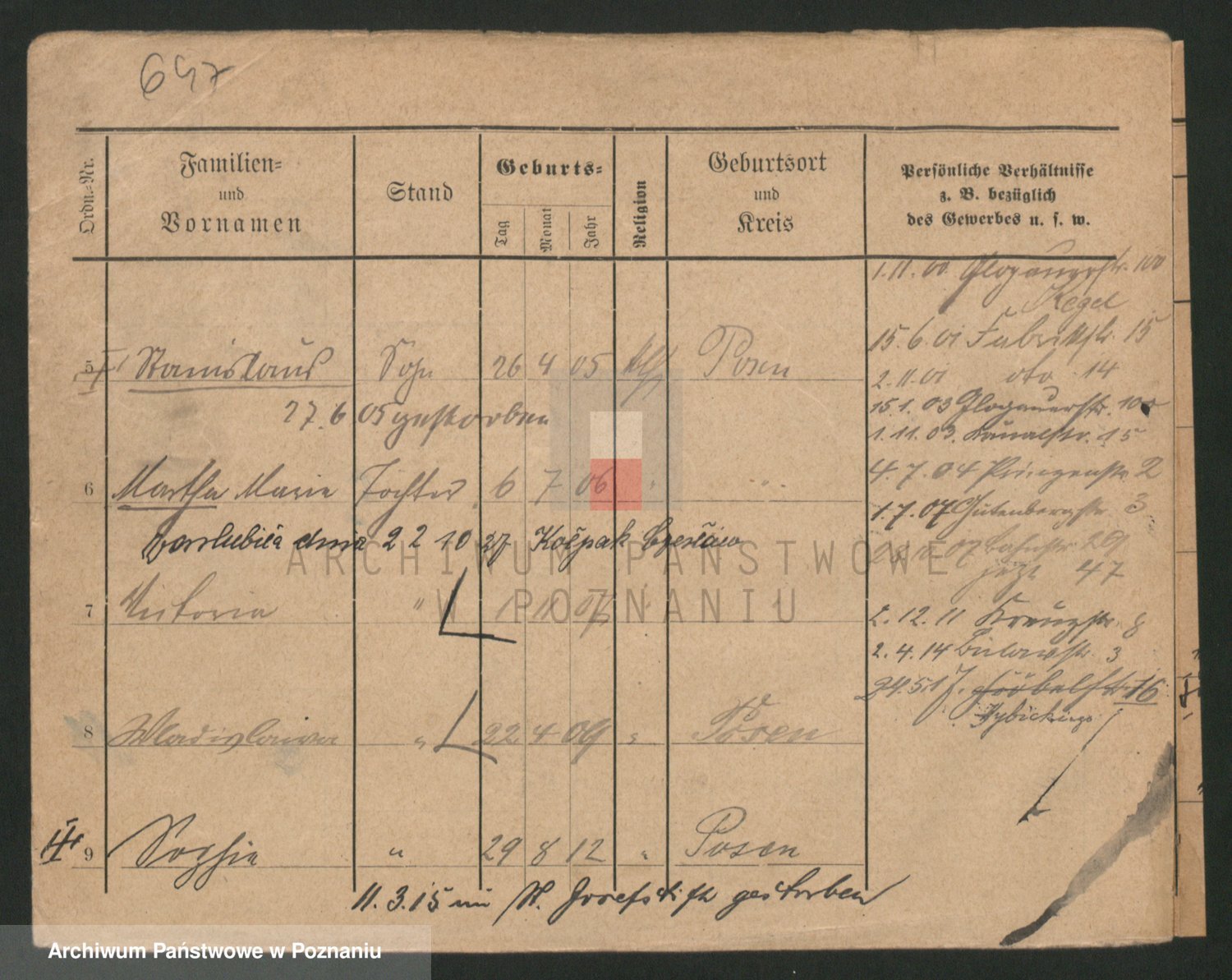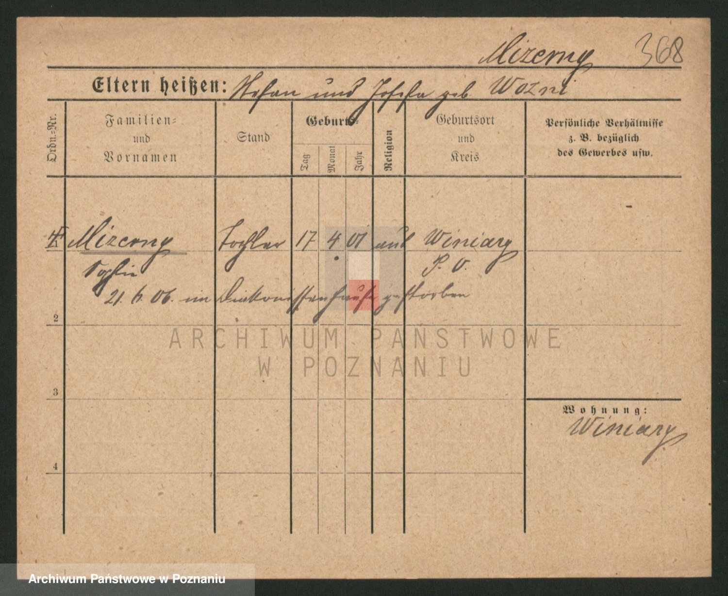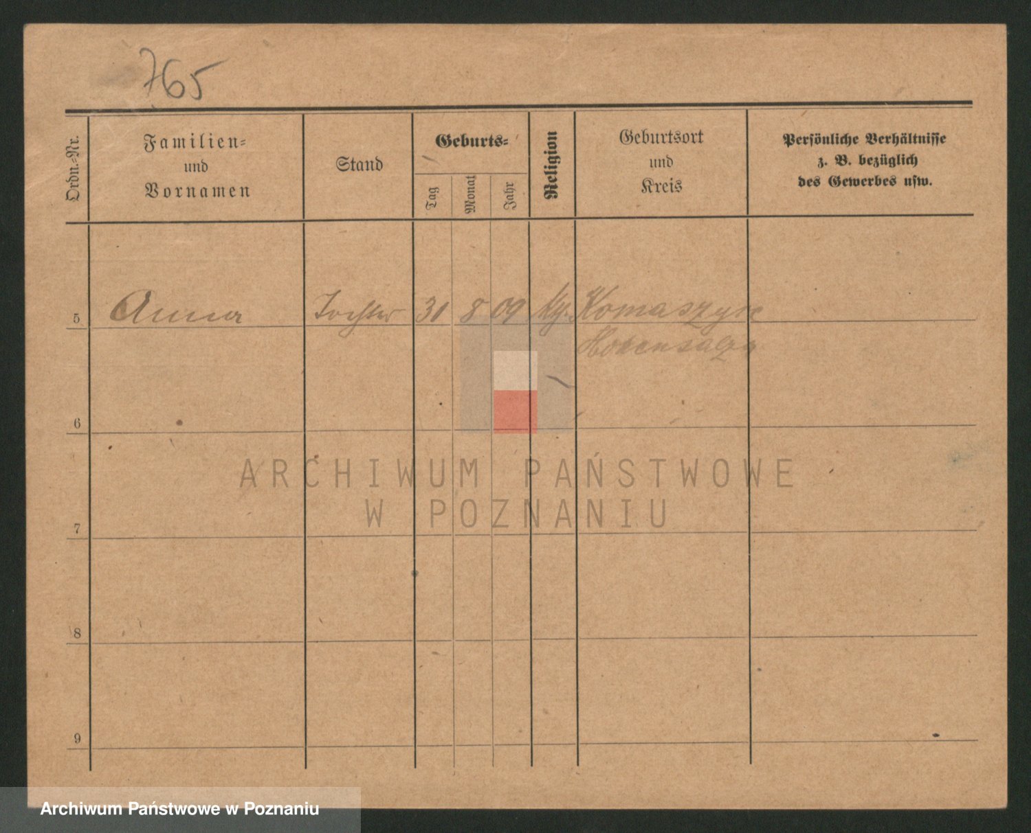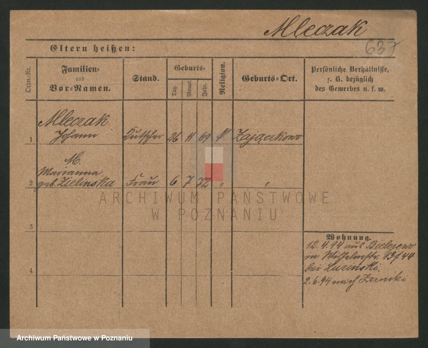 Podgląd karty osobowej dostępny jest po kliknięciu na nazwisko lub ikonkę karty. Można dokonywać powiększenia (ikony na górze) lub przechodzić między kolejnymi skanami (strzałki po bokach).