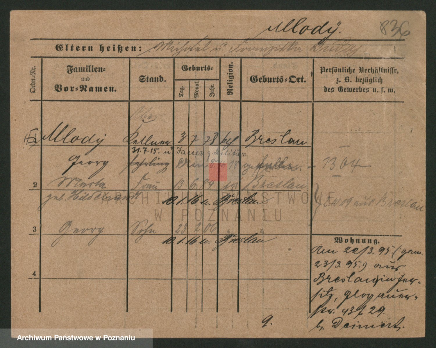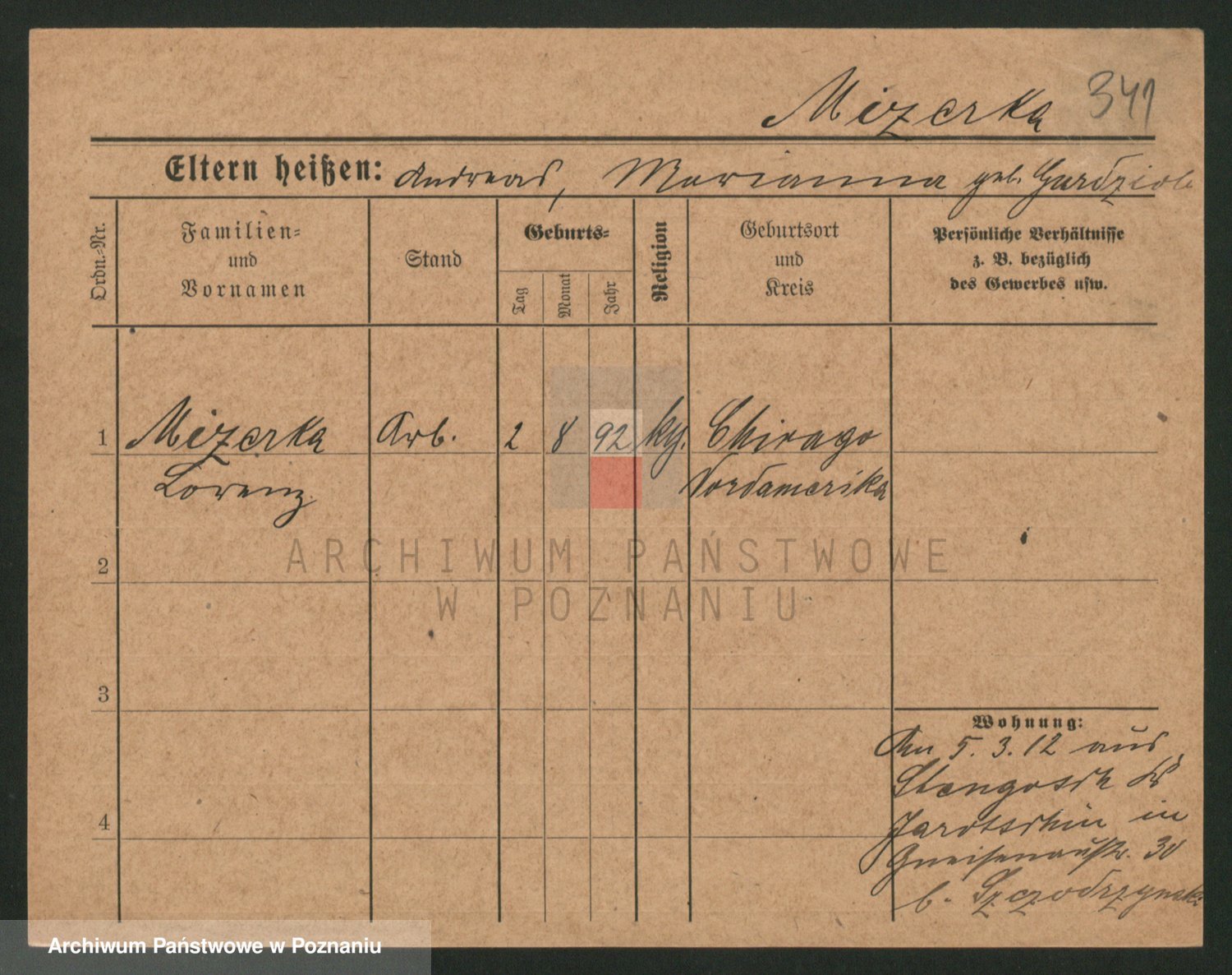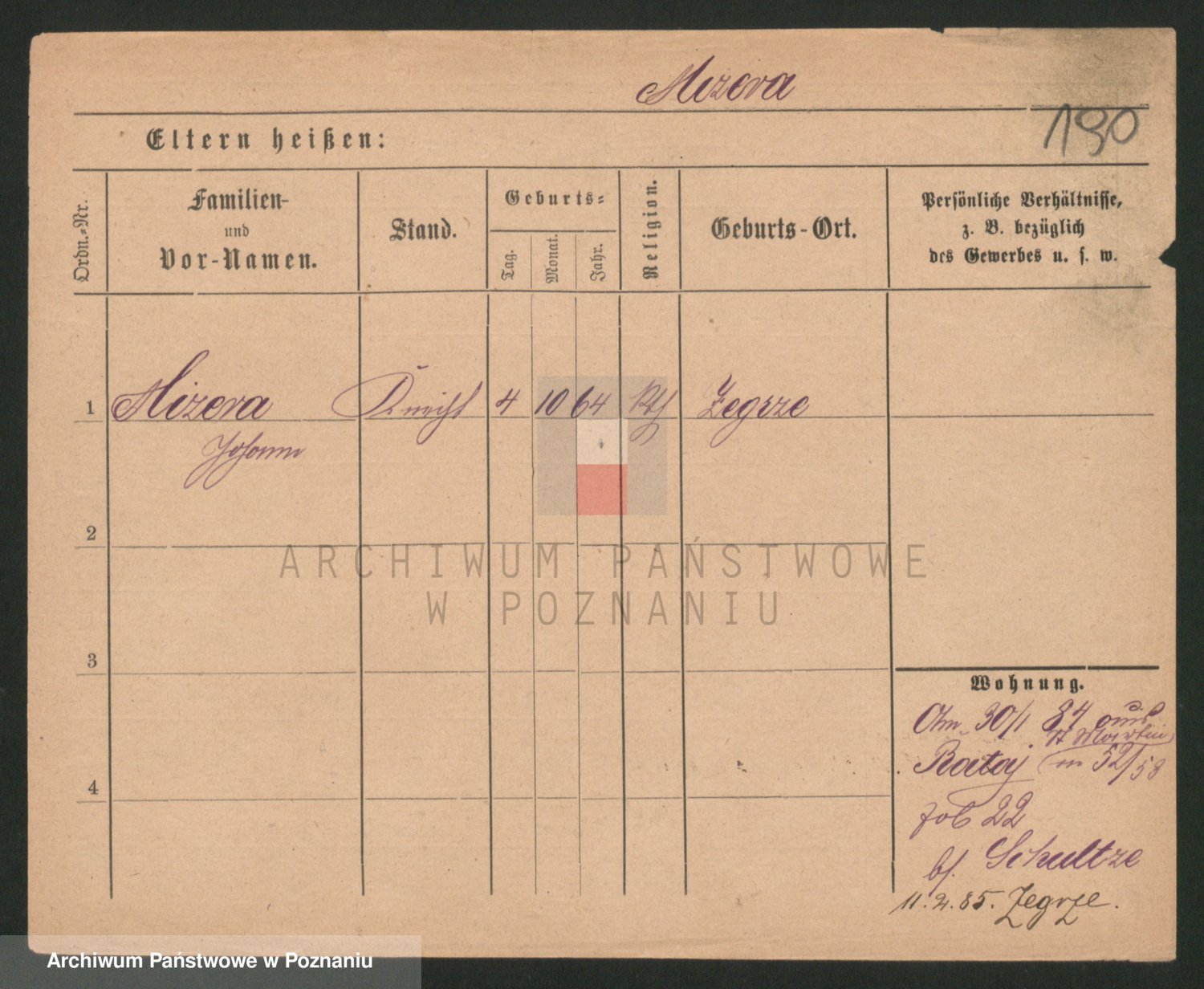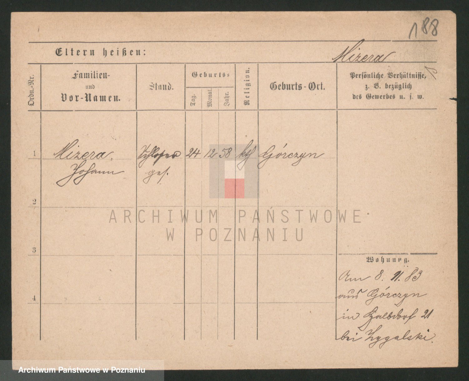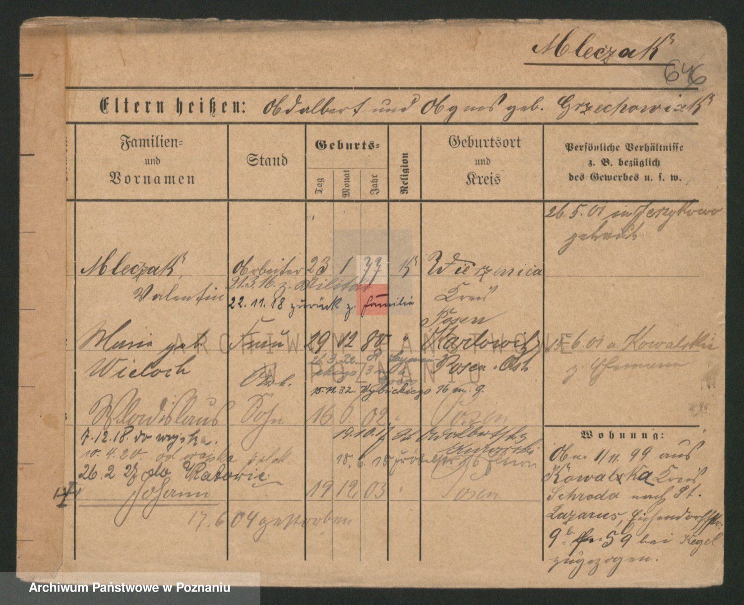 Podgląd karty osobowej dostępny jest po kliknięciu na nazwisko lub ikonkę karty. Można dokonywać powiększenia (ikony na górze) lub przechodzić między kolejnymi skanami (strzałki po bokach).