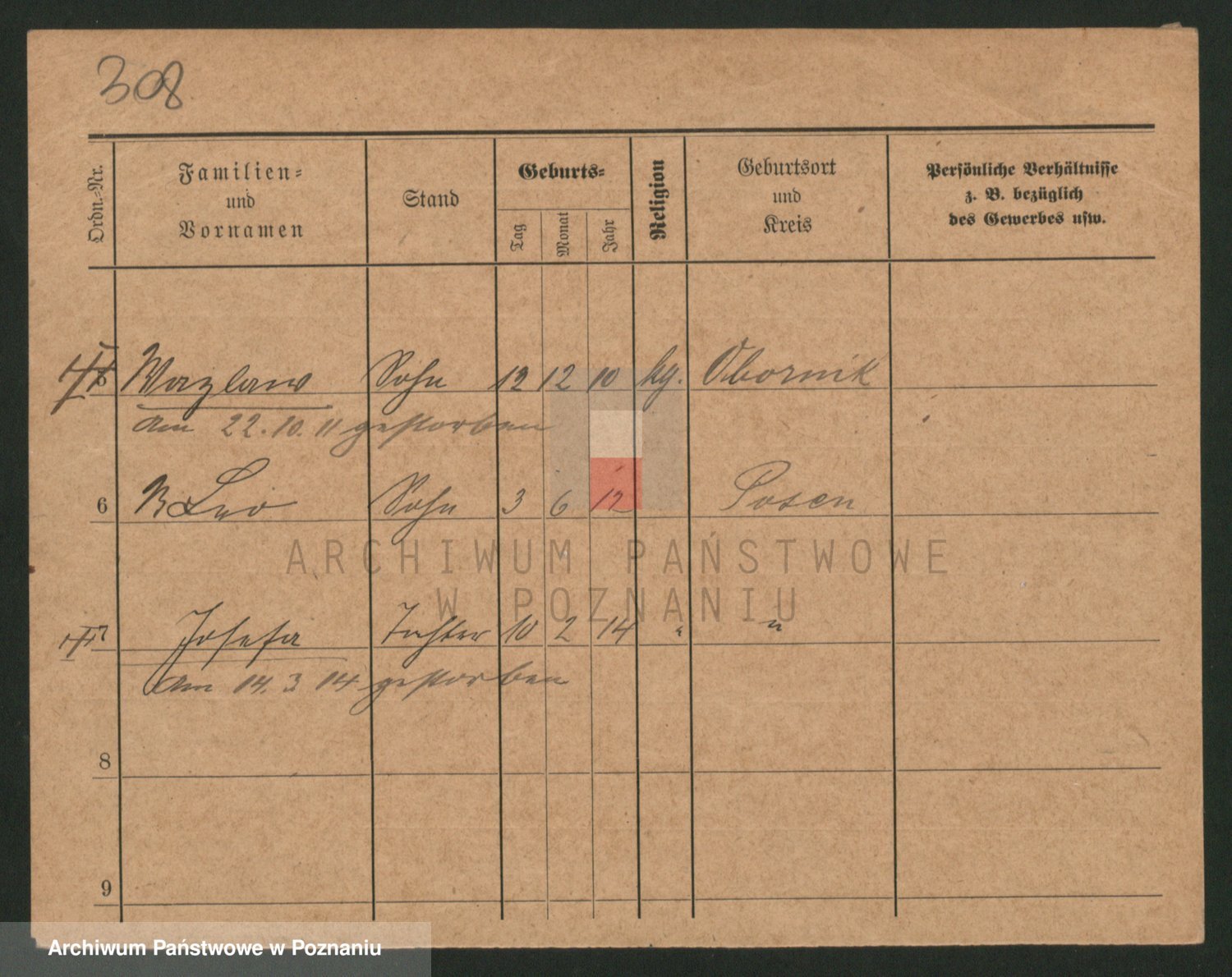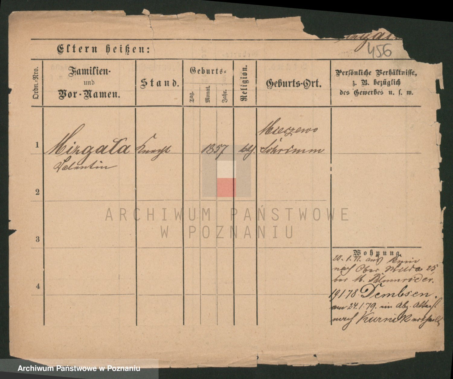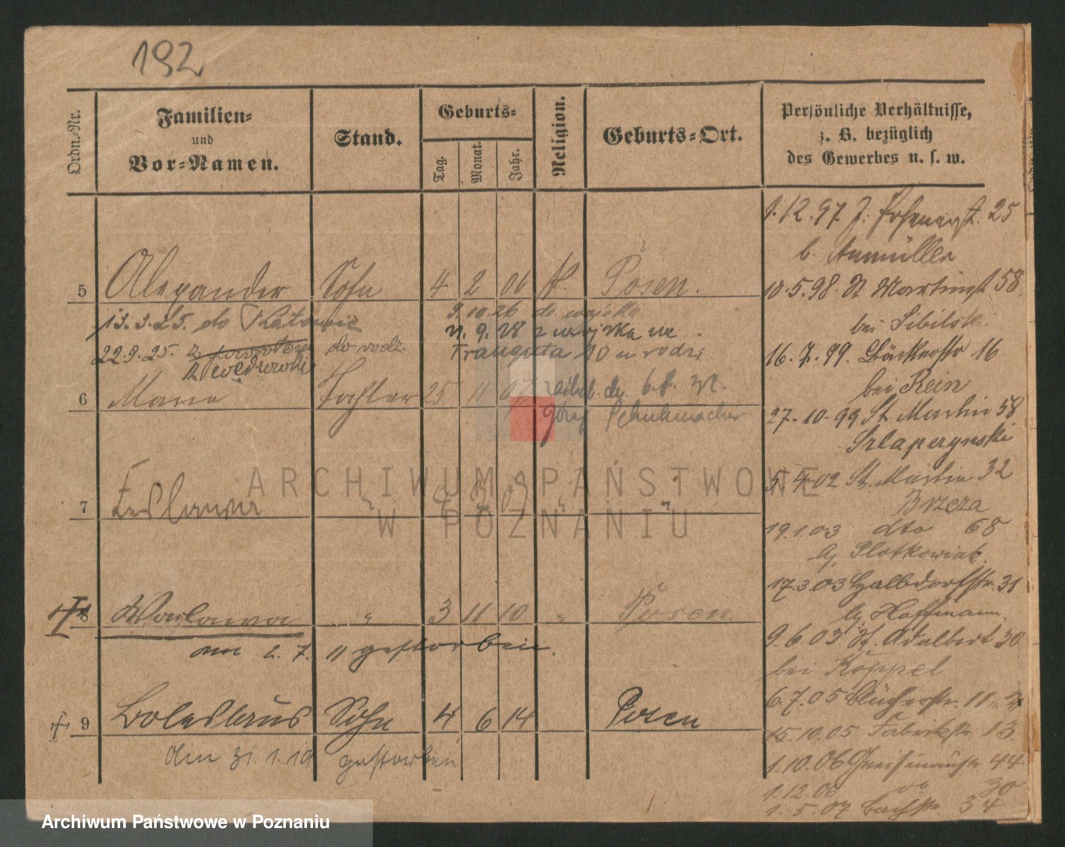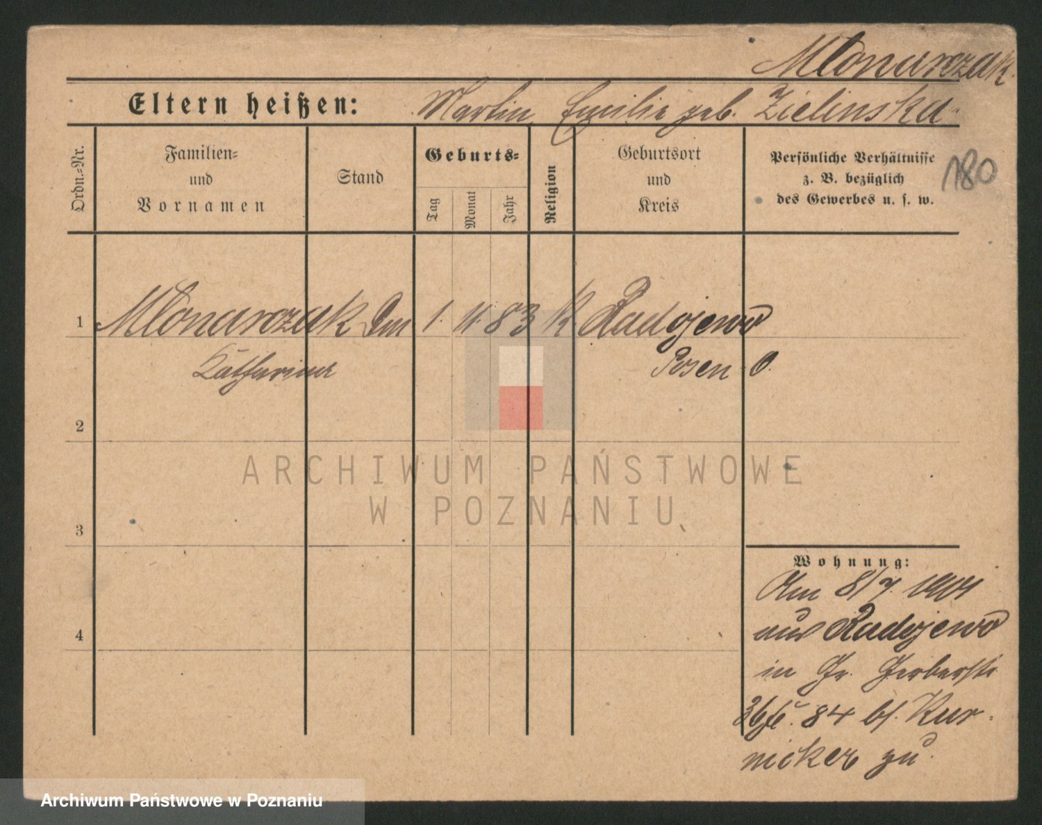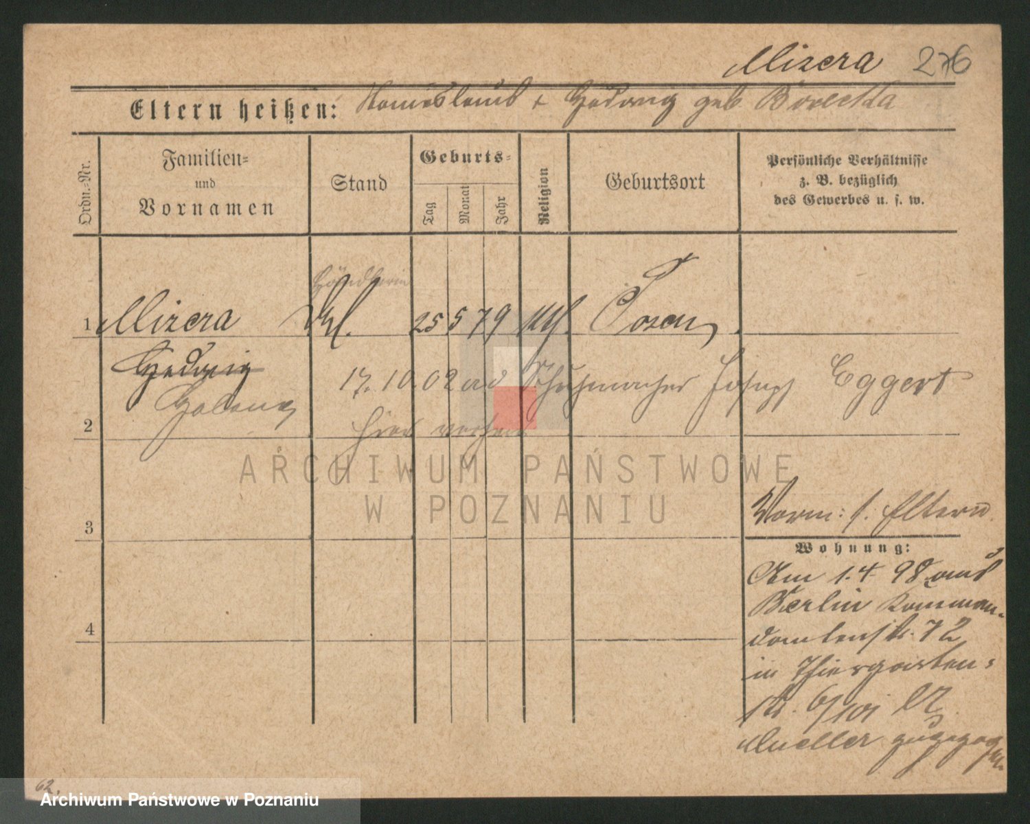 Podgląd karty osobowej dostępny jest po kliknięciu na nazwisko lub ikonkę karty. Można dokonywać powiększenia (ikony na górze) lub przechodzić między kolejnymi skanami (strzałki po bokach).