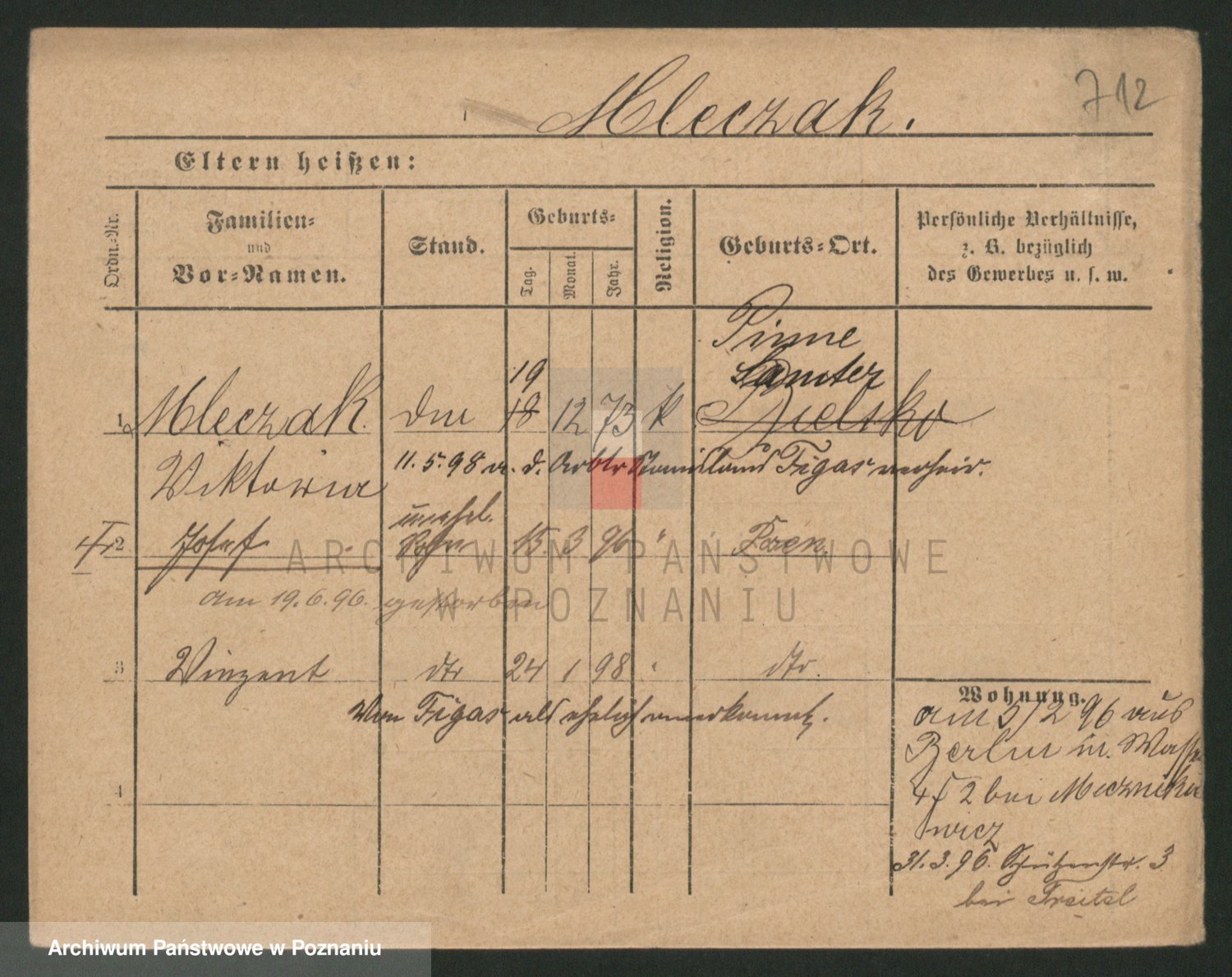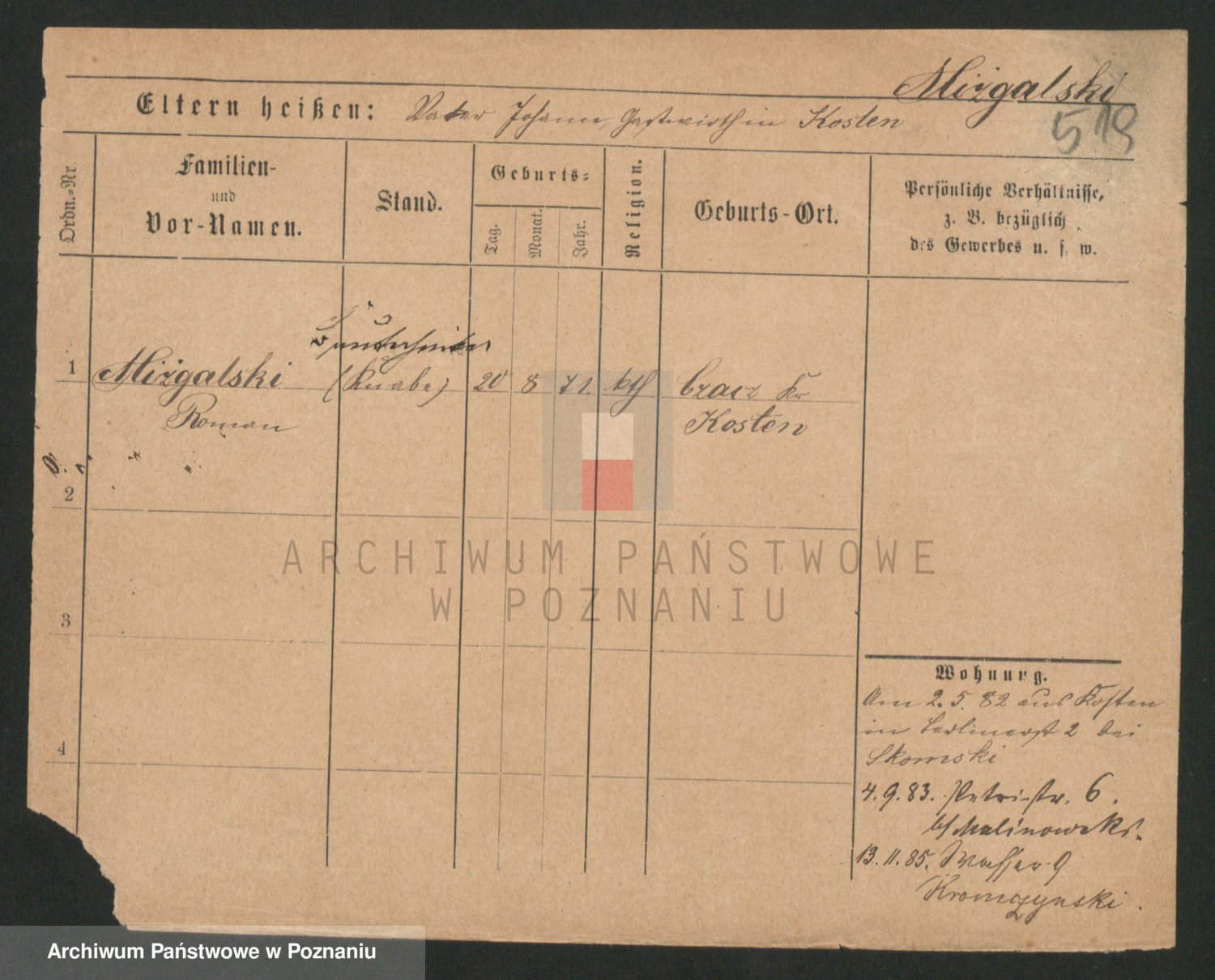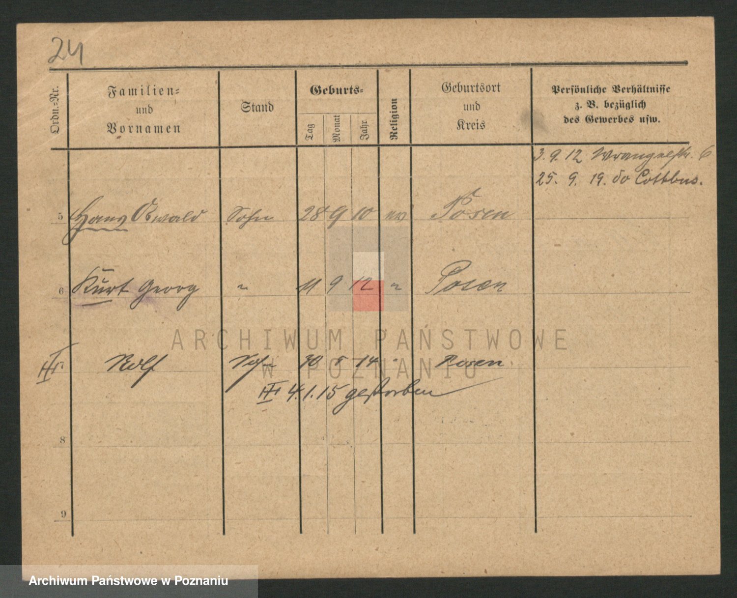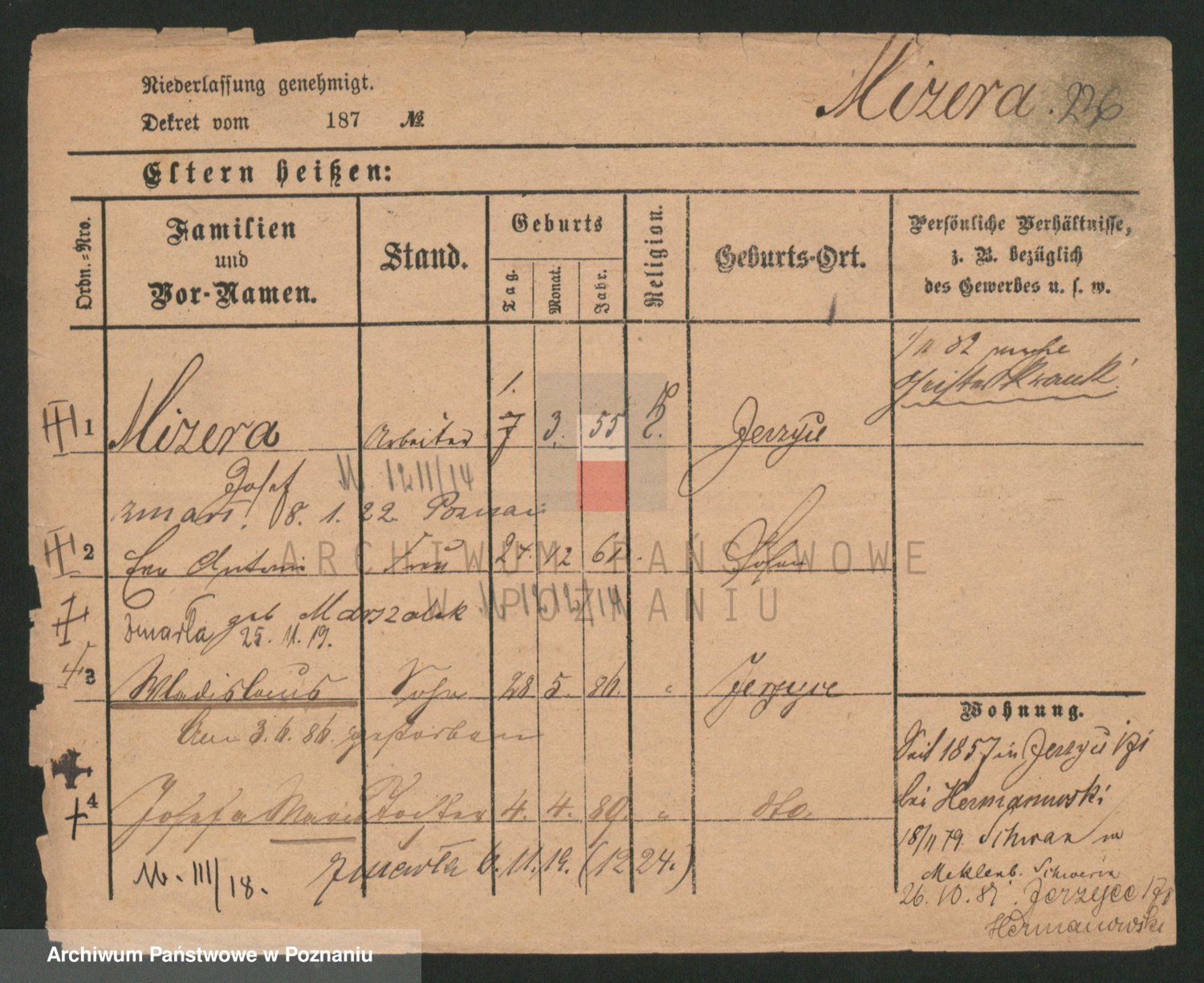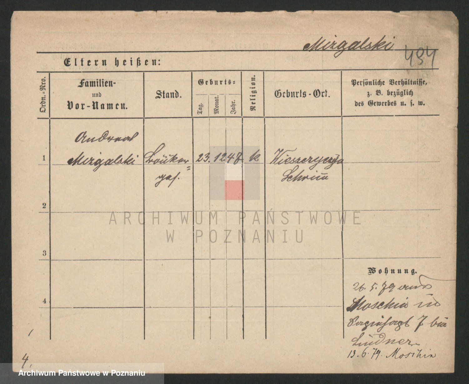 Podgląd karty osobowej dostępny jest po kliknięciu na nazwisko lub ikonkę karty. Można dokonywać powiększenia (ikony na górze) lub przechodzić między kolejnymi skanami (strzałki po bokach).