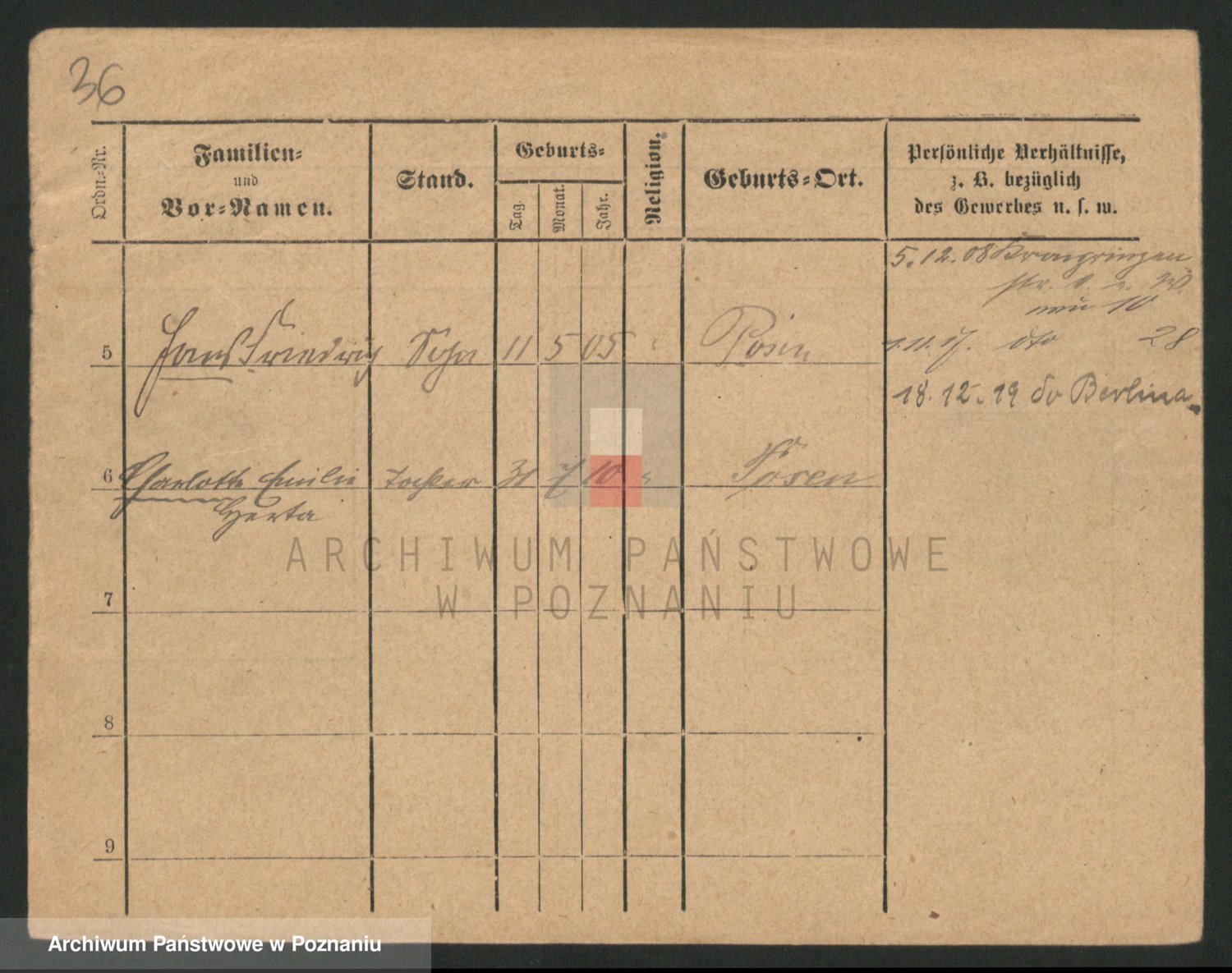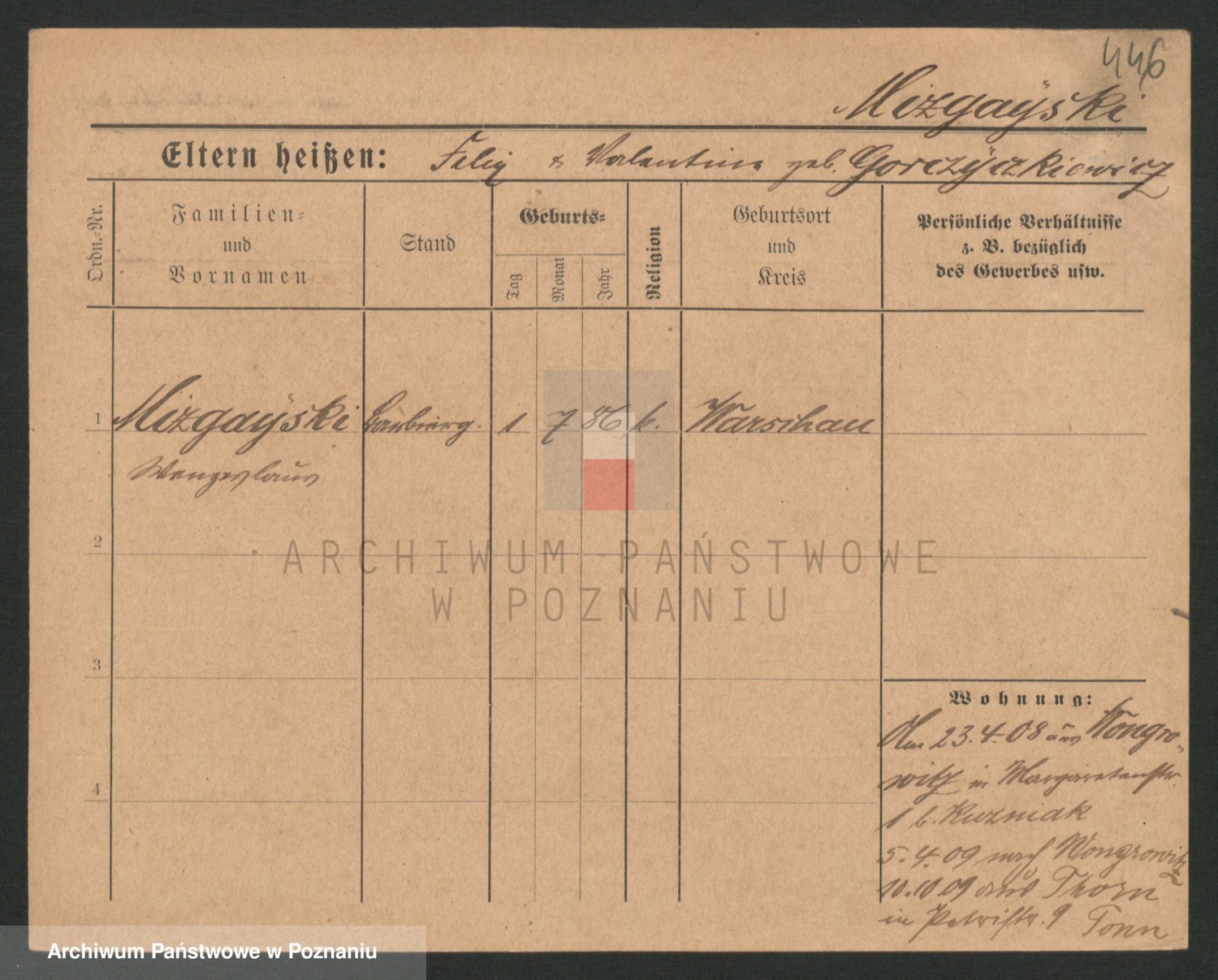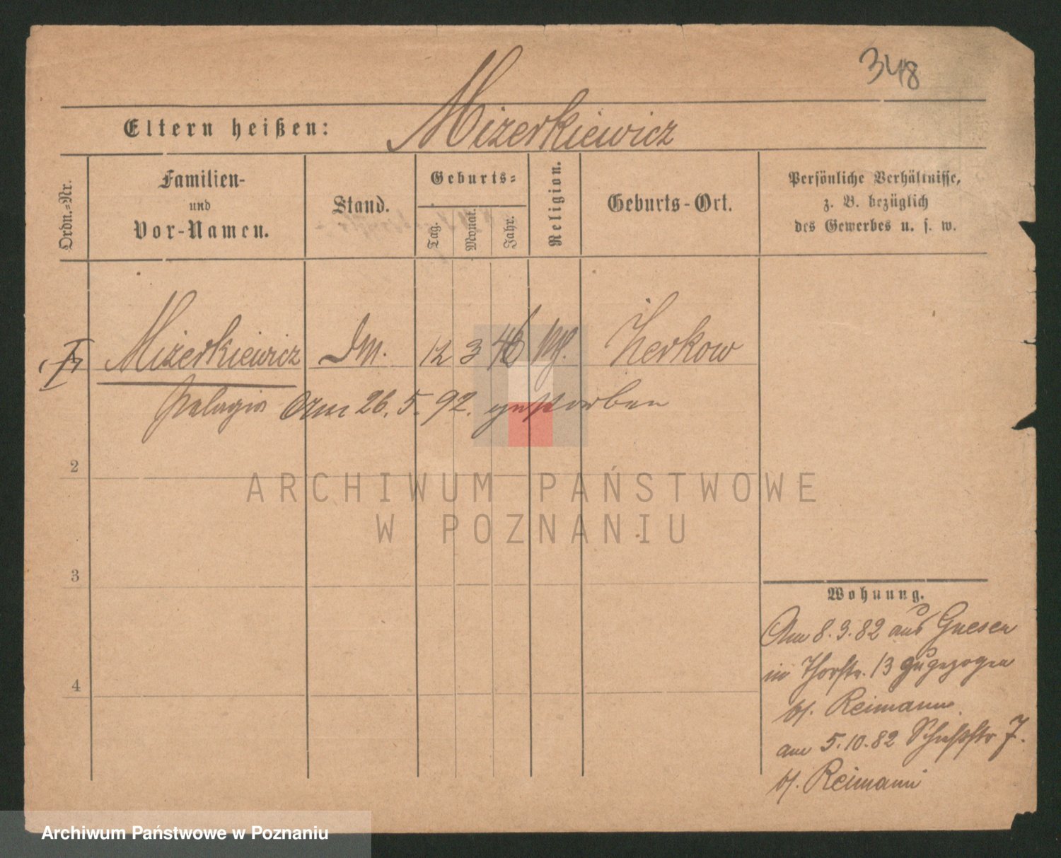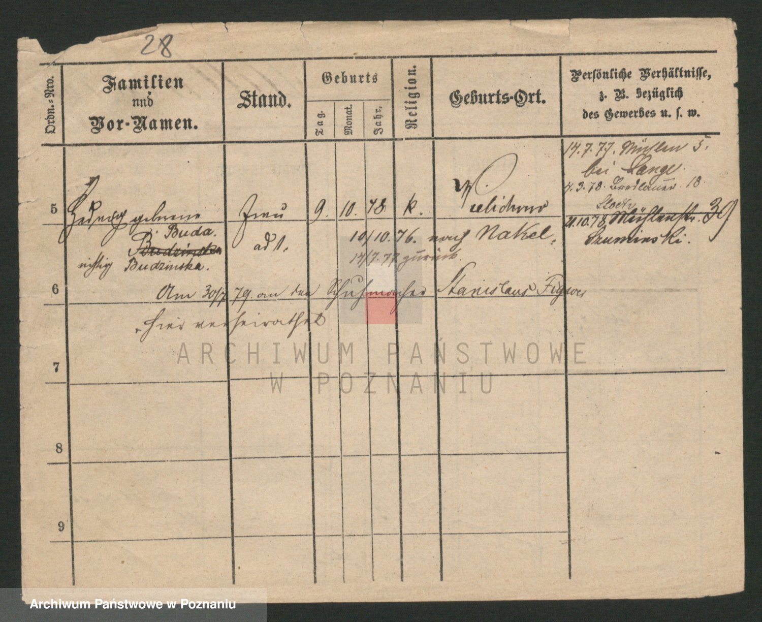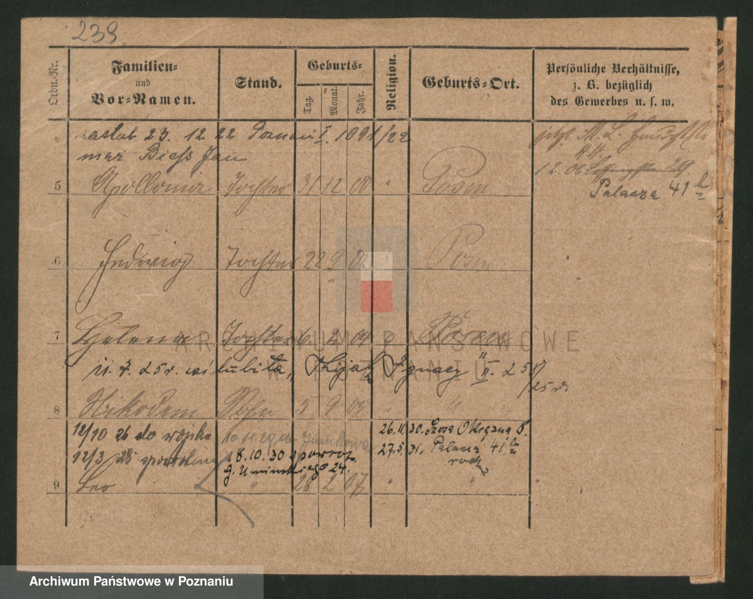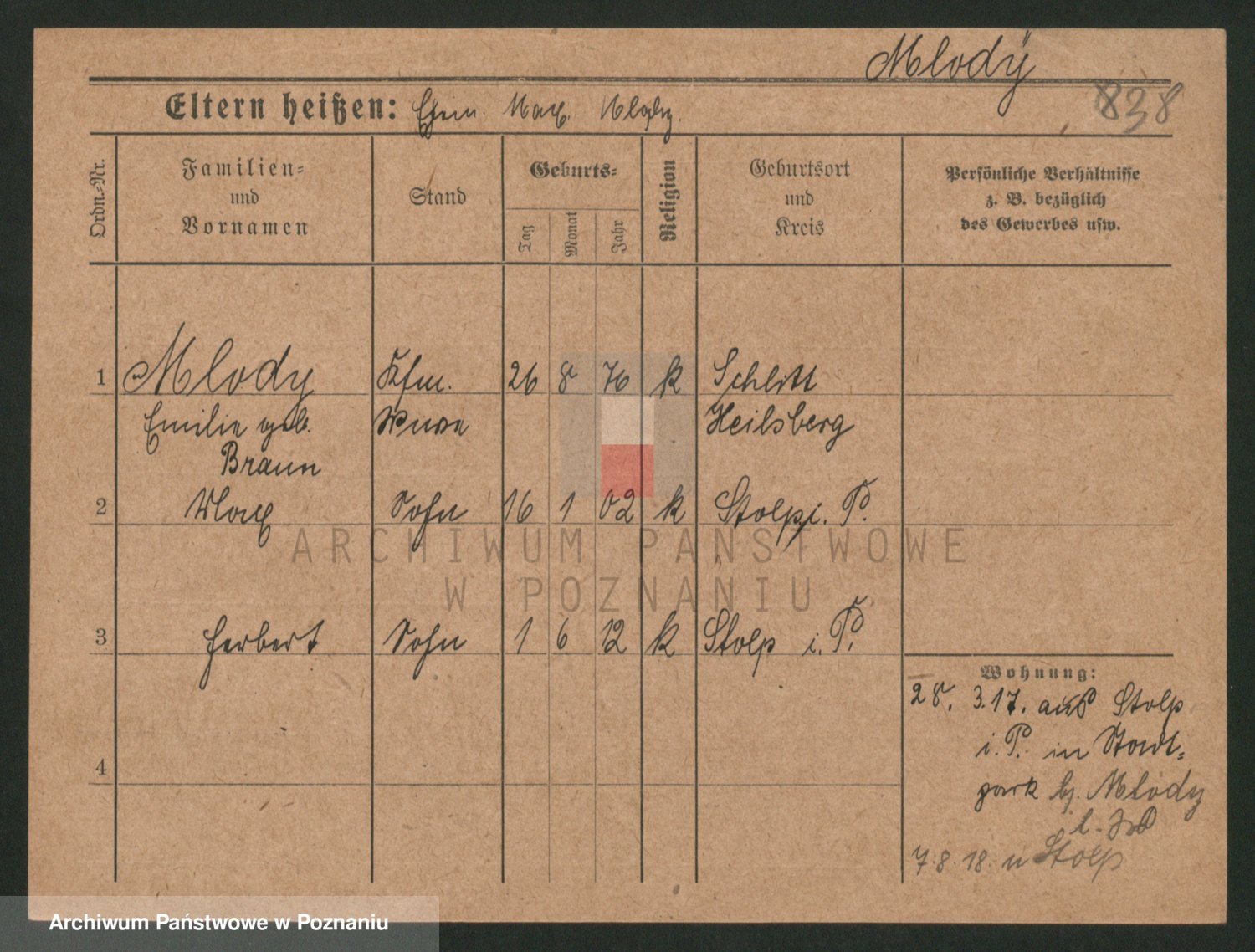 Podgląd karty osobowej dostępny jest po kliknięciu na nazwisko lub ikonkę karty. Można dokonywać powiększenia (ikony na górze) lub przechodzić między kolejnymi skanami (strzałki po bokach).
