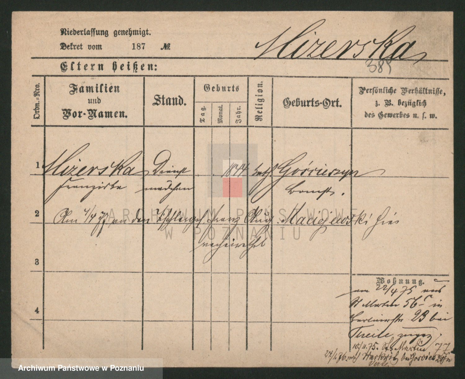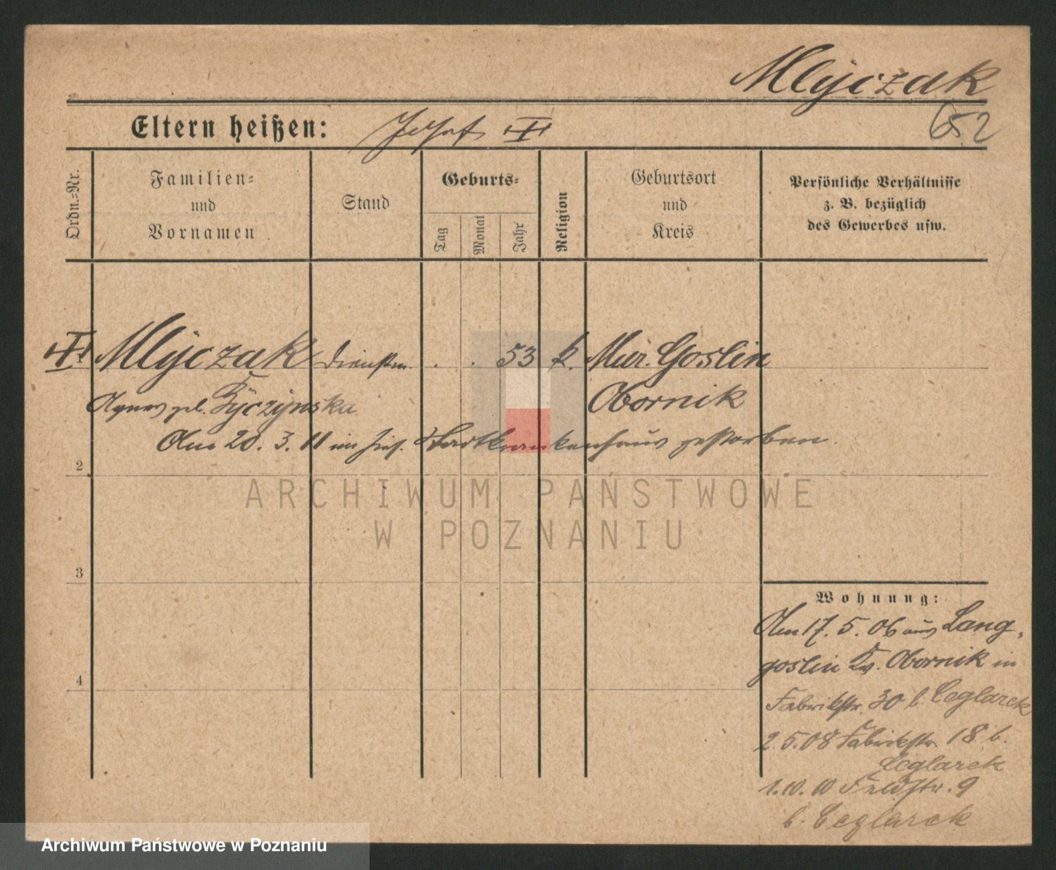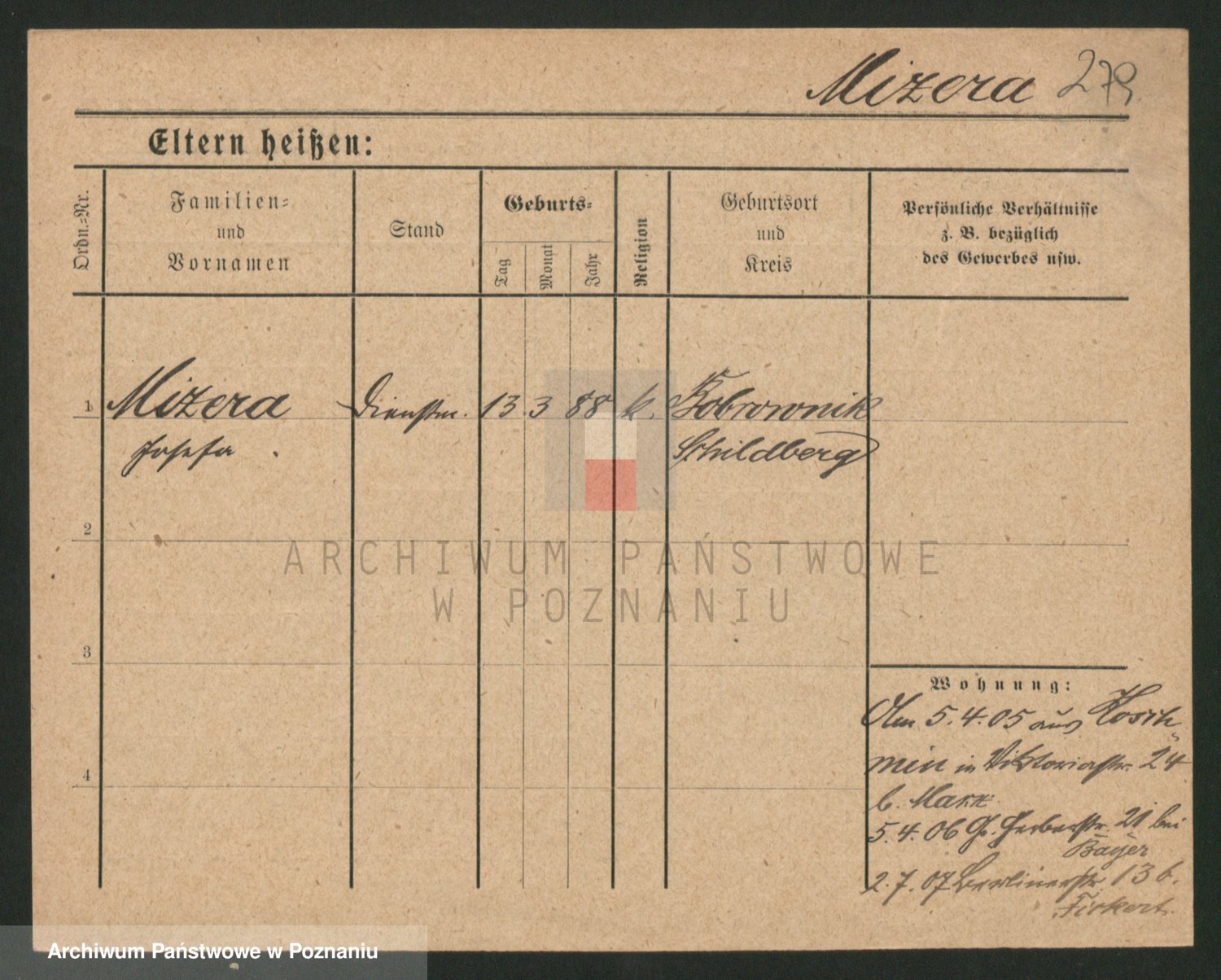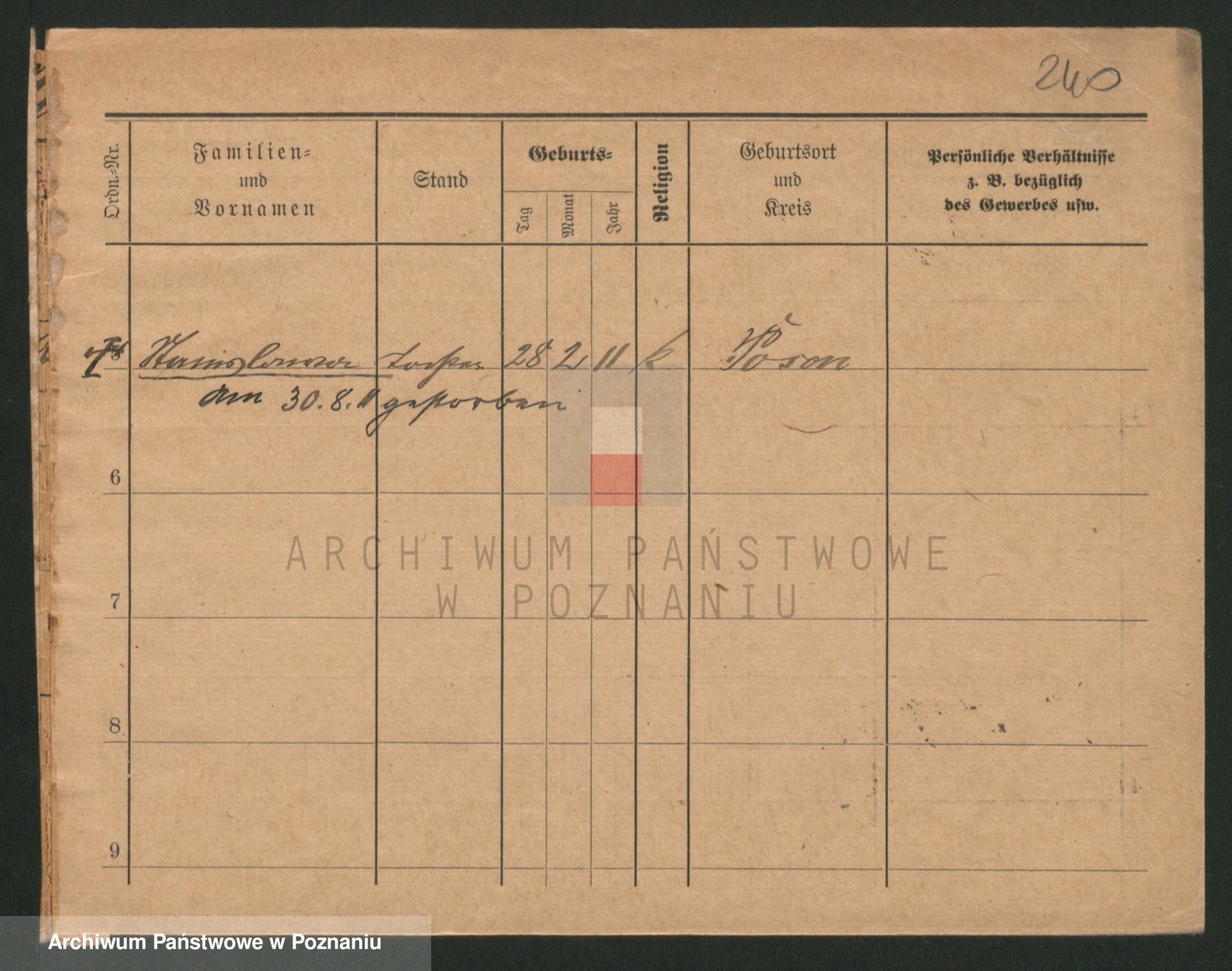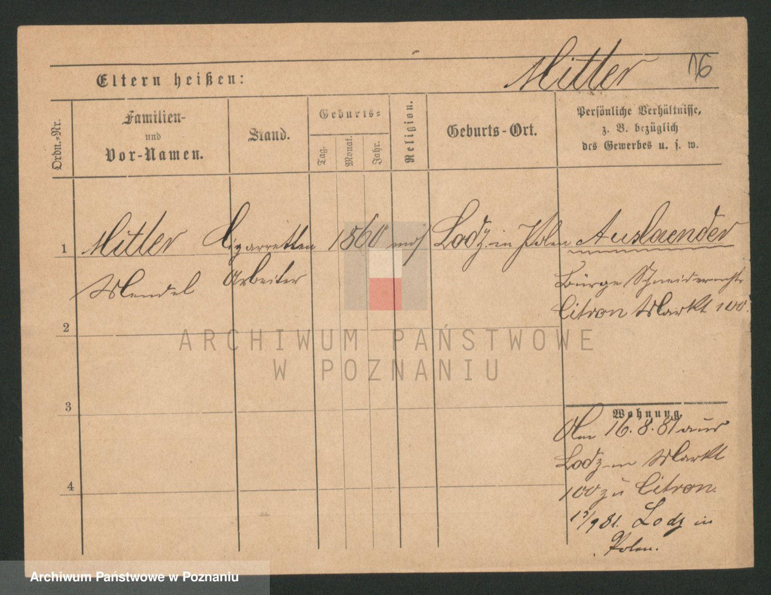 Podgląd karty osobowej dostępny jest po kliknięciu na nazwisko lub ikonkę karty. Można dokonywać powiększenia (ikony na górze) lub przechodzić między kolejnymi skanami (strzałki po bokach).