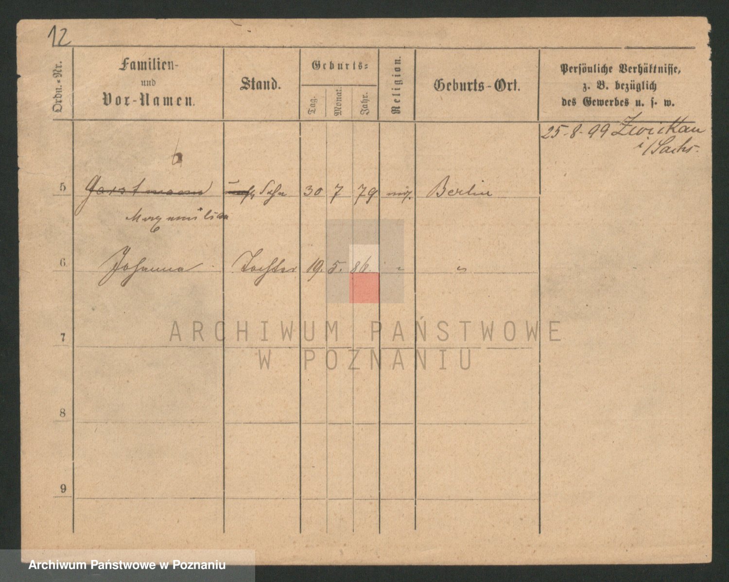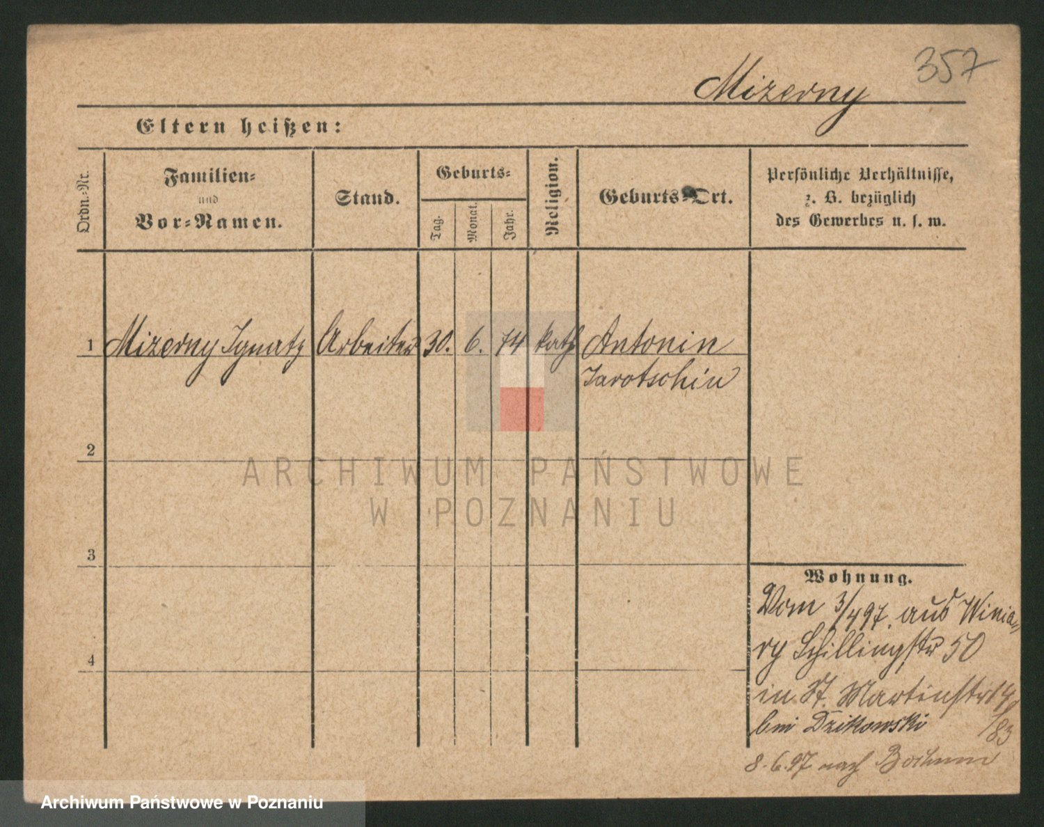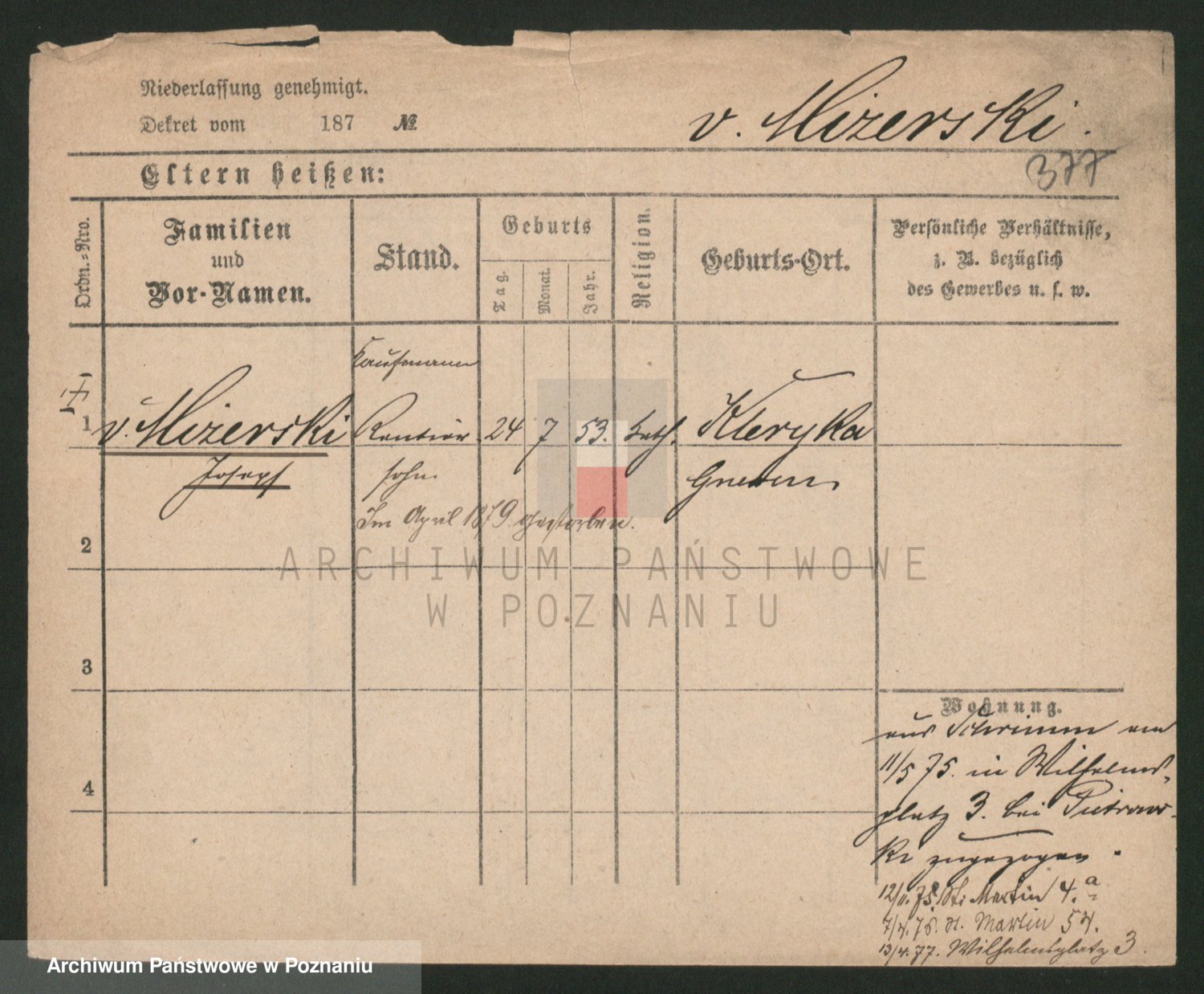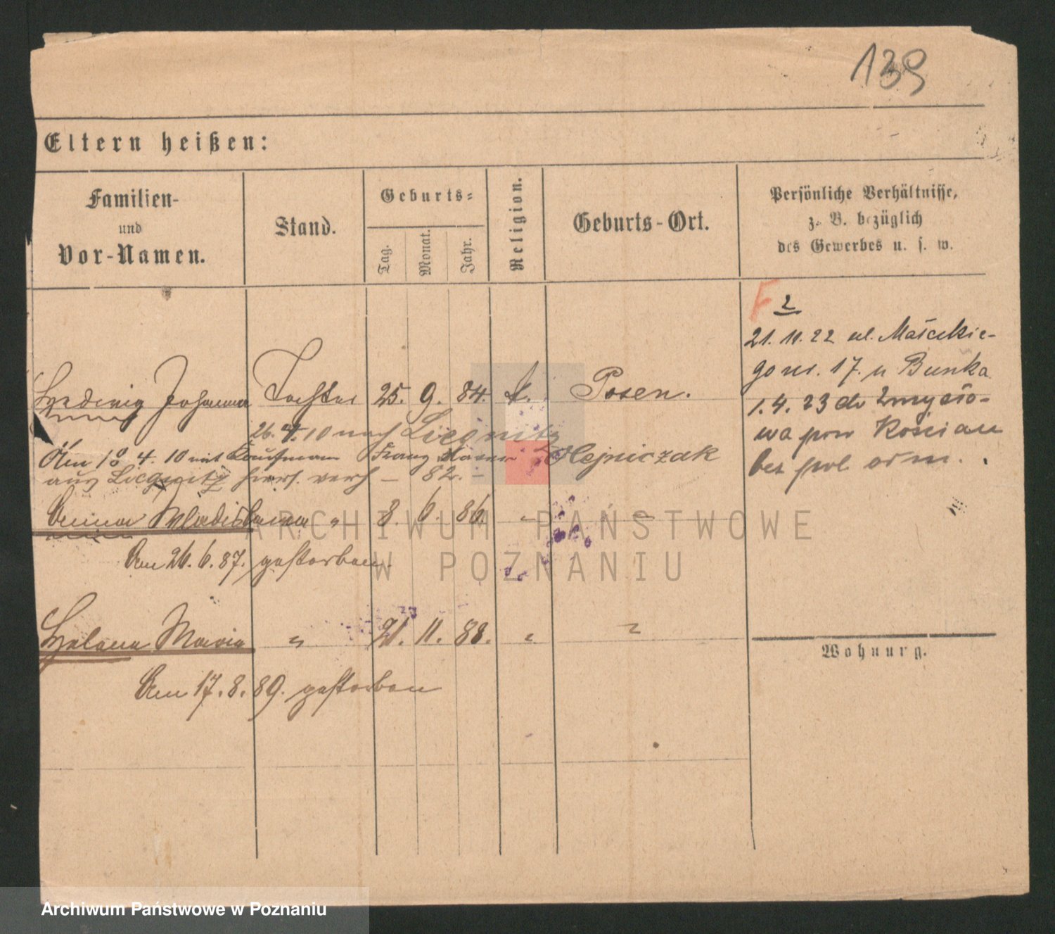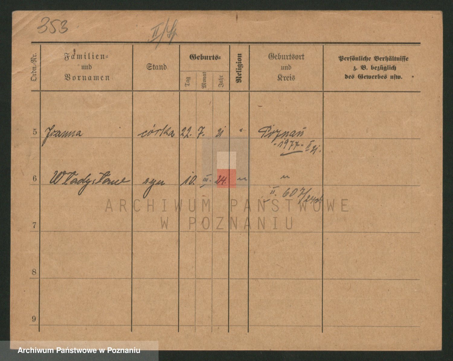Podgląd karty osobowej dostępny jest po kliknięciu na nazwisko lub ikonkę karty. Można dokonywać powiększenia (ikony na górze) lub przechodzić między kolejnymi skanami (strzałki po bokach).
