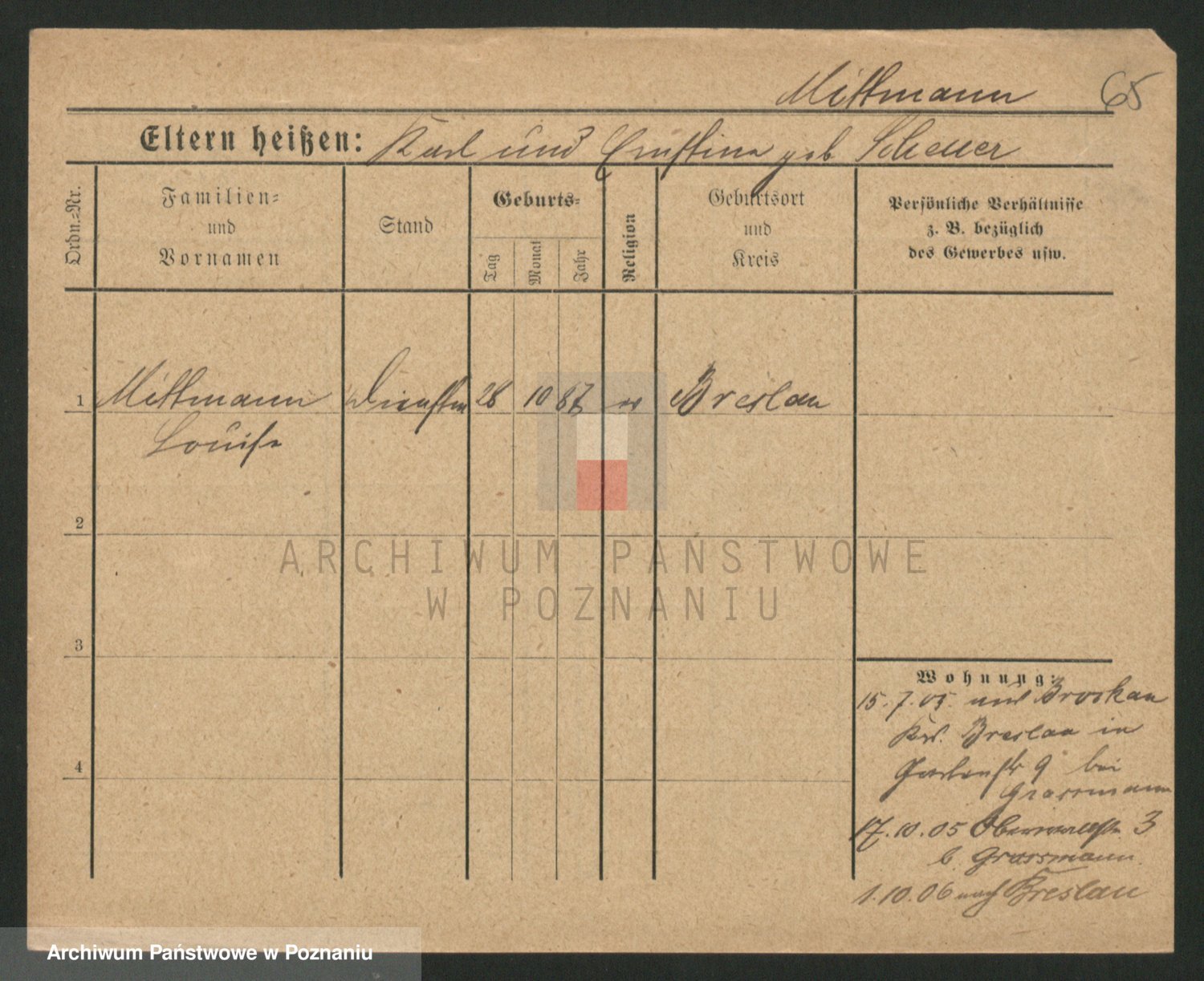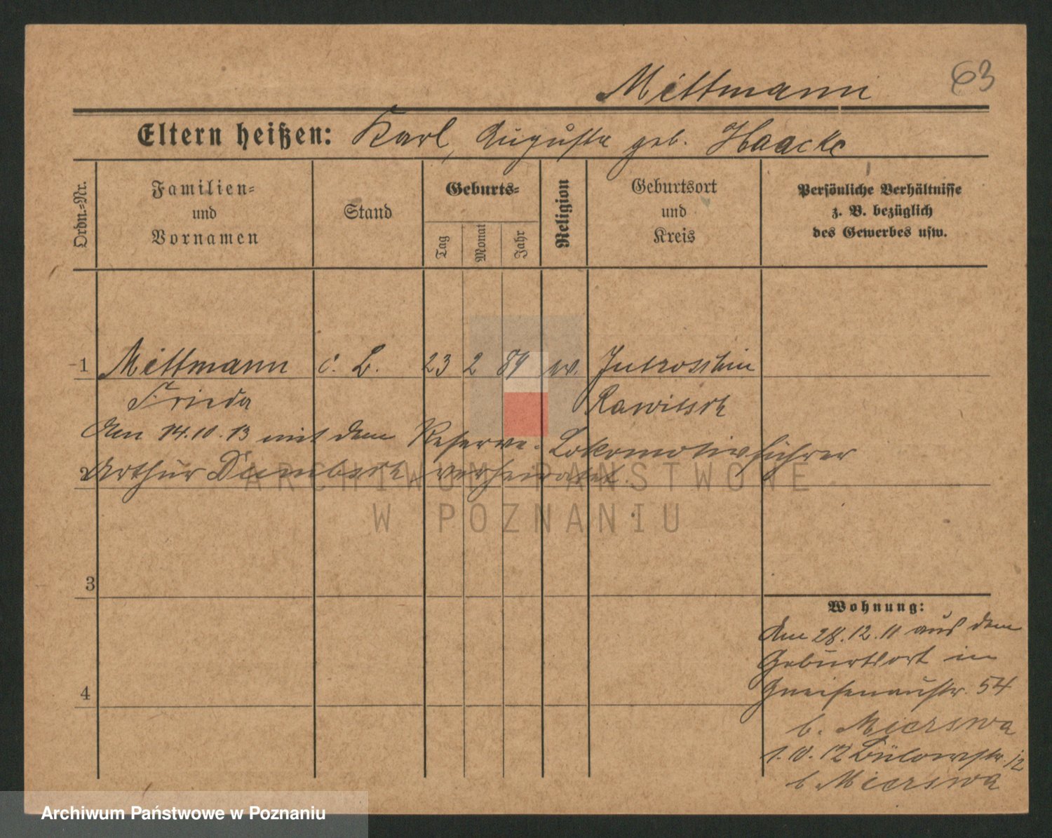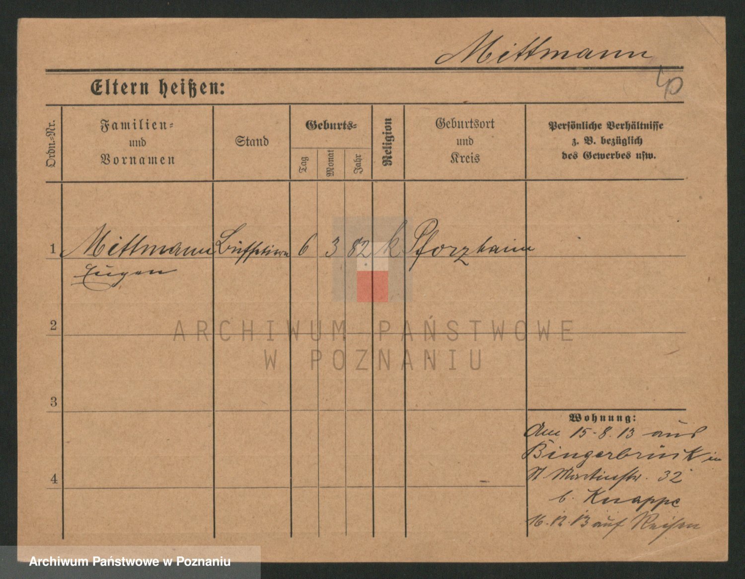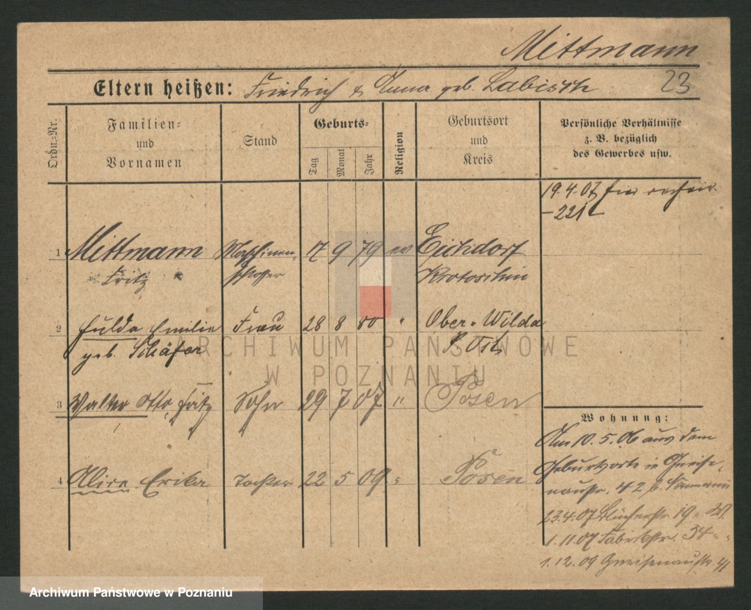 Mittmann zd. Biech p. v. Kriegel, Auguste