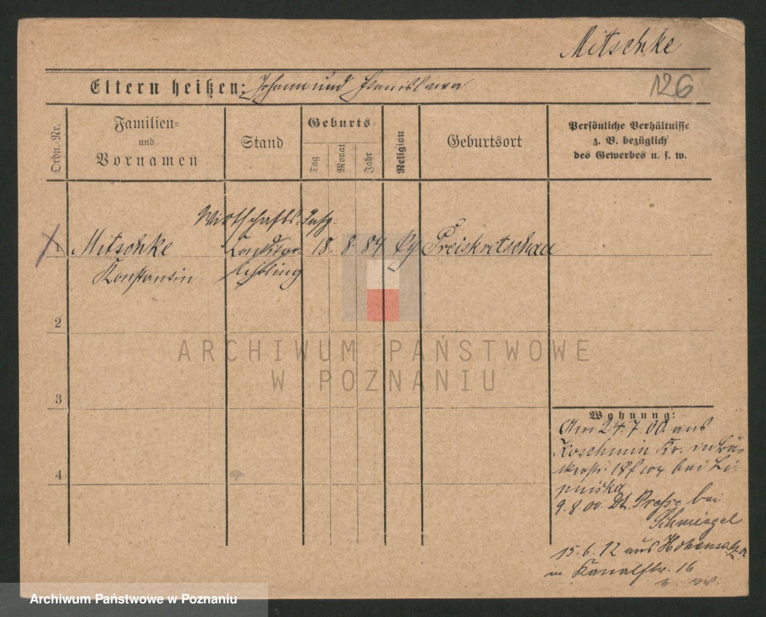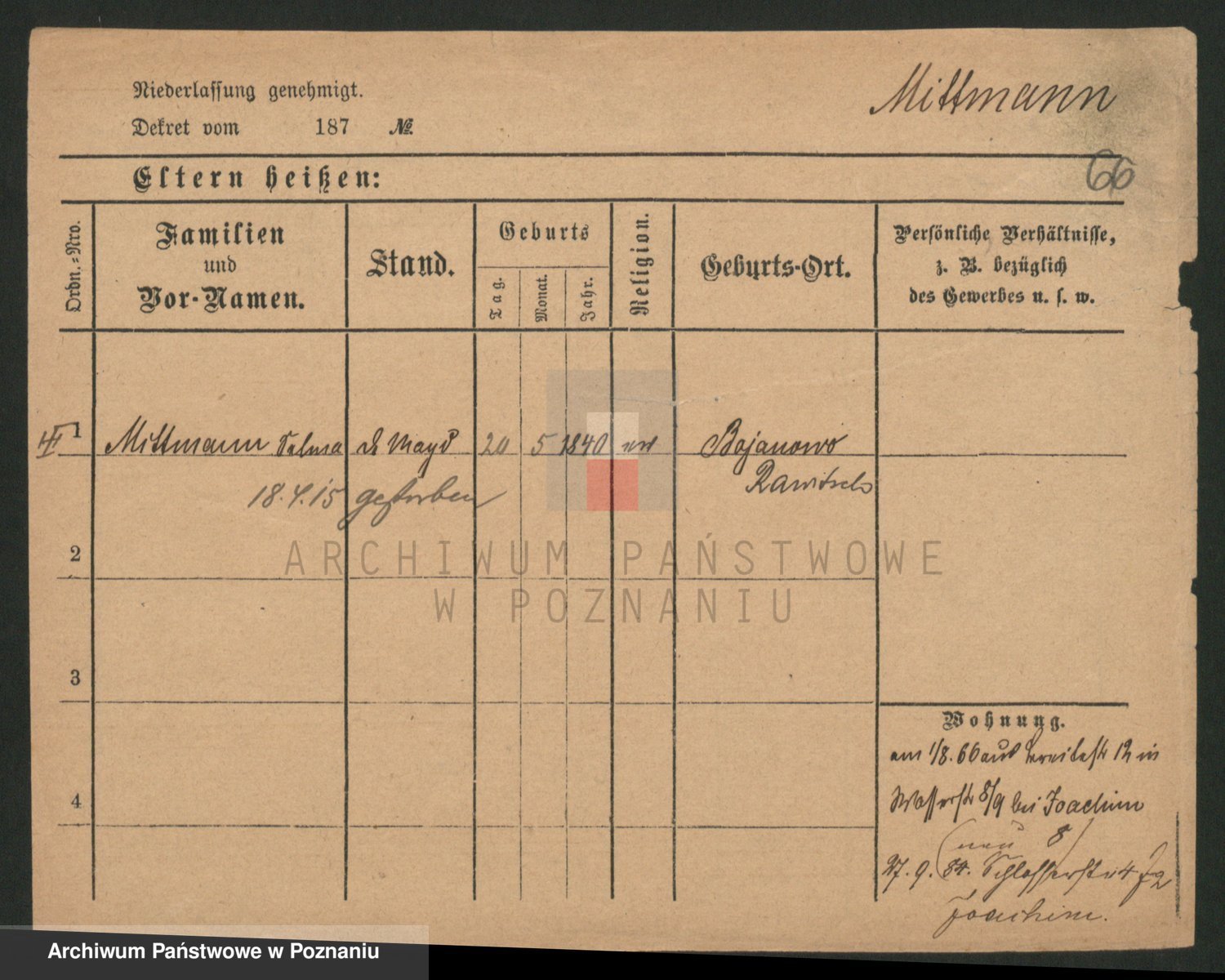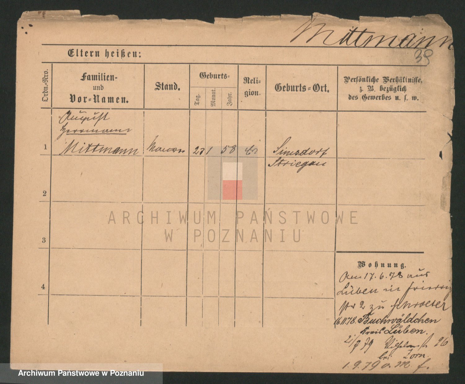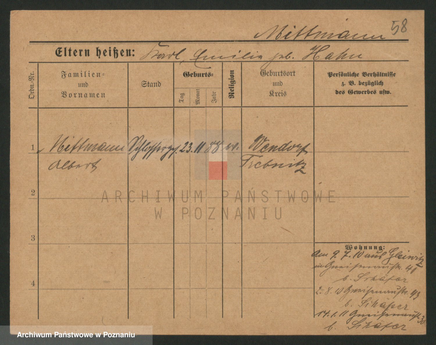 Mittmann zd. Biech p. v. Kriegel, Auguste