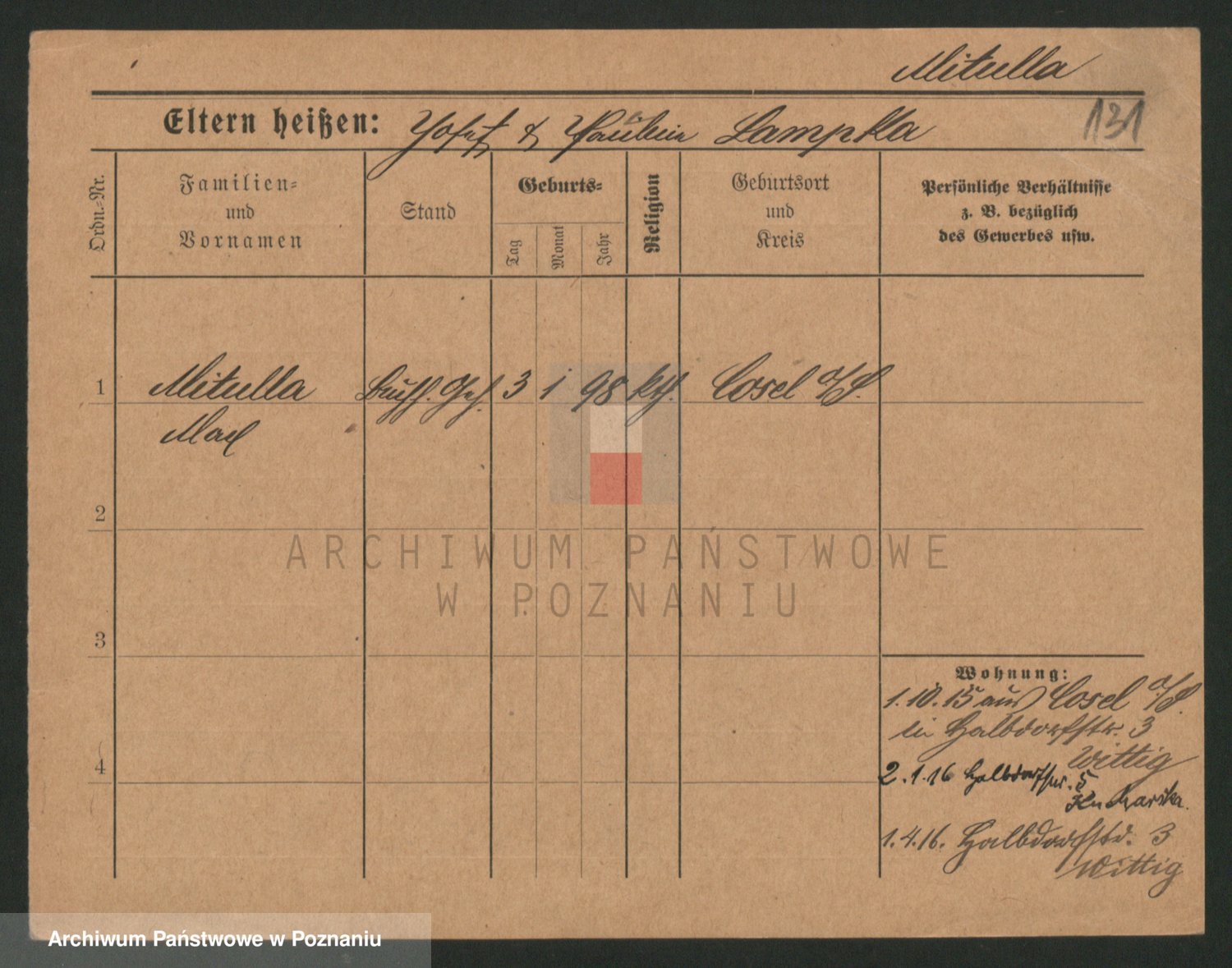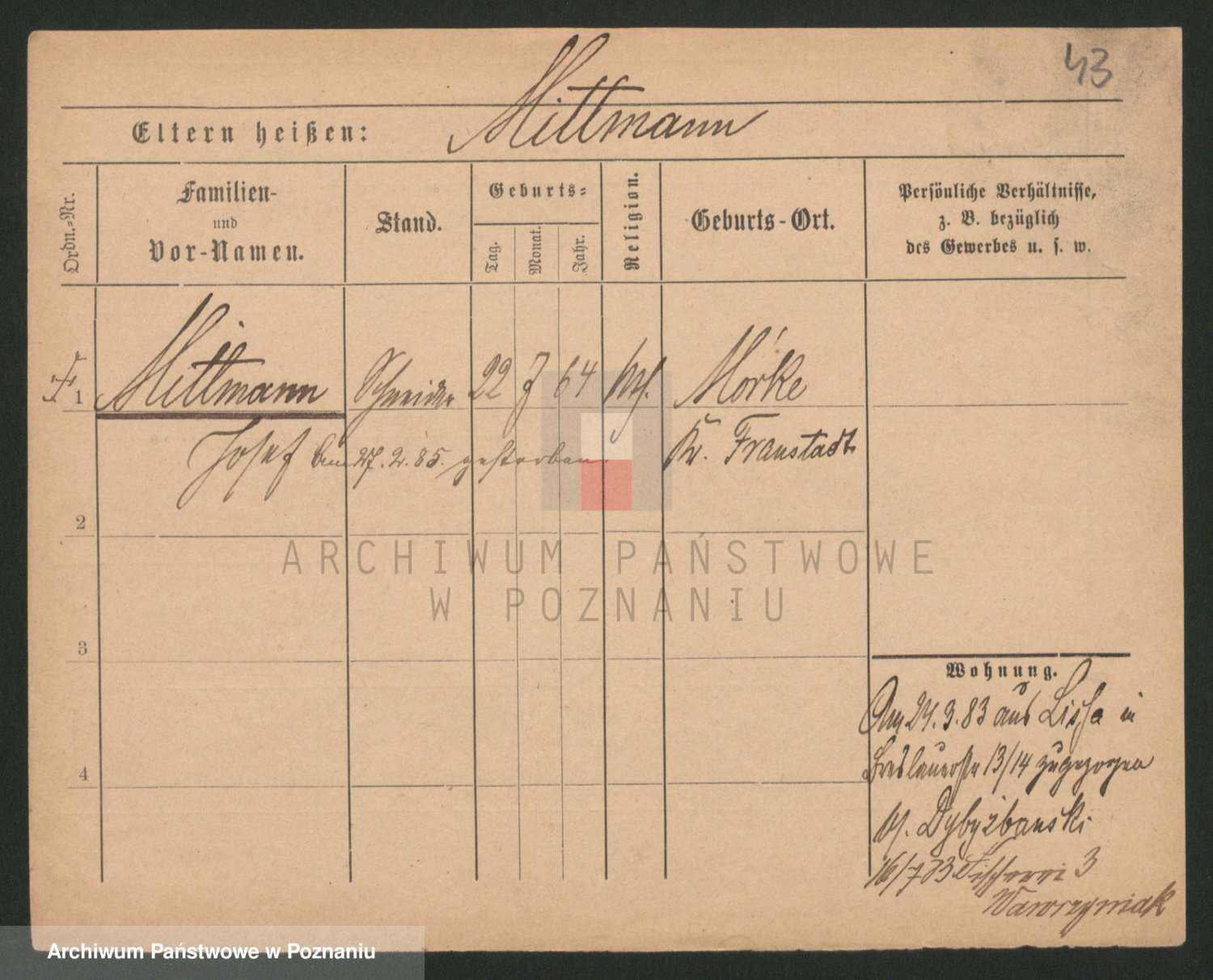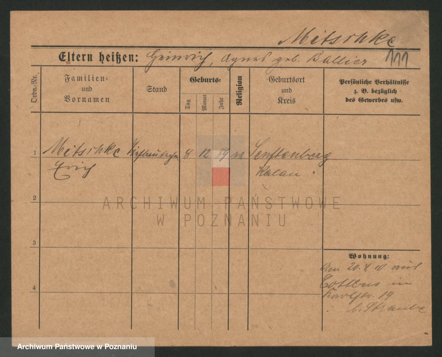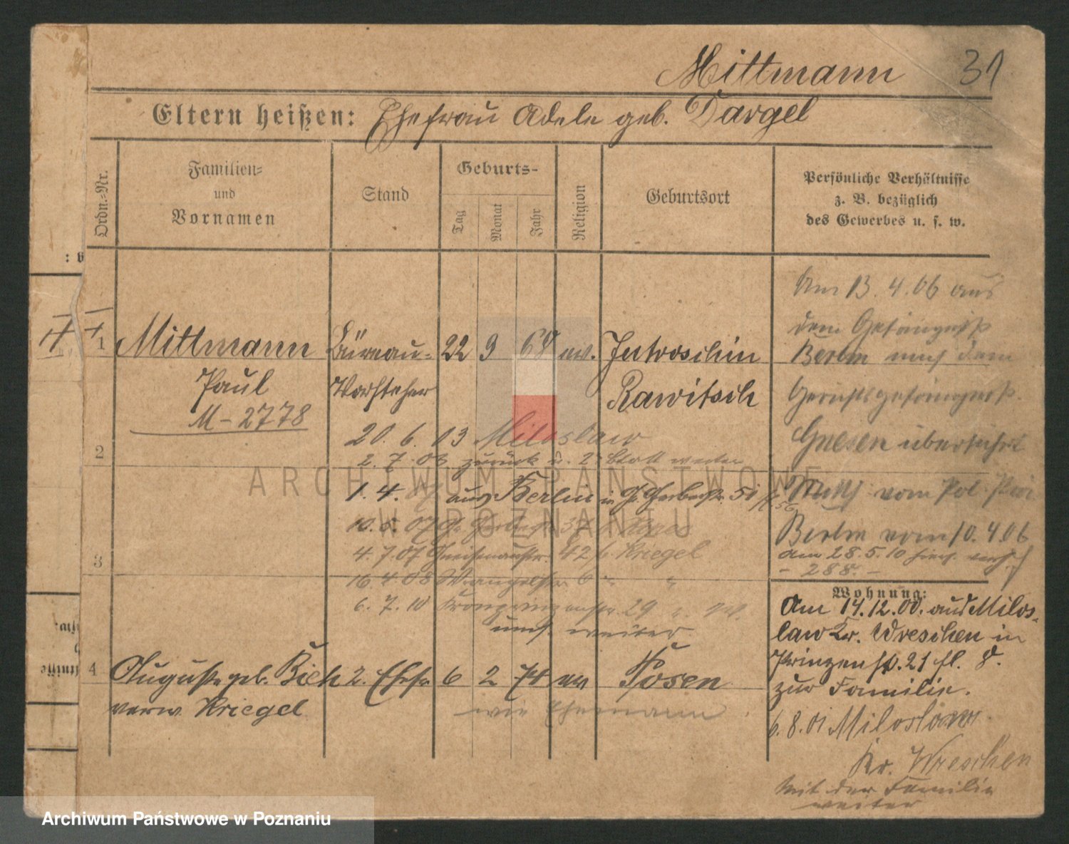 Mittmann zd. Biech p. v. Kriegel, Auguste