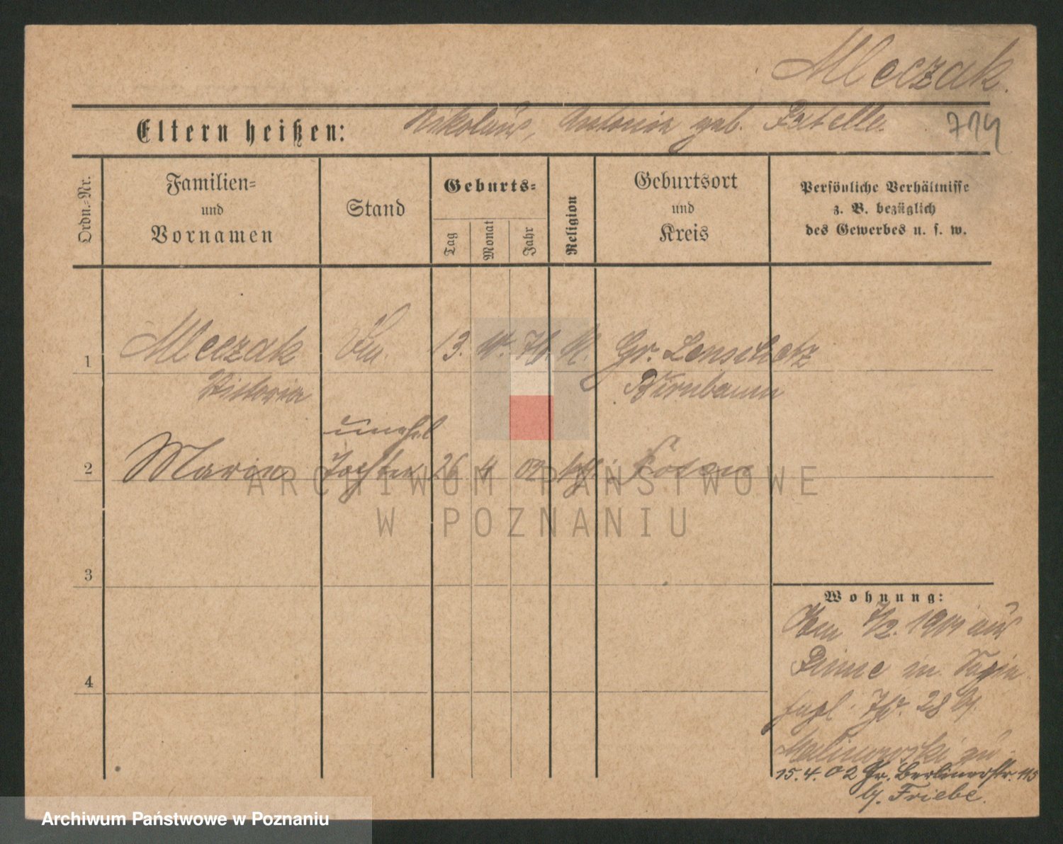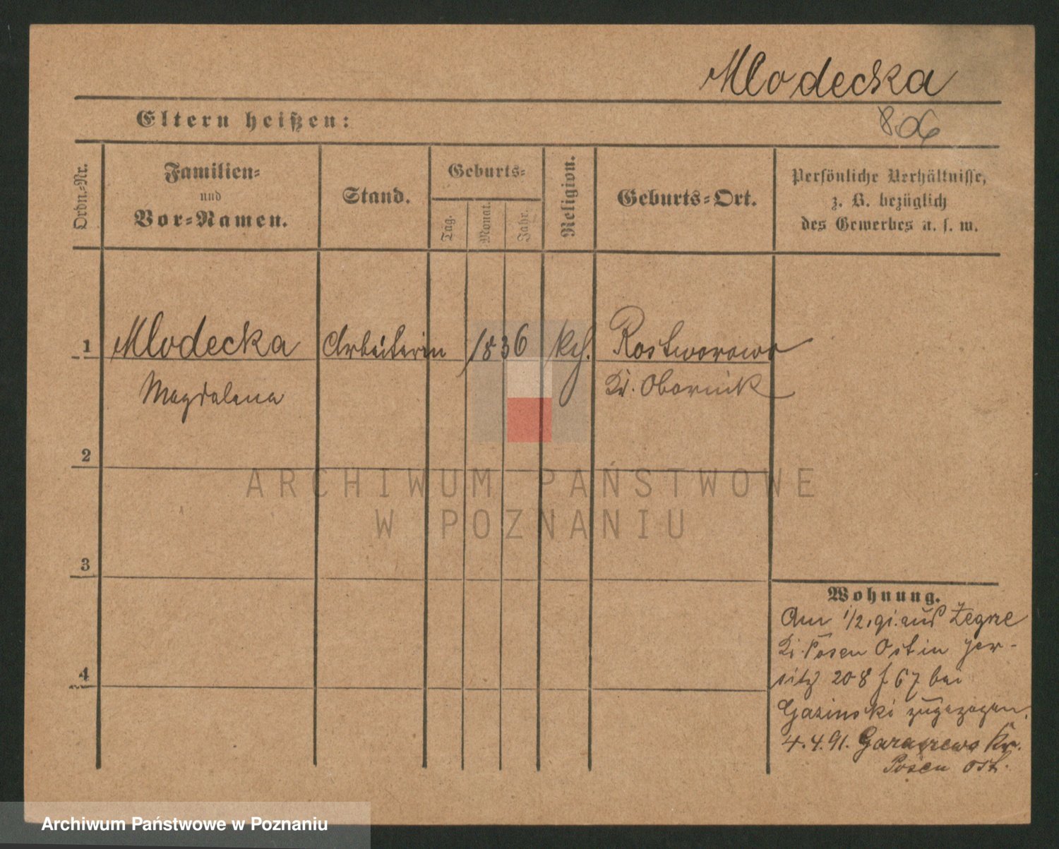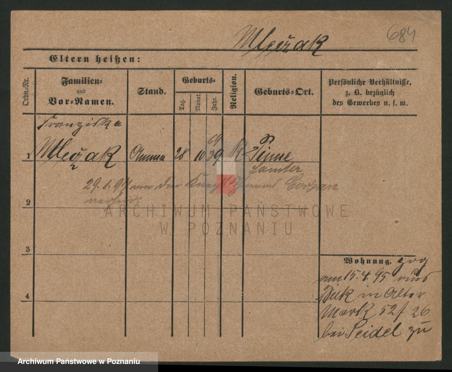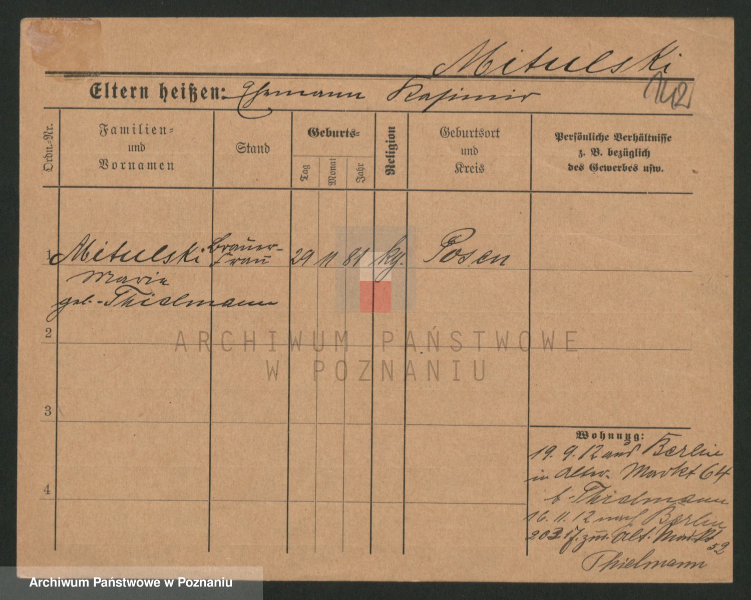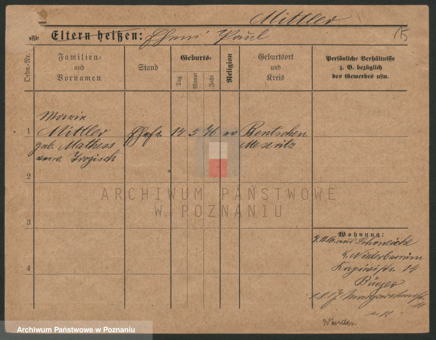 Mittler zd. Matthens p. v. Trogisch, Marie
