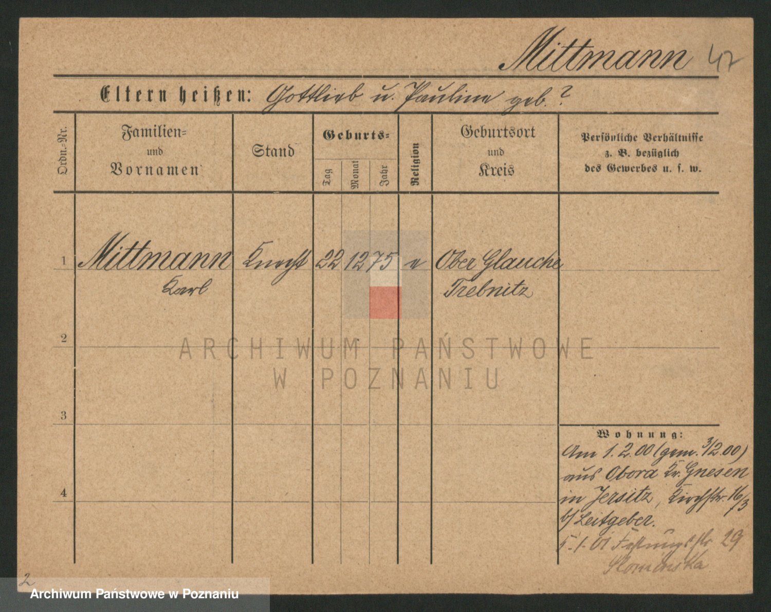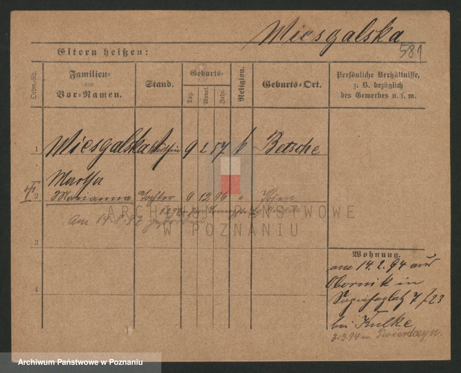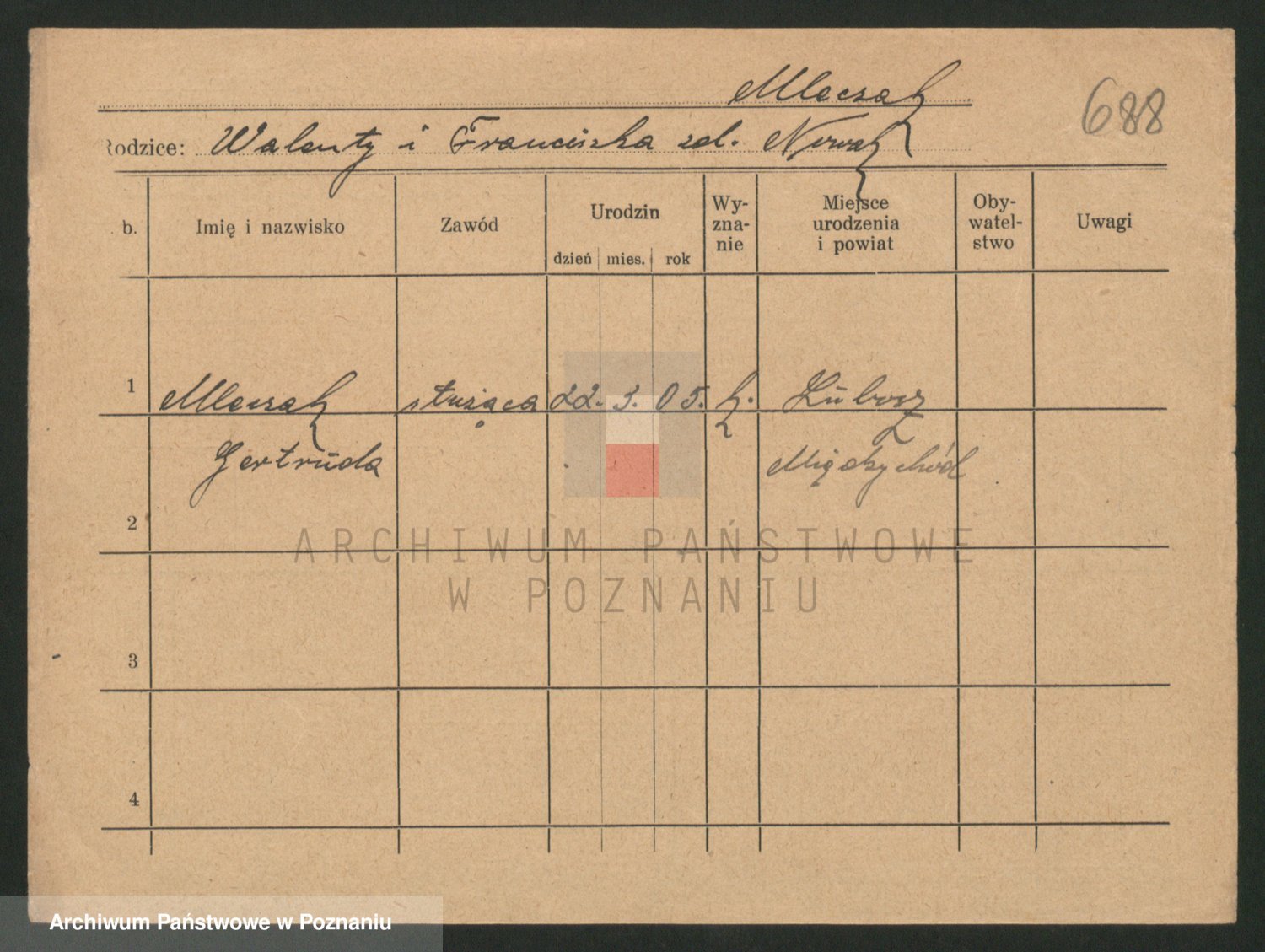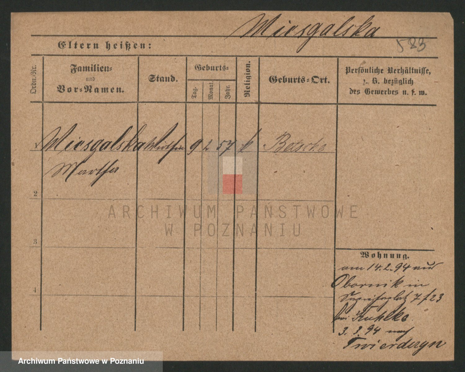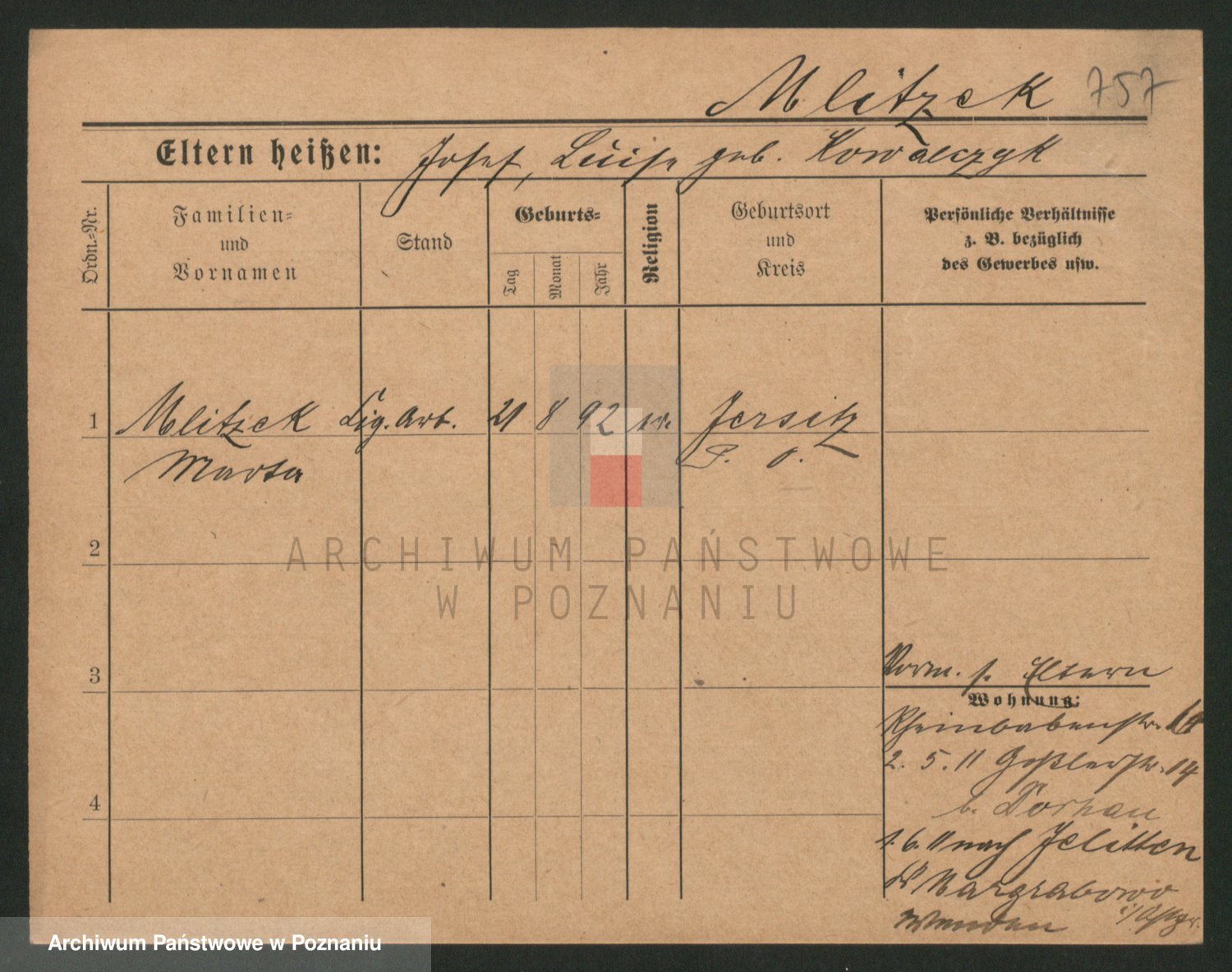 Mittler zd. Matthens p. v. Trogisch, Marie