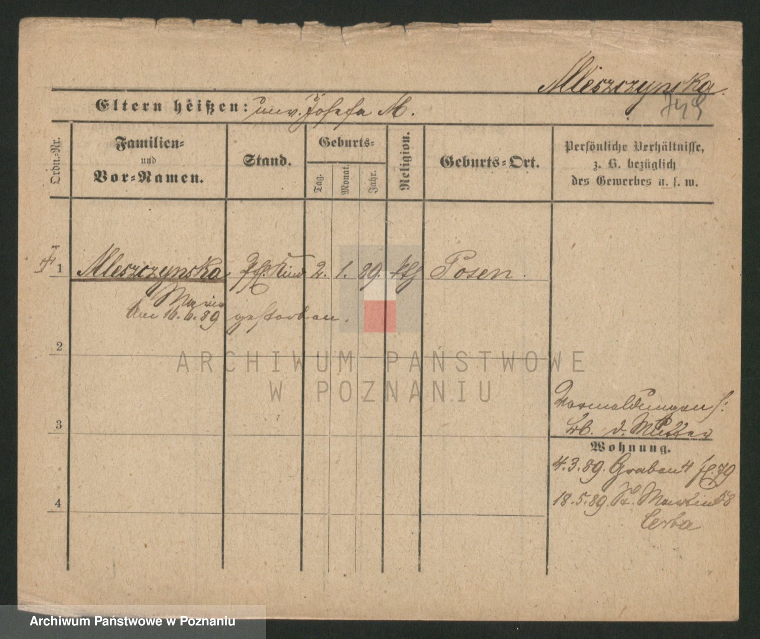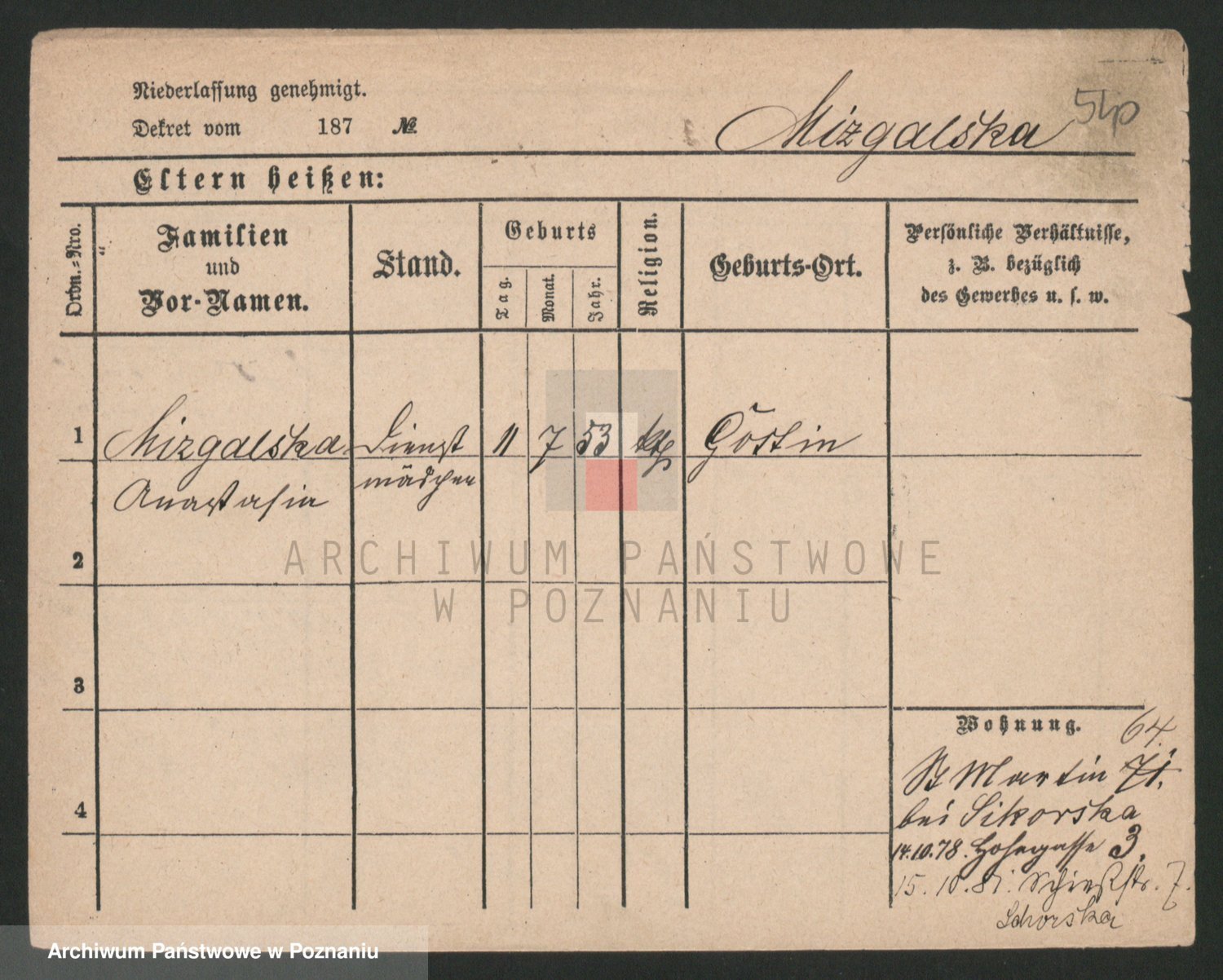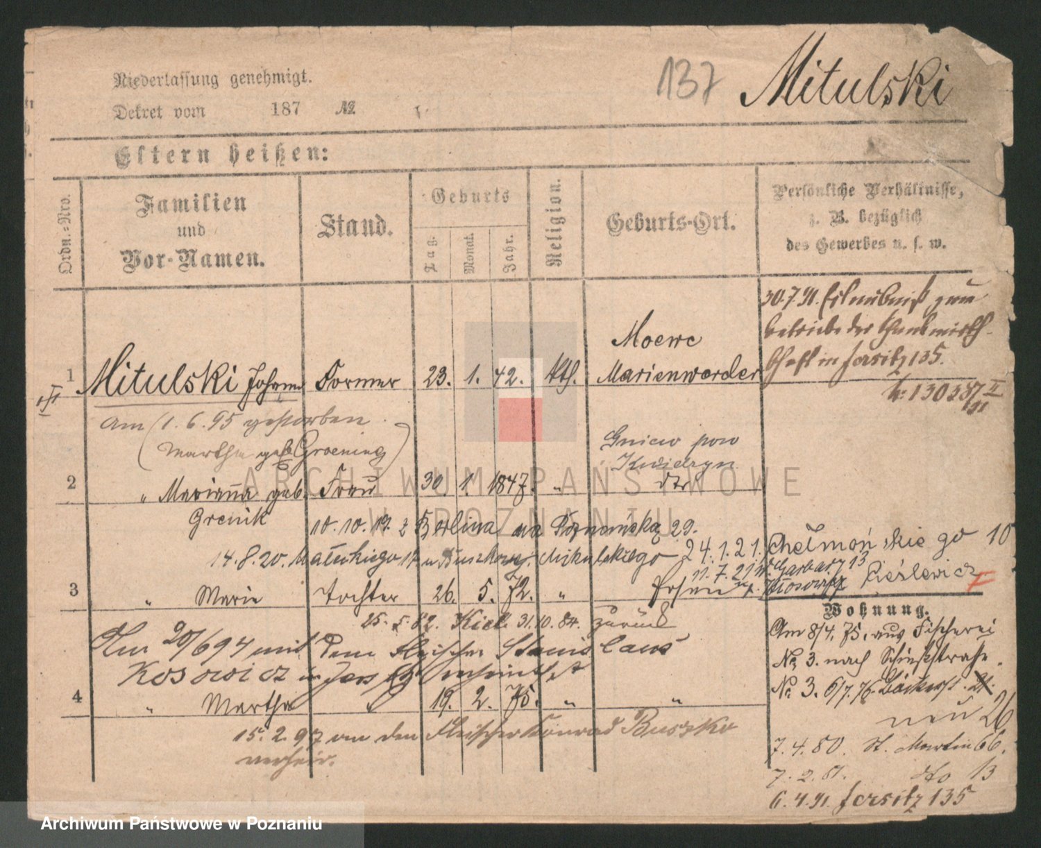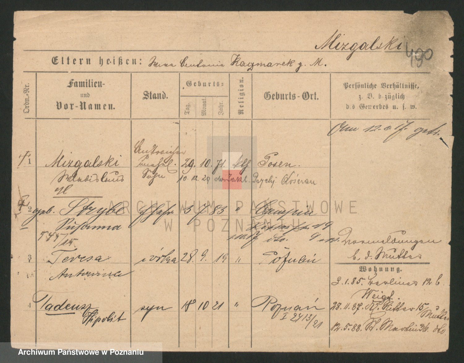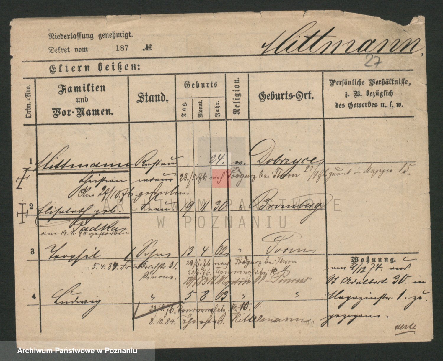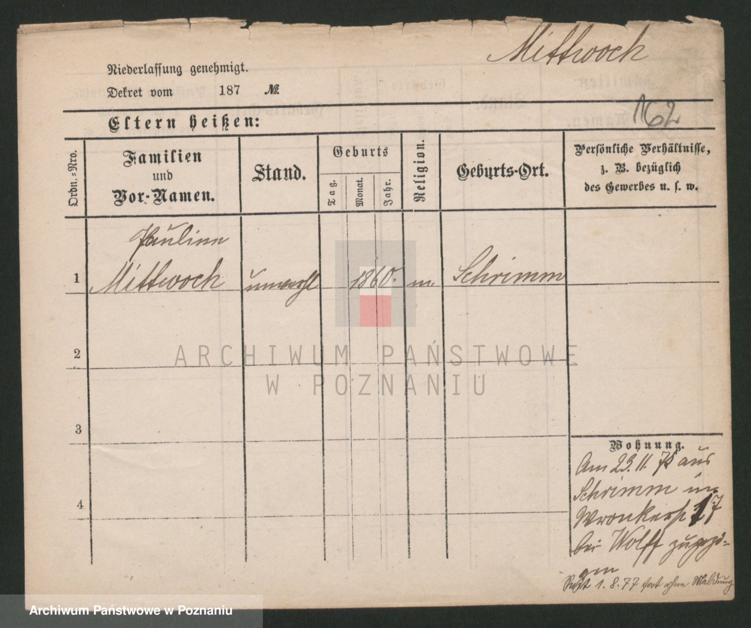 Mittler zd. Matthens p. v. Trogisch, Marie