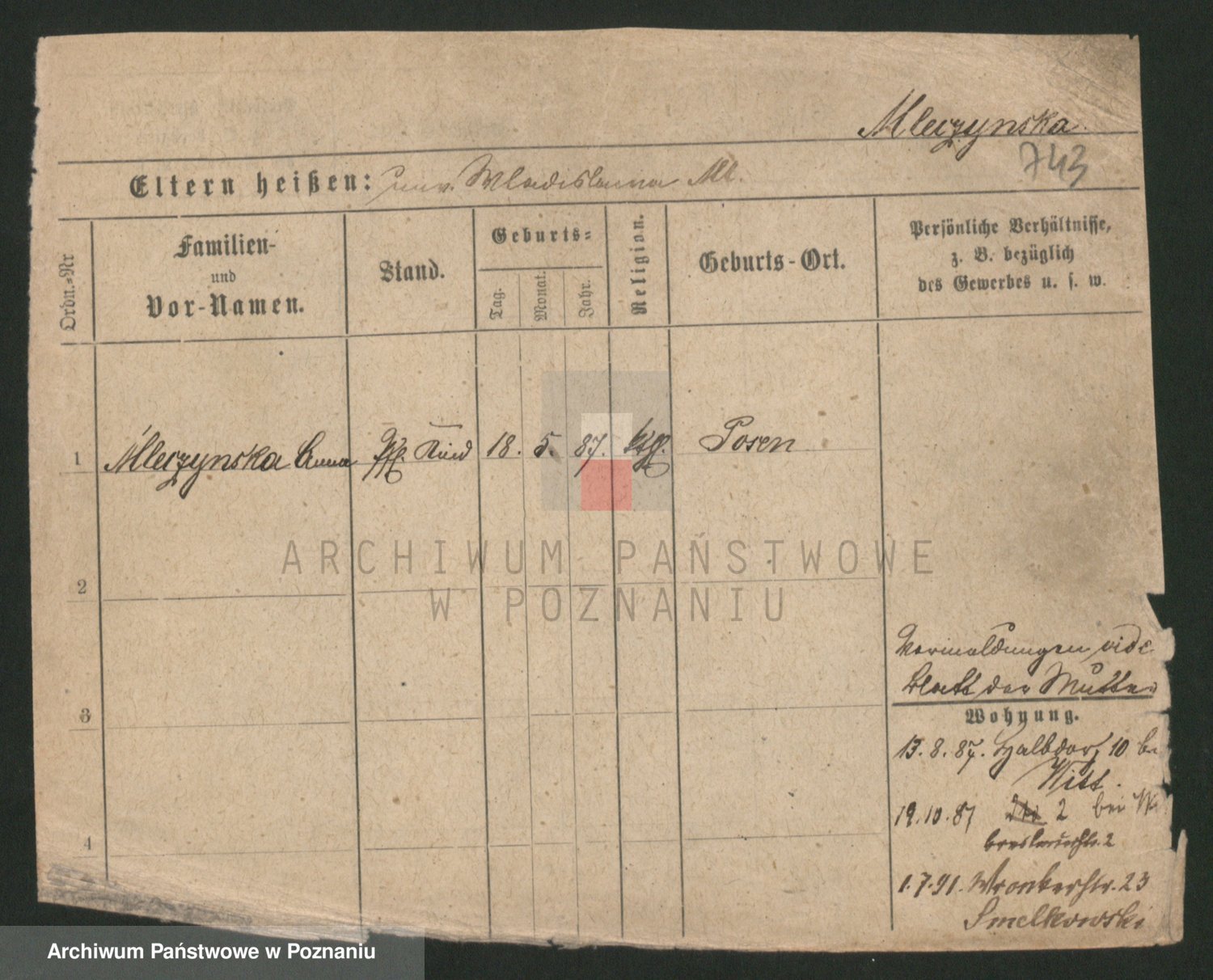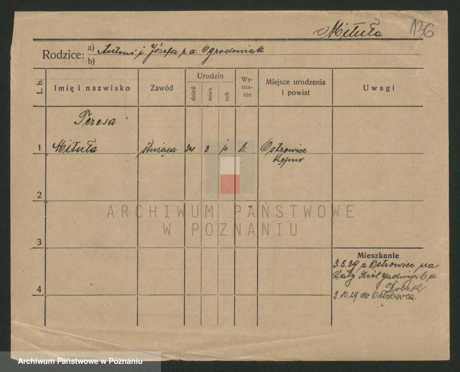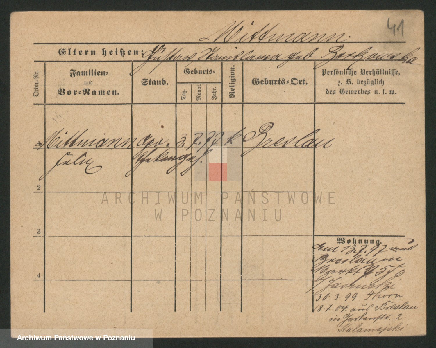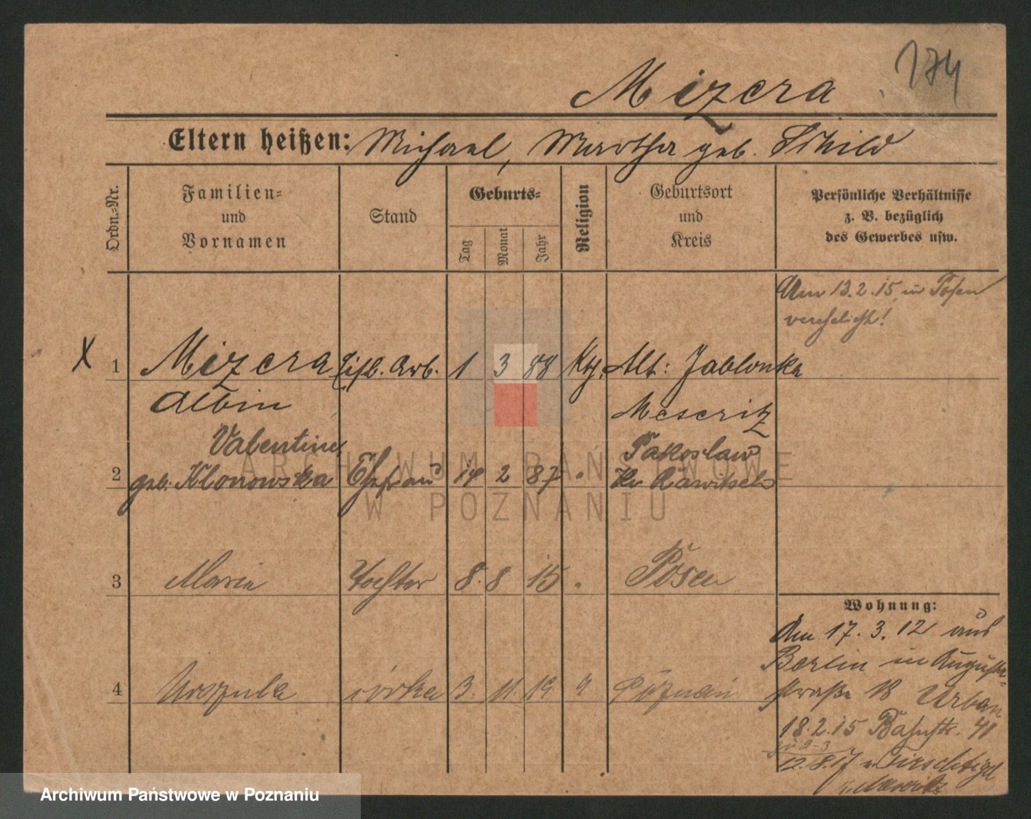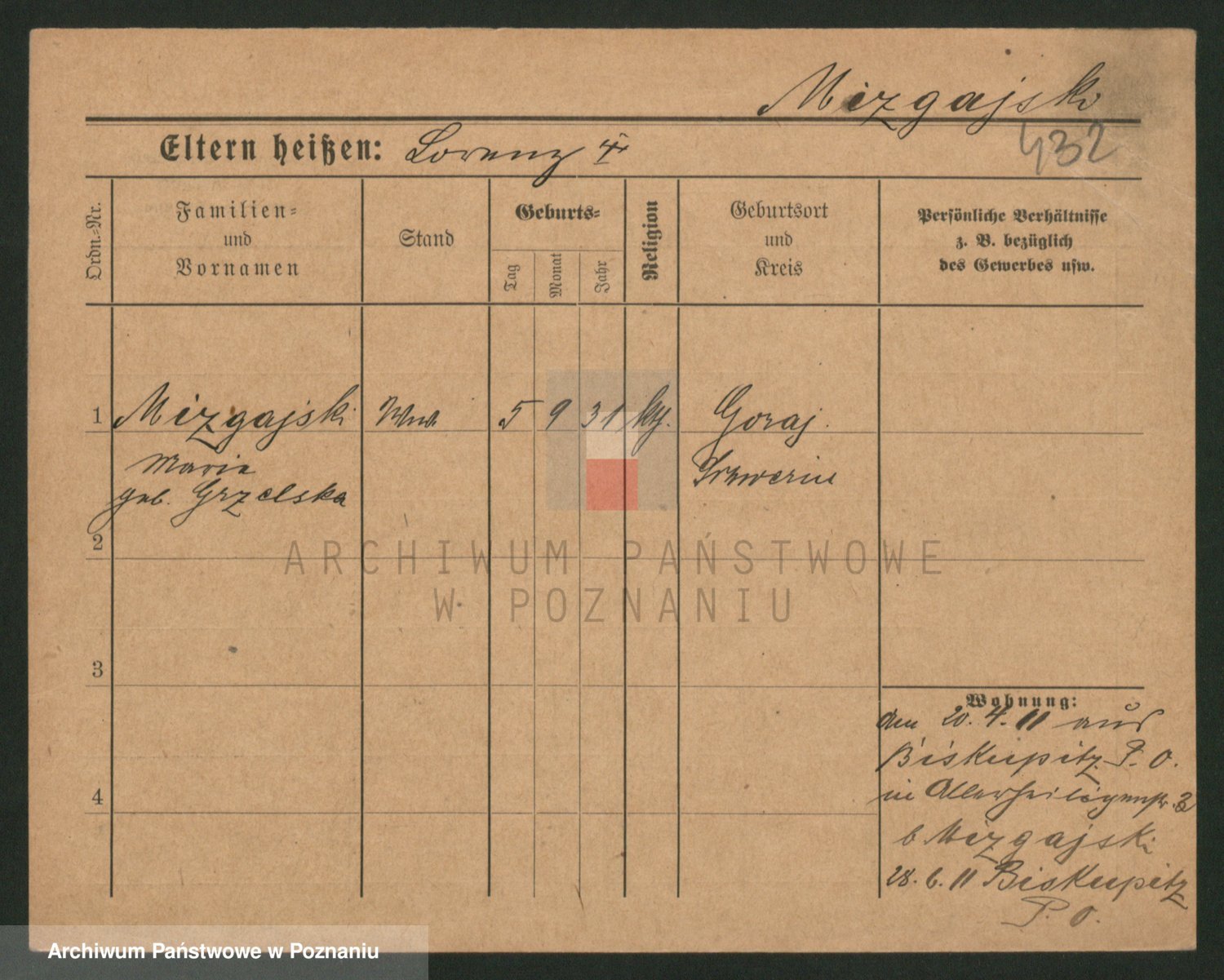 Mittler zd. Matthens p. v. Trogisch, Marie