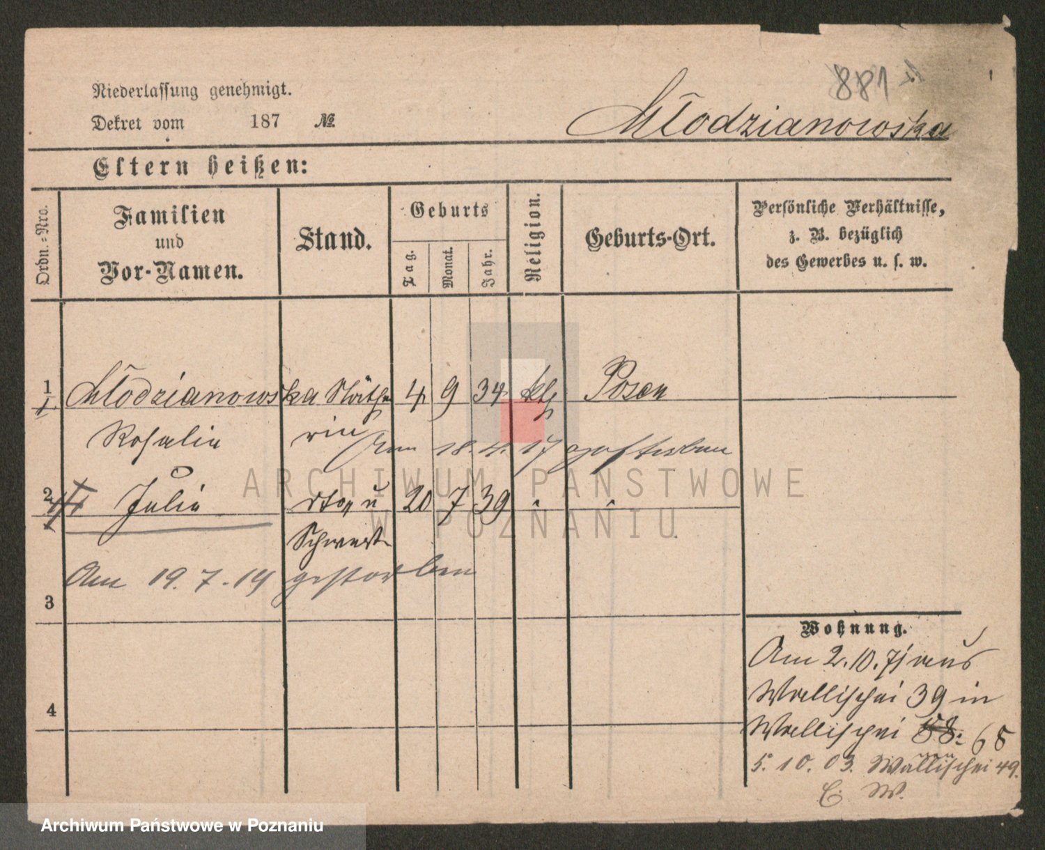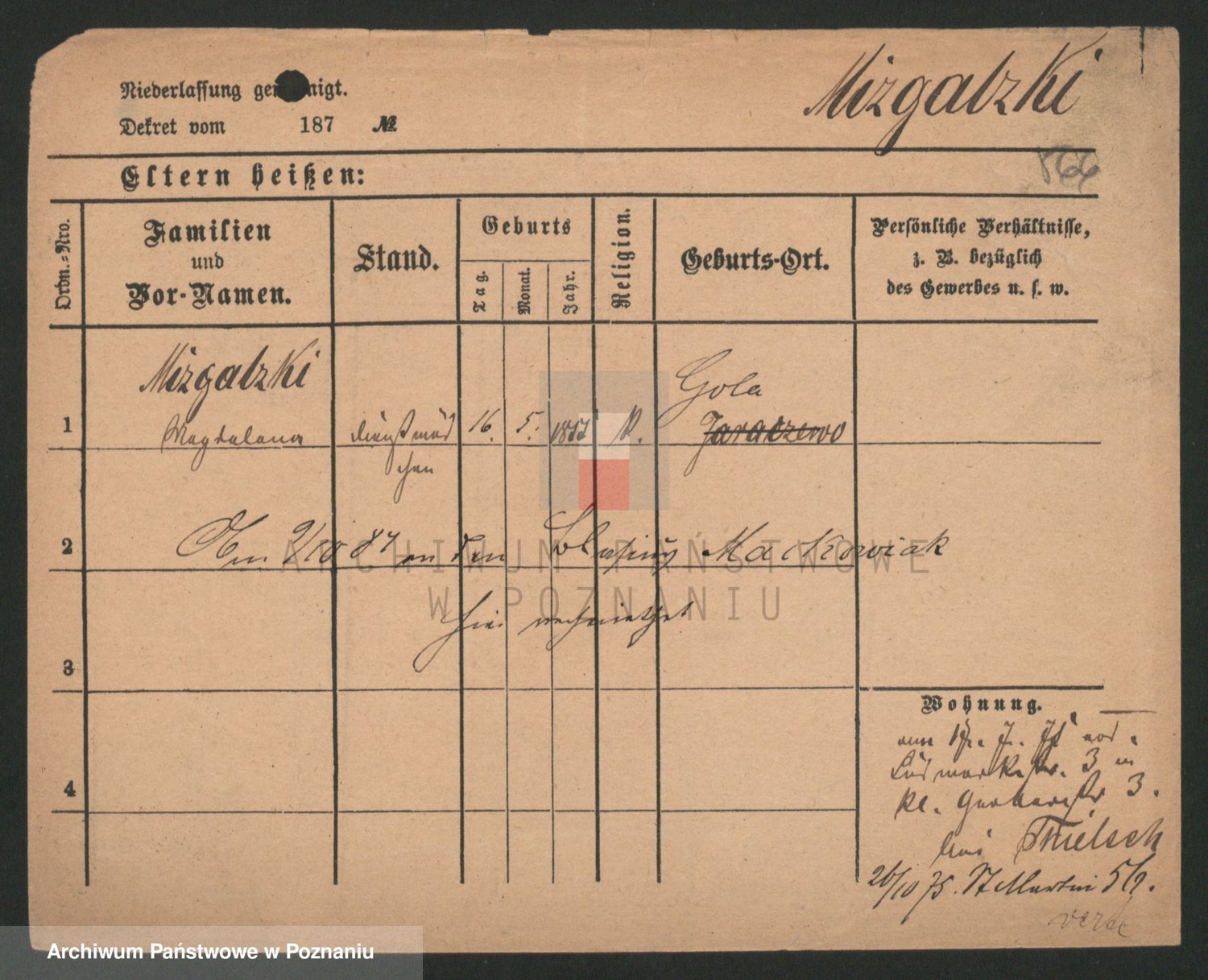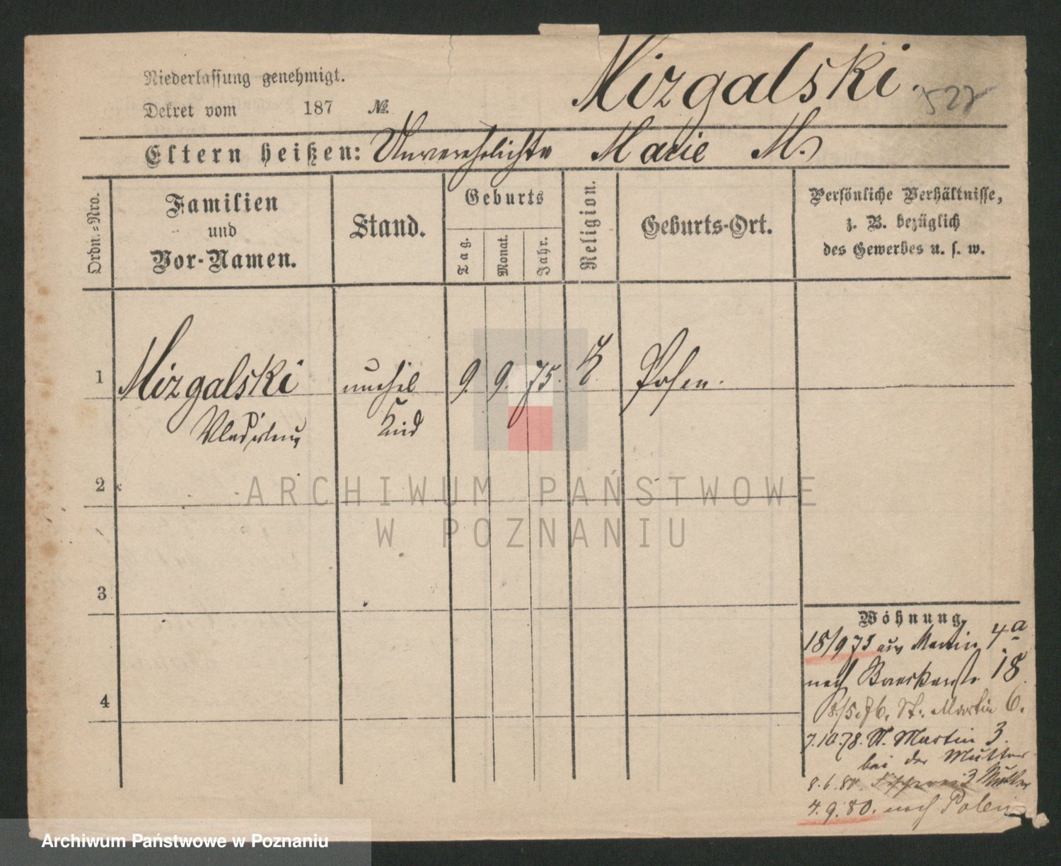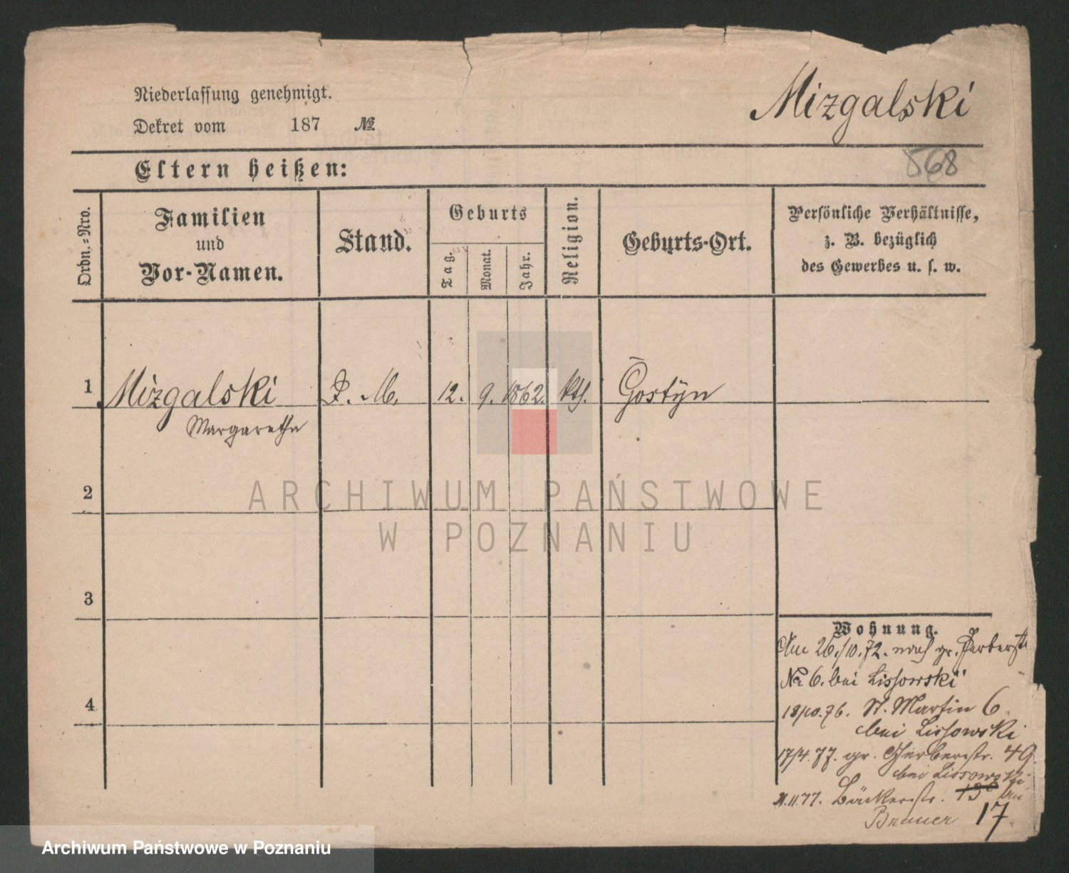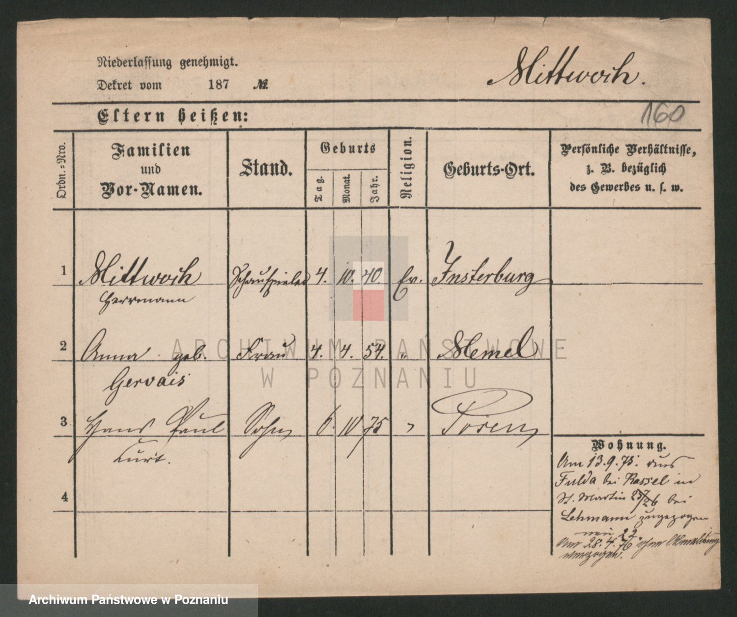 Mittler zd. Matthens p. v. Trogisch, Marie