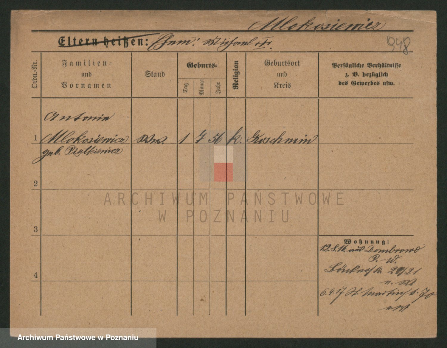 Mlokosiewicz zd. Piątkiewicz, Antonie