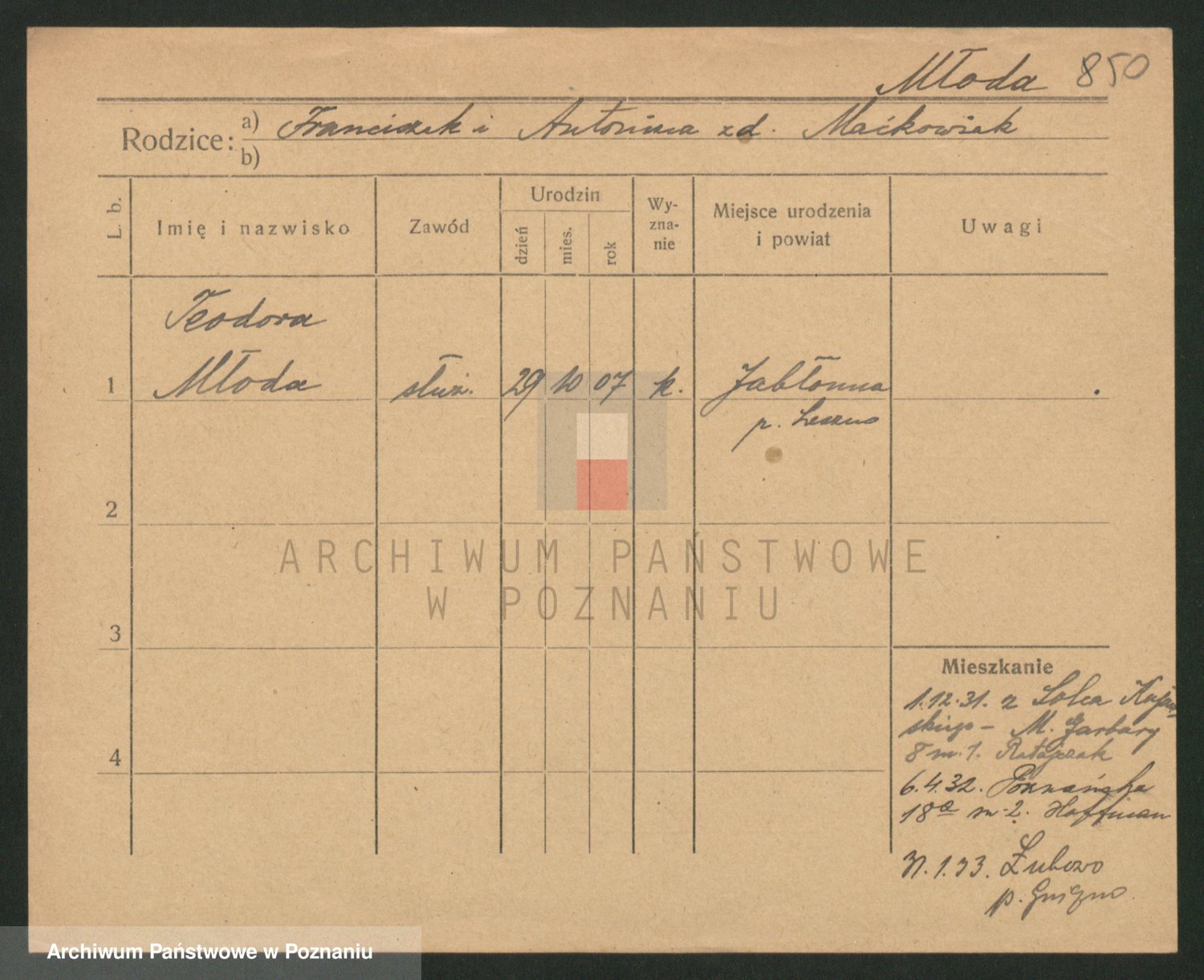 Młokaszewicz zd. Korach, Franziska