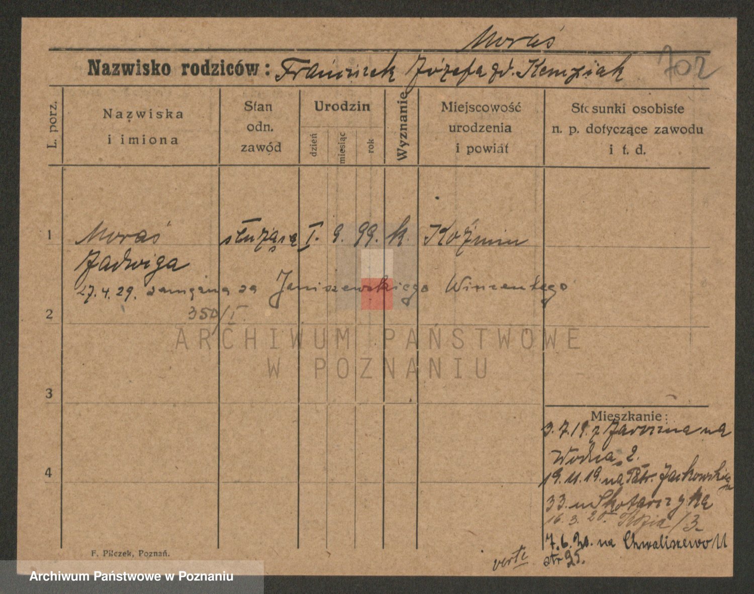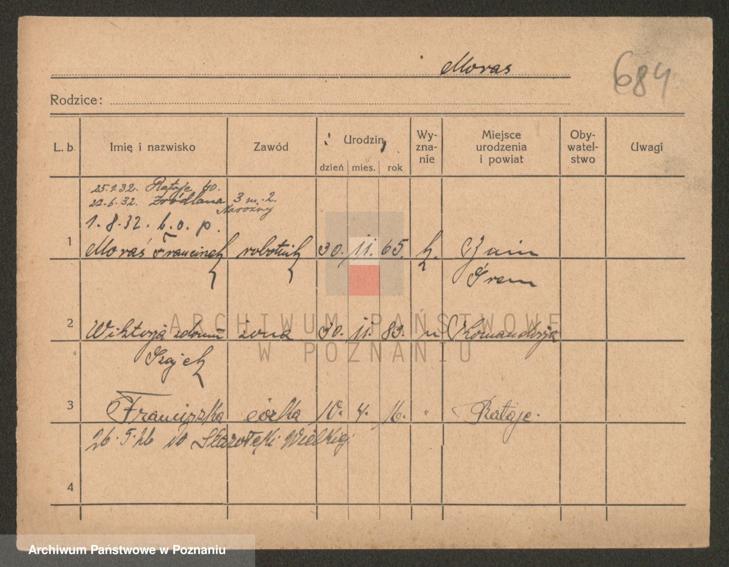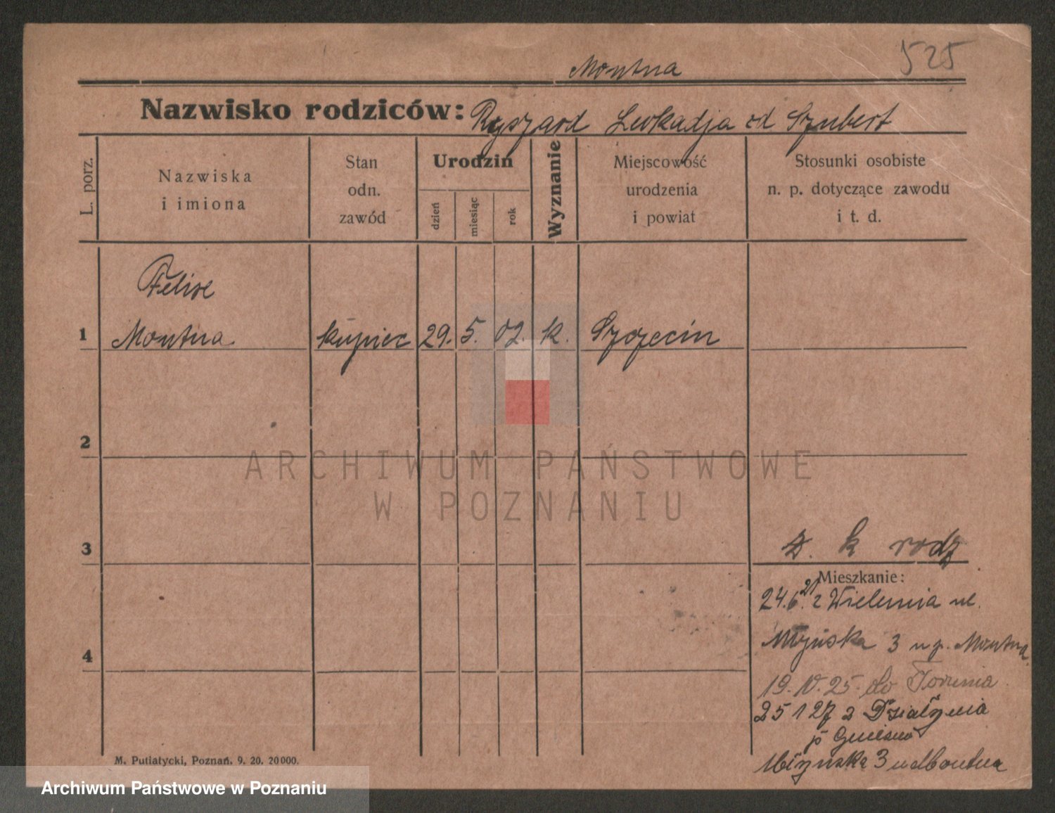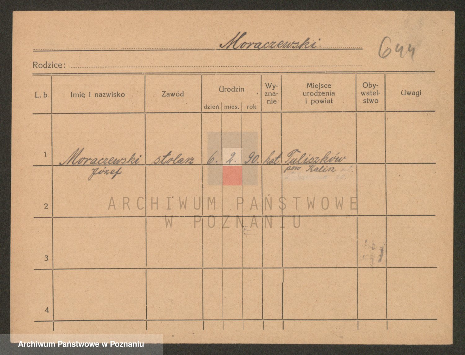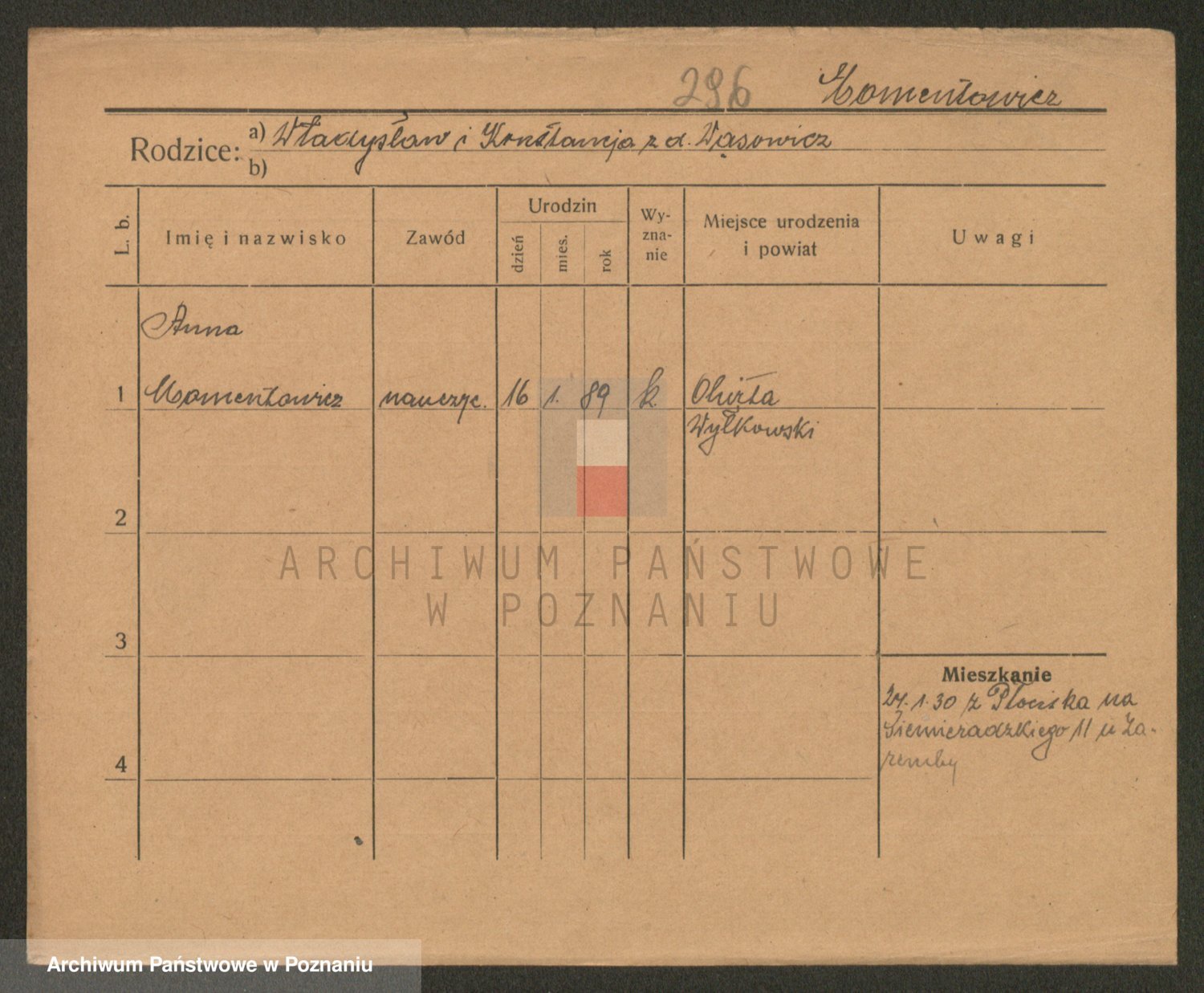Podgląd karty osobowej dostępny jest po kliknięciu na nazwisko lub ikonkę karty. Można dokonywać powiększenia (ikony na górze) lub przechodzić między kolejnymi skanami (strzałki po bokach).