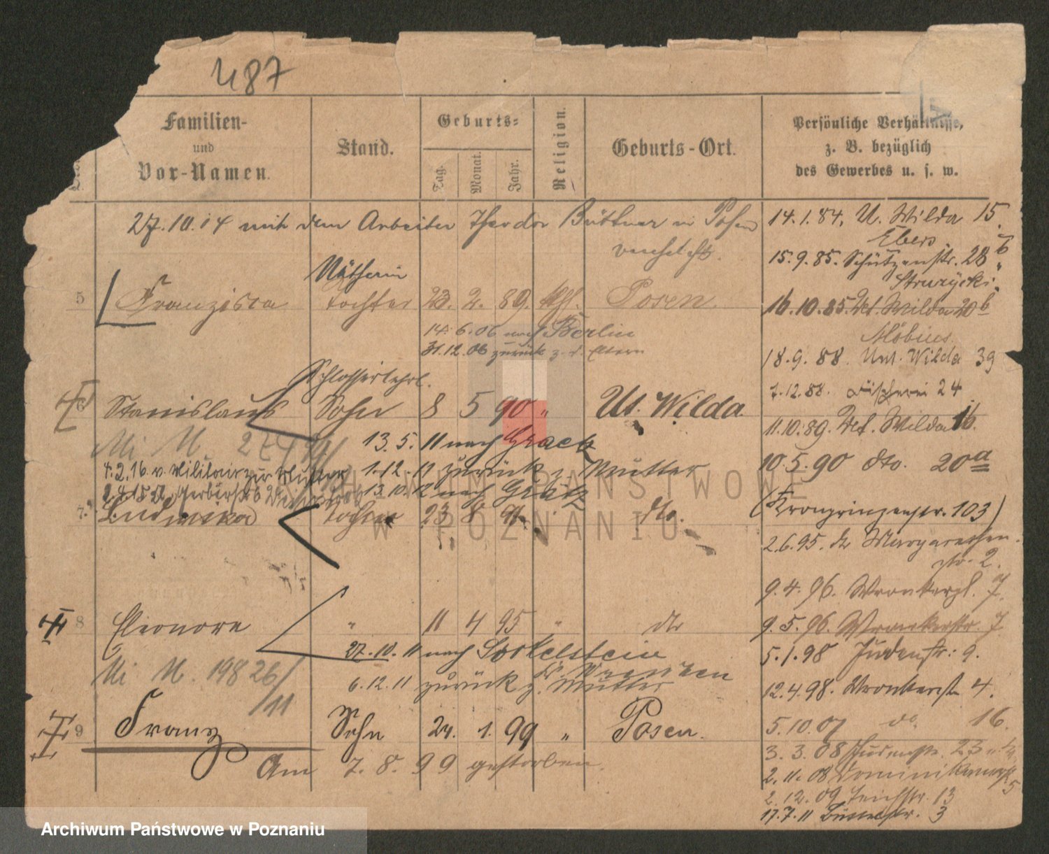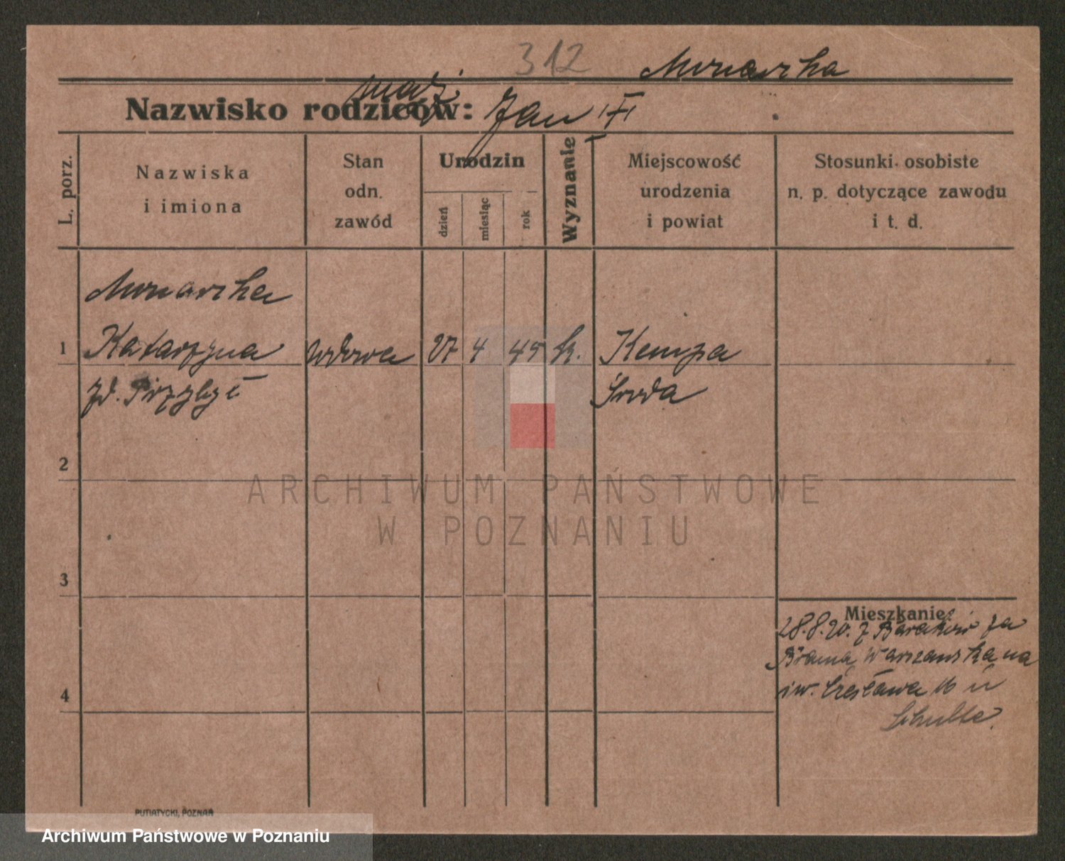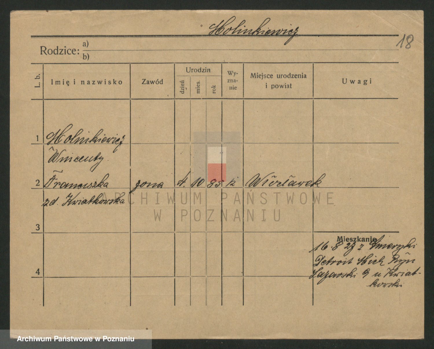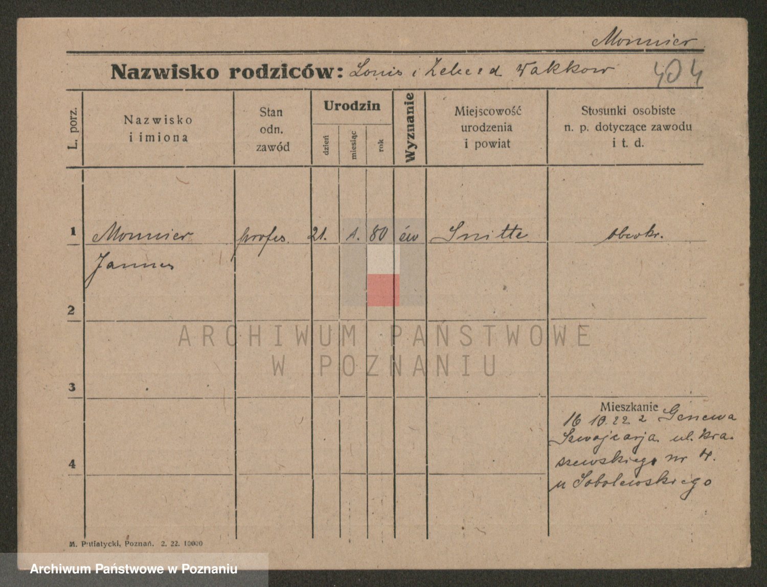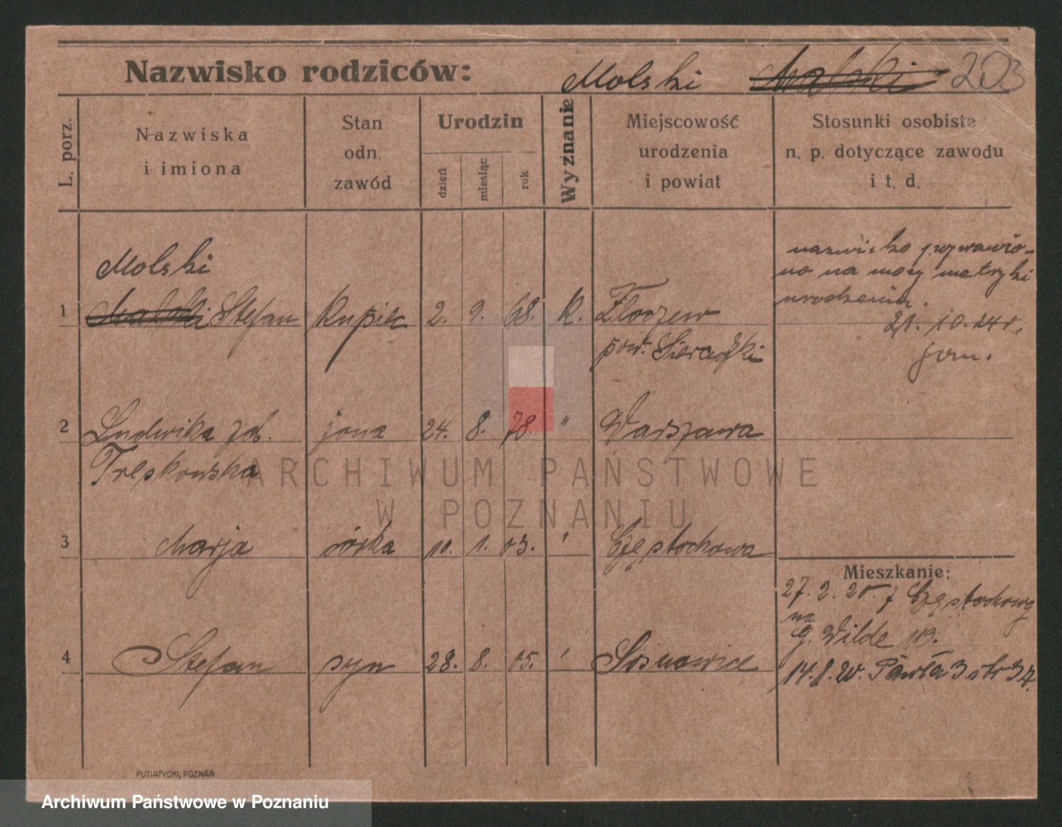 Podgląd karty osobowej dostępny jest po kliknięciu na nazwisko lub ikonkę karty. Można dokonywać powiększenia (ikony na górze) lub przechodzić między kolejnymi skanami (strzałki po bokach).