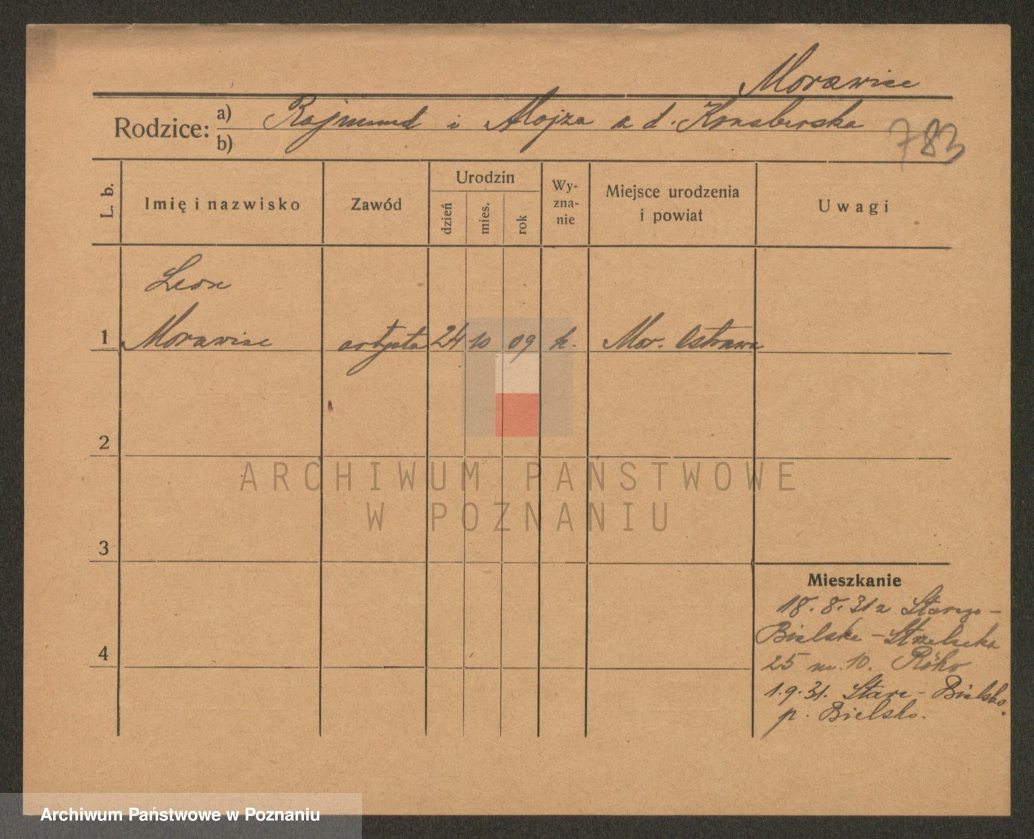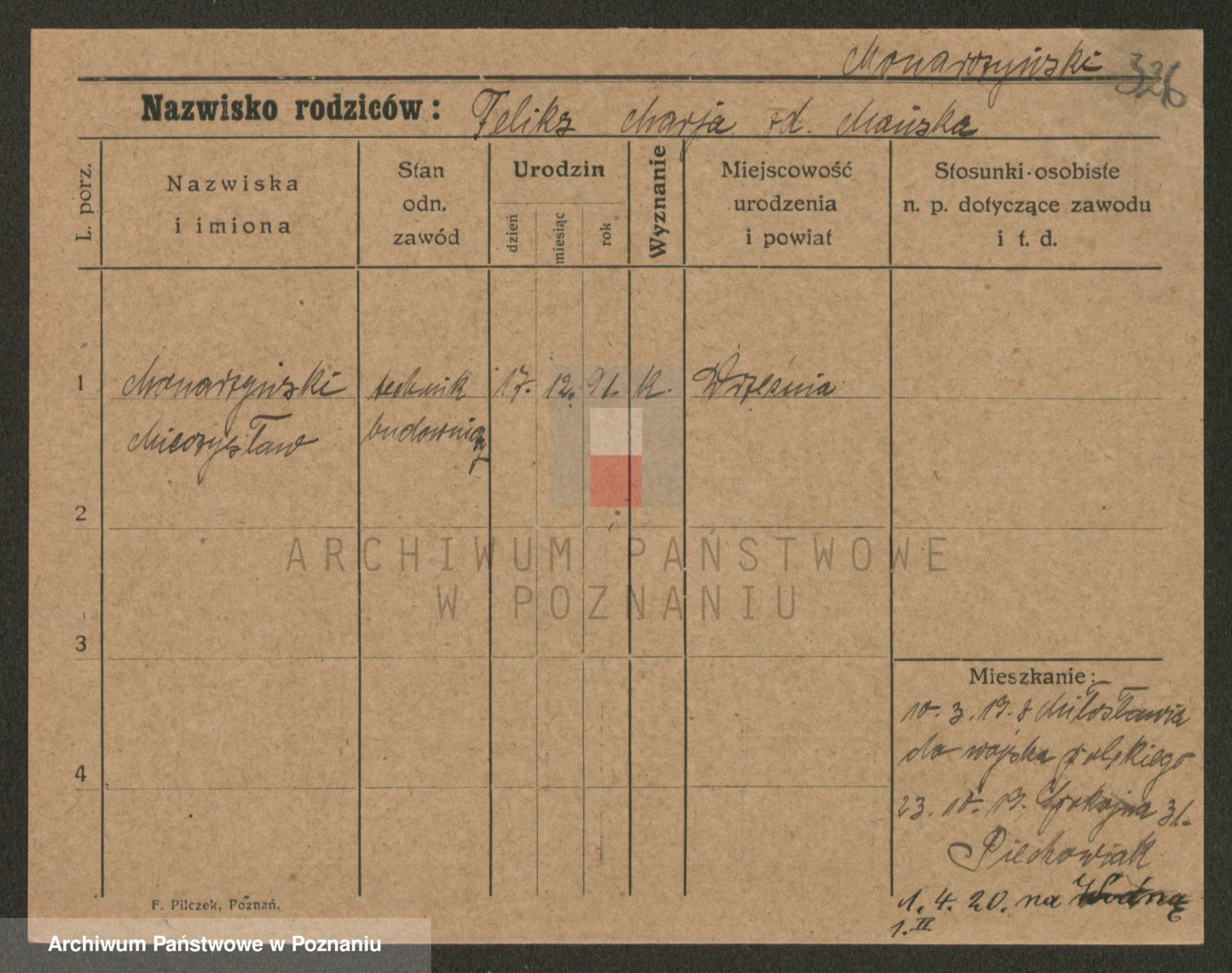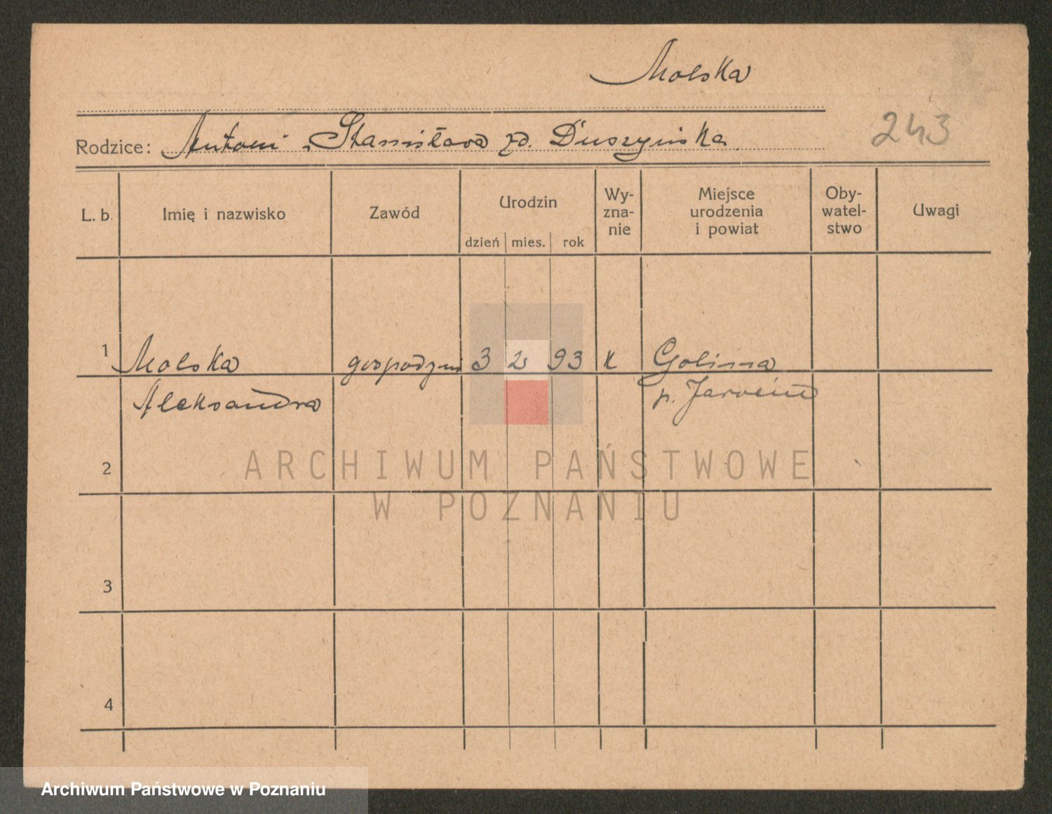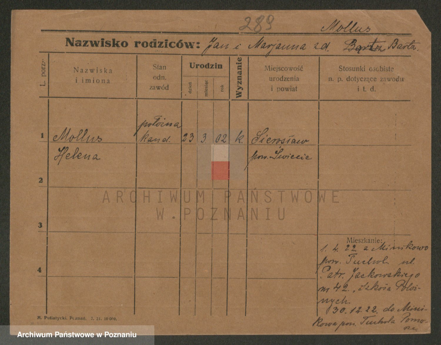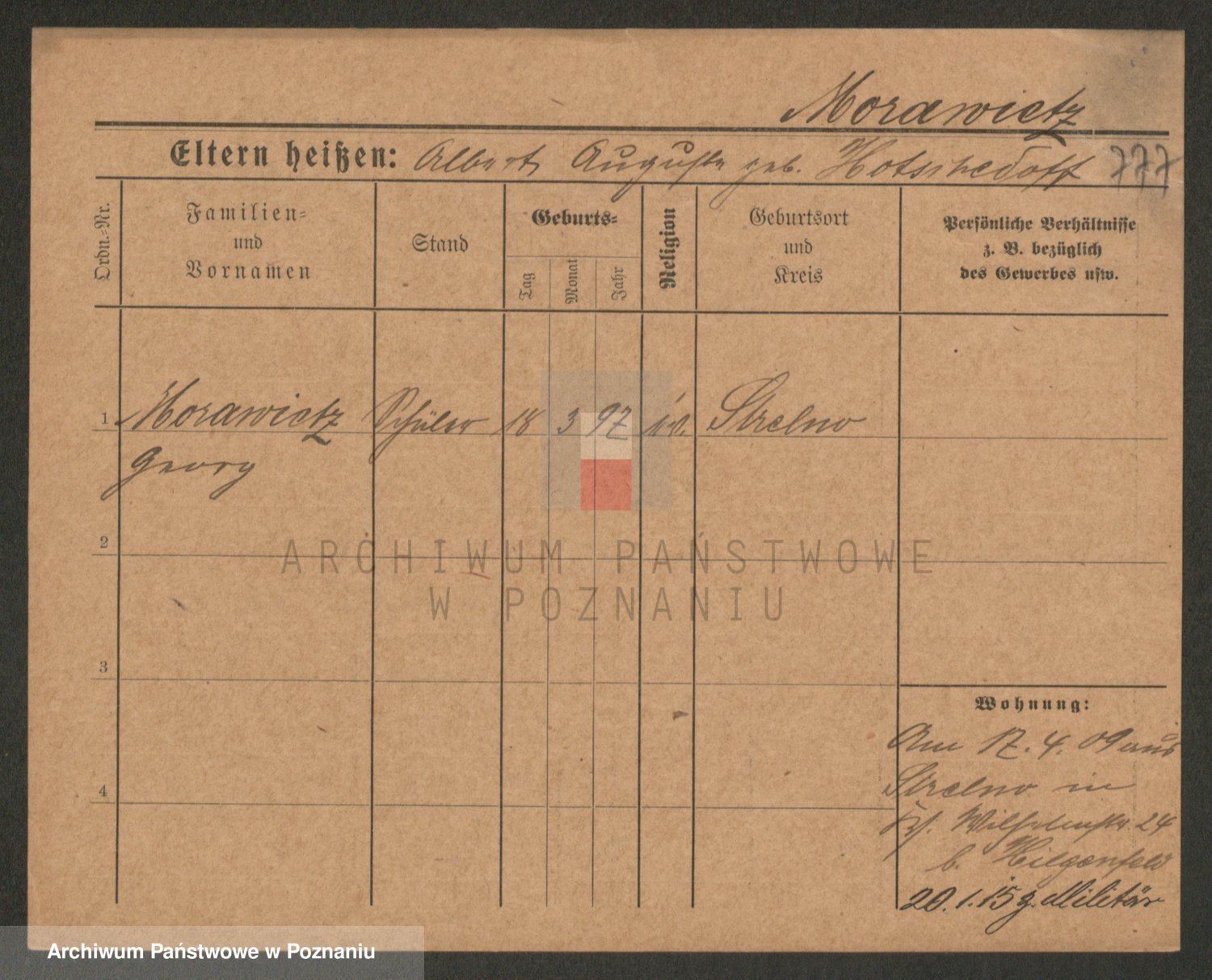 Podgląd karty osobowej dostępny jest po kliknięciu na nazwisko lub ikonkę karty. Można dokonywać powiększenia (ikony na górze) lub przechodzić między kolejnymi skanami (strzałki po bokach).