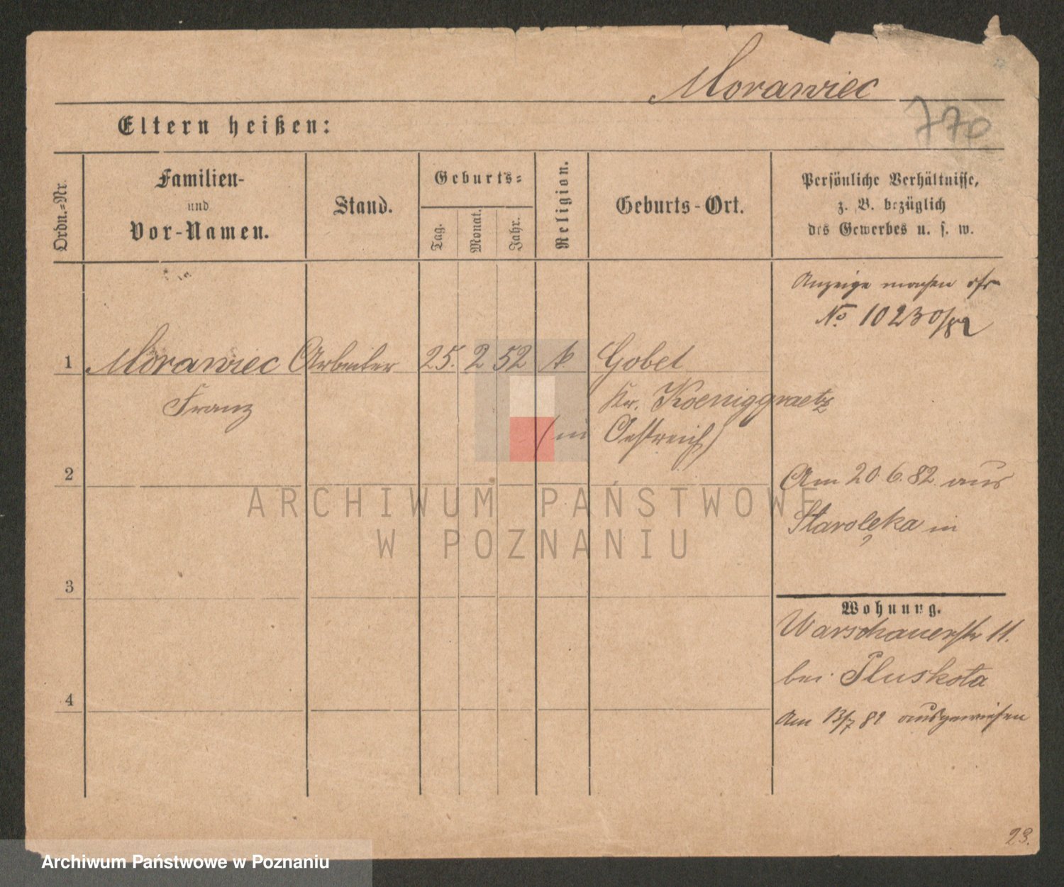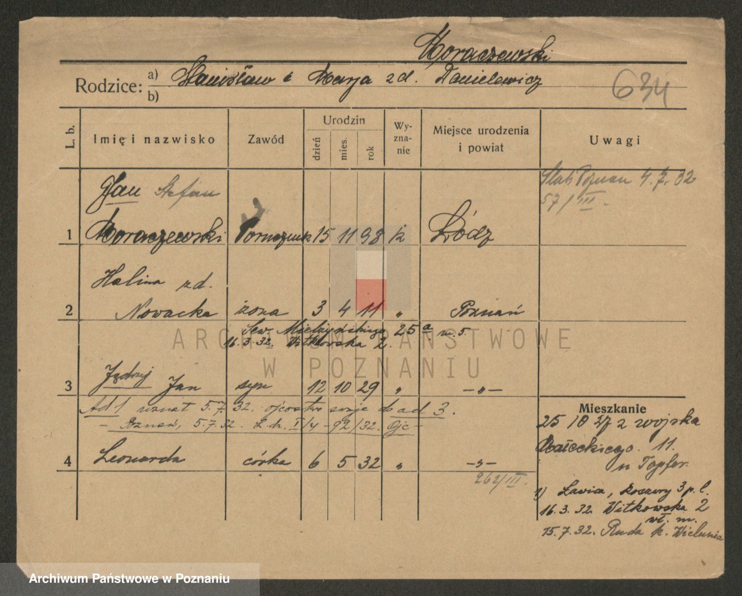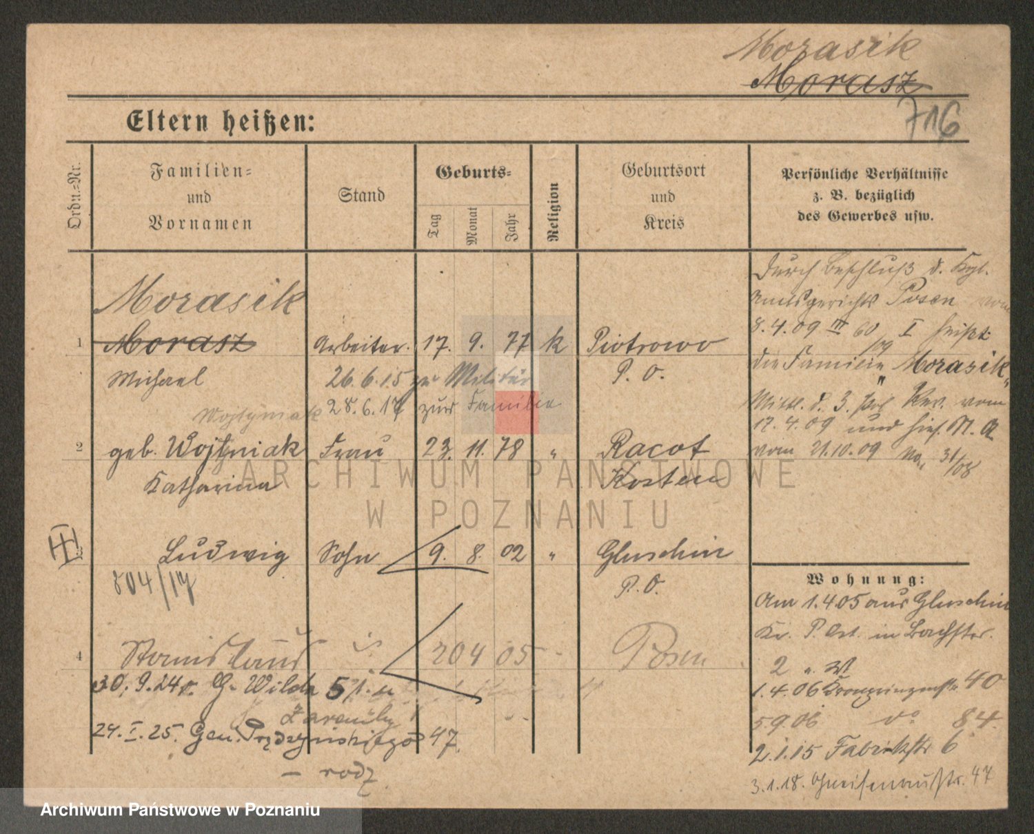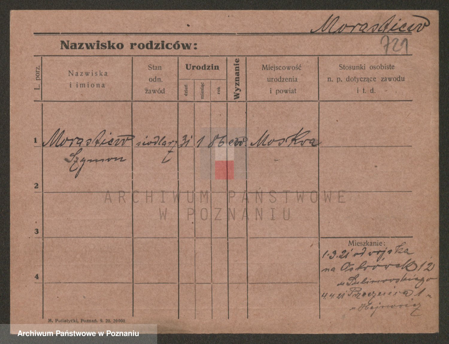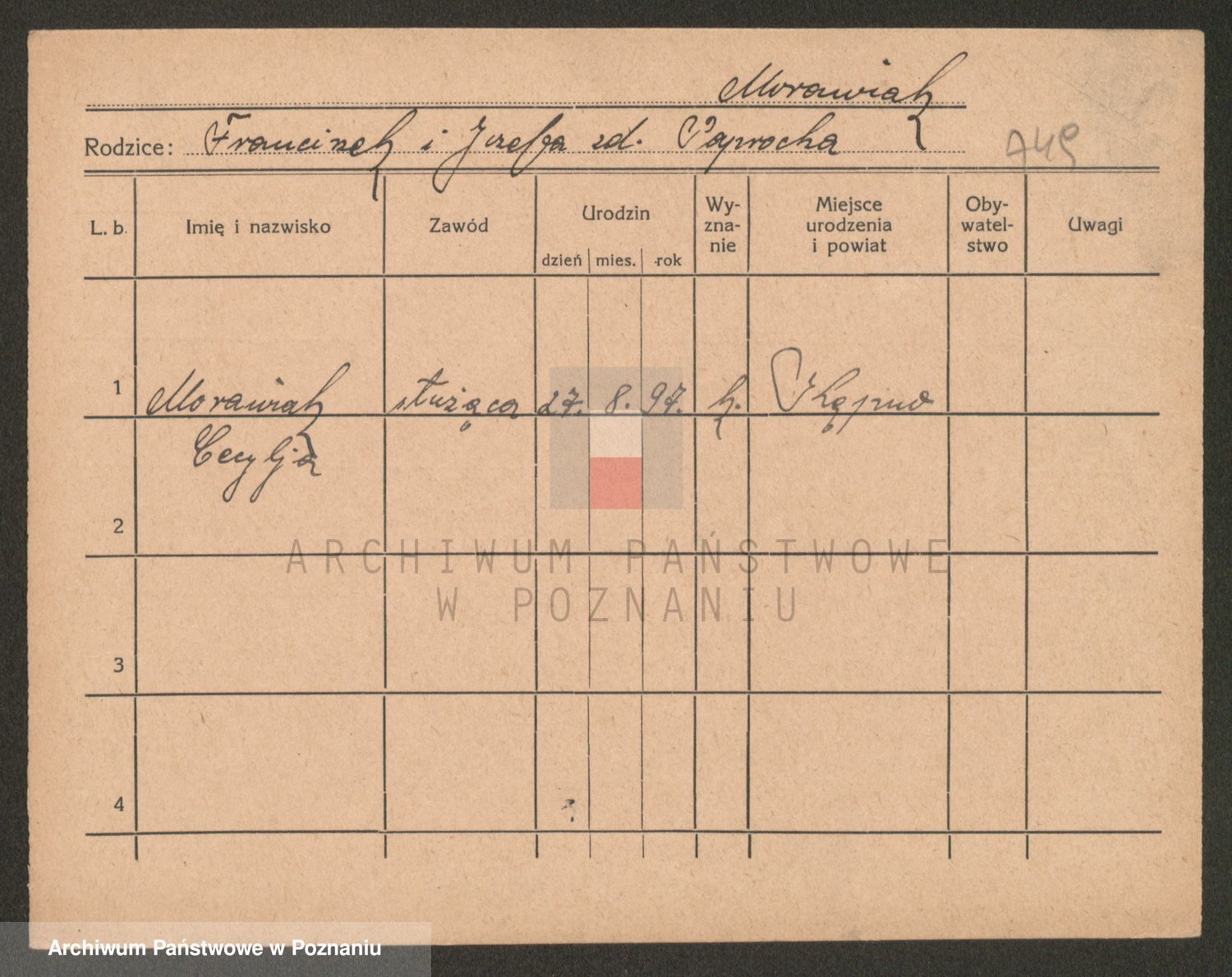 Podgląd karty osobowej dostępny jest po kliknięciu na nazwisko lub ikonkę karty. Można dokonywać powiększenia (ikony na górze) lub przechodzić między kolejnymi skanami (strzałki po bokach).