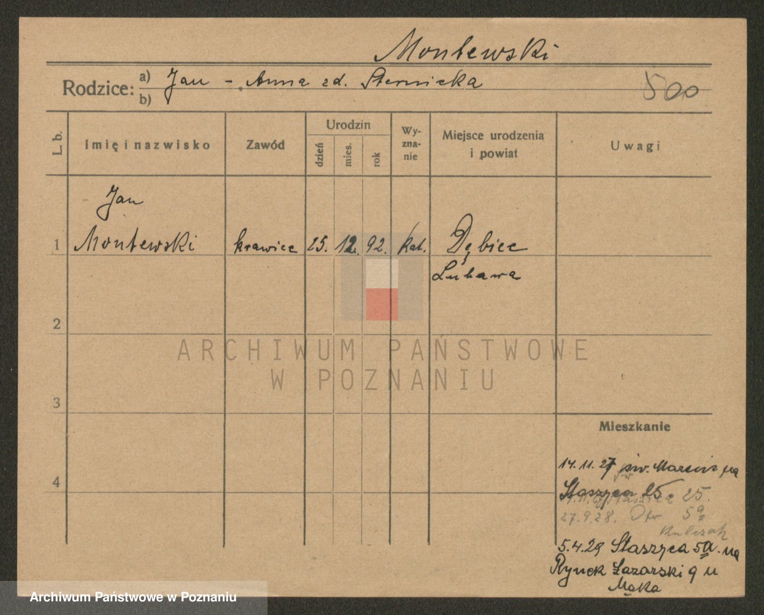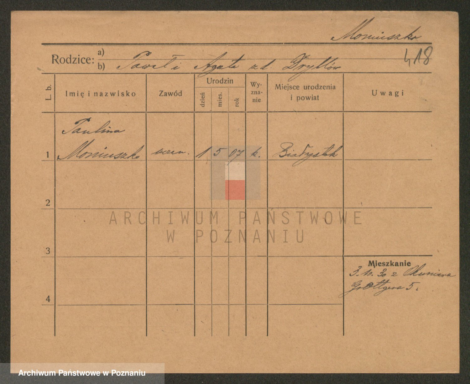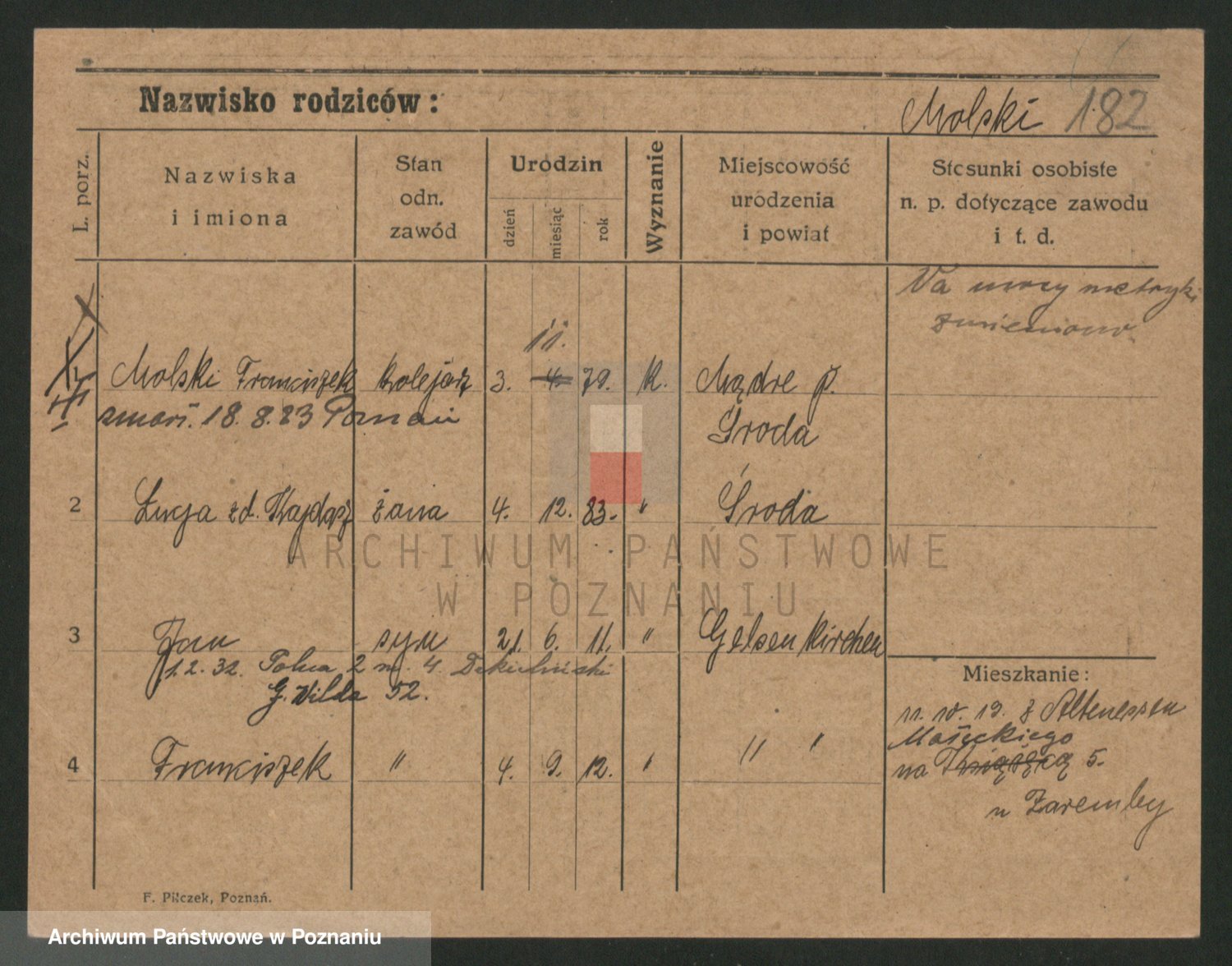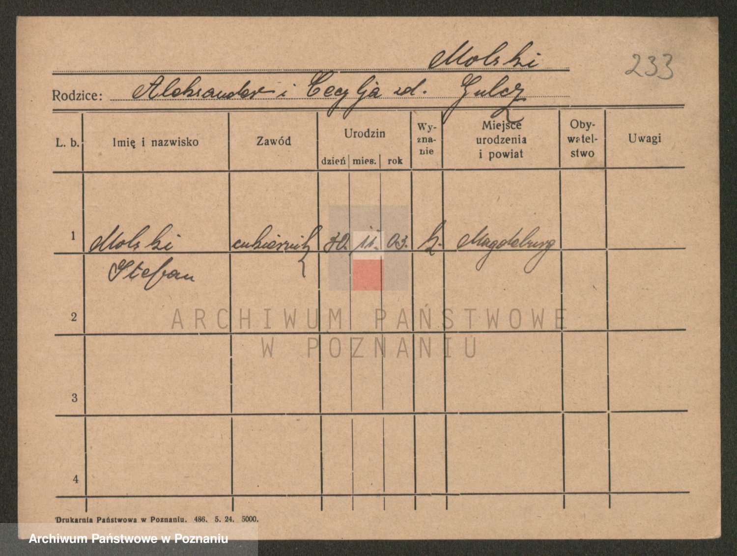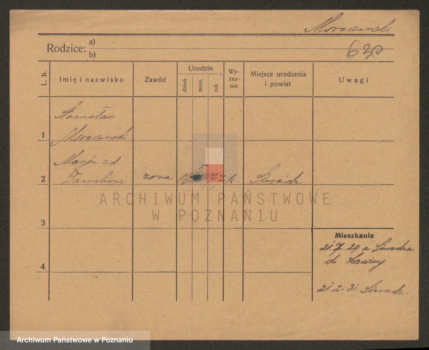 Podgląd karty osobowej dostępny jest po kliknięciu na nazwisko lub ikonkę karty. Można dokonywać powiększenia (ikony na górze) lub przechodzić między kolejnymi skanami (strzałki po bokach).