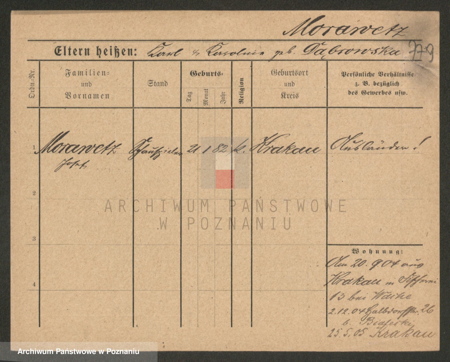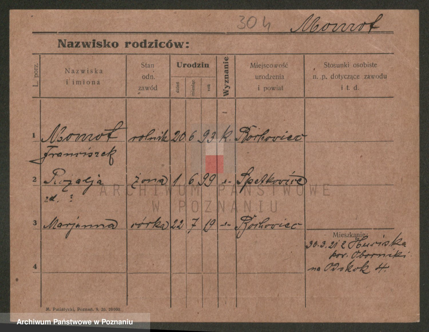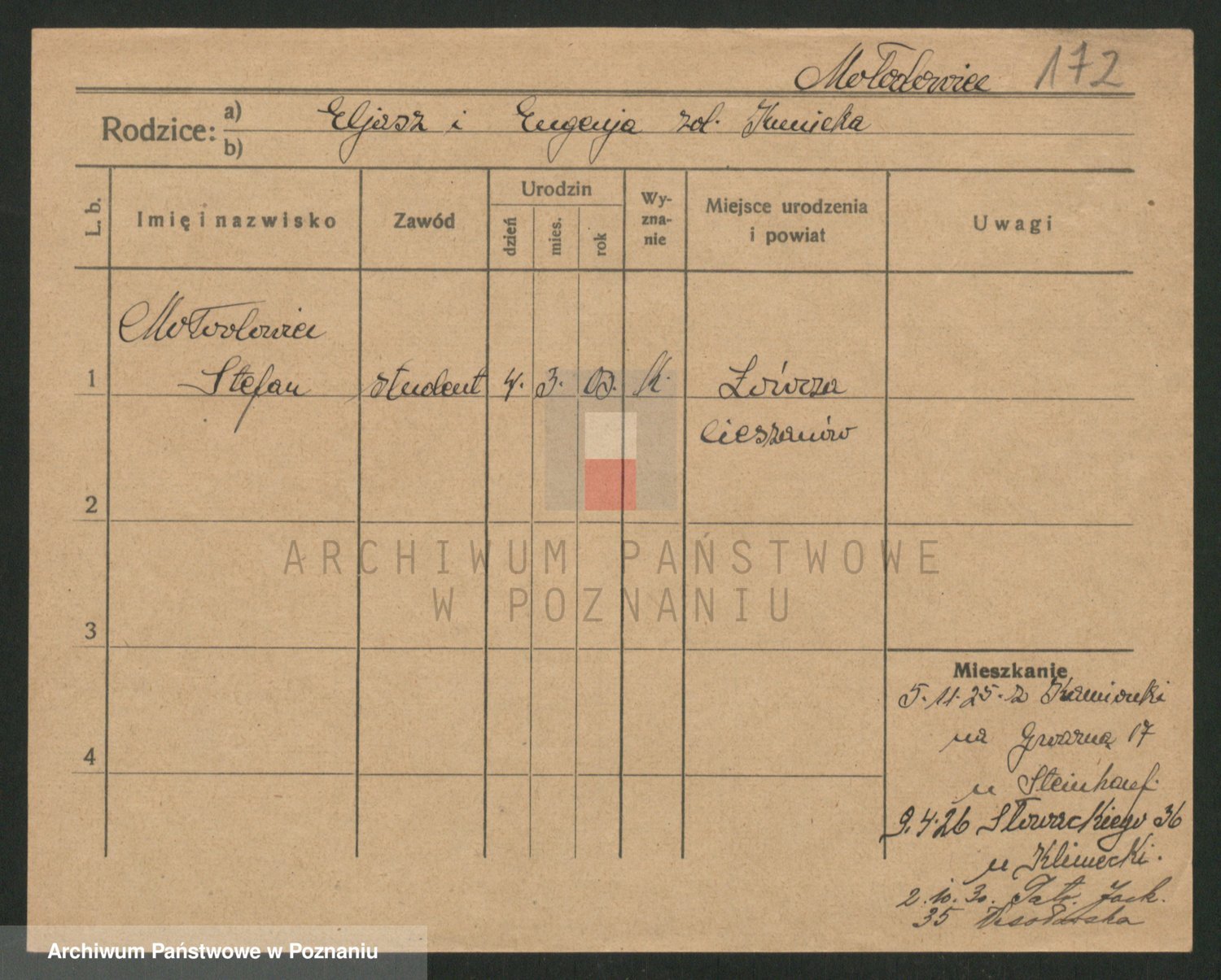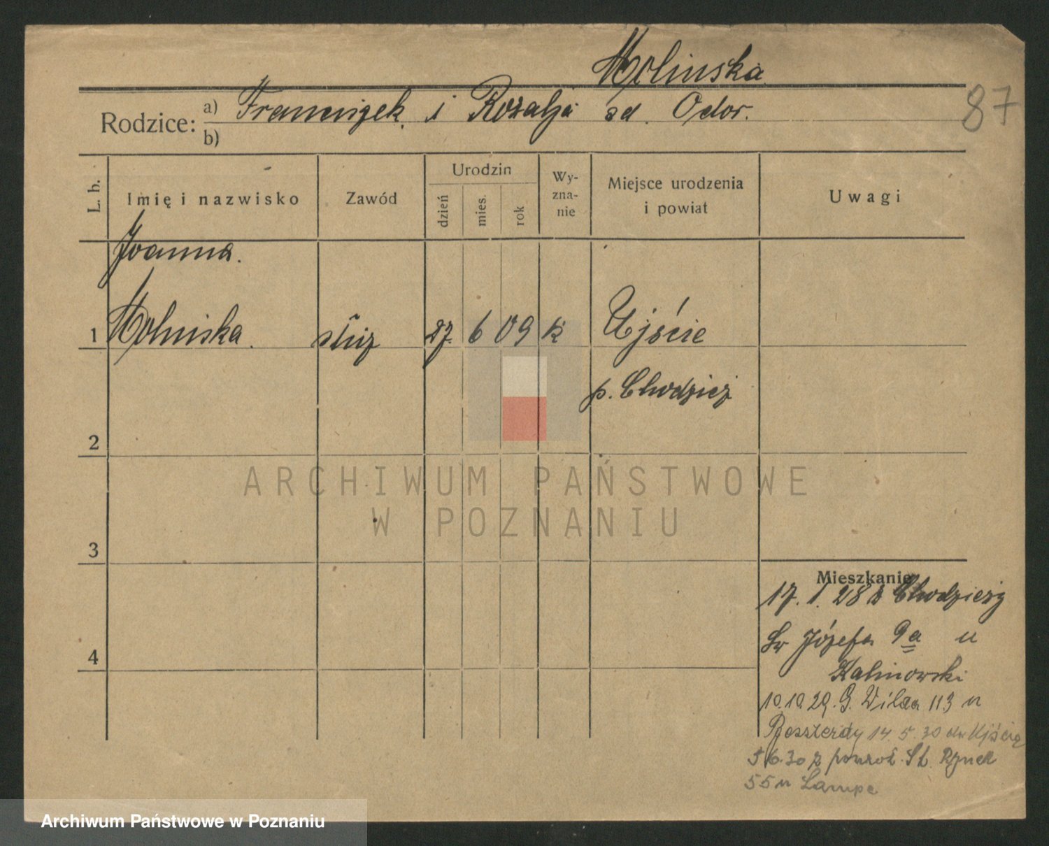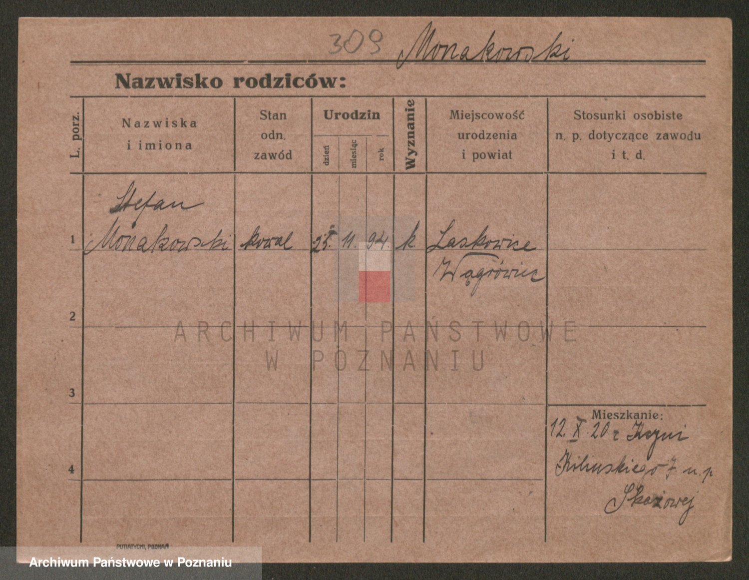 Podgląd karty osobowej dostępny jest po kliknięciu na nazwisko lub ikonkę karty. Można dokonywać powiększenia (ikony na górze) lub przechodzić między kolejnymi skanami (strzałki po bokach).