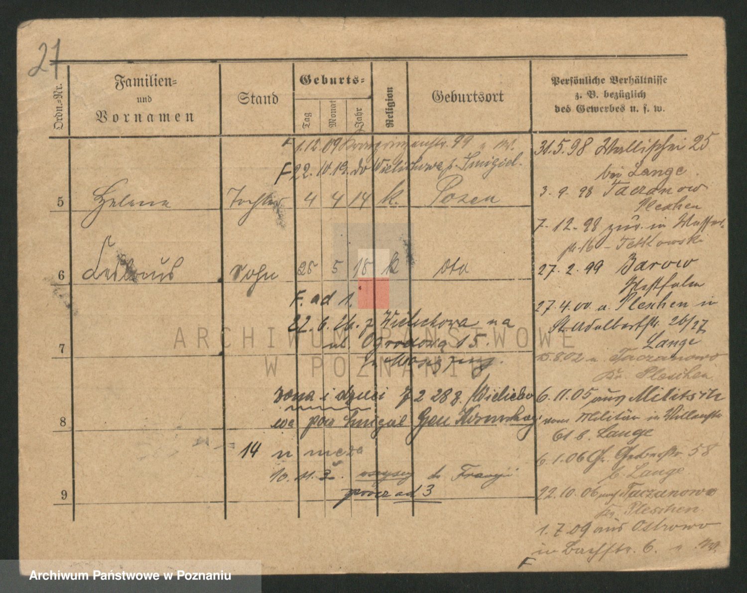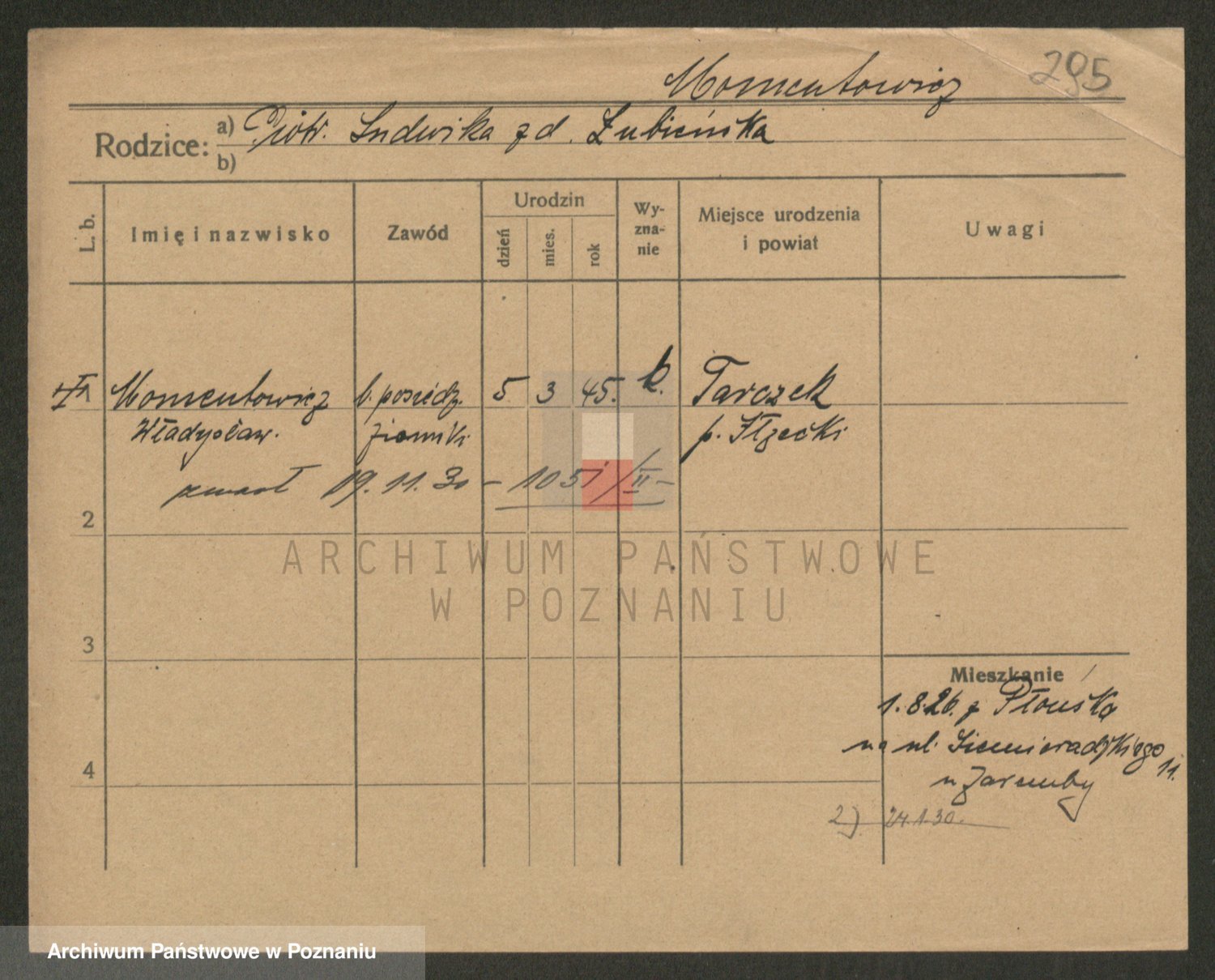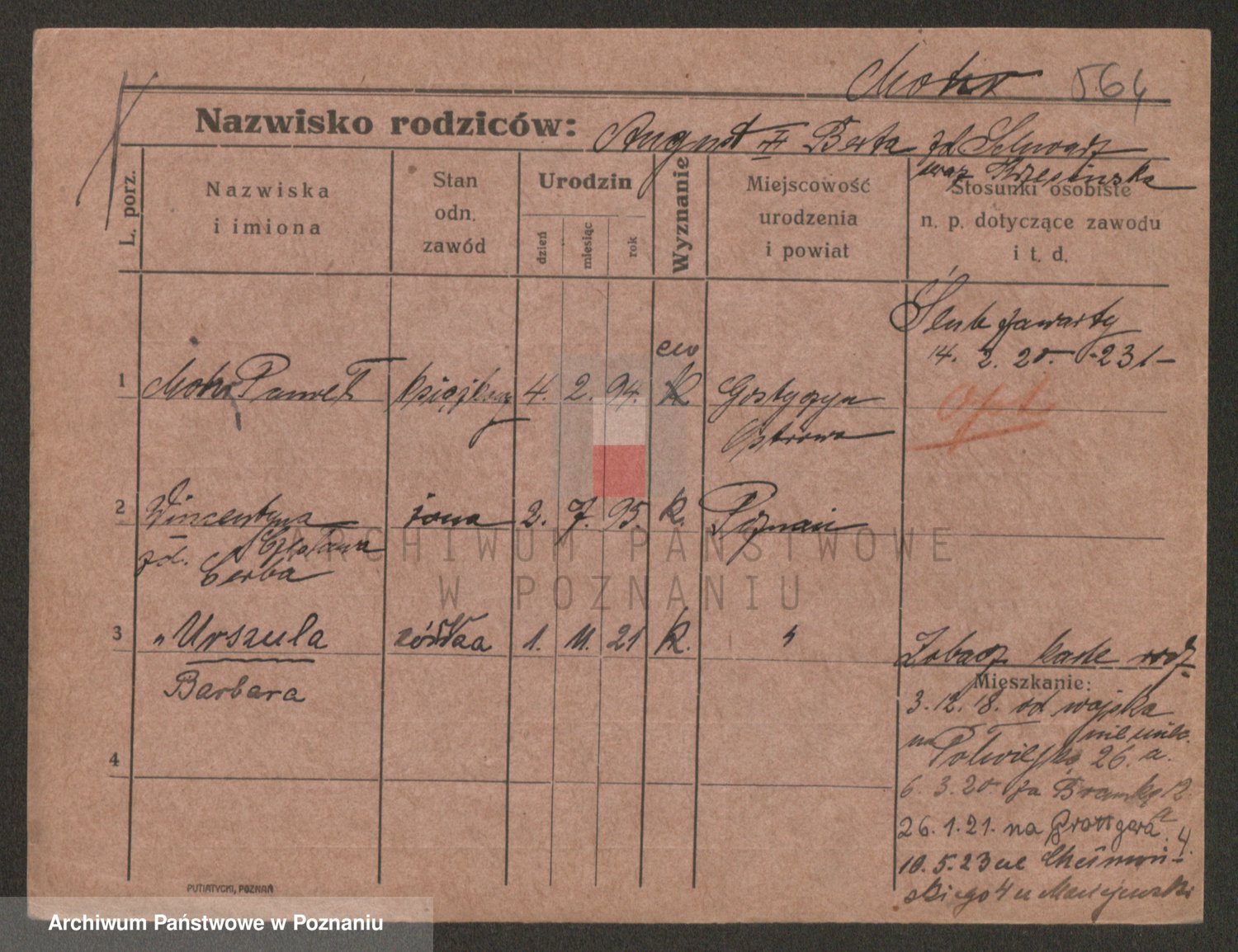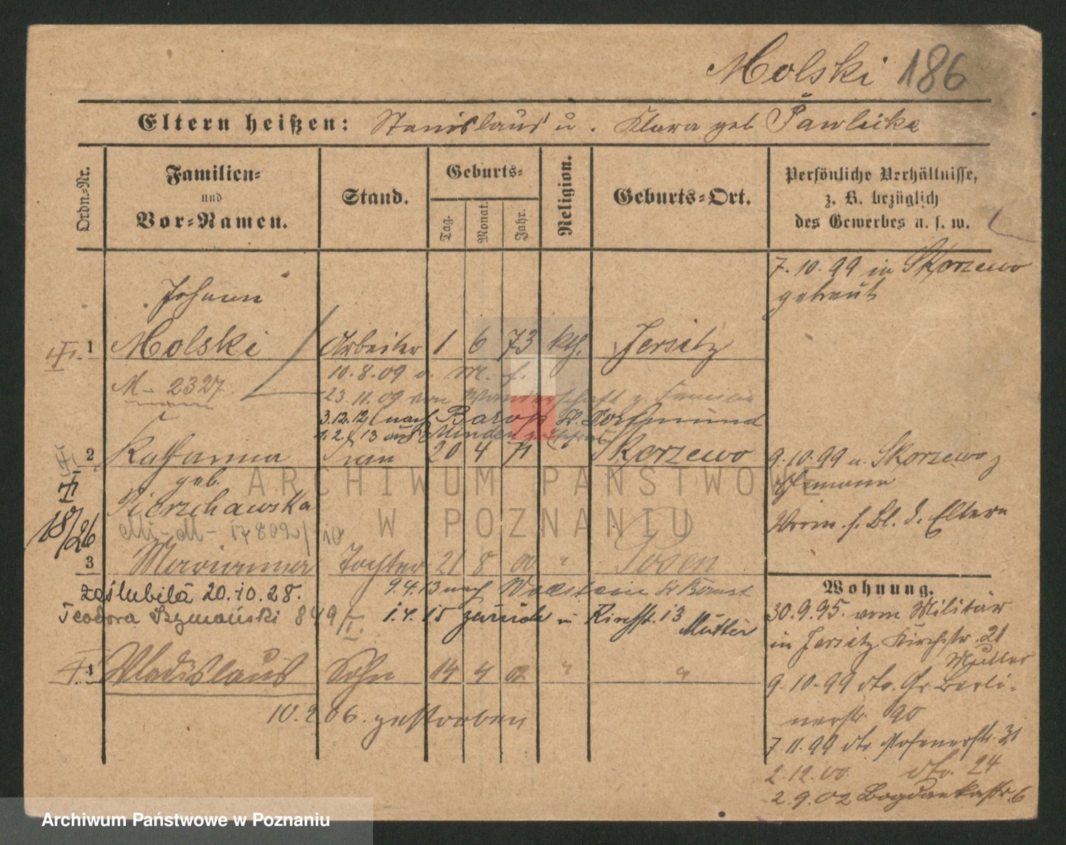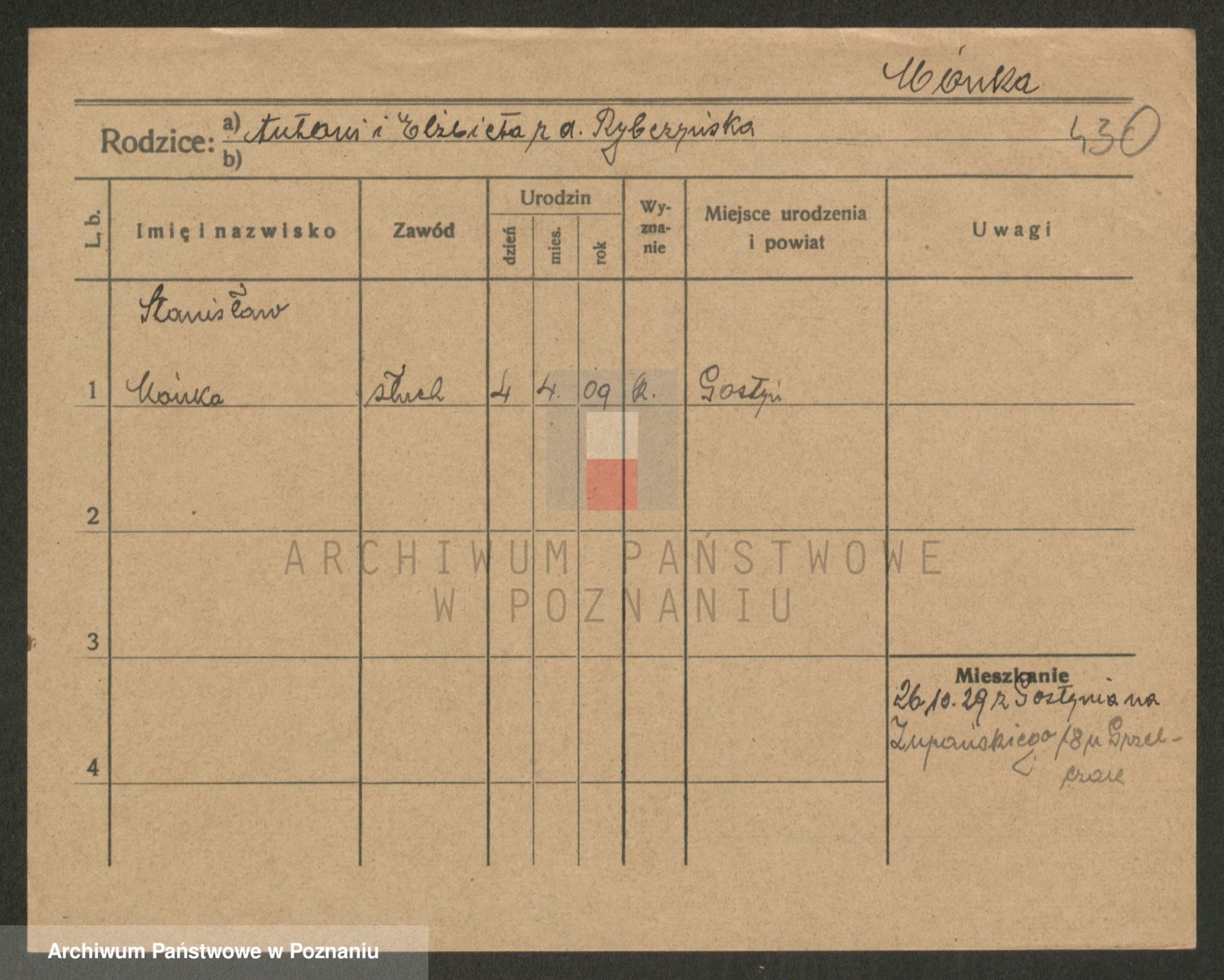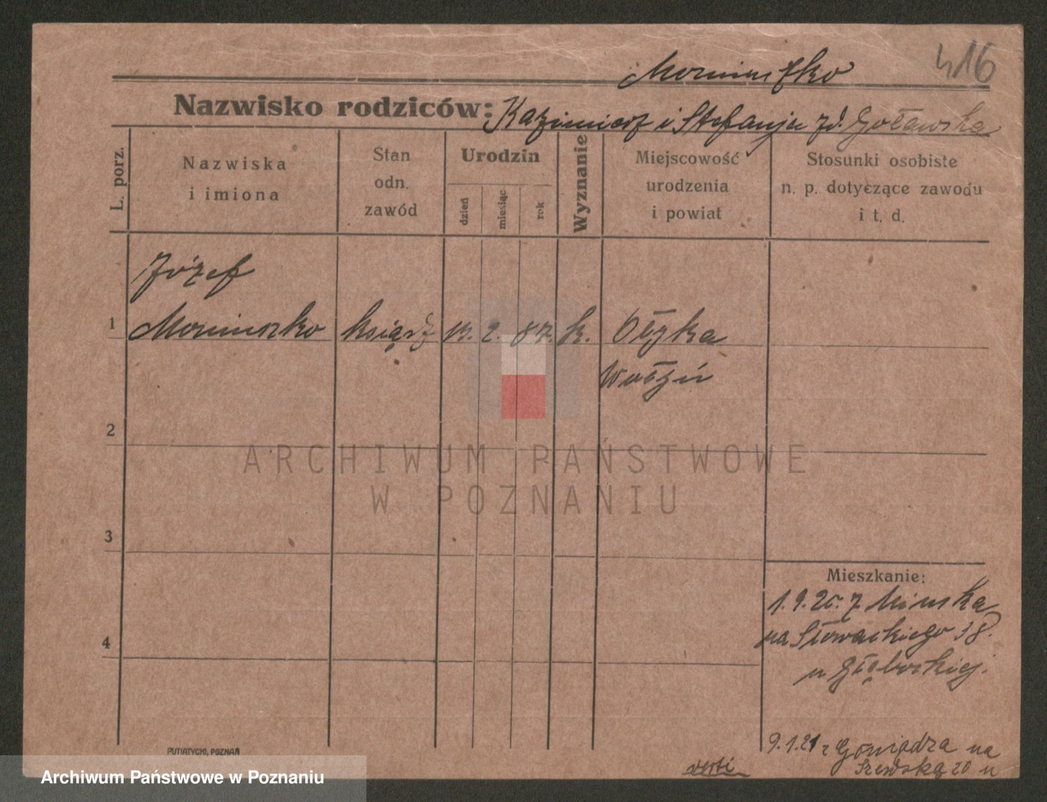 Podgląd karty osobowej dostępny jest po kliknięciu na nazwisko lub ikonkę karty. Można dokonywać powiększenia (ikony na górze) lub przechodzić między kolejnymi skanami (strzałki po bokach).