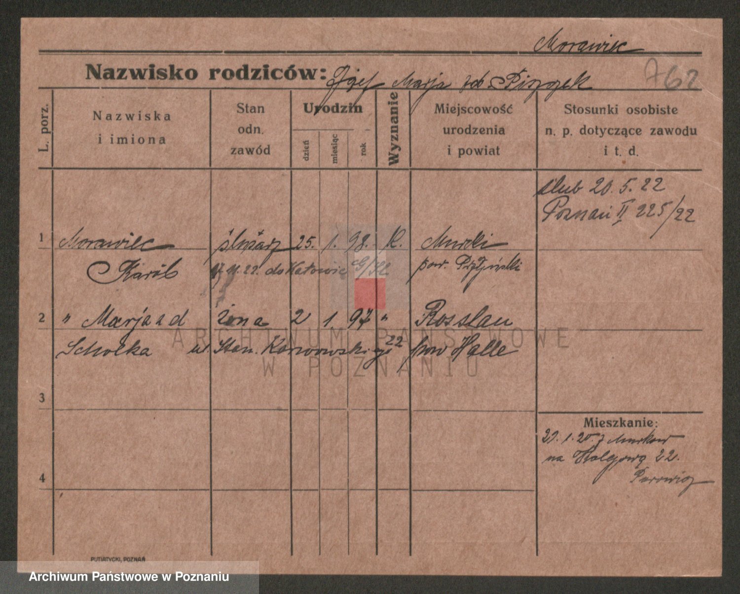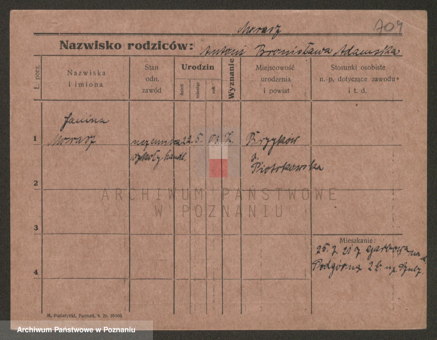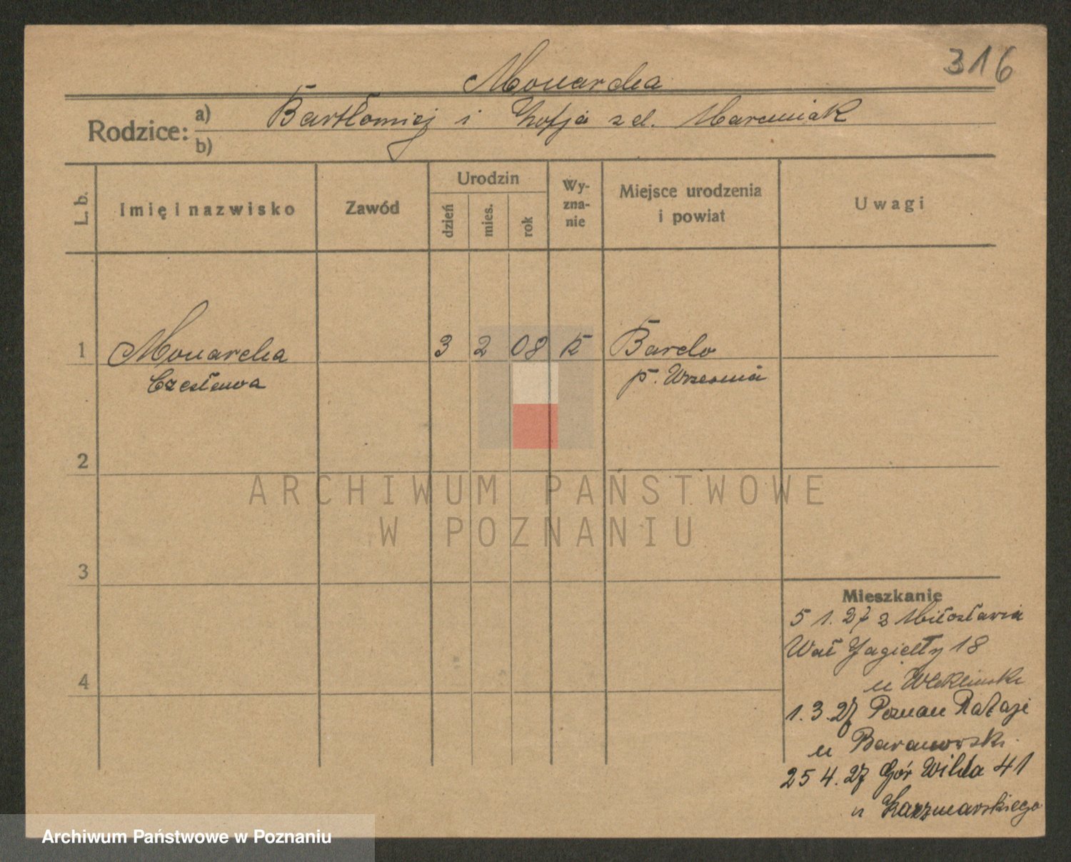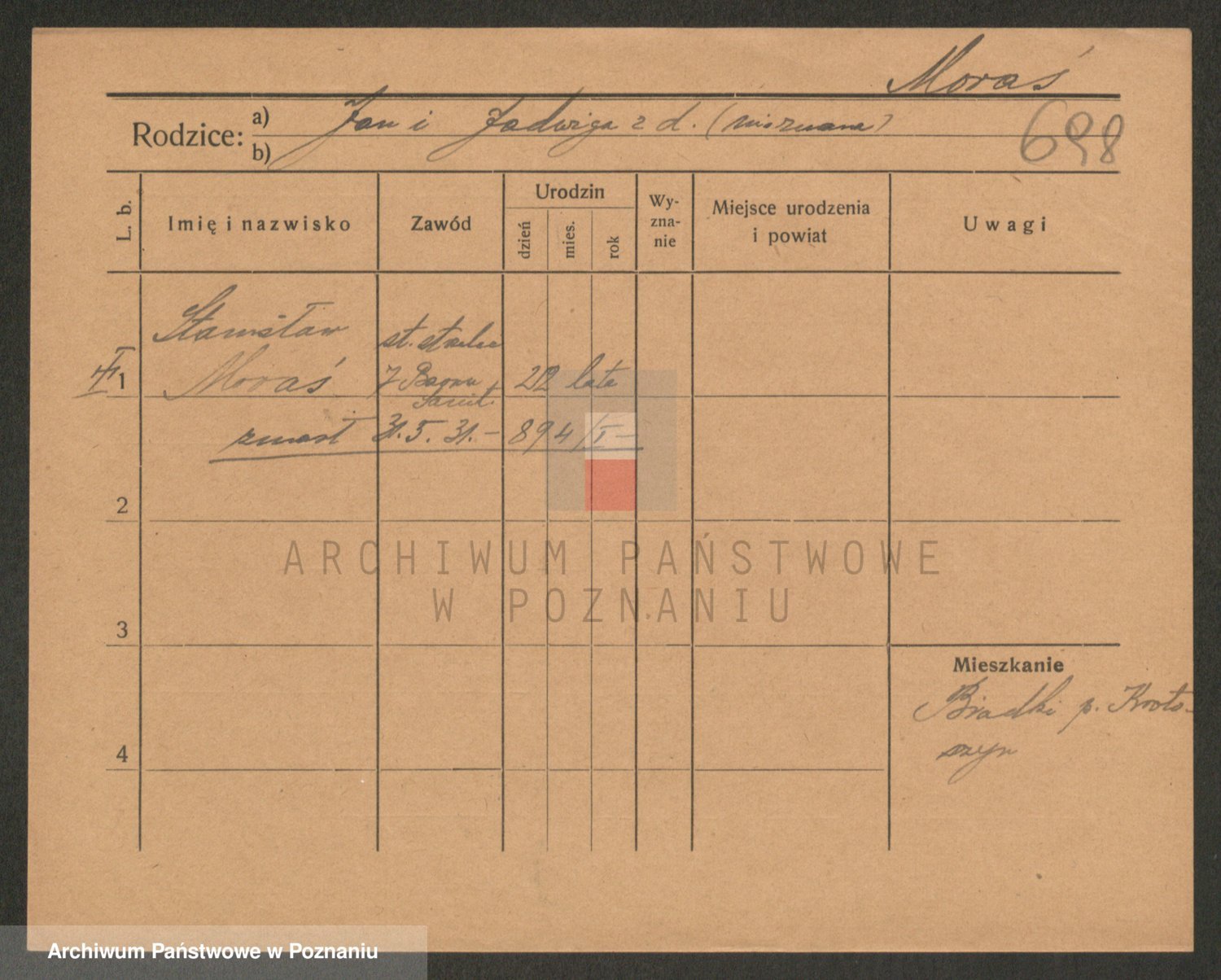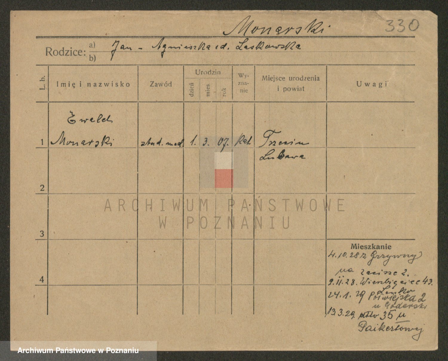 Podgląd karty osobowej dostępny jest po kliknięciu na nazwisko lub ikonkę karty. Można dokonywać powiększenia (ikony na górze) lub przechodzić między kolejnymi skanami (strzałki po bokach).