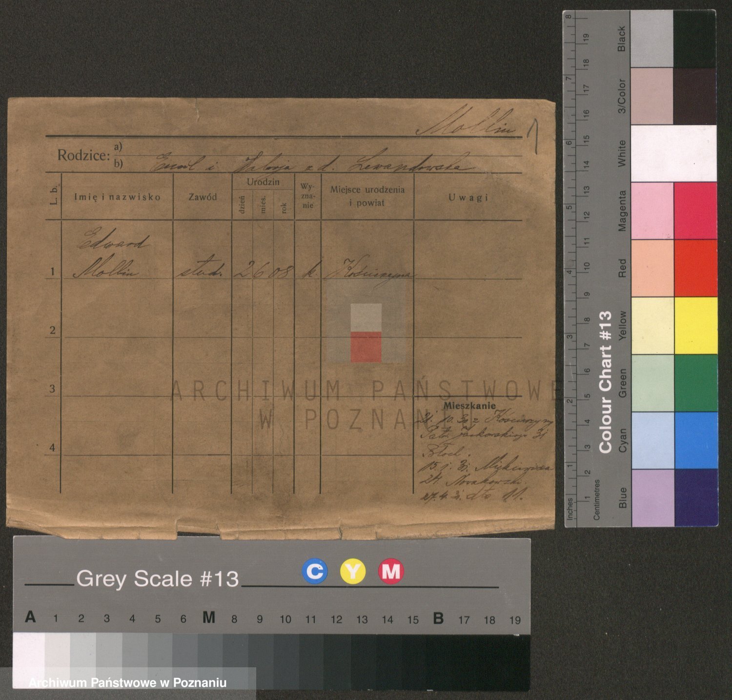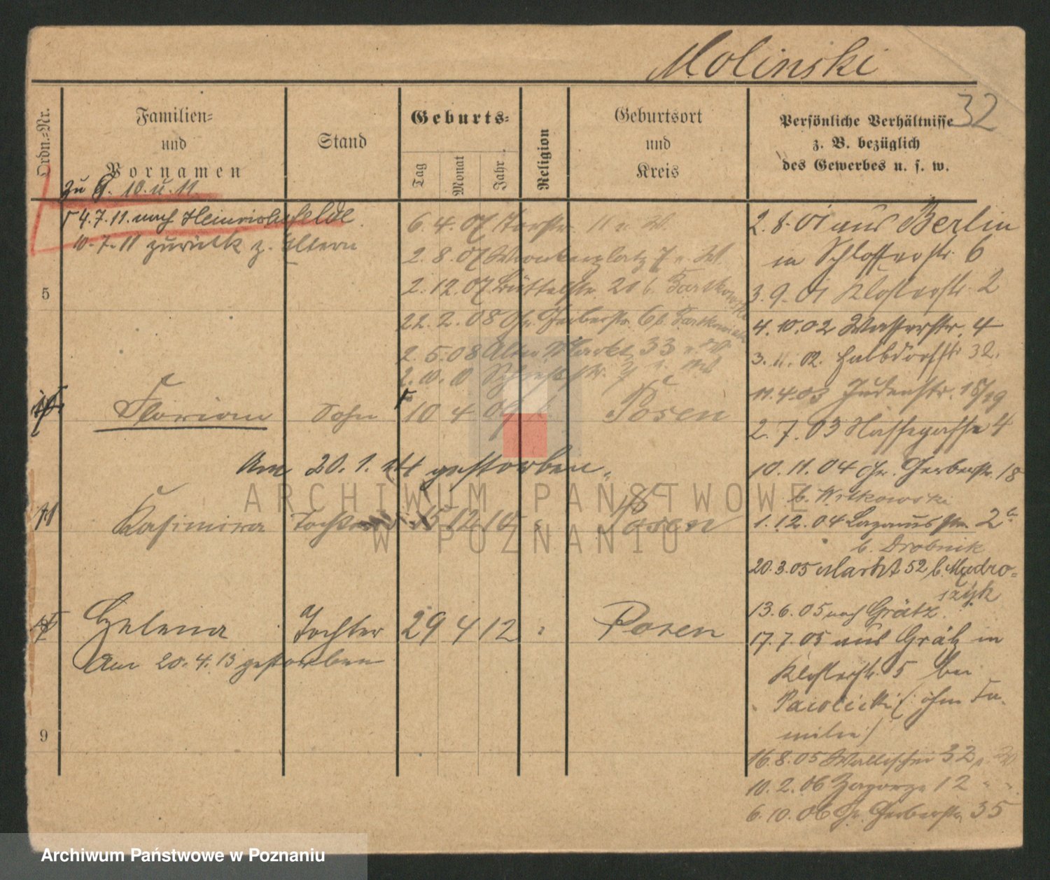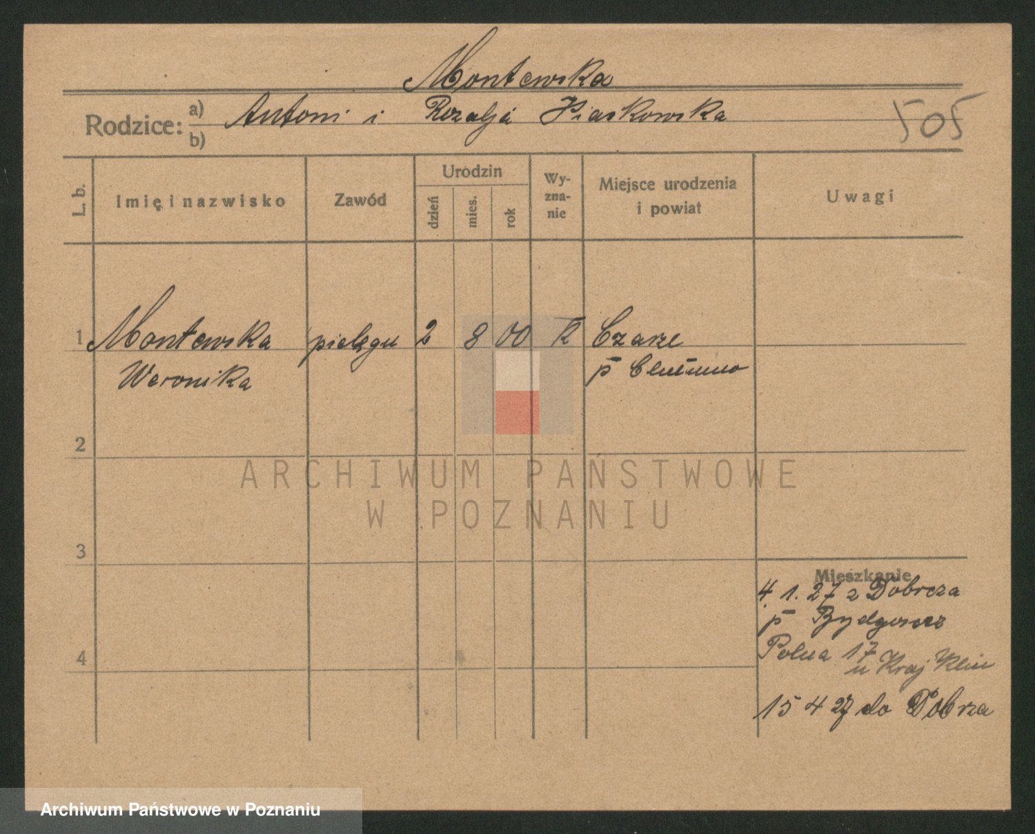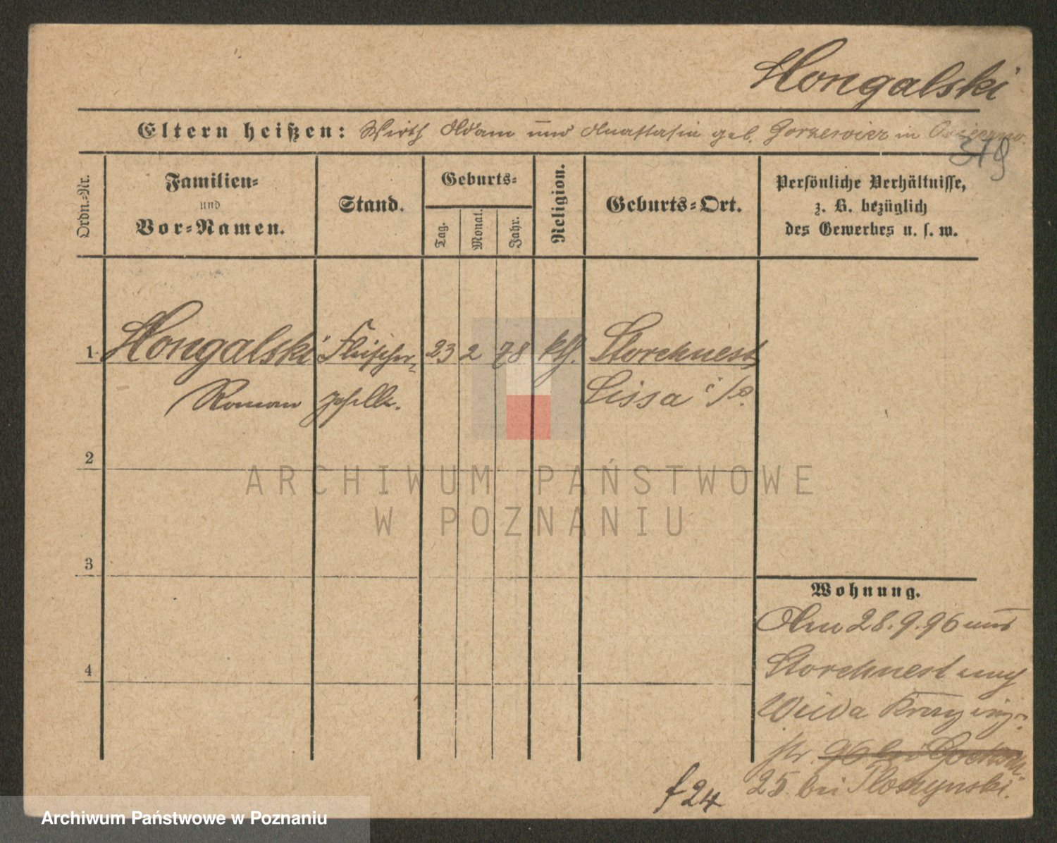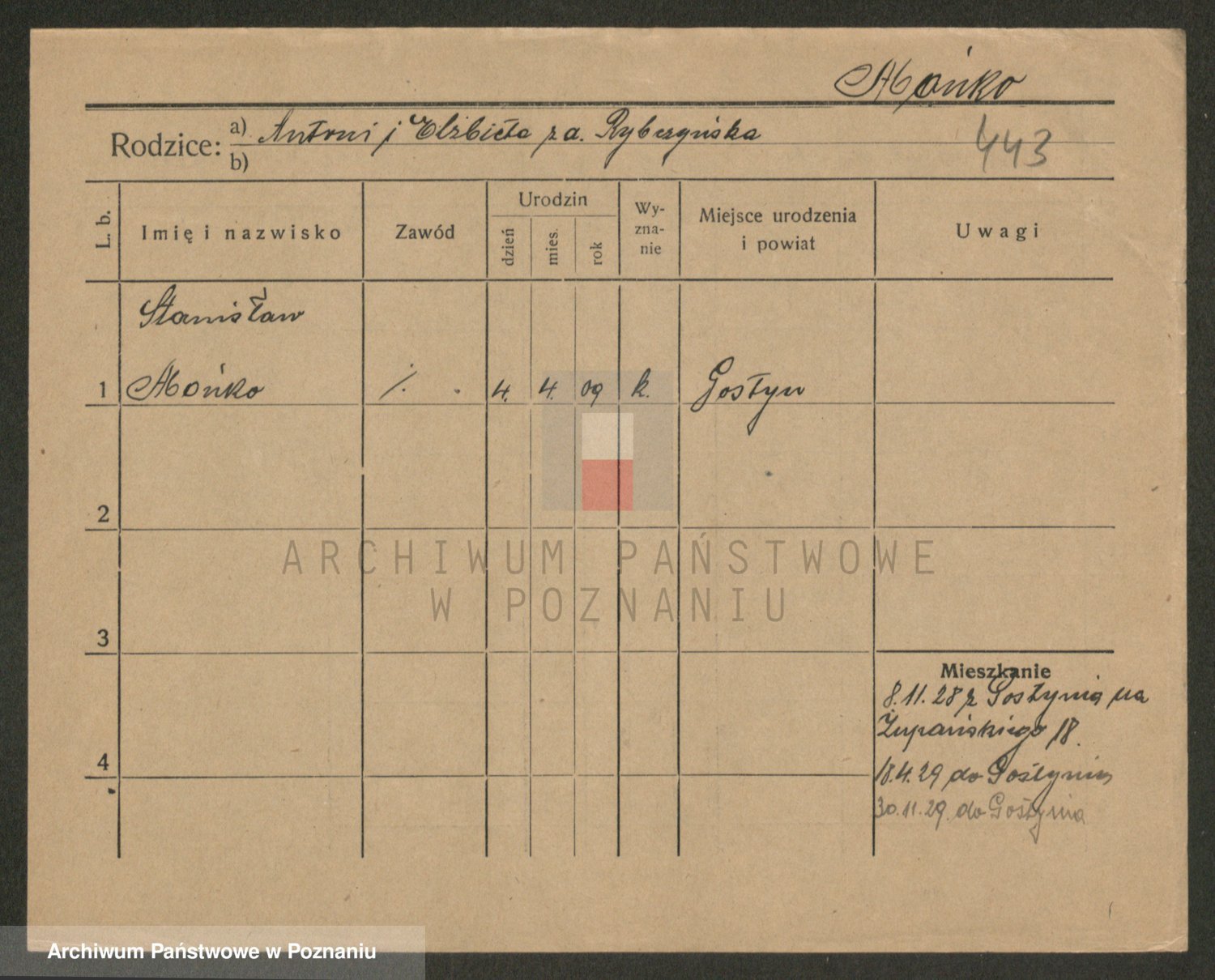 Podgląd karty osobowej dostępny jest po kliknięciu na nazwisko lub ikonkę karty. Można dokonywać powiększenia (ikony na górze) lub przechodzić między kolejnymi skanami (strzałki po bokach).