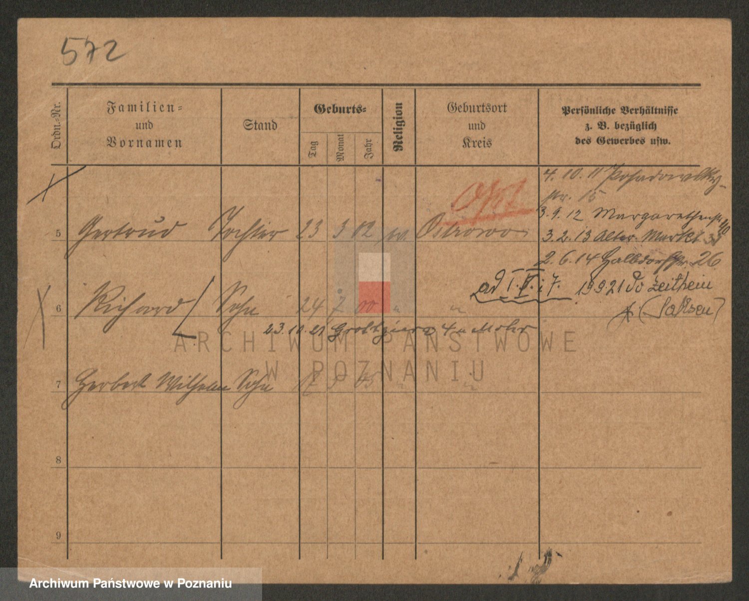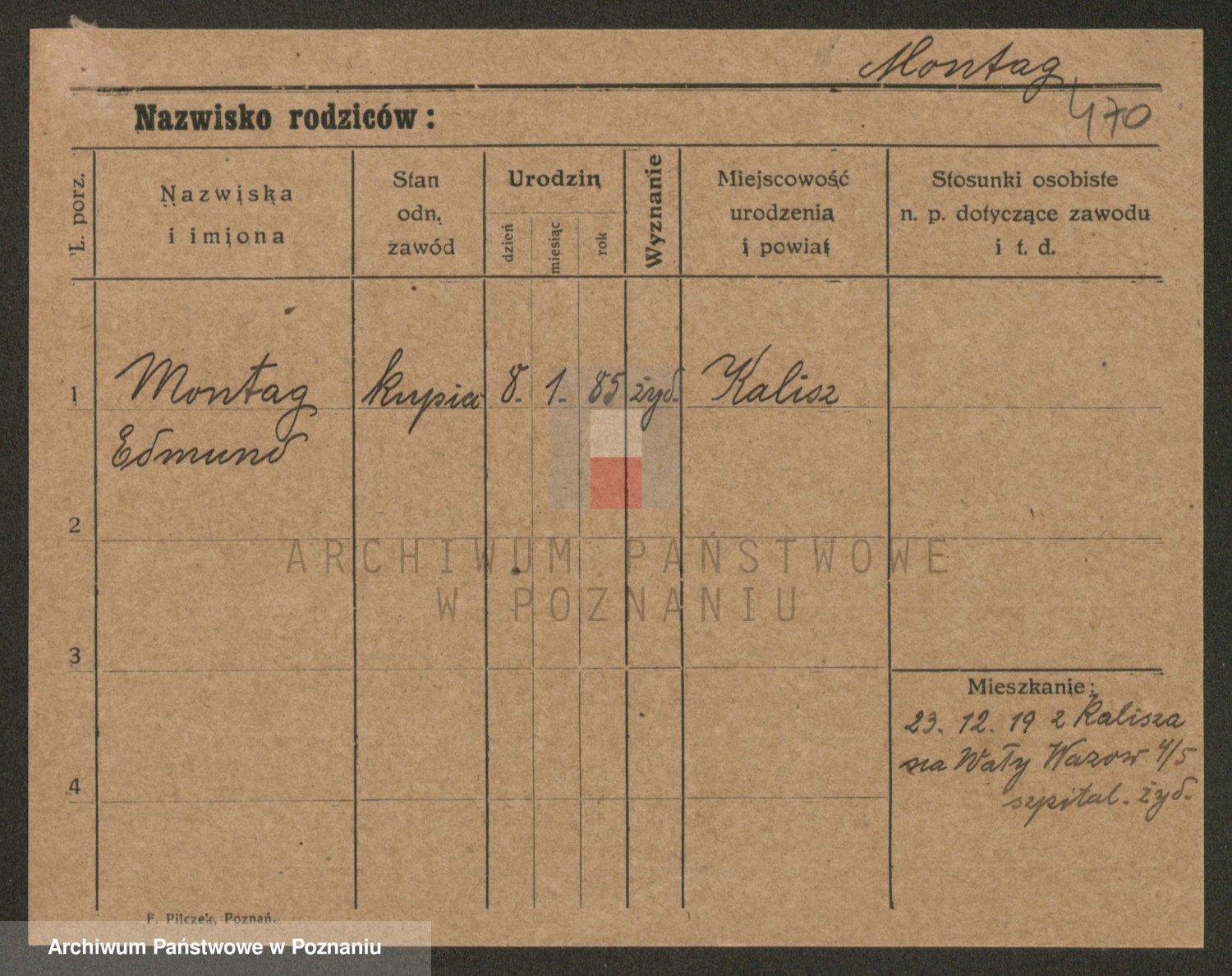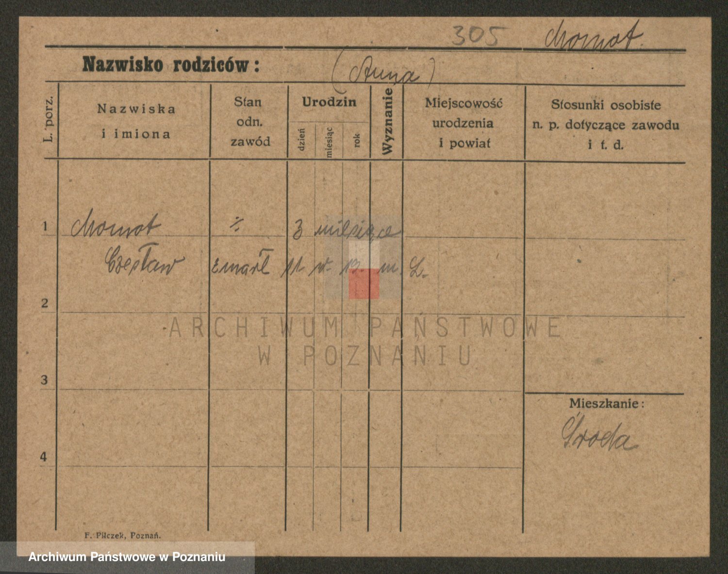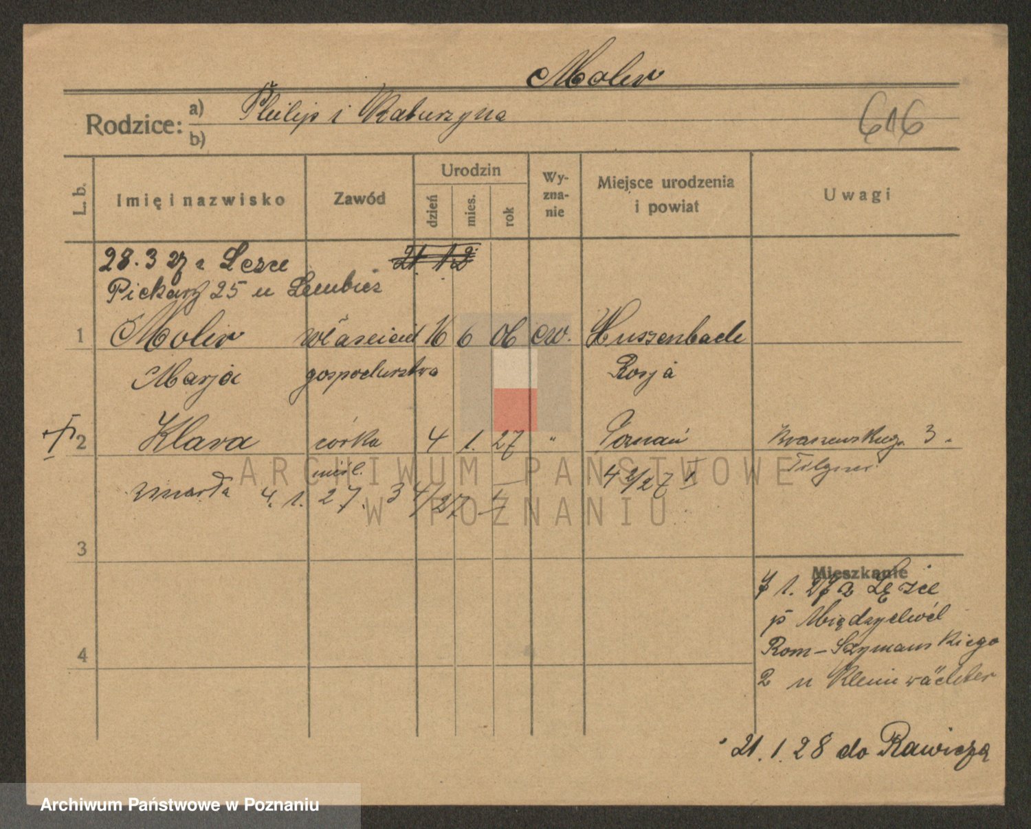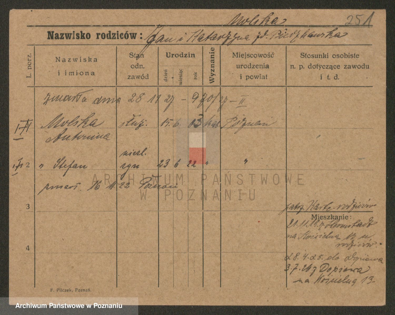Podgląd karty osobowej dostępny jest po kliknięciu na nazwisko lub ikonkę karty. Można dokonywać powiększenia (ikony na górze) lub przechodzić między kolejnymi skanami (strzałki po bokach).