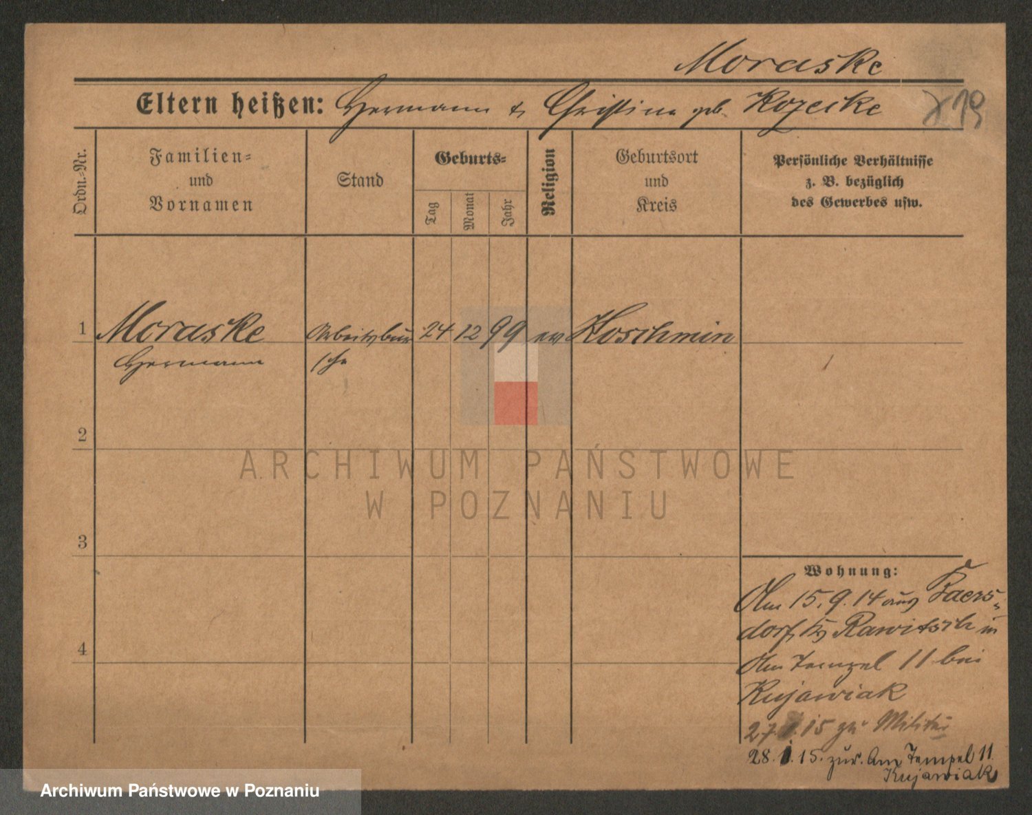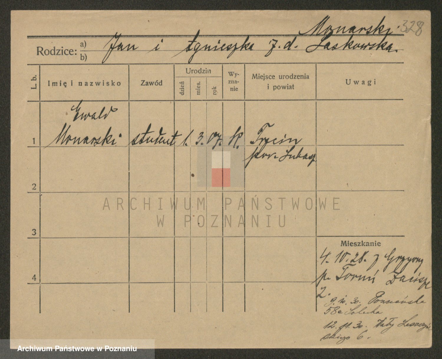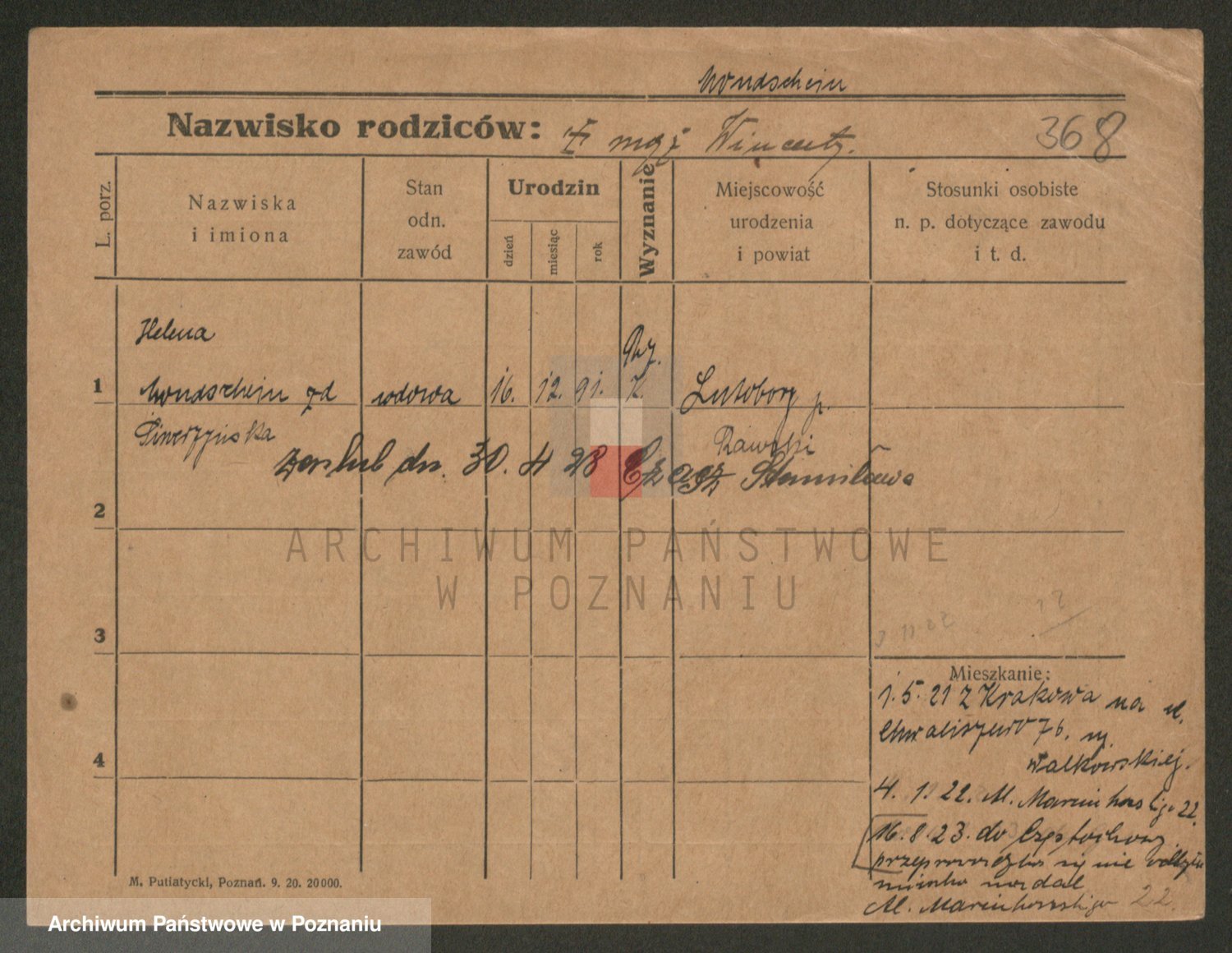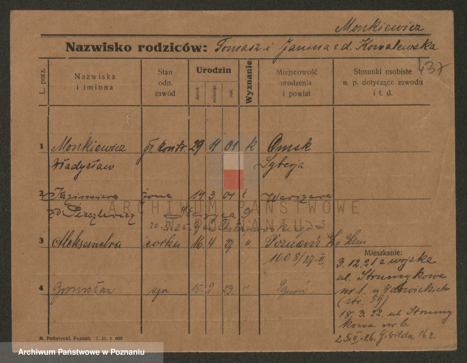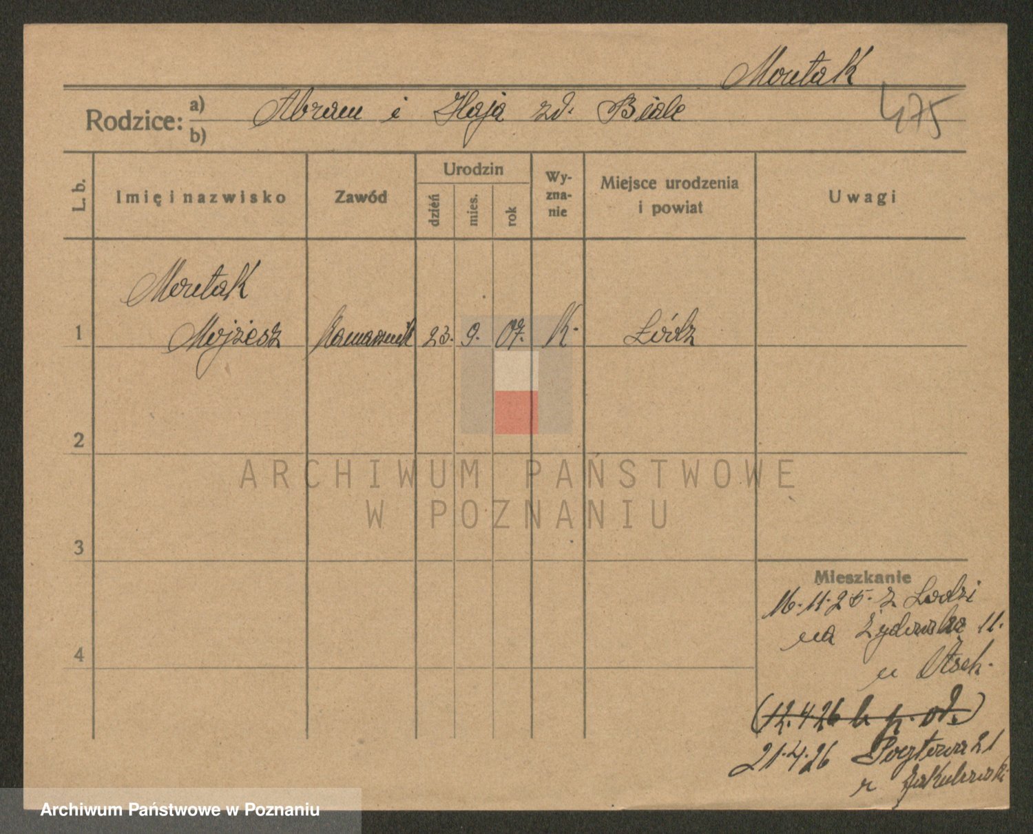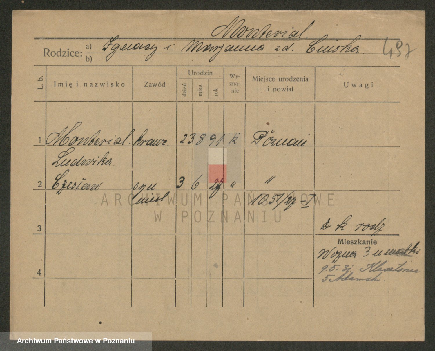 Podgląd karty osobowej dostępny jest po kliknięciu na nazwisko lub ikonkę karty. Można dokonywać powiększenia (ikony na górze) lub przechodzić między kolejnymi skanami (strzałki po bokach).