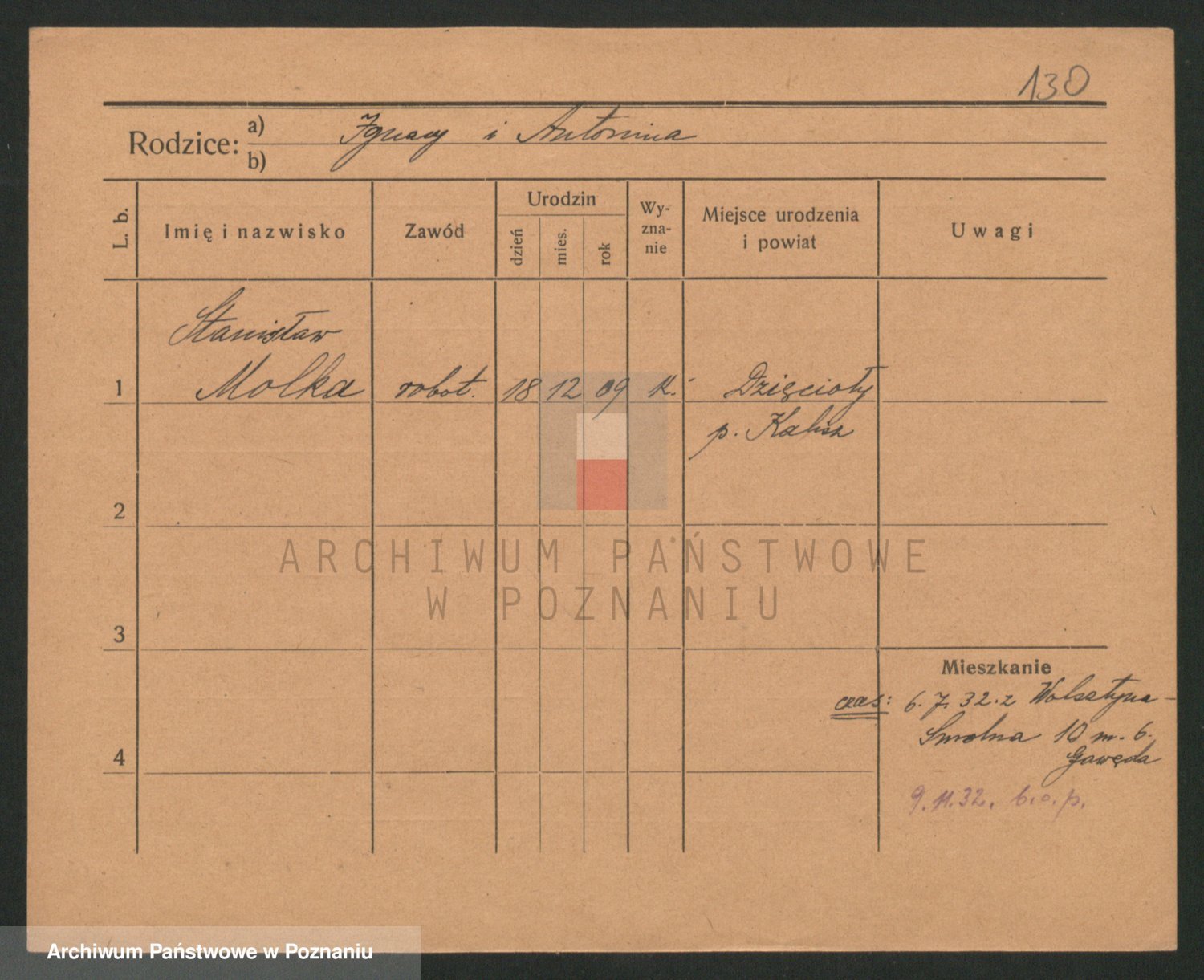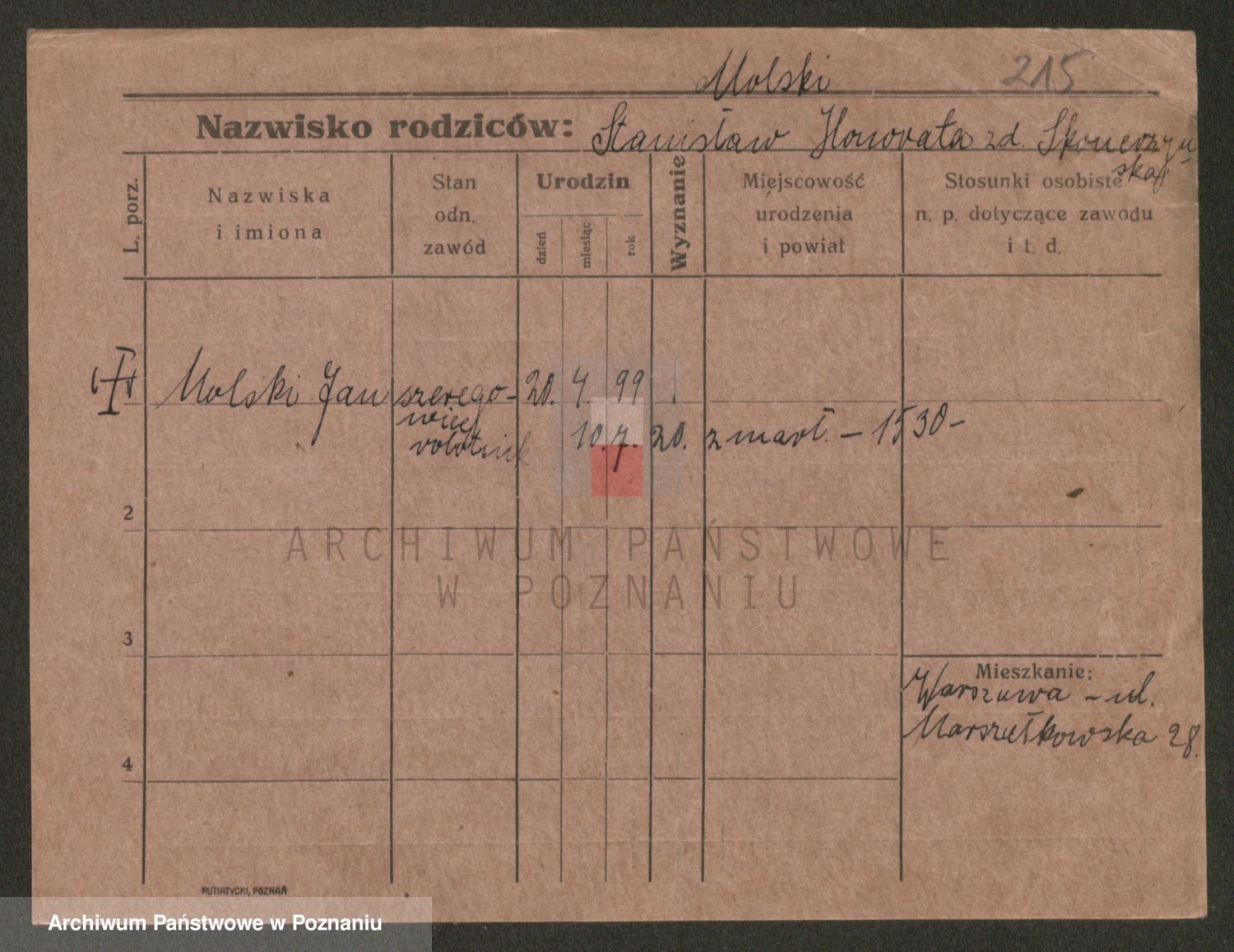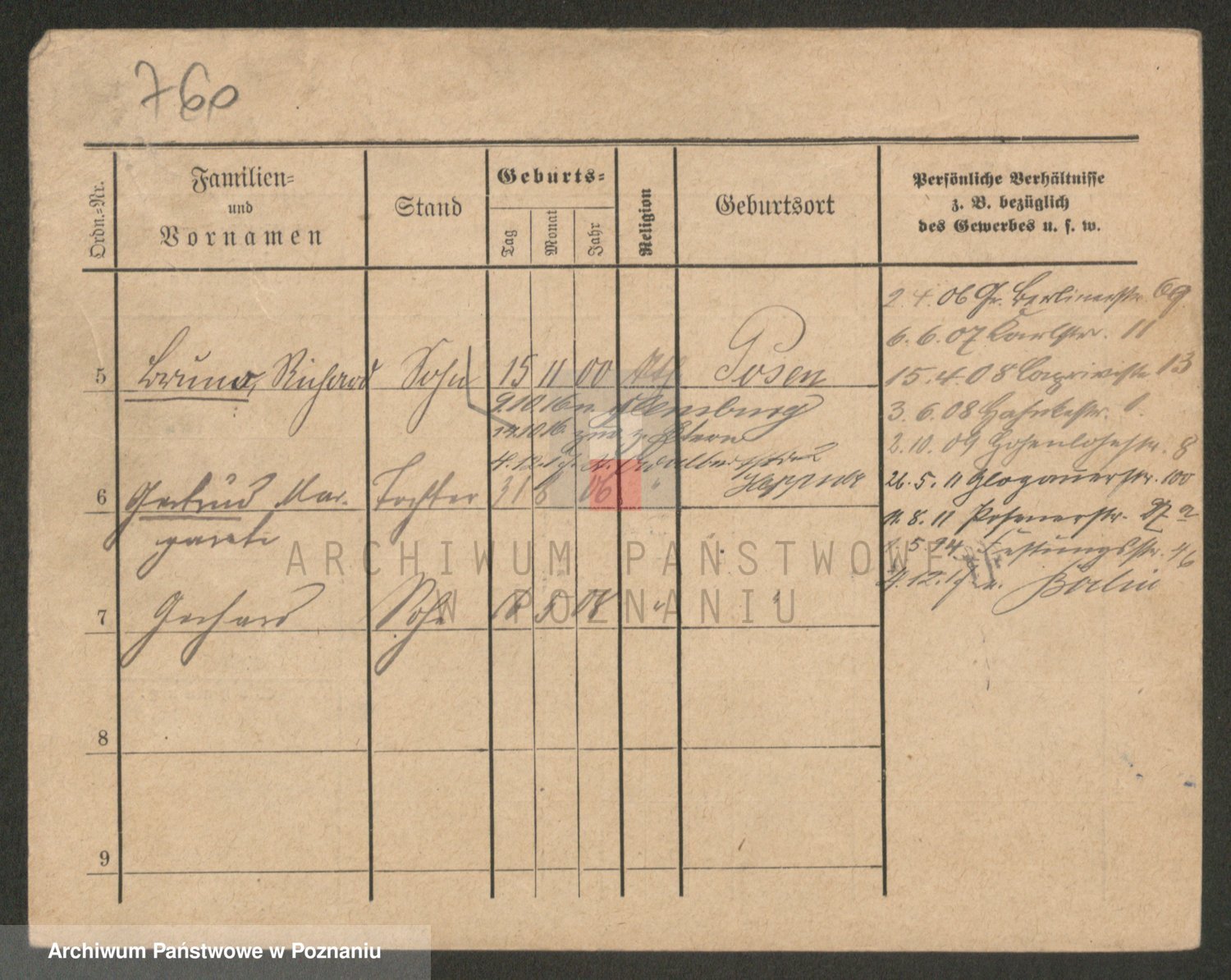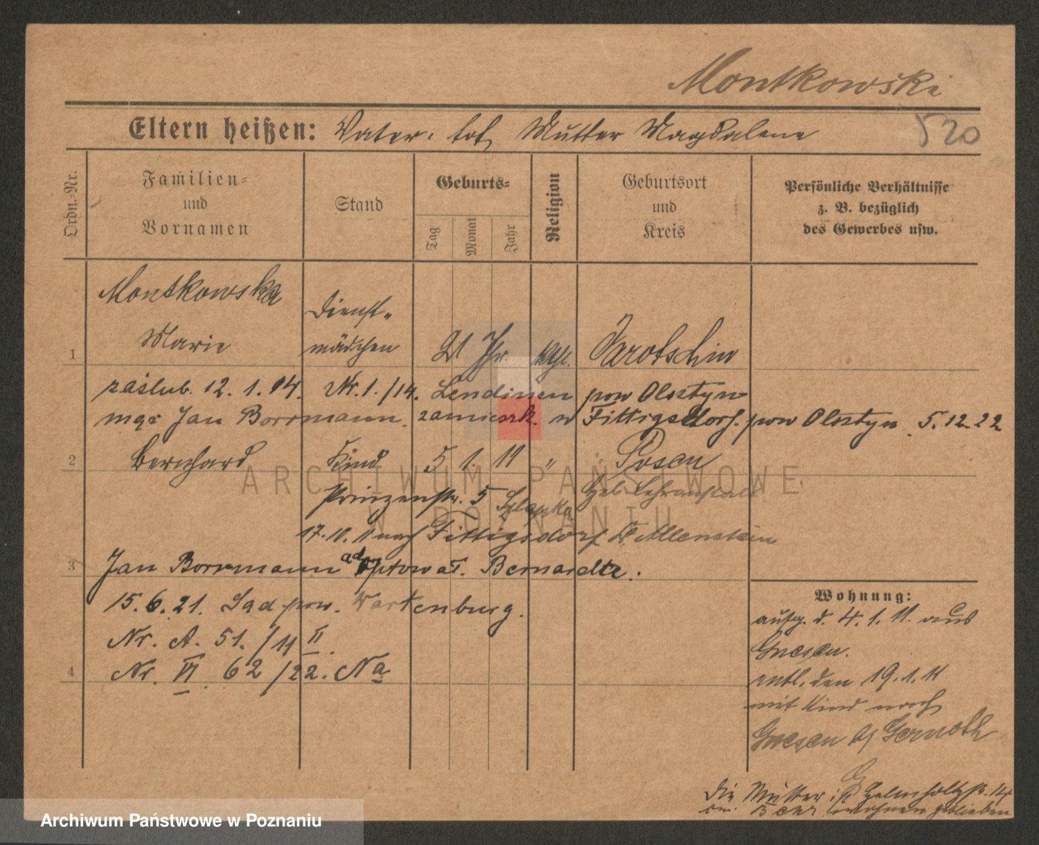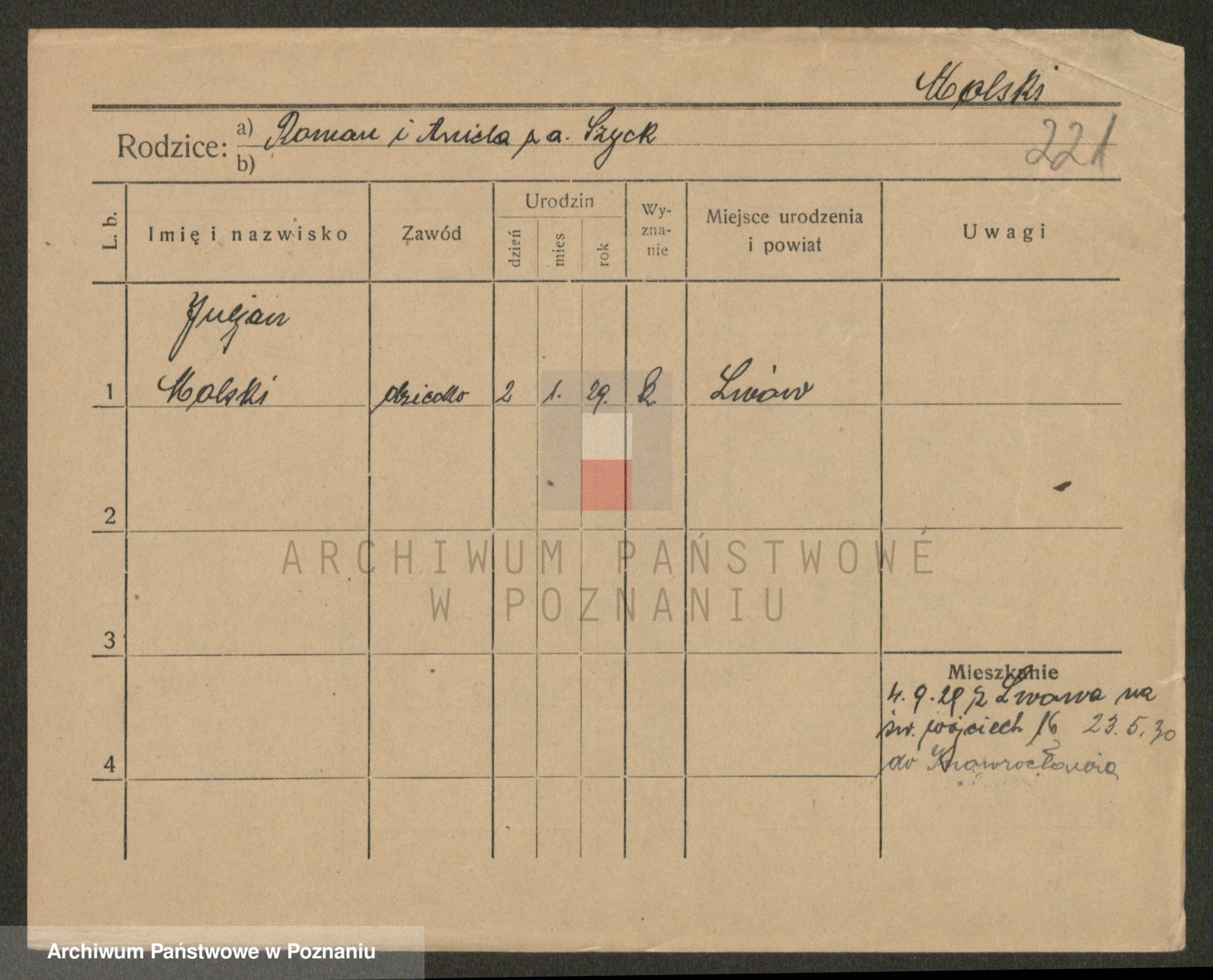 Podgląd karty osobowej dostępny jest po kliknięciu na nazwisko lub ikonkę karty. Można dokonywać powiększenia (ikony na górze) lub przechodzić między kolejnymi skanami (strzałki po bokach).