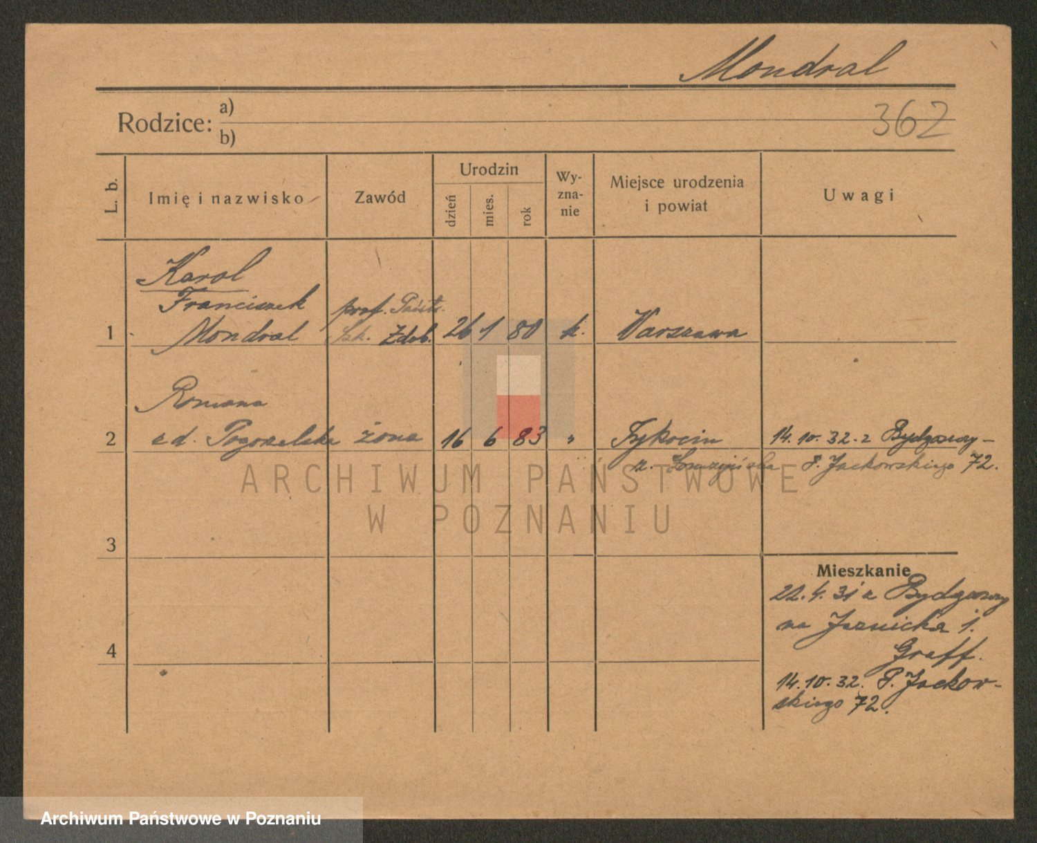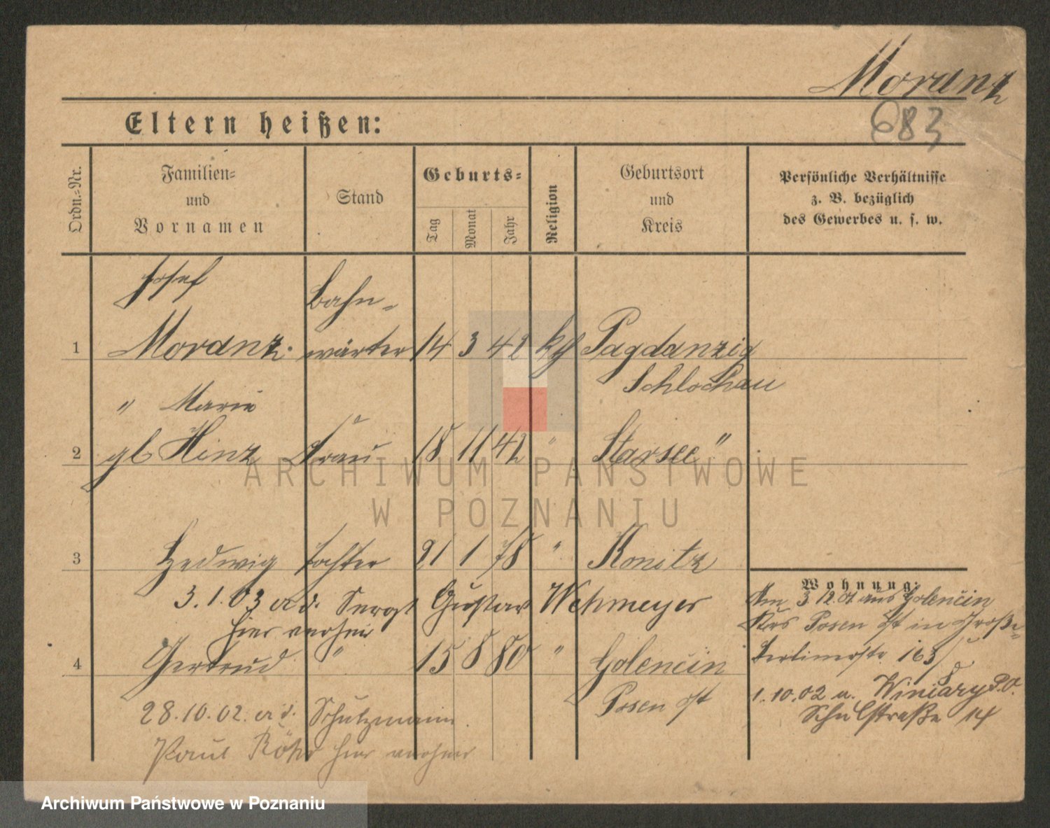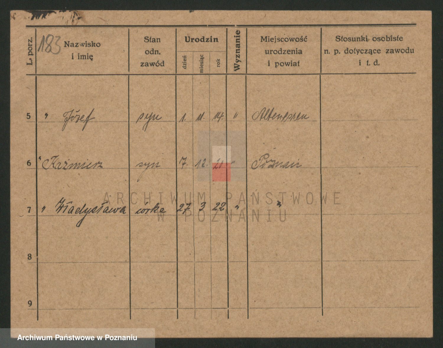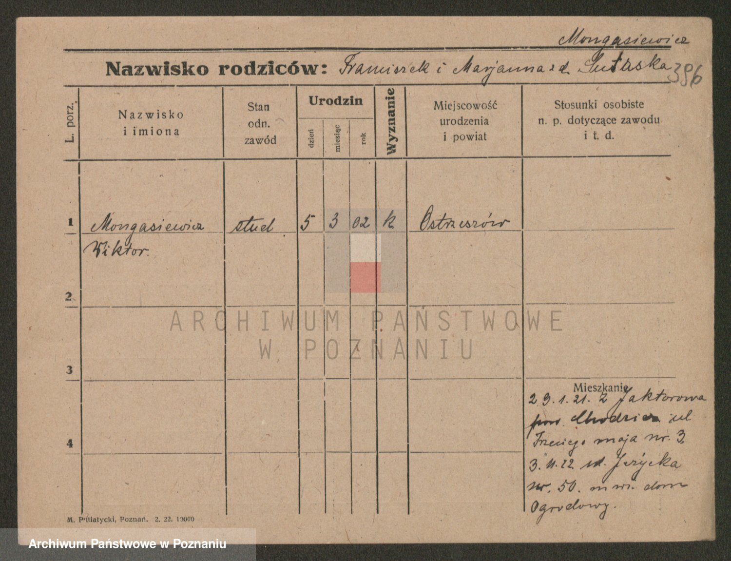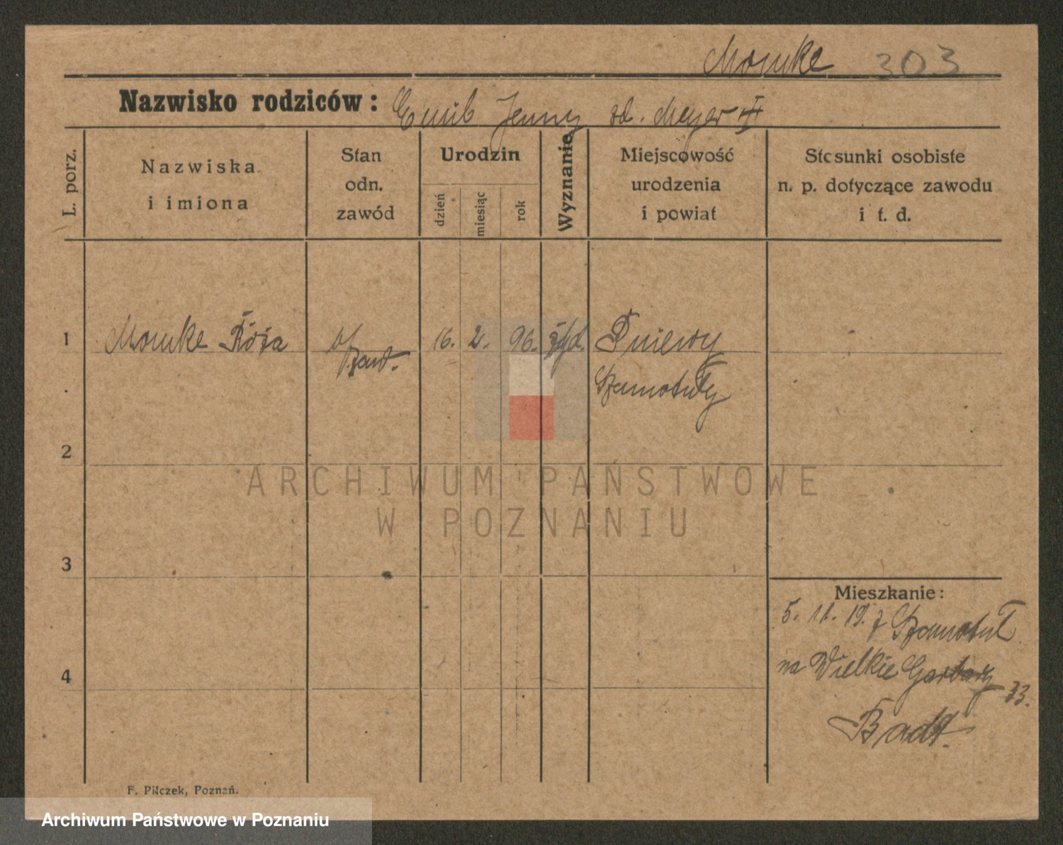 Podgląd karty osobowej dostępny jest po kliknięciu na nazwisko lub ikonkę karty. Można dokonywać powiększenia (ikony na górze) lub przechodzić między kolejnymi skanami (strzałki po bokach).