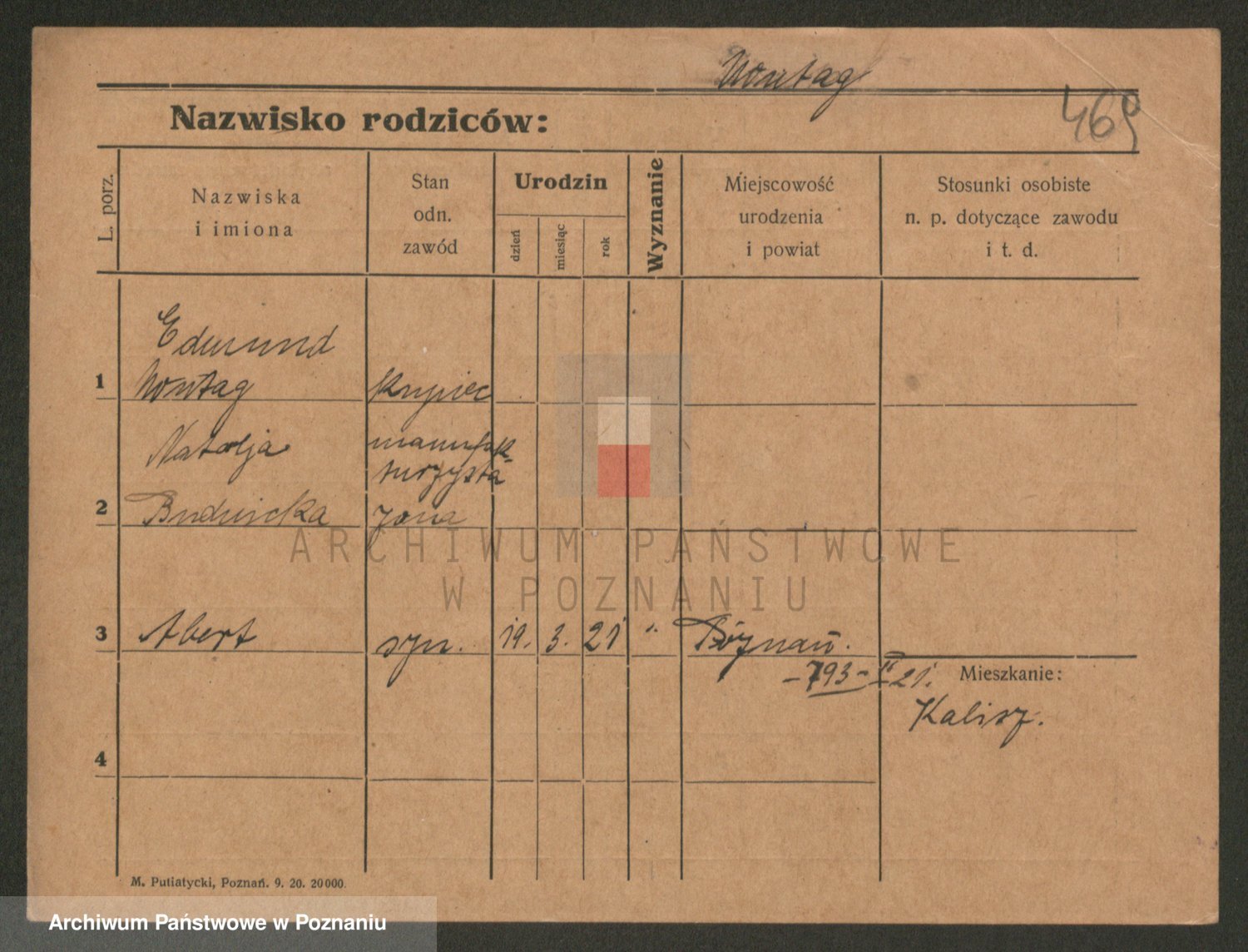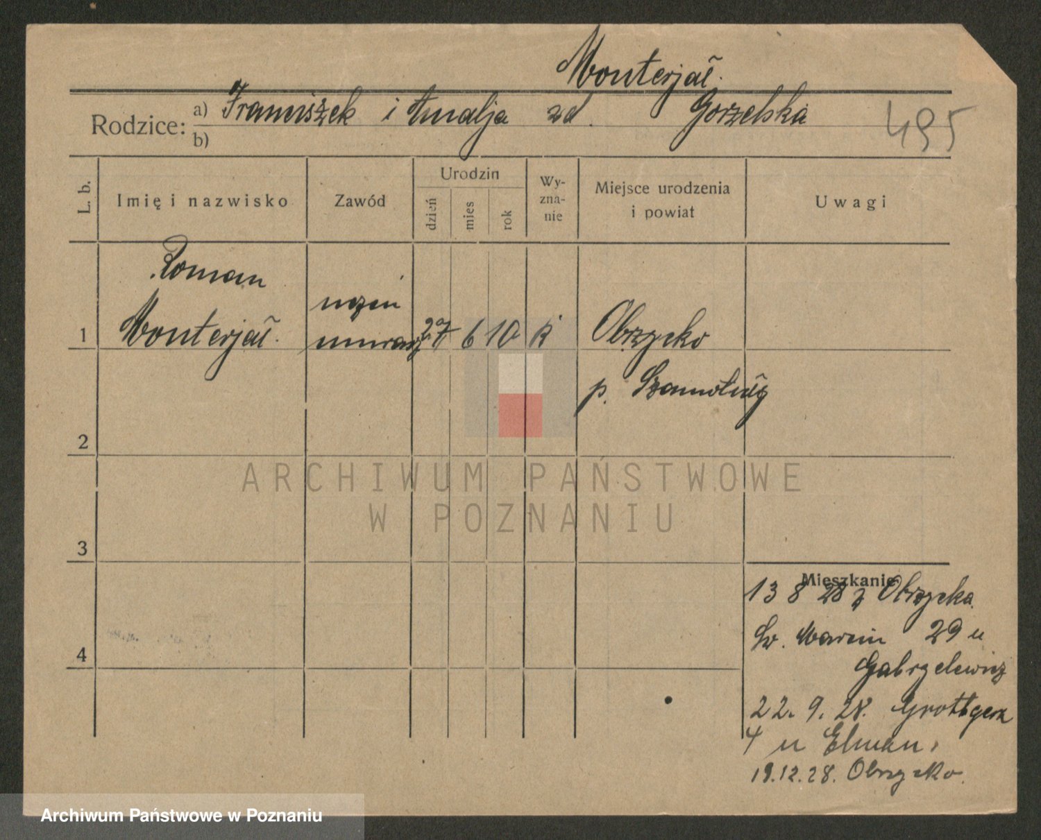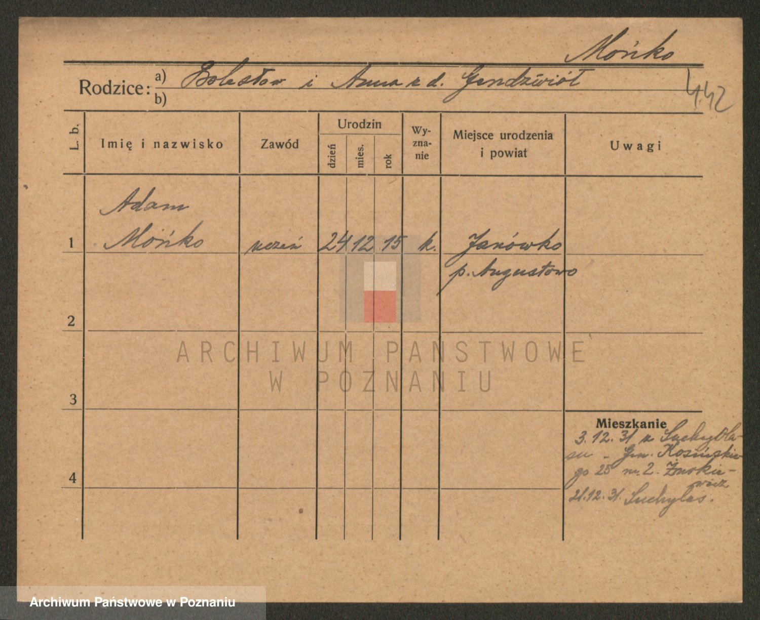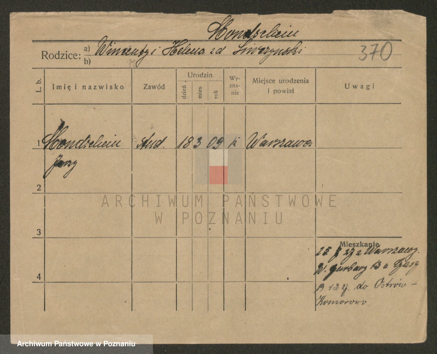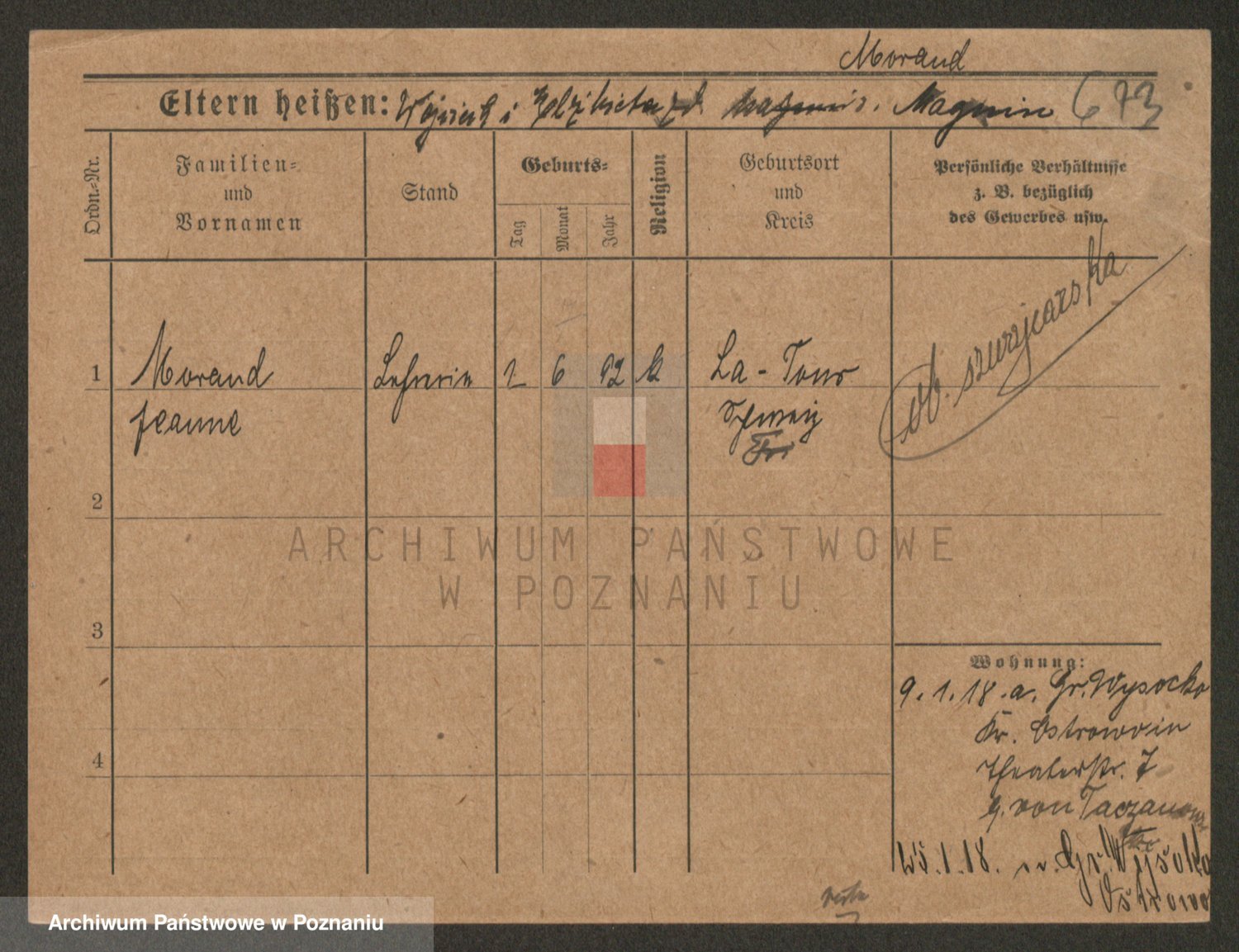 Podgląd karty osobowej dostępny jest po kliknięciu na nazwisko lub ikonkę karty. Można dokonywać powiększenia (ikony na górze) lub przechodzić między kolejnymi skanami (strzałki po bokach).